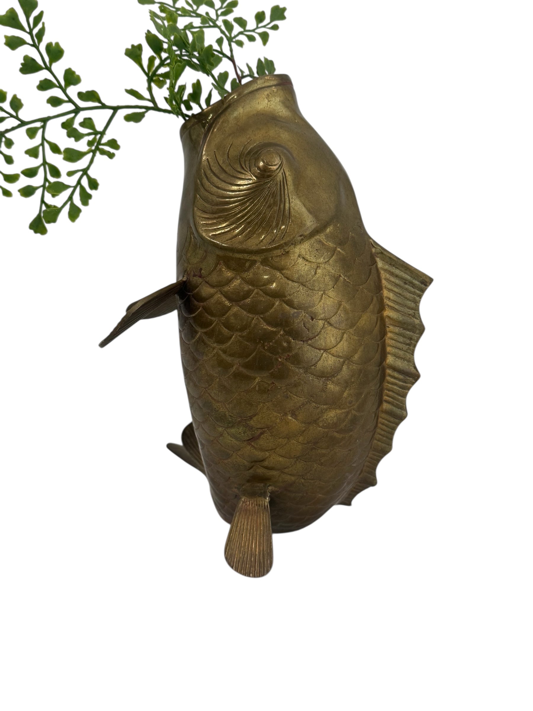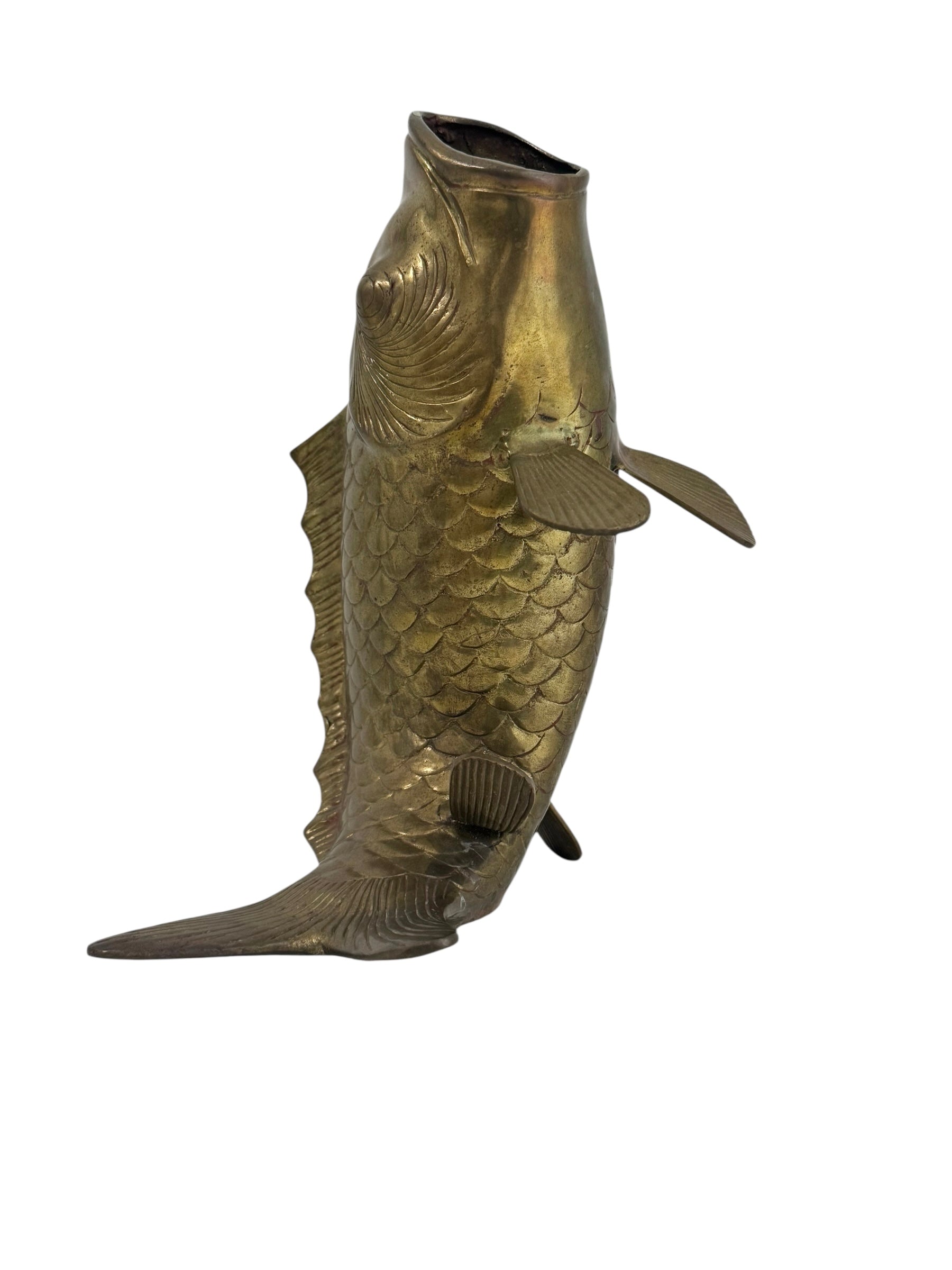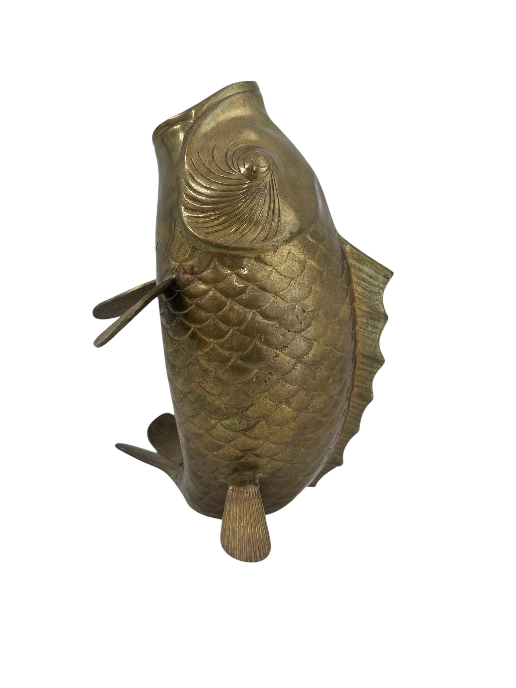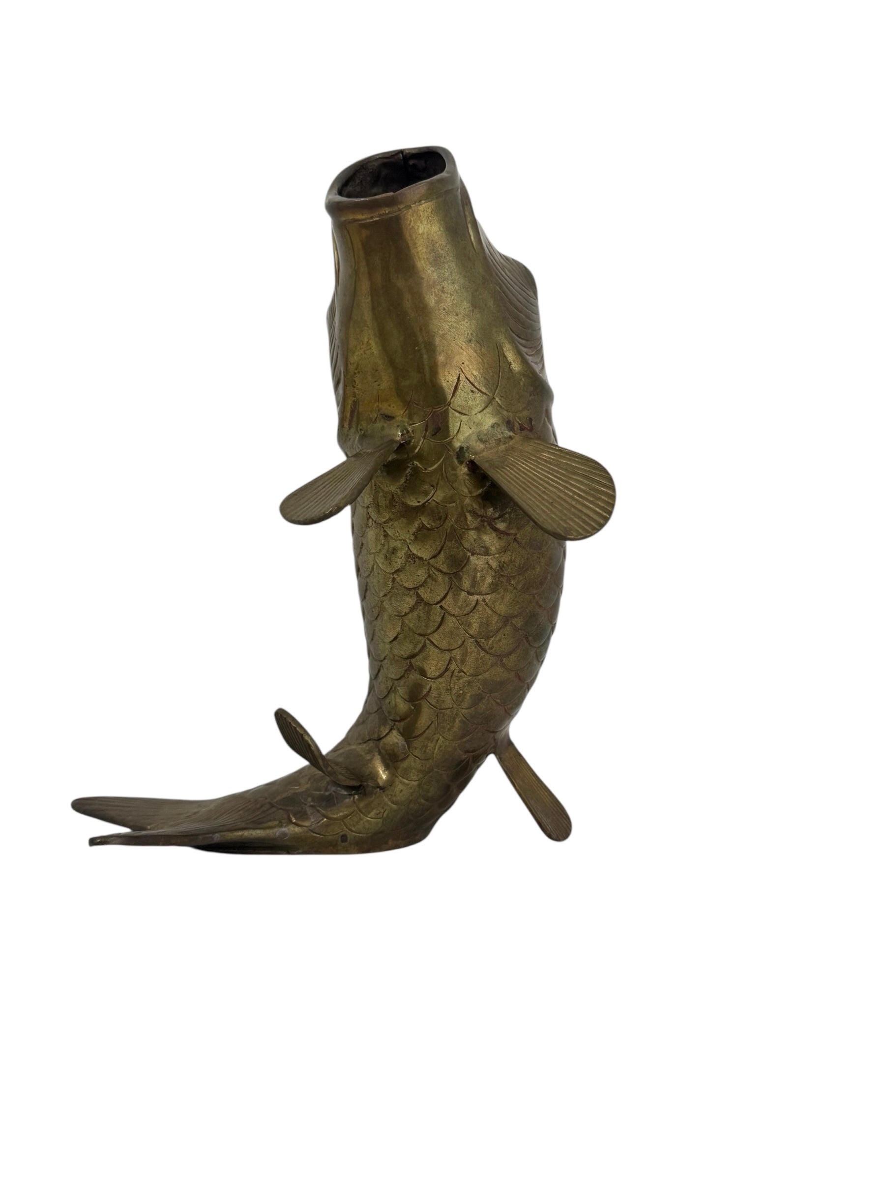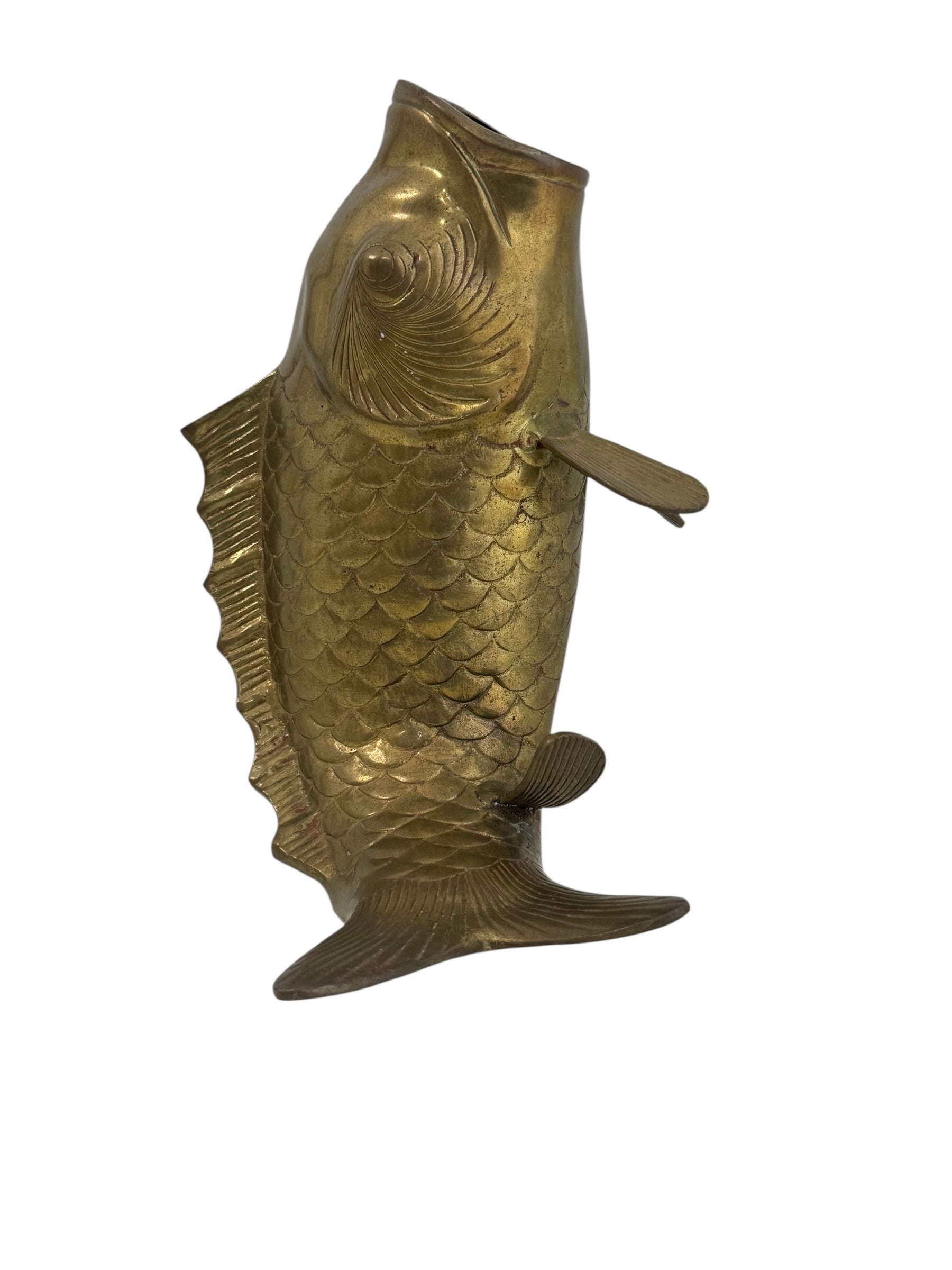Vintage Brass Standing Fish Vase – Mid-Century Koi Style Vessel/Vase/Coin or Wishing Bank