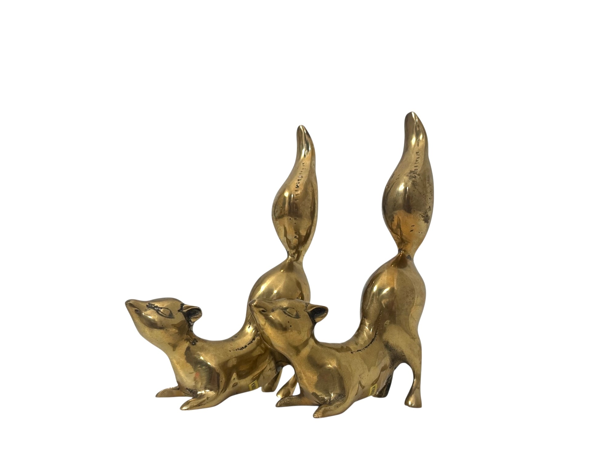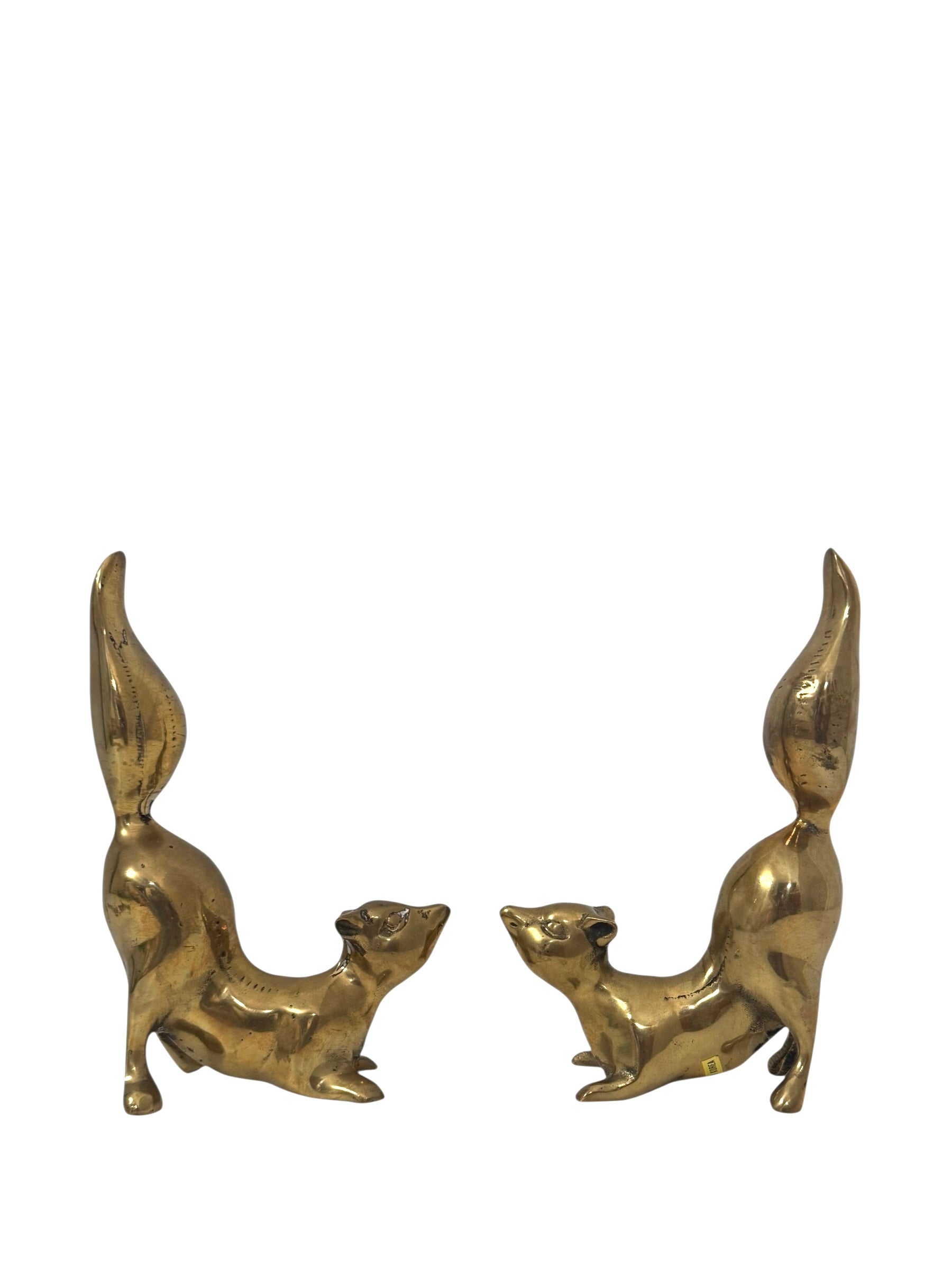 Vintage Brass Squirrel Figurines – Playful Mid-Century Pair with High Curved Tails