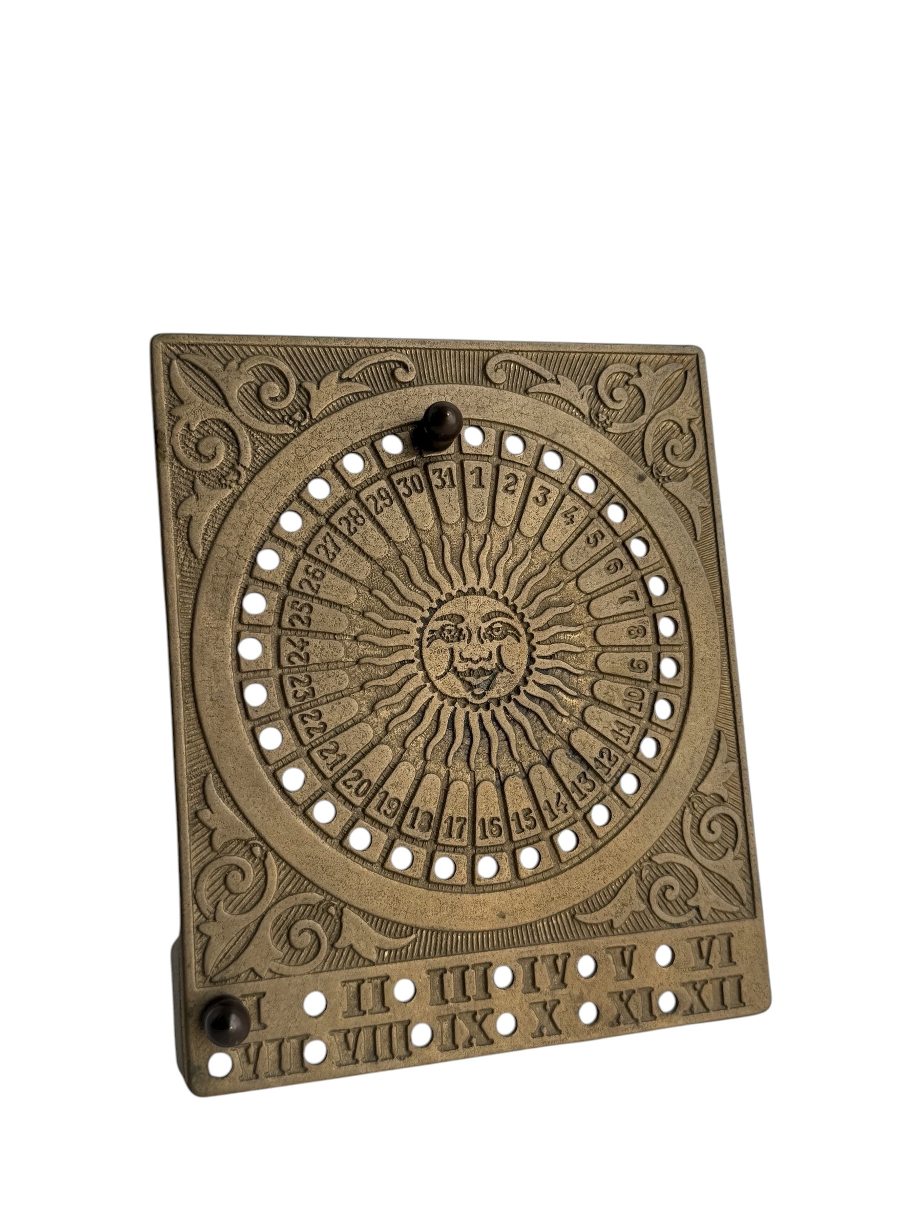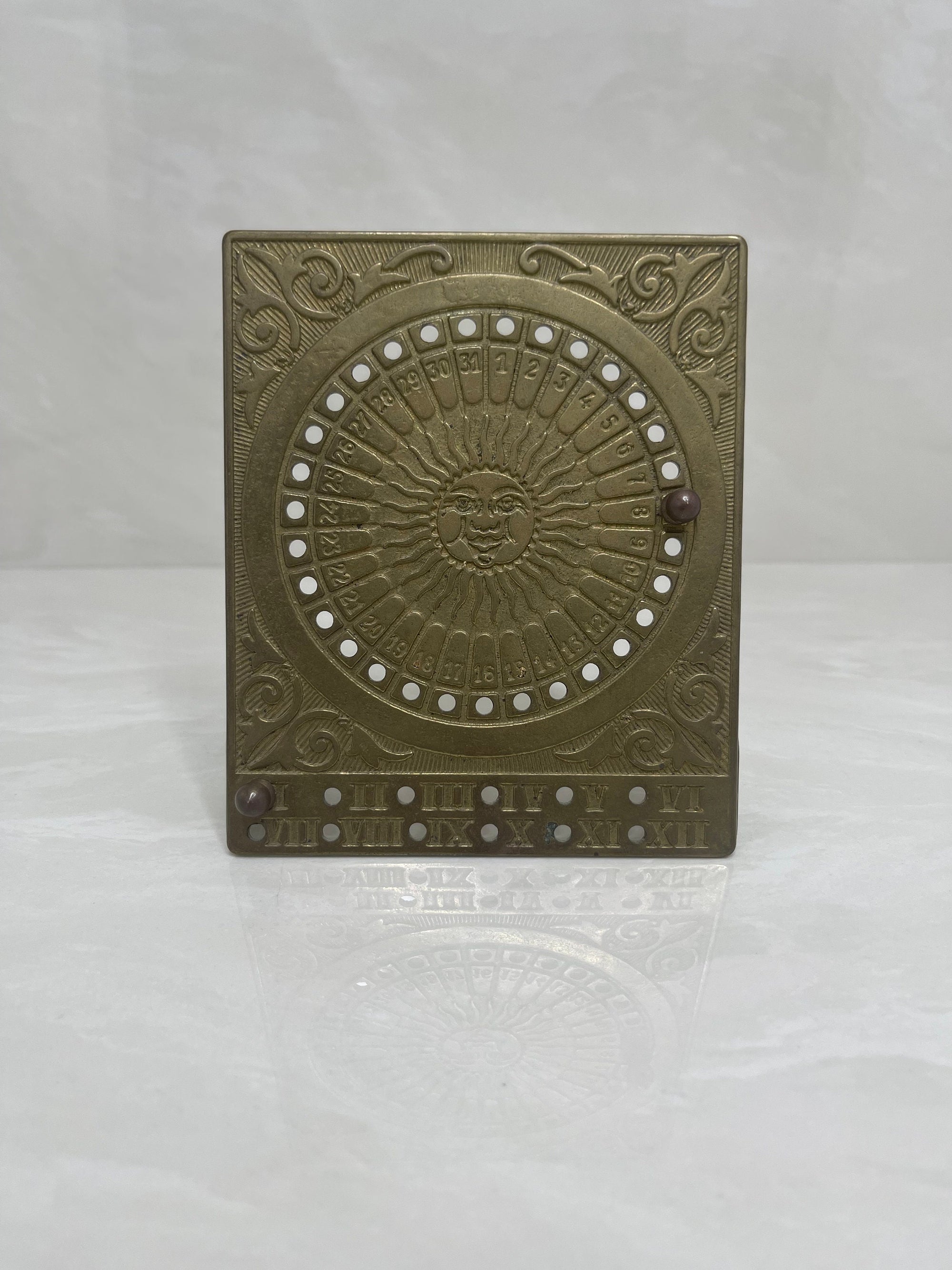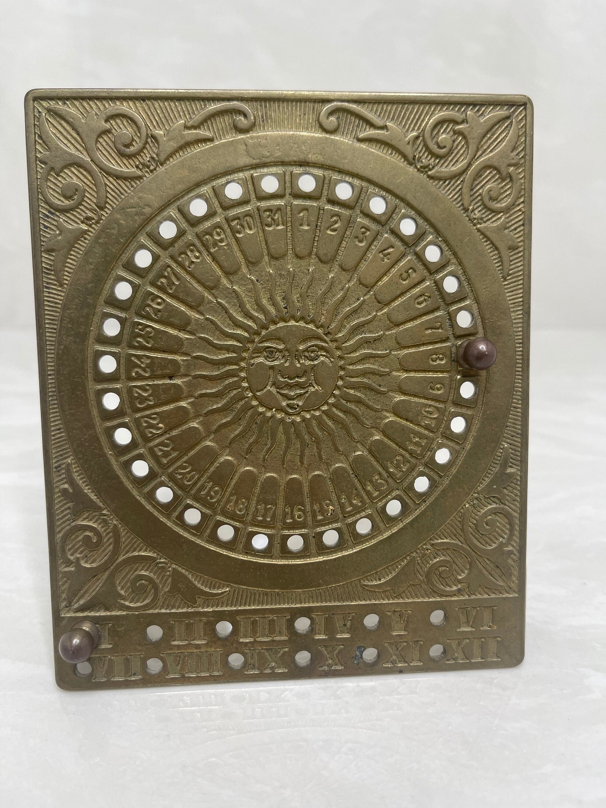 Vintage Brass Sun Calendar-Date Marker with Two Pegs