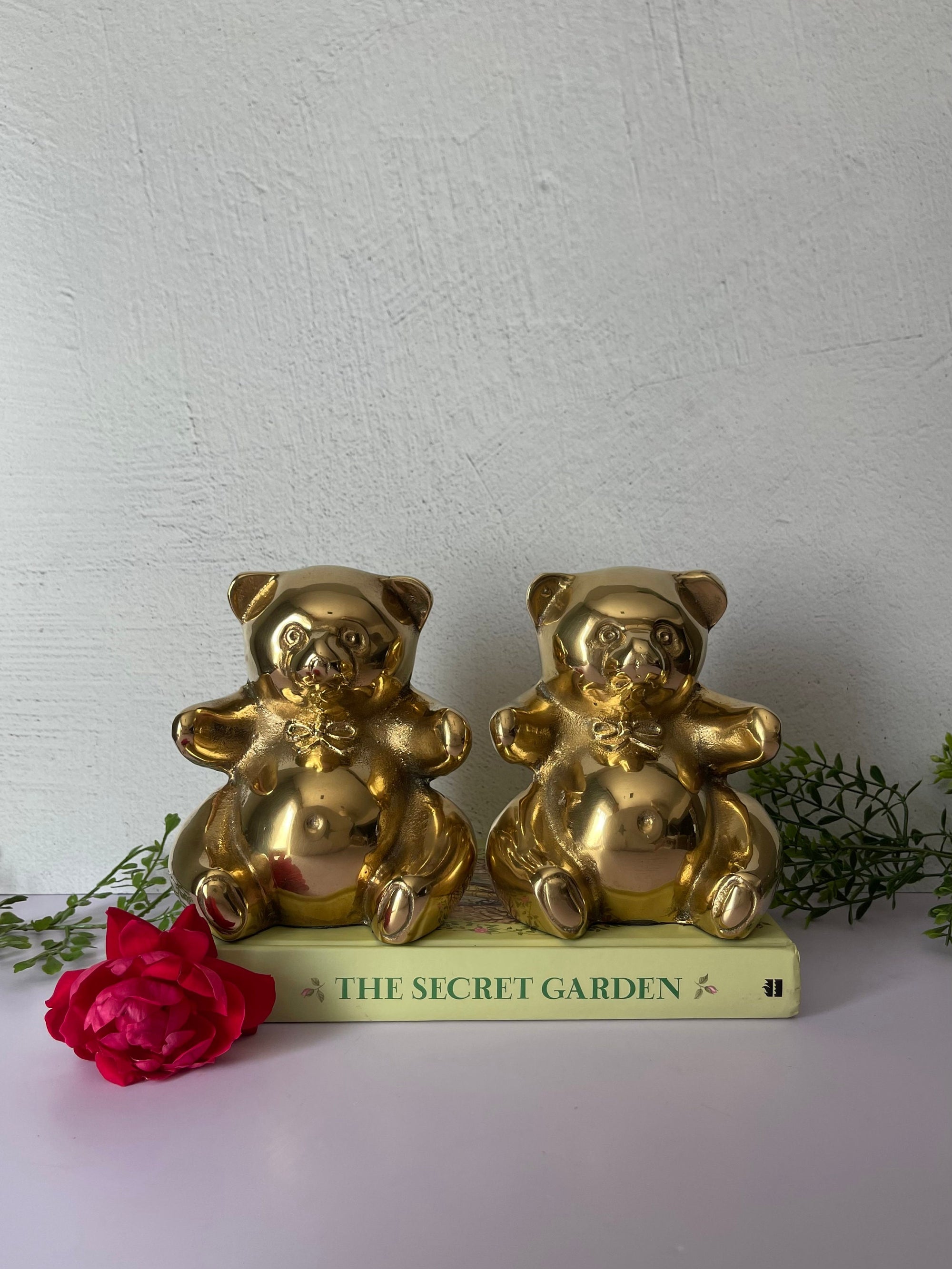 Vintage Brass Teddy Bear Bookends