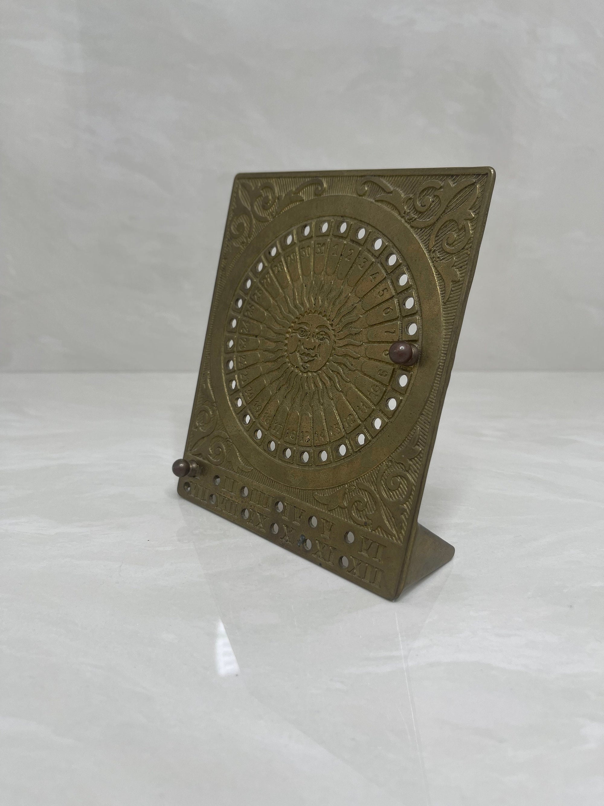 Vintage Brass Sundial Desk Calendar with Pegs