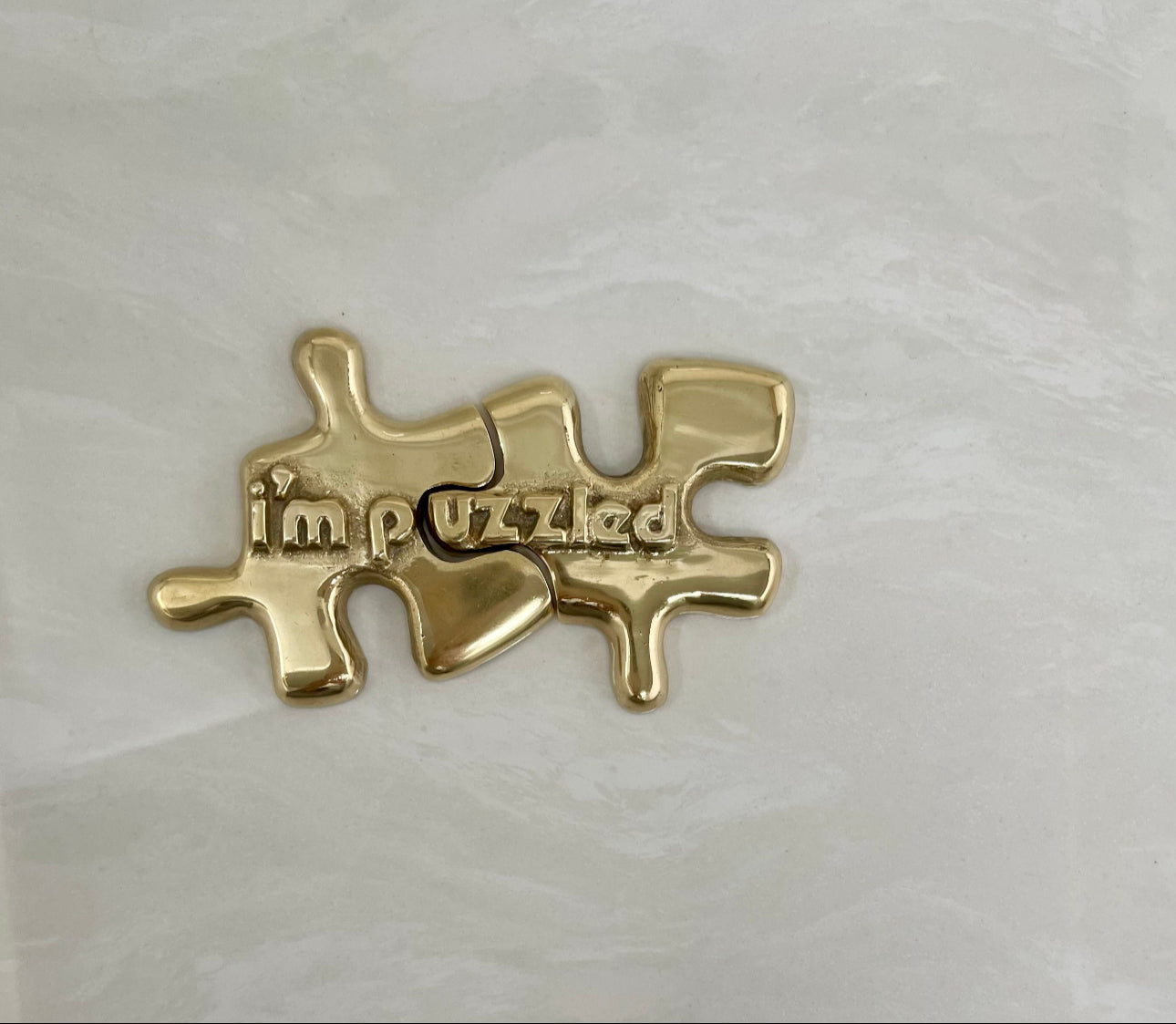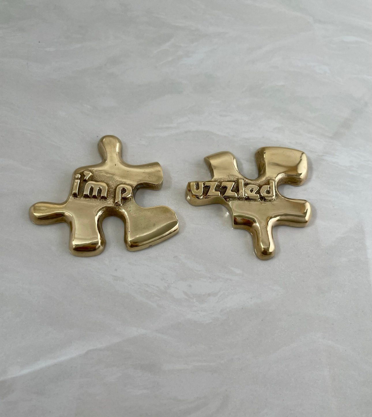 Vintage Brass “I’m Puzzled” Puzzle Pieces- A Set