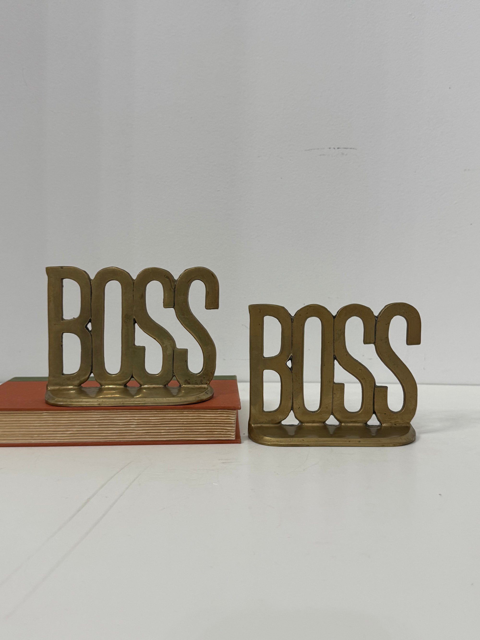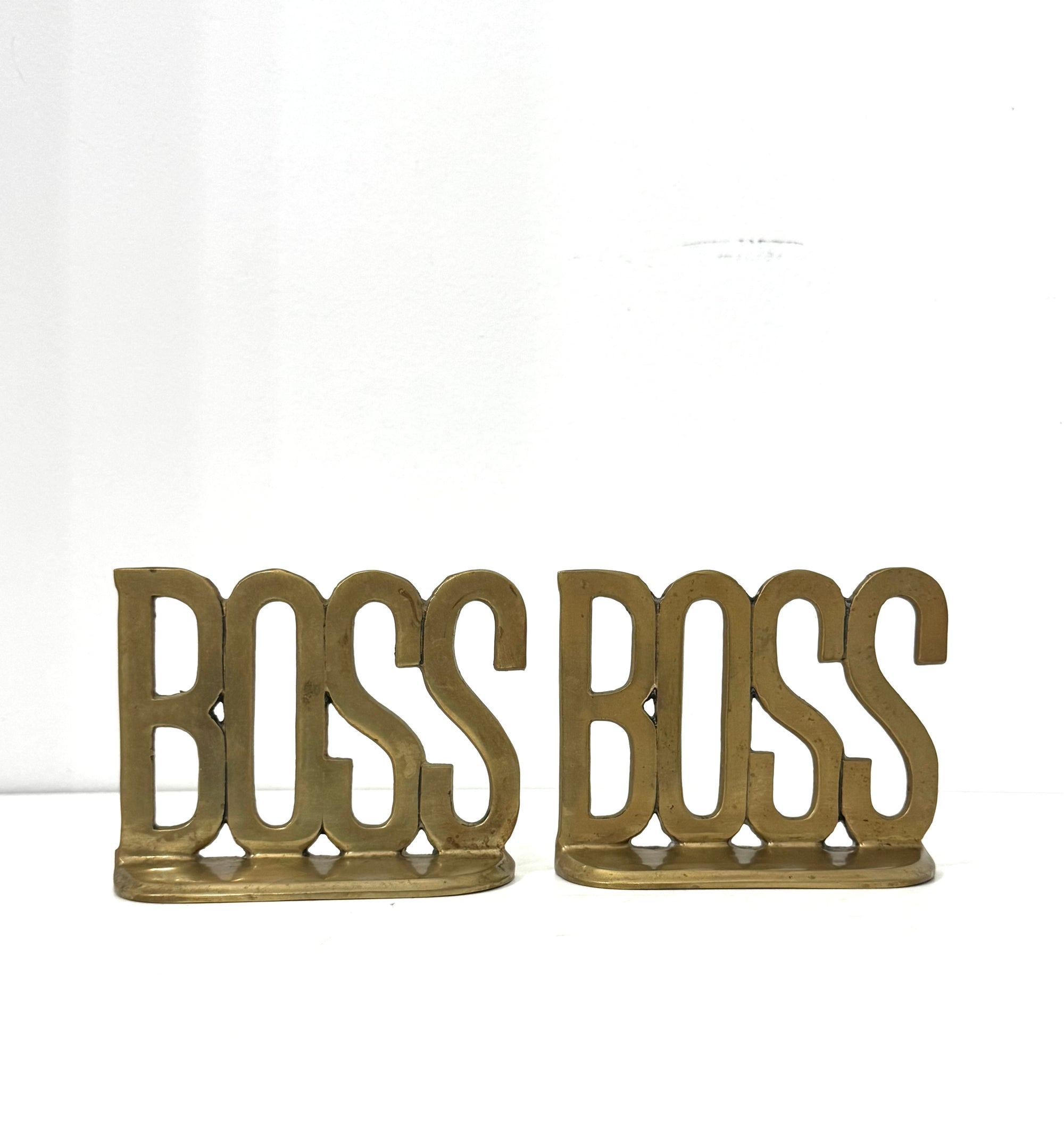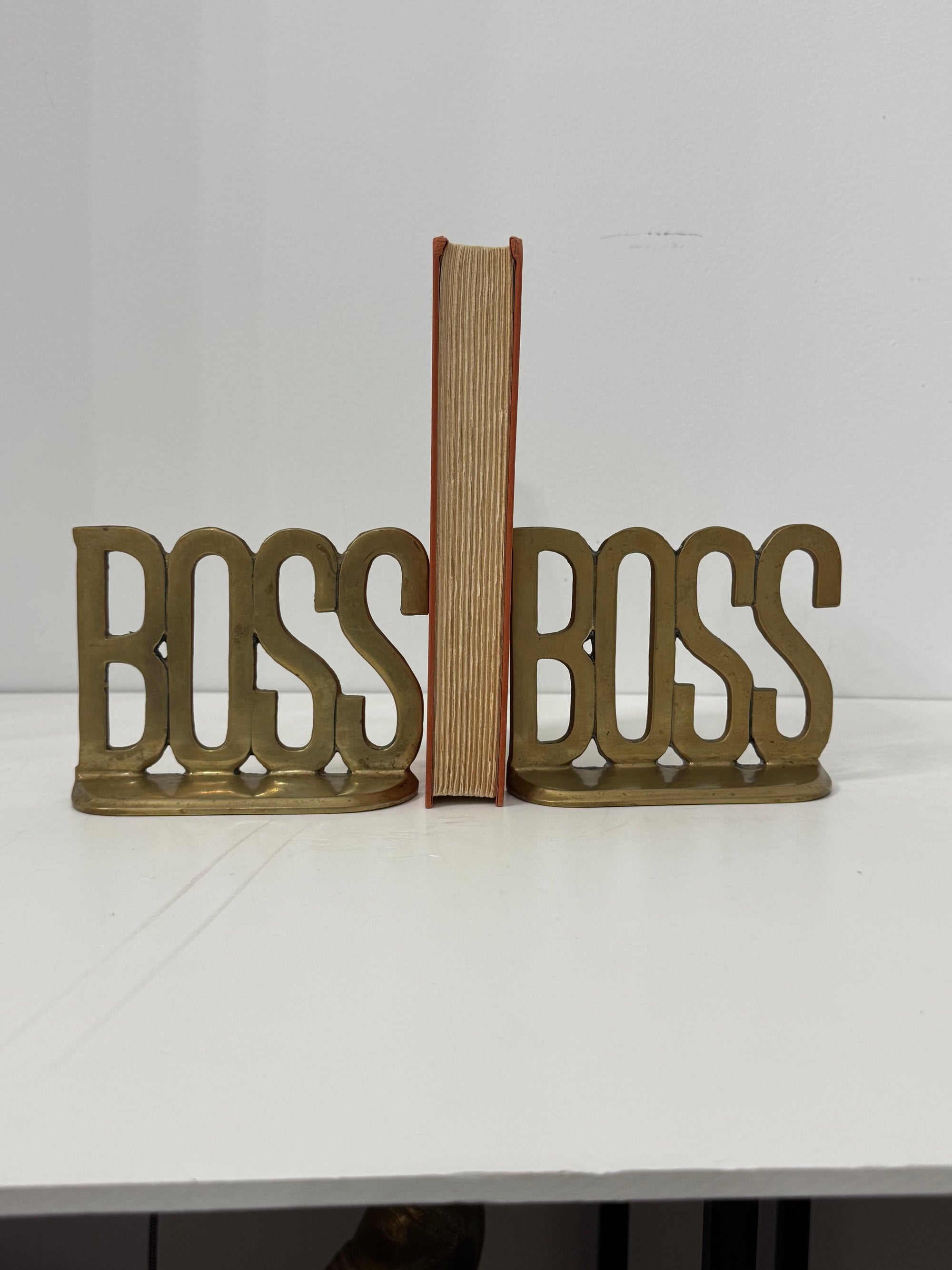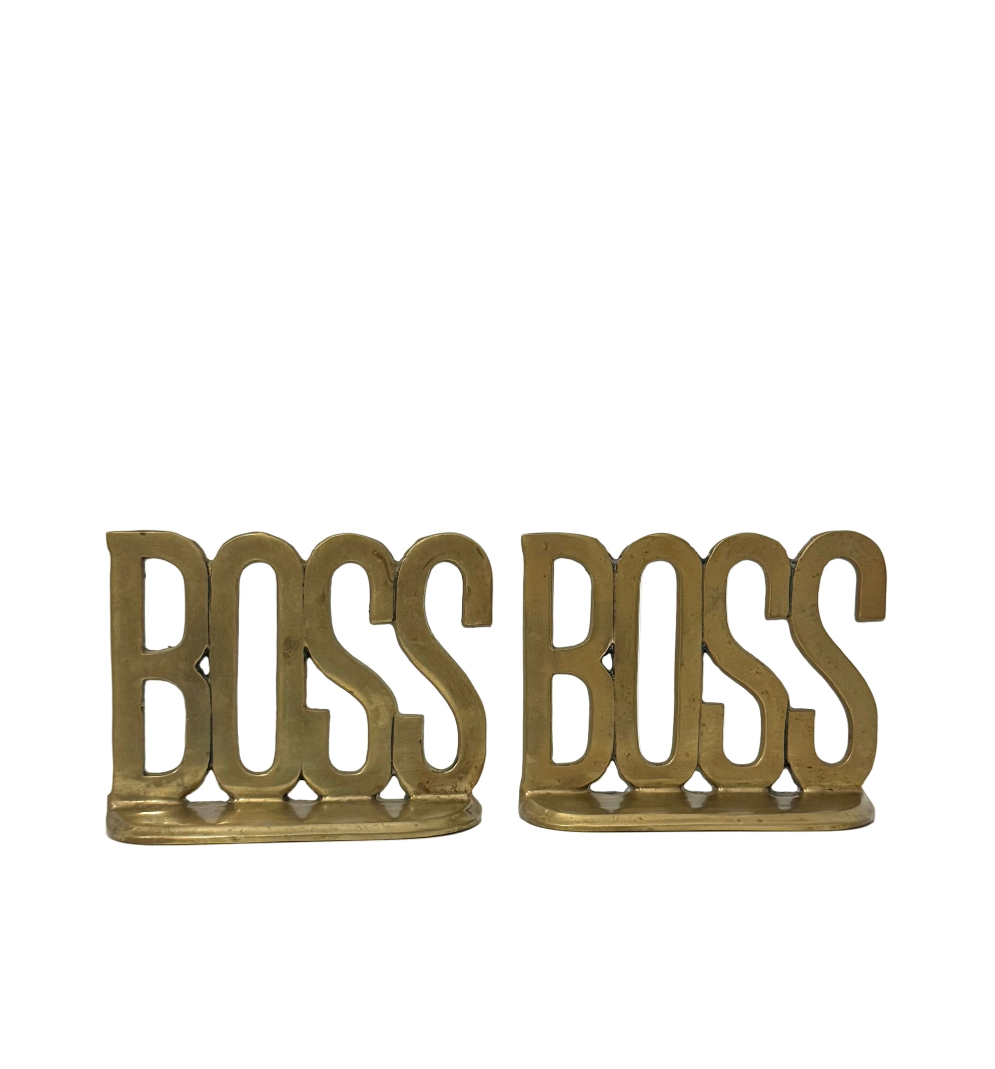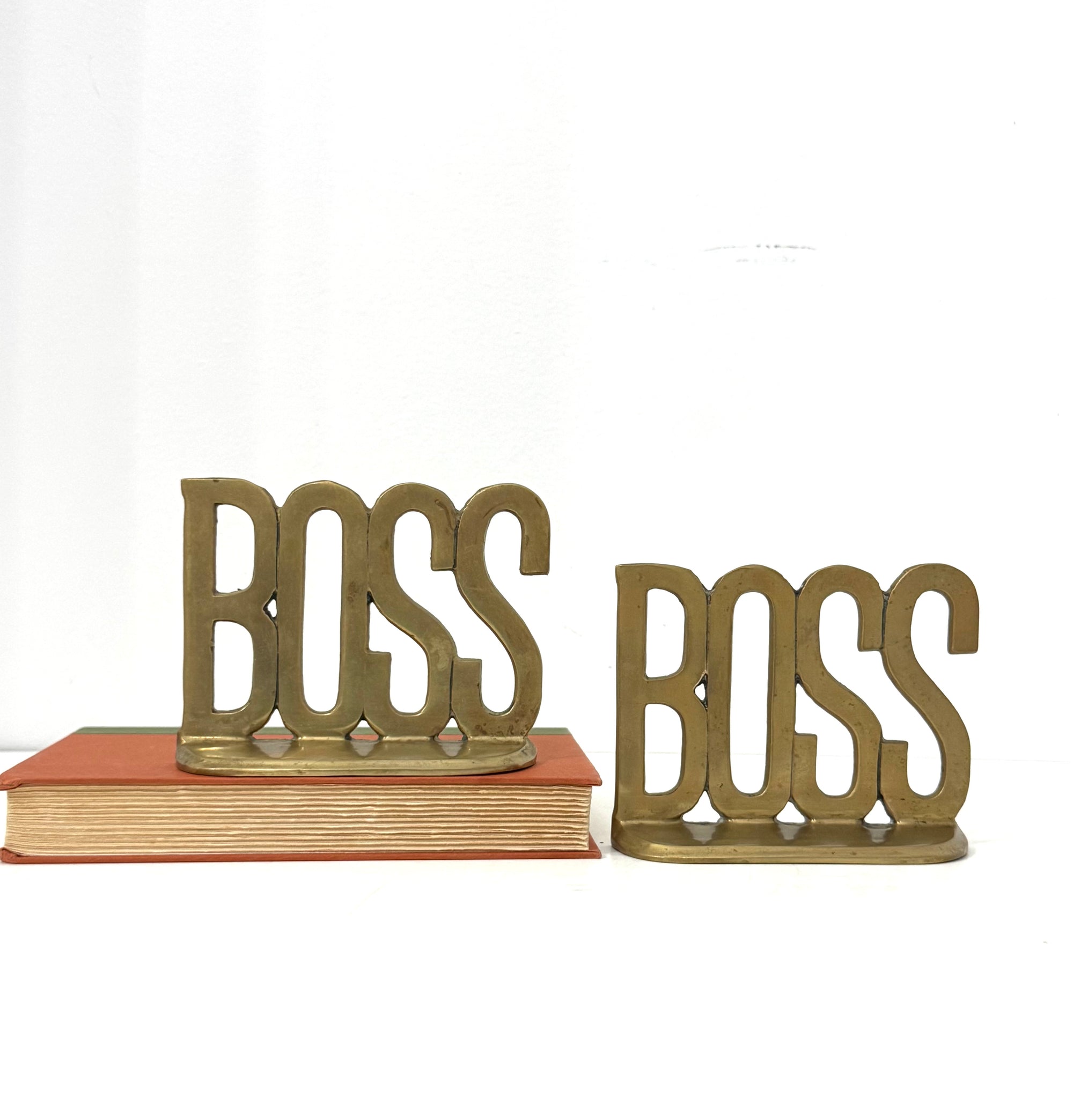 Vintage Brass “BOSS” Bookends | Mid-Century Modern Office Decor
