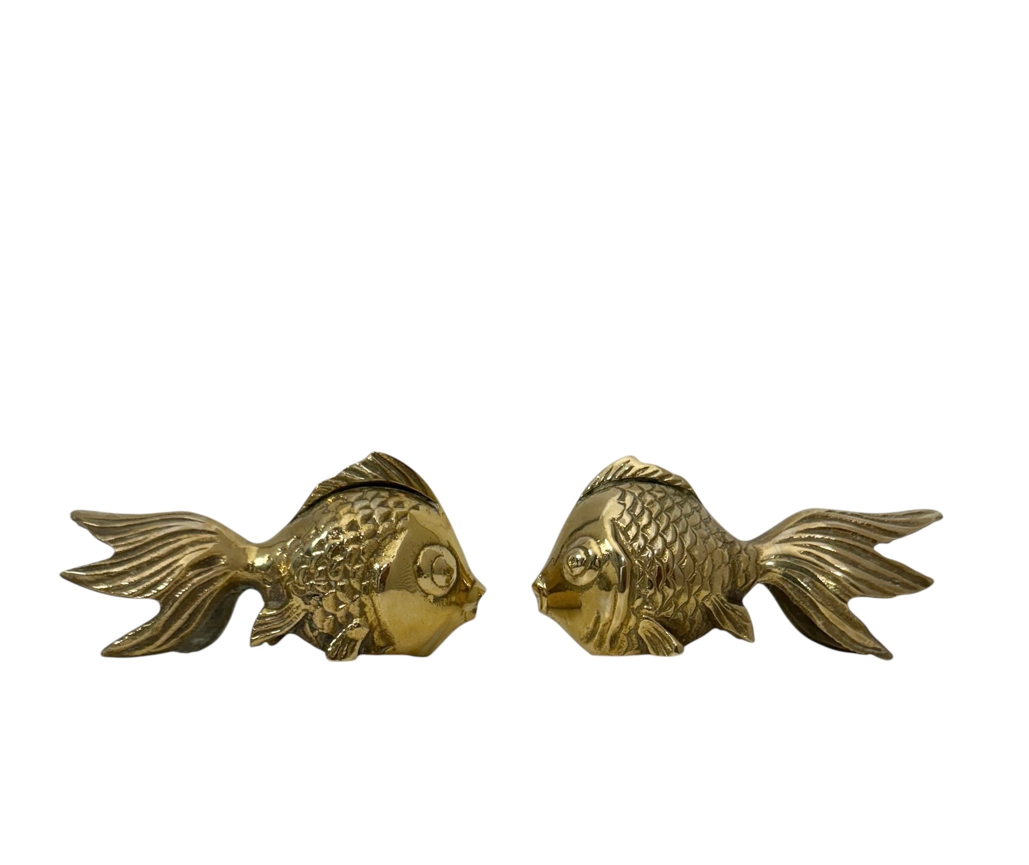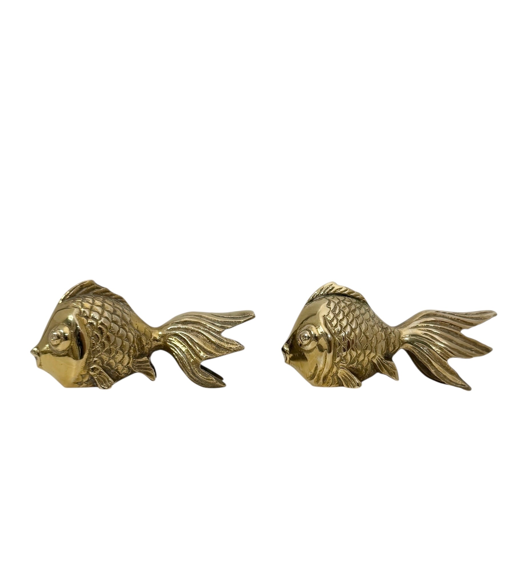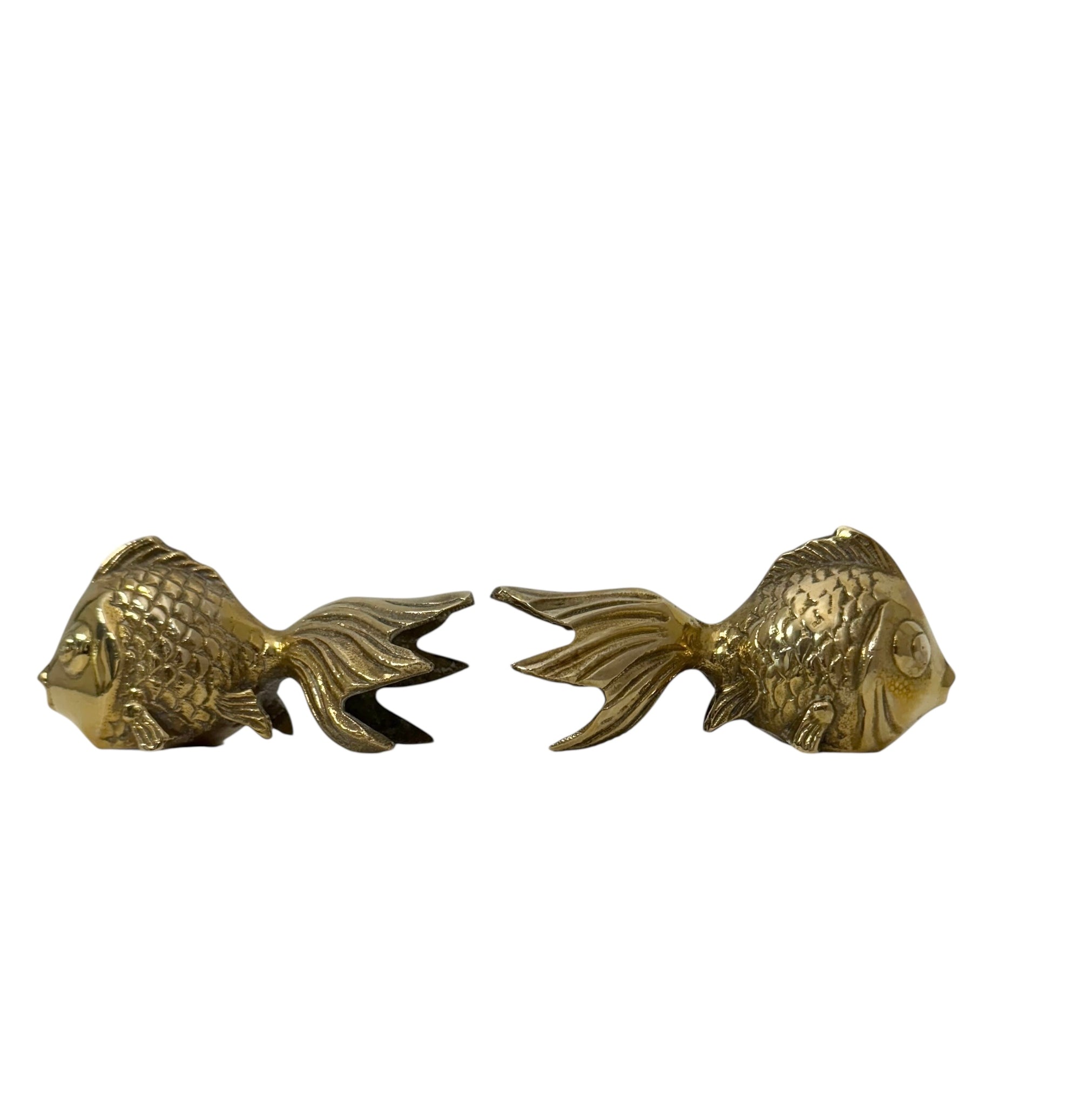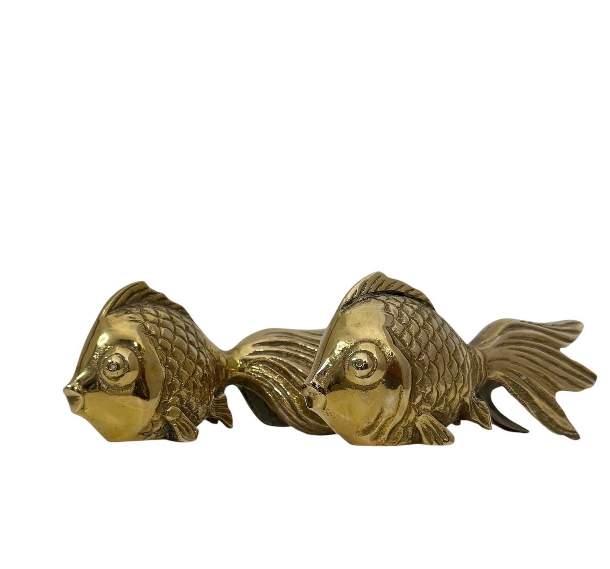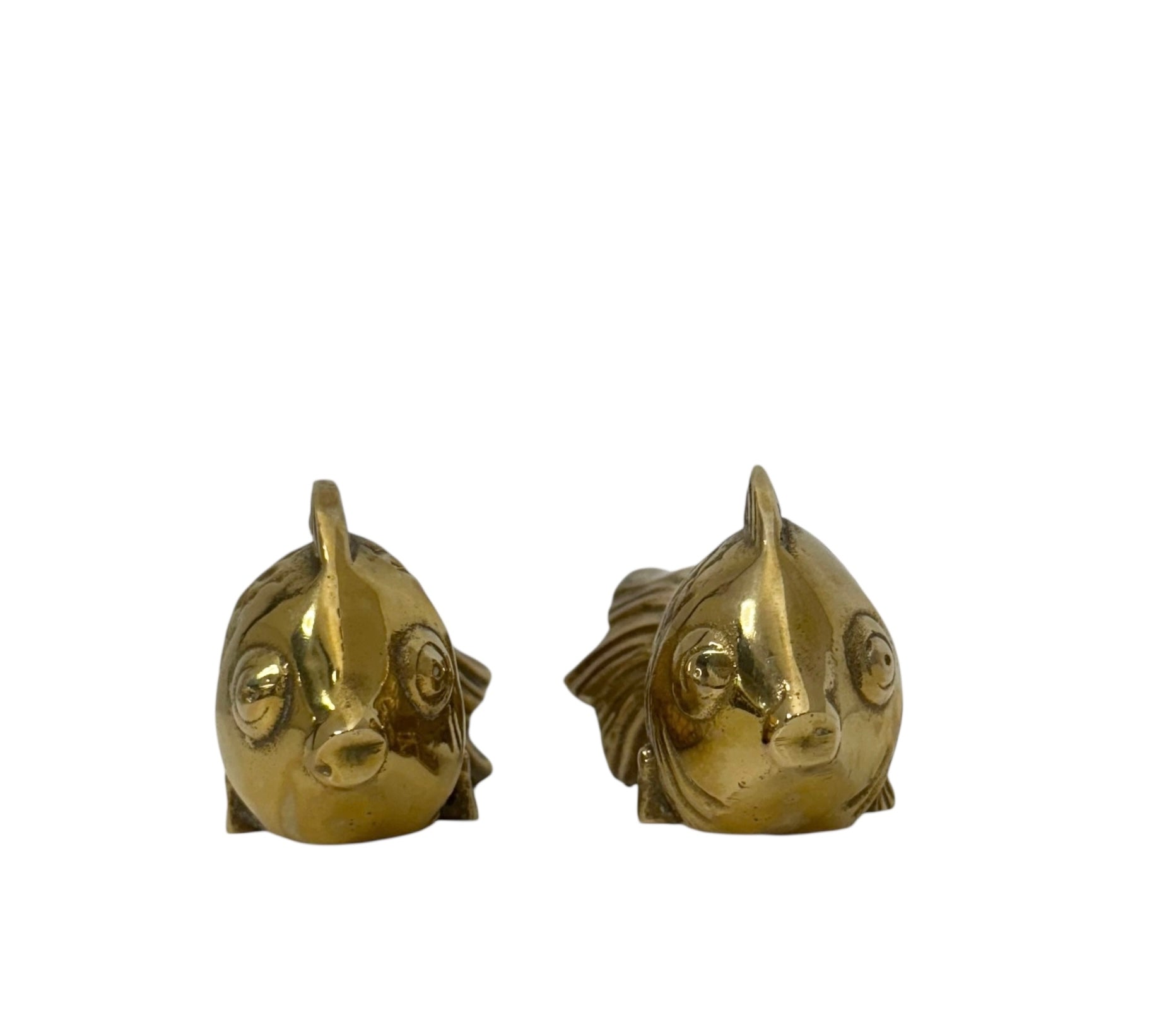 Vintage Brass Twin Fish Figurines – Mid-Century Modern Ocean-Inspired Pair