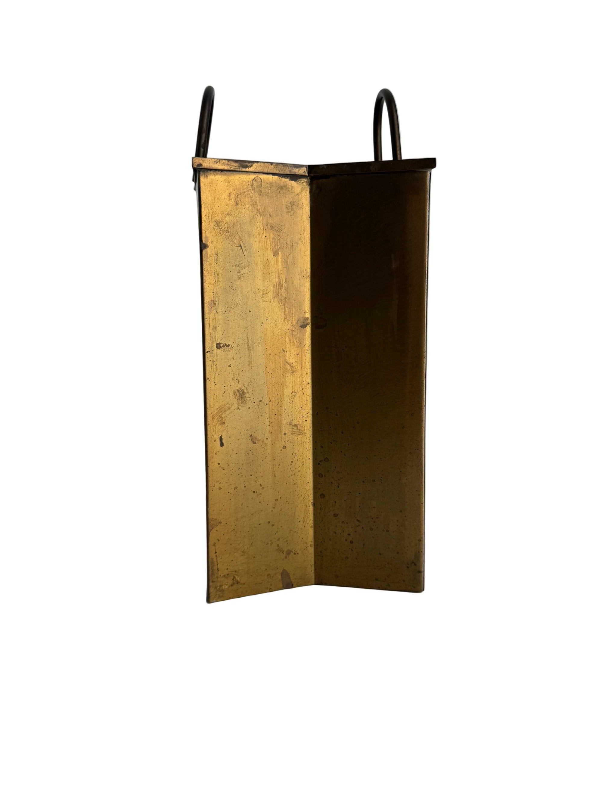 Vintage Brass “Shopping Bag” Magazine Holder — Mid-Century Modern Minimalist Design-Made in Italy