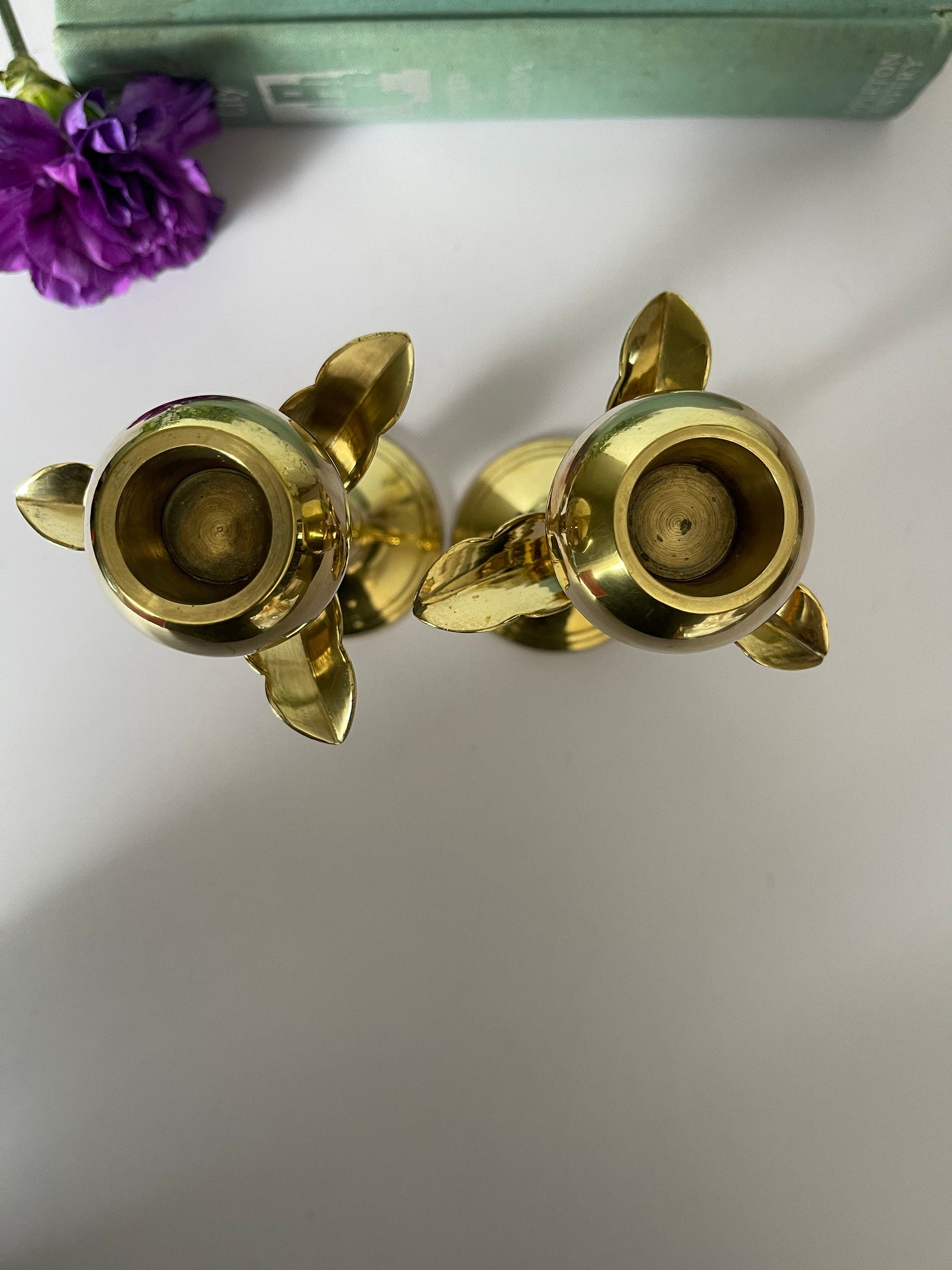 Vintage Brass Turtle Candlestick Holders- A Pair