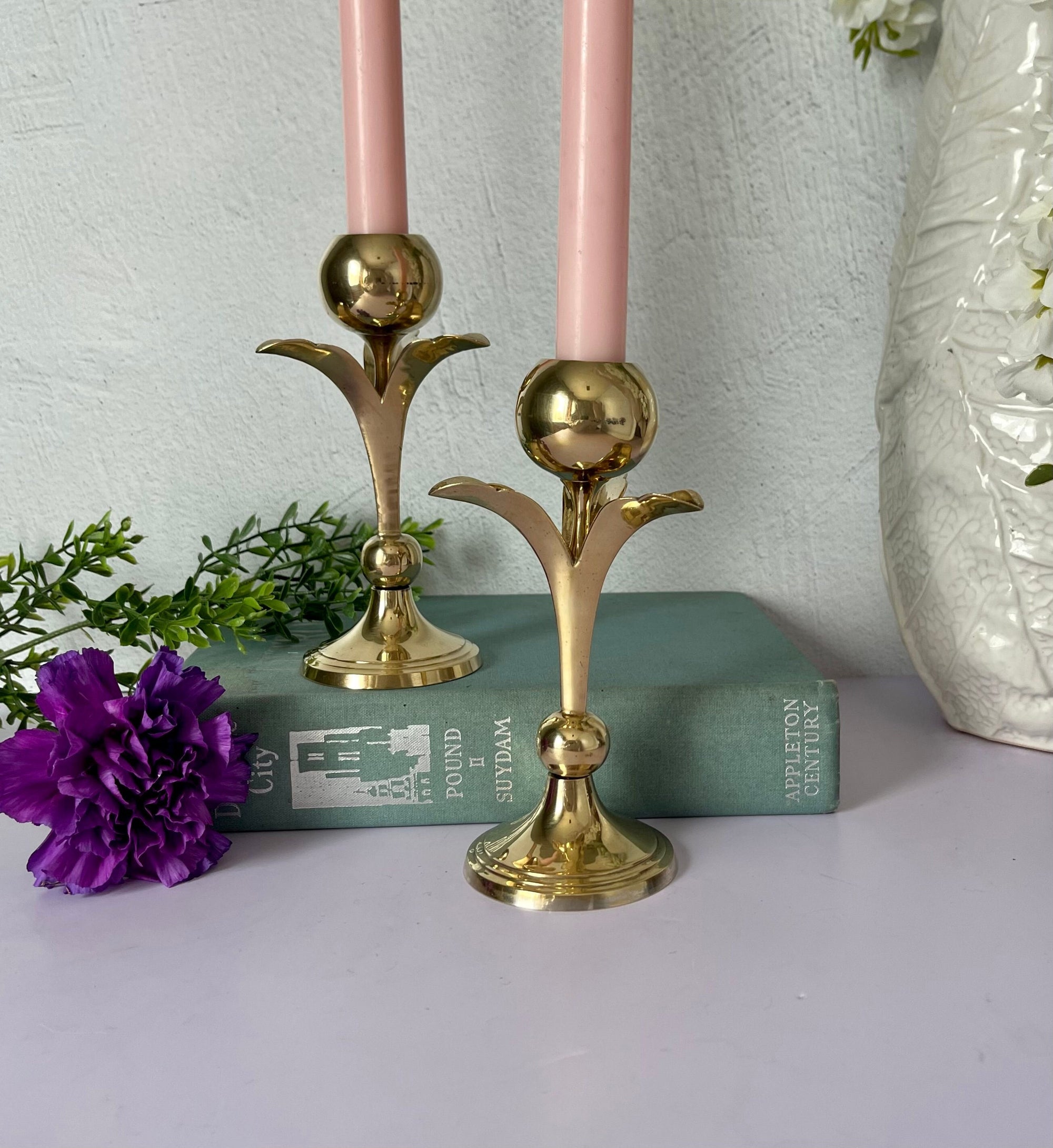 Vintage Brass Turtle Candlestick Holders- A Pair of