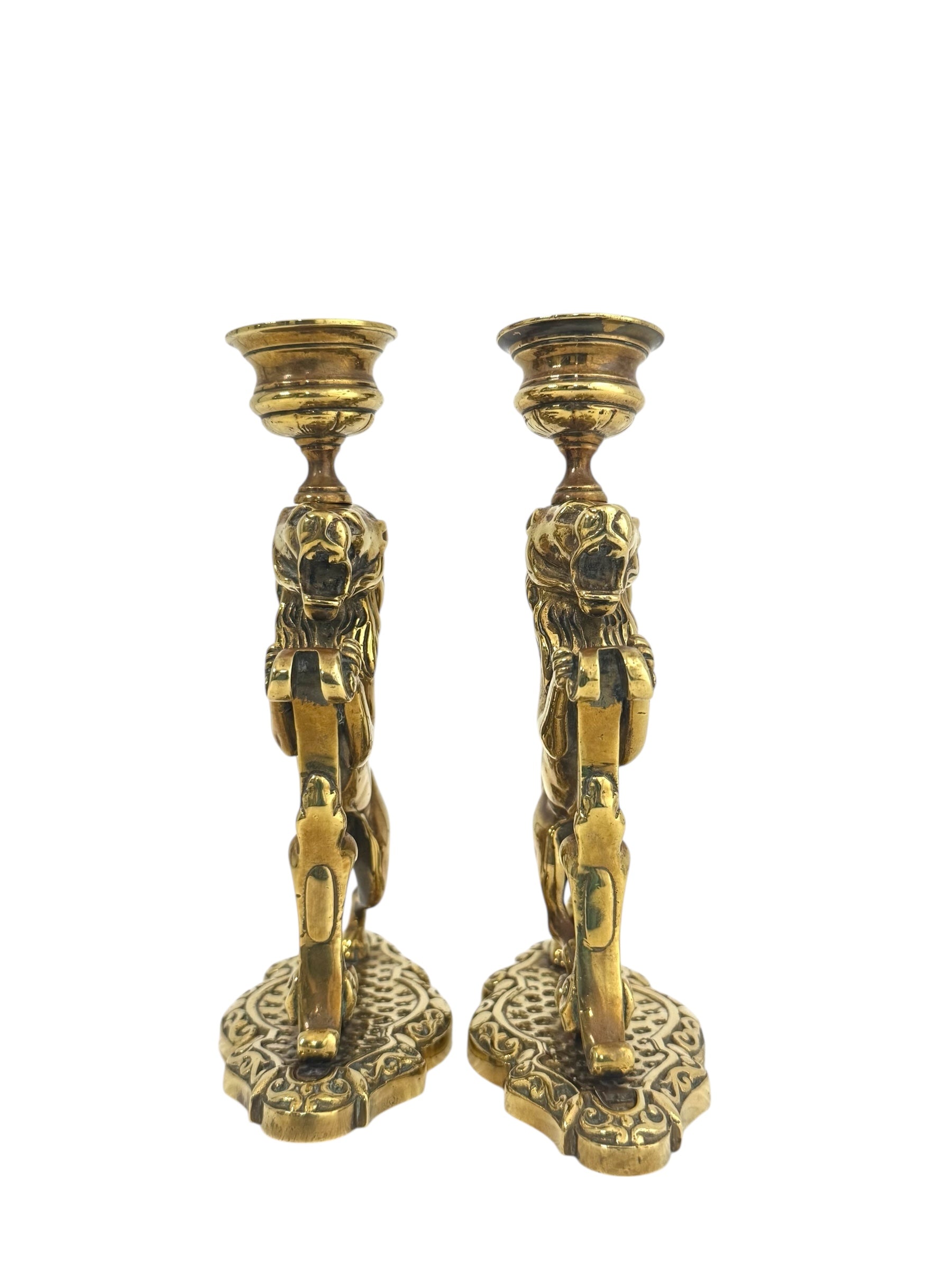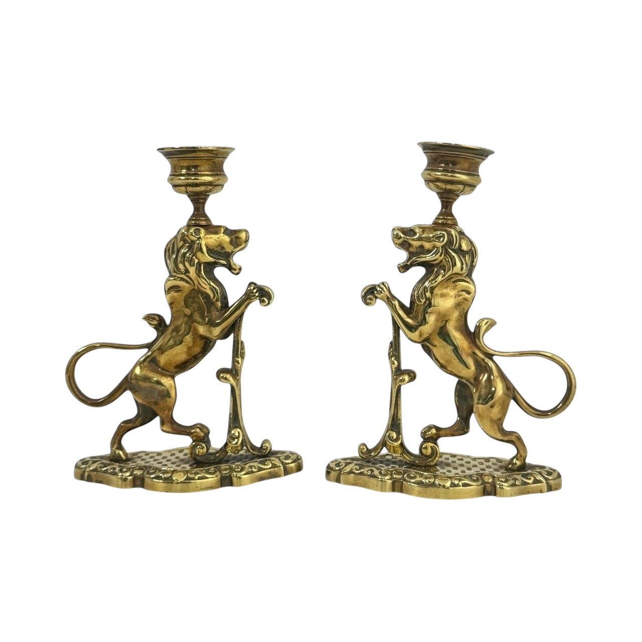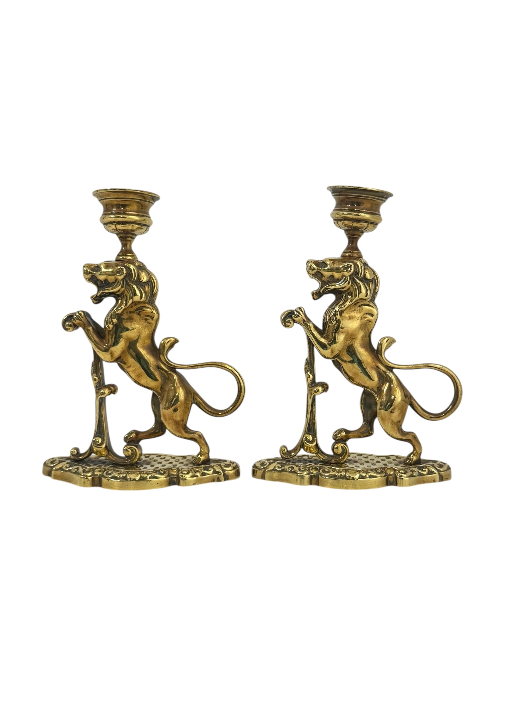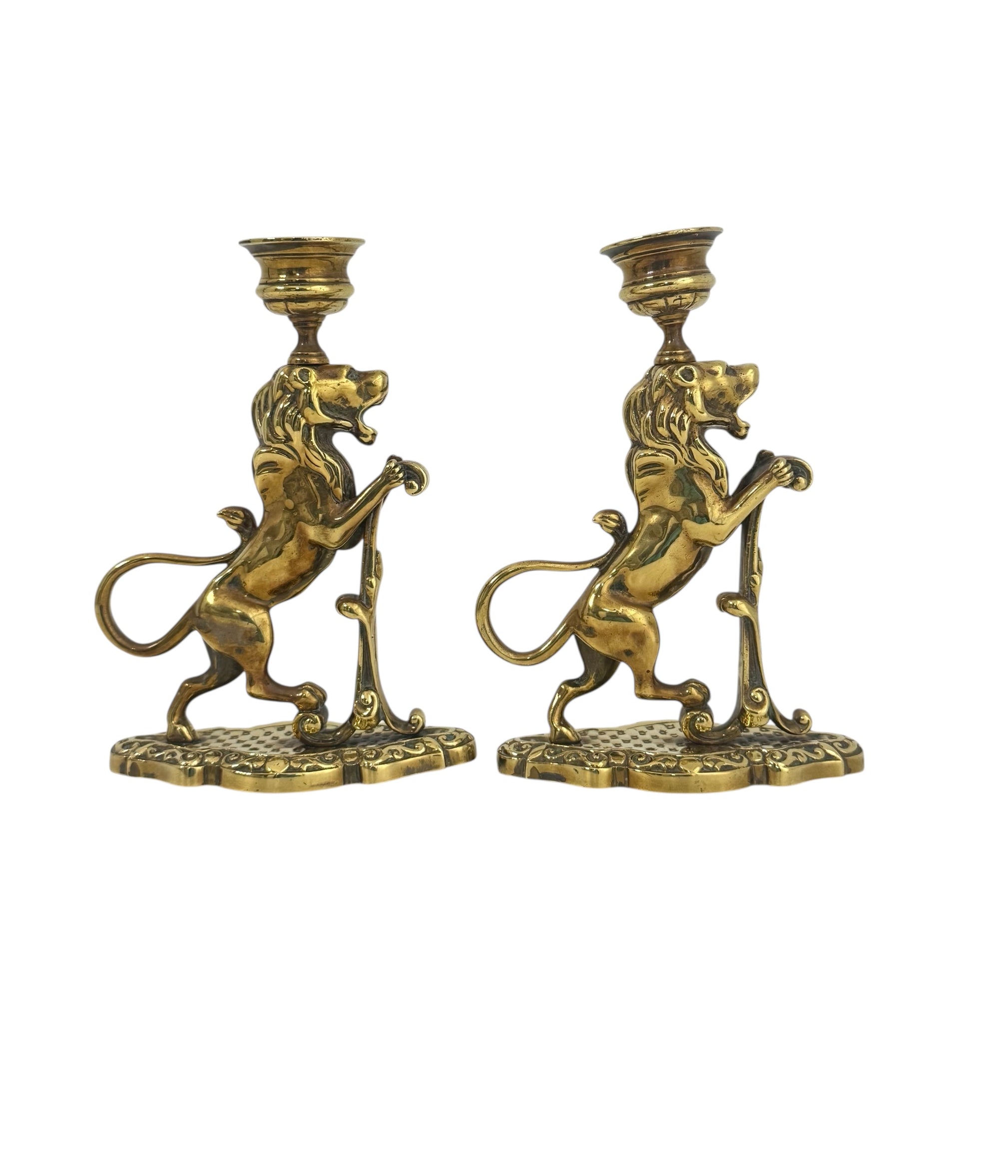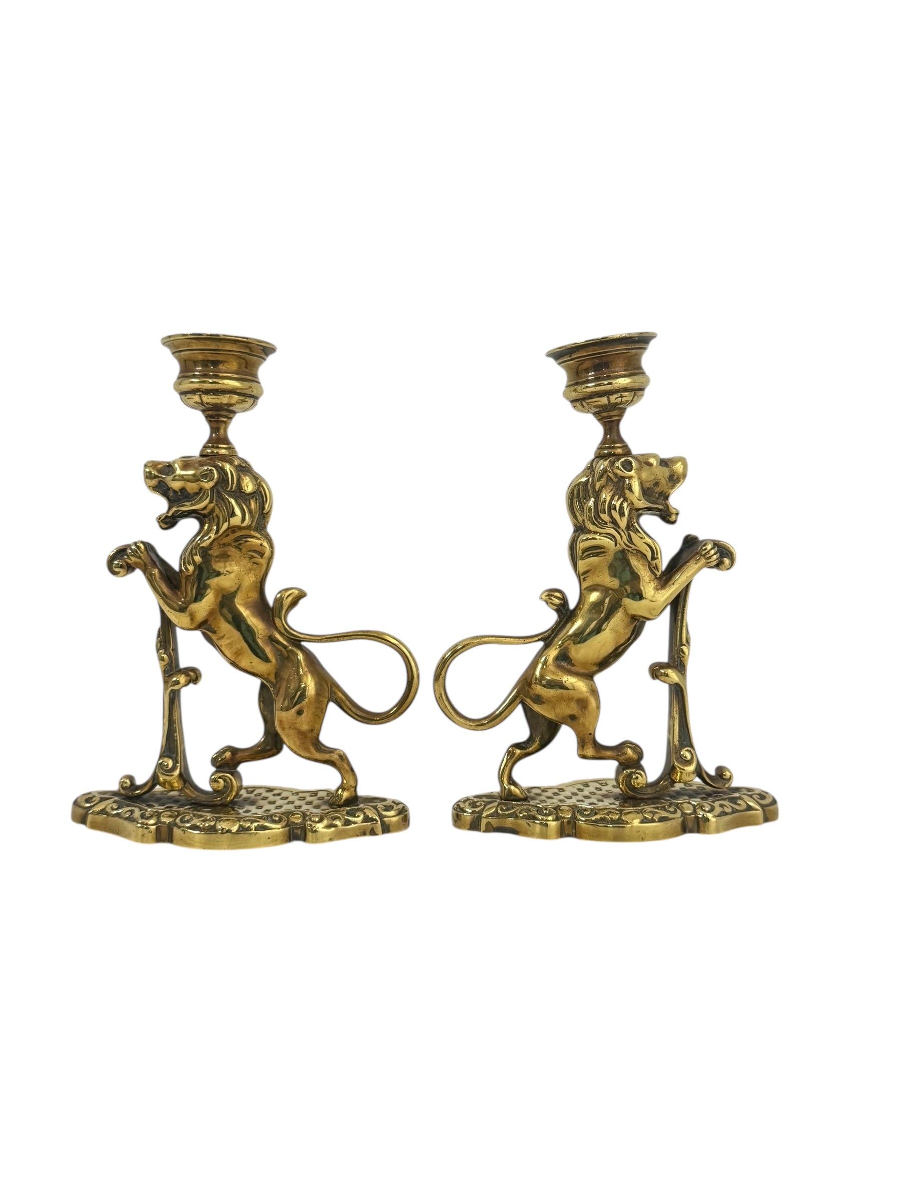 Vintage/Antique Brass Lion Candleholders- A Pair
