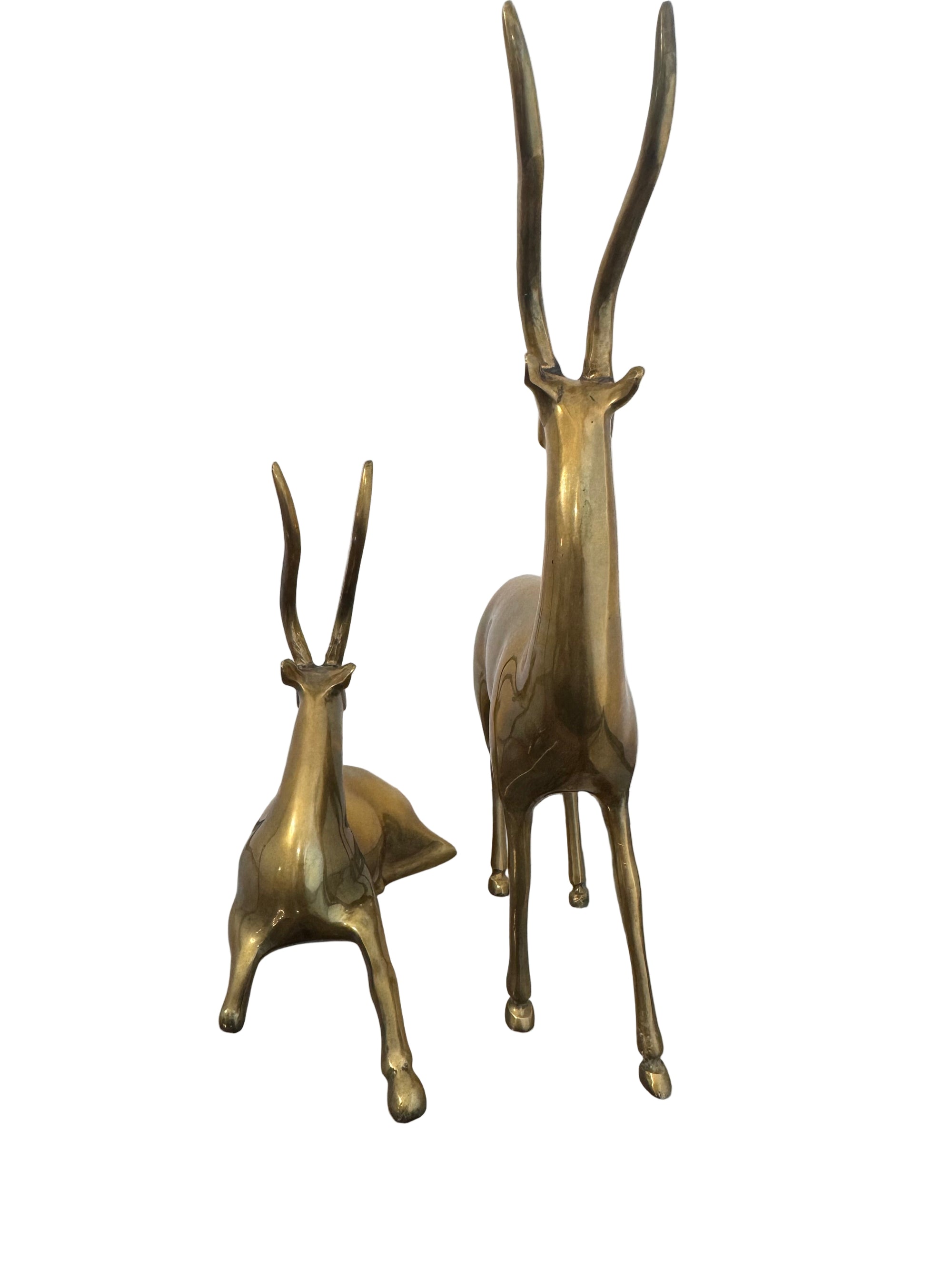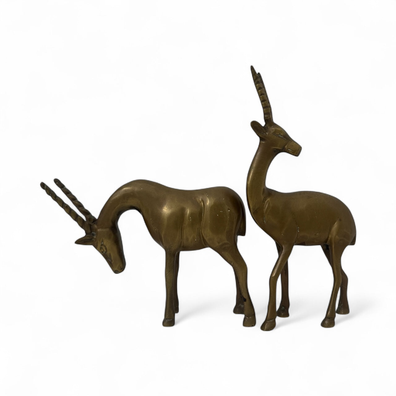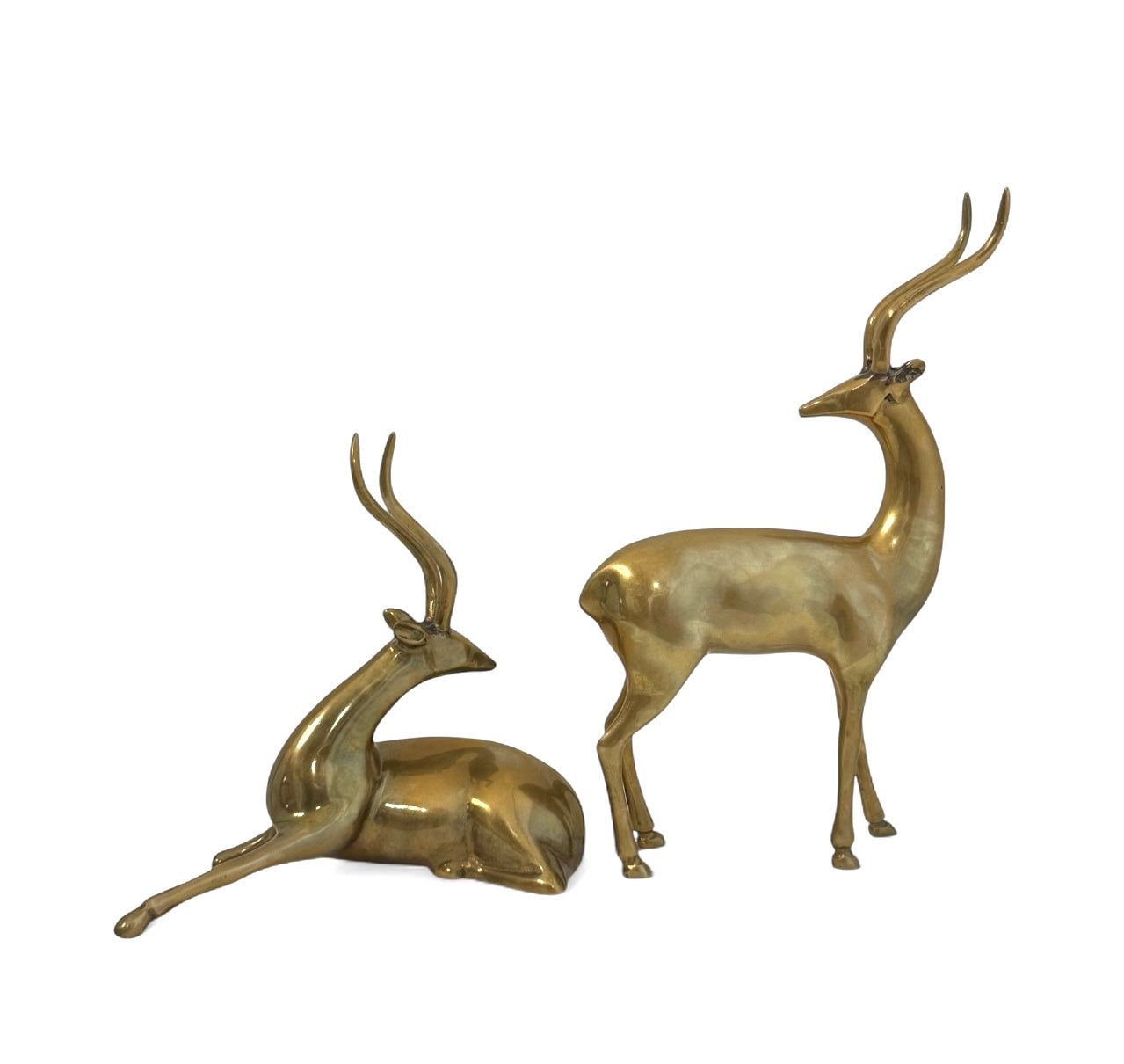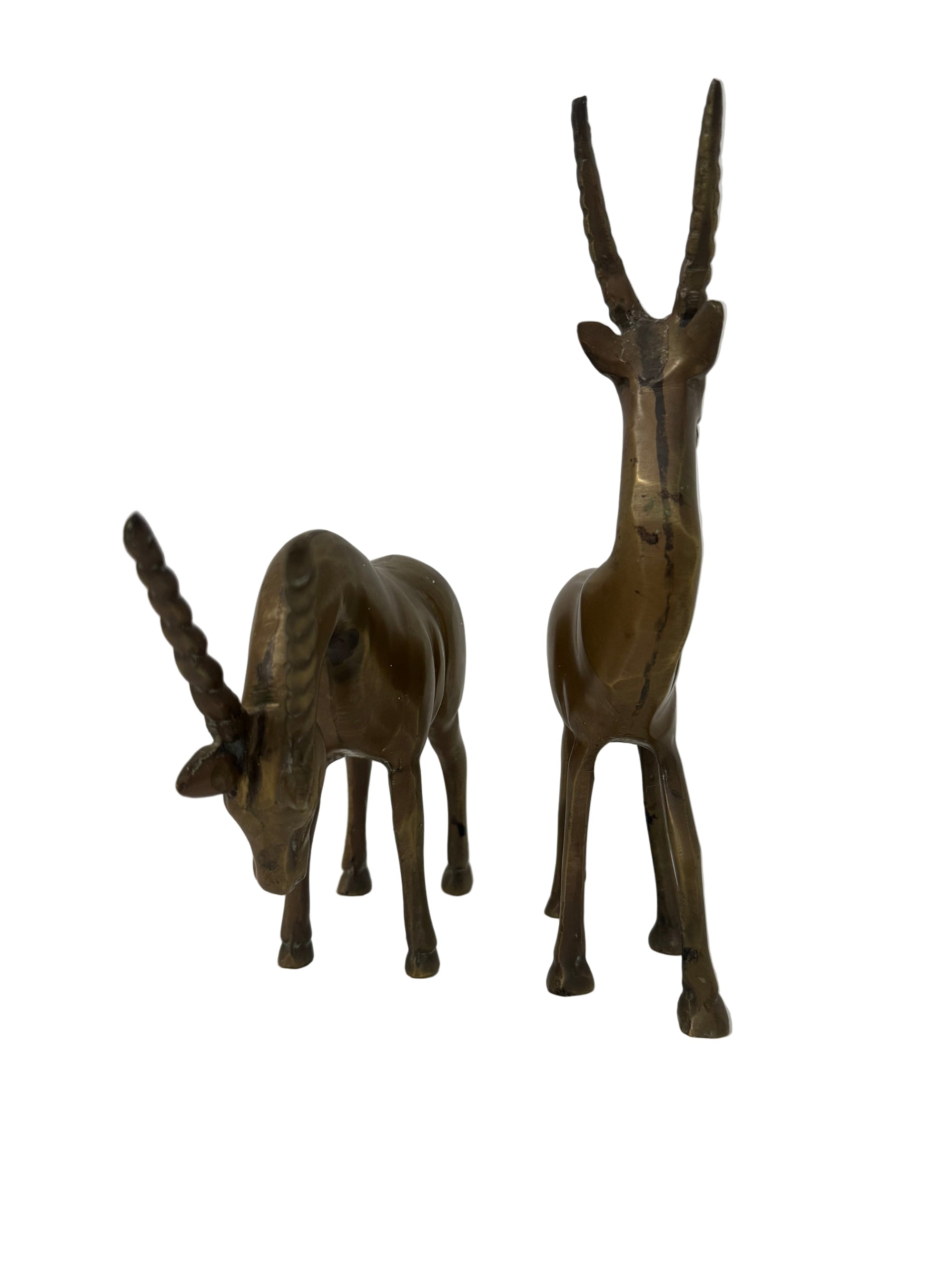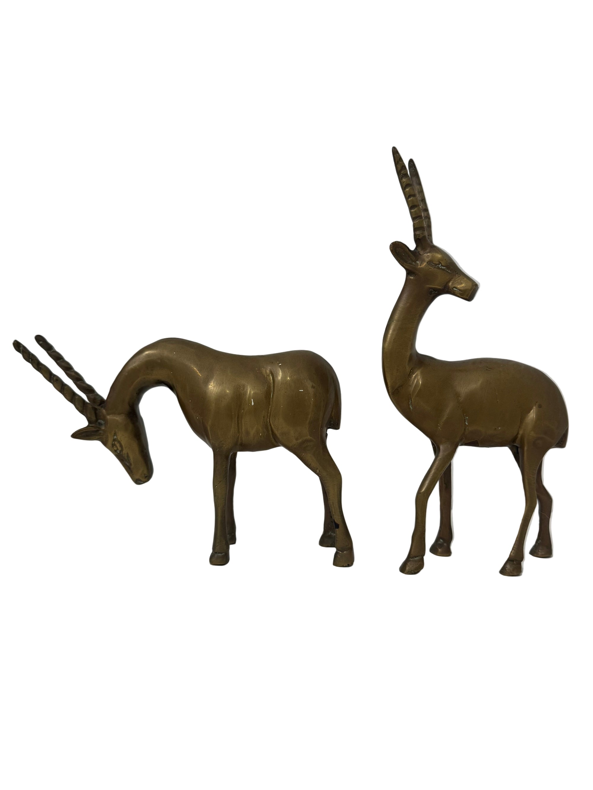 Vintage Mid-Century Brass Antelope Sculptures – Pair