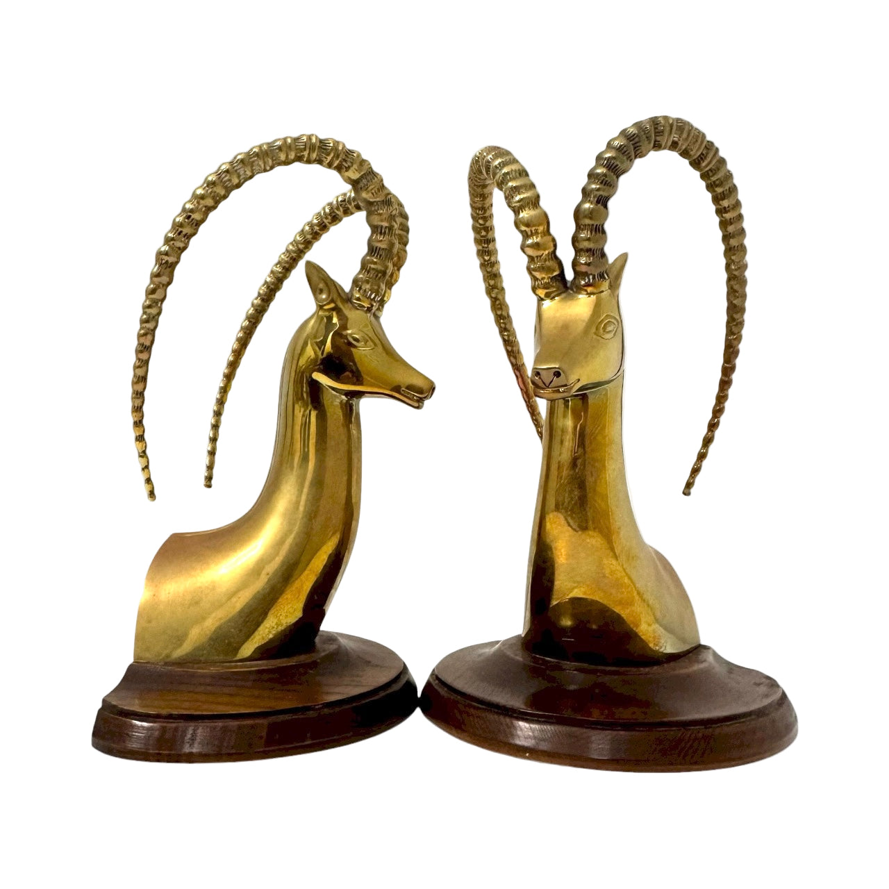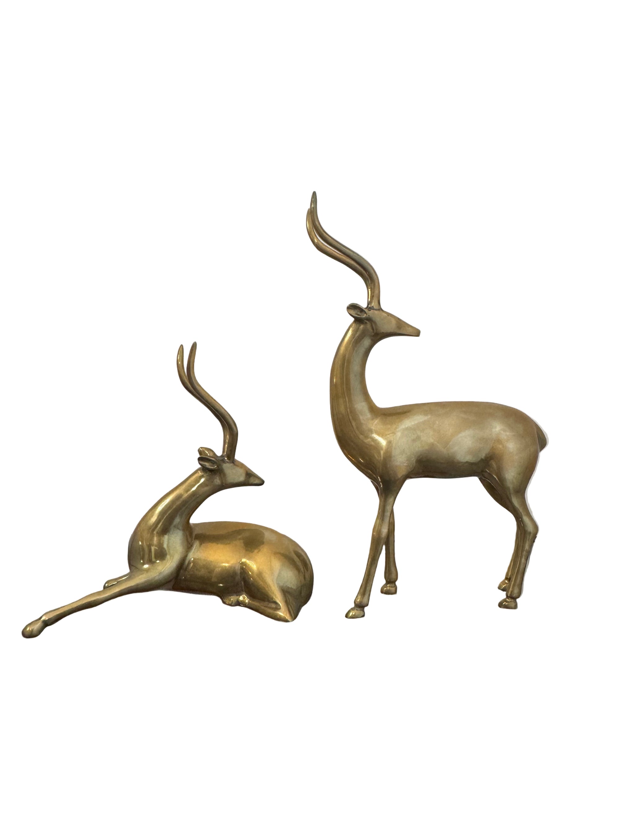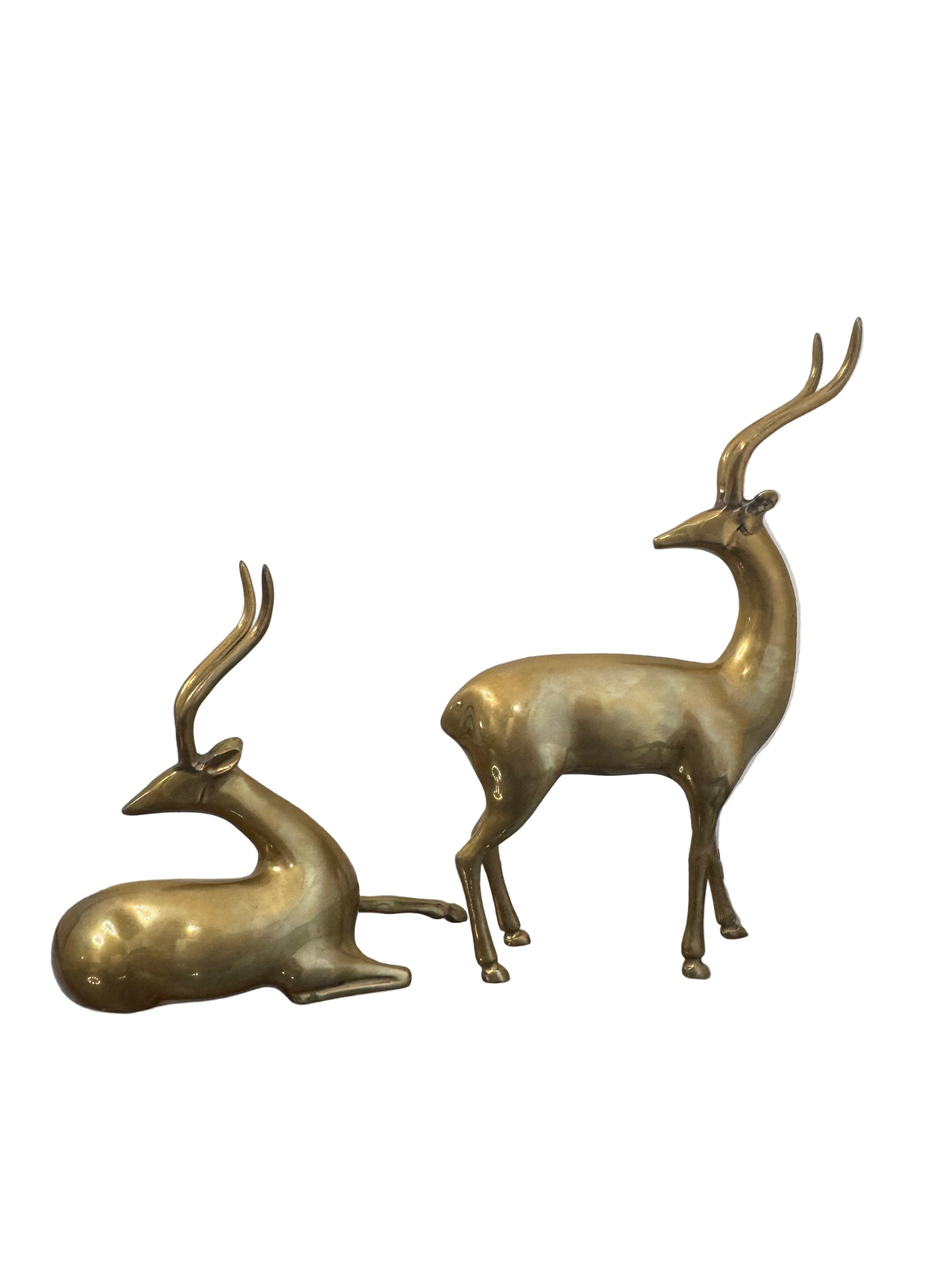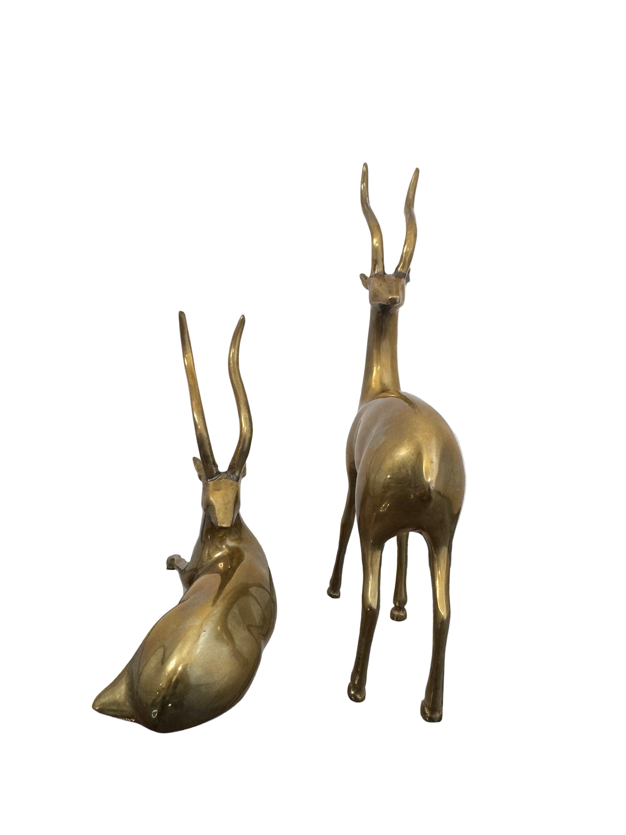 Vintage Mid-Century Brass Antelope Sculptures – Pair