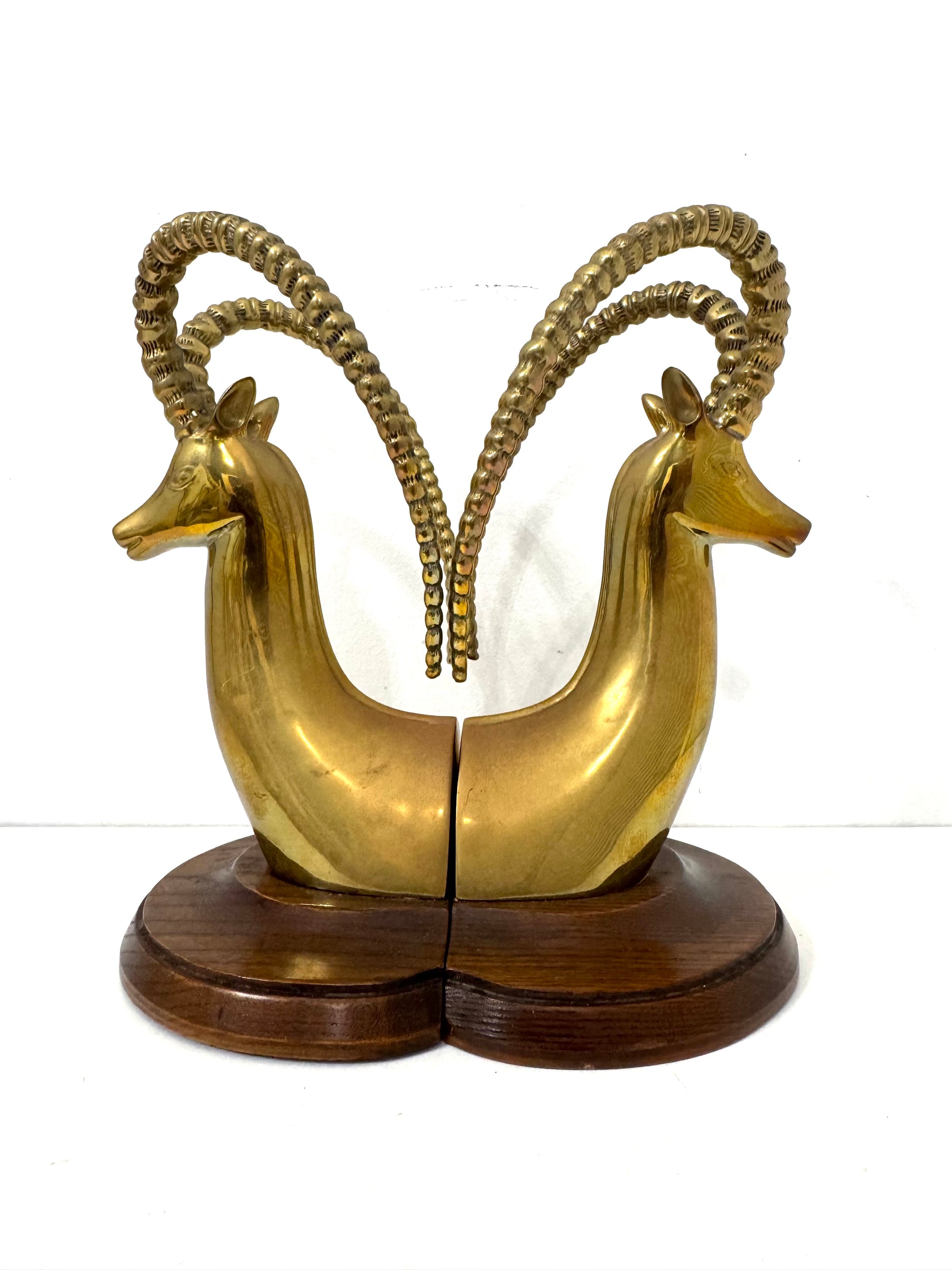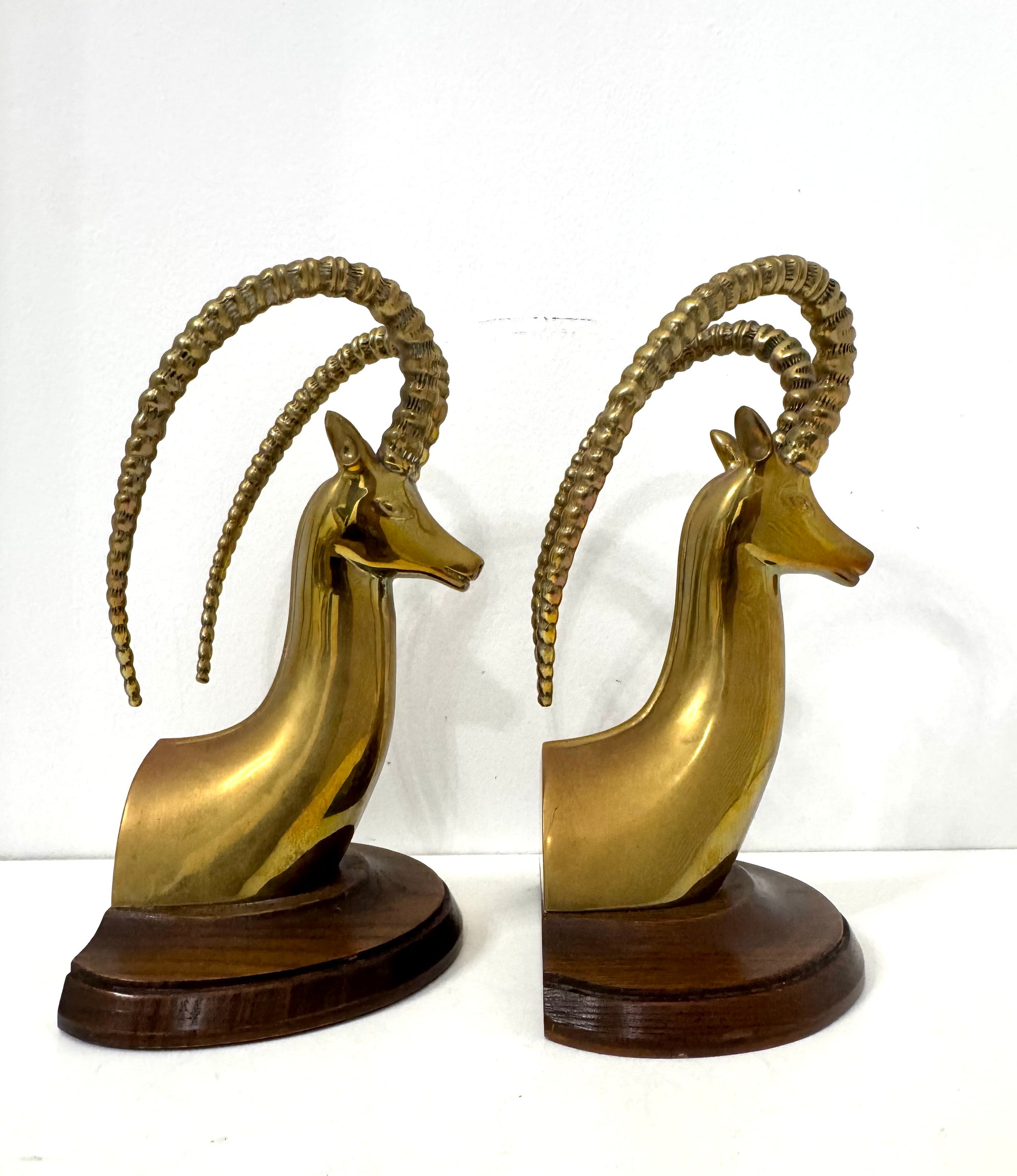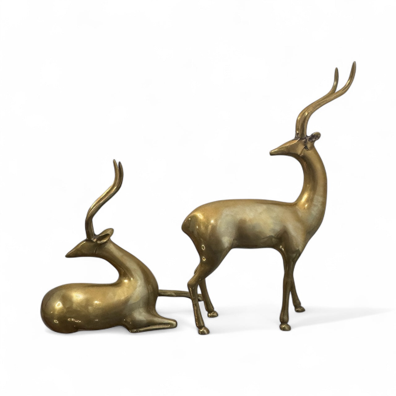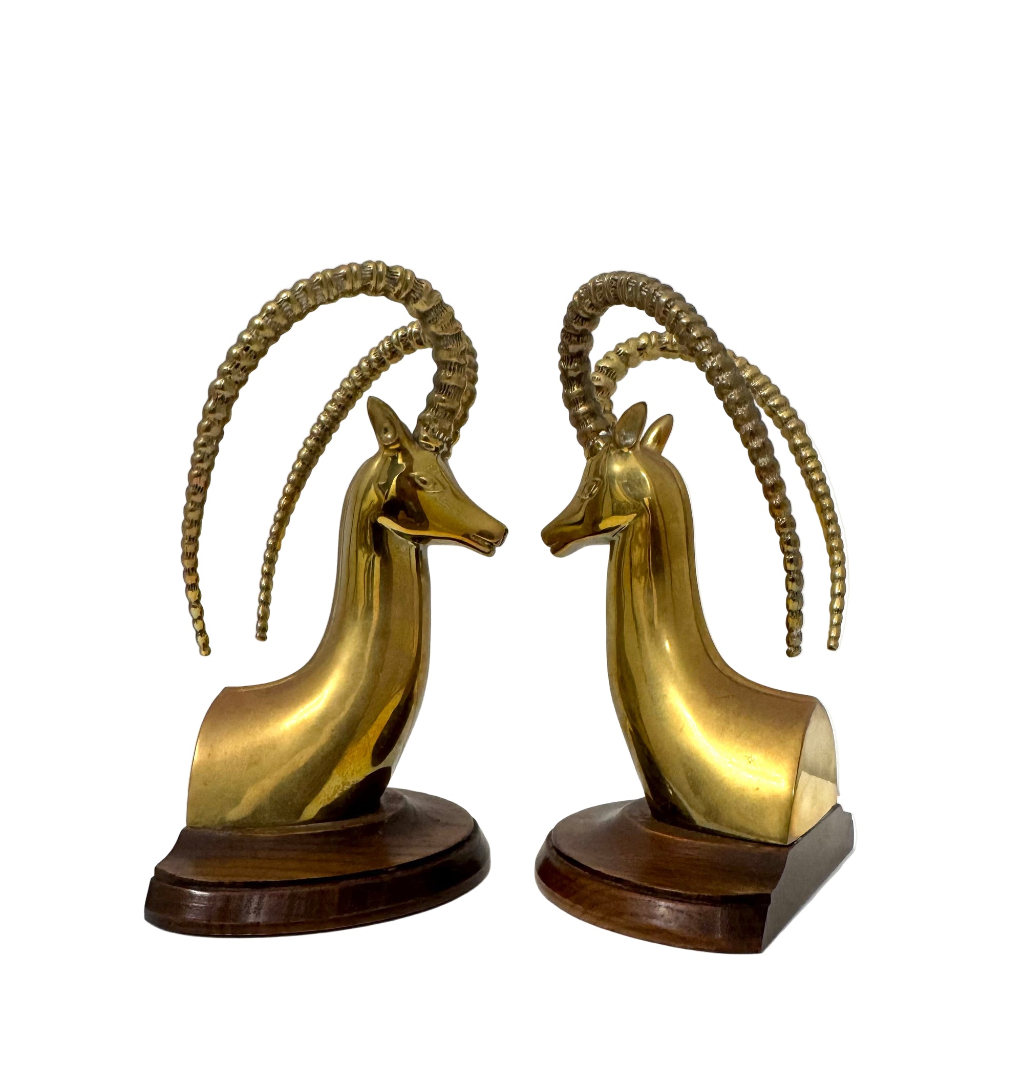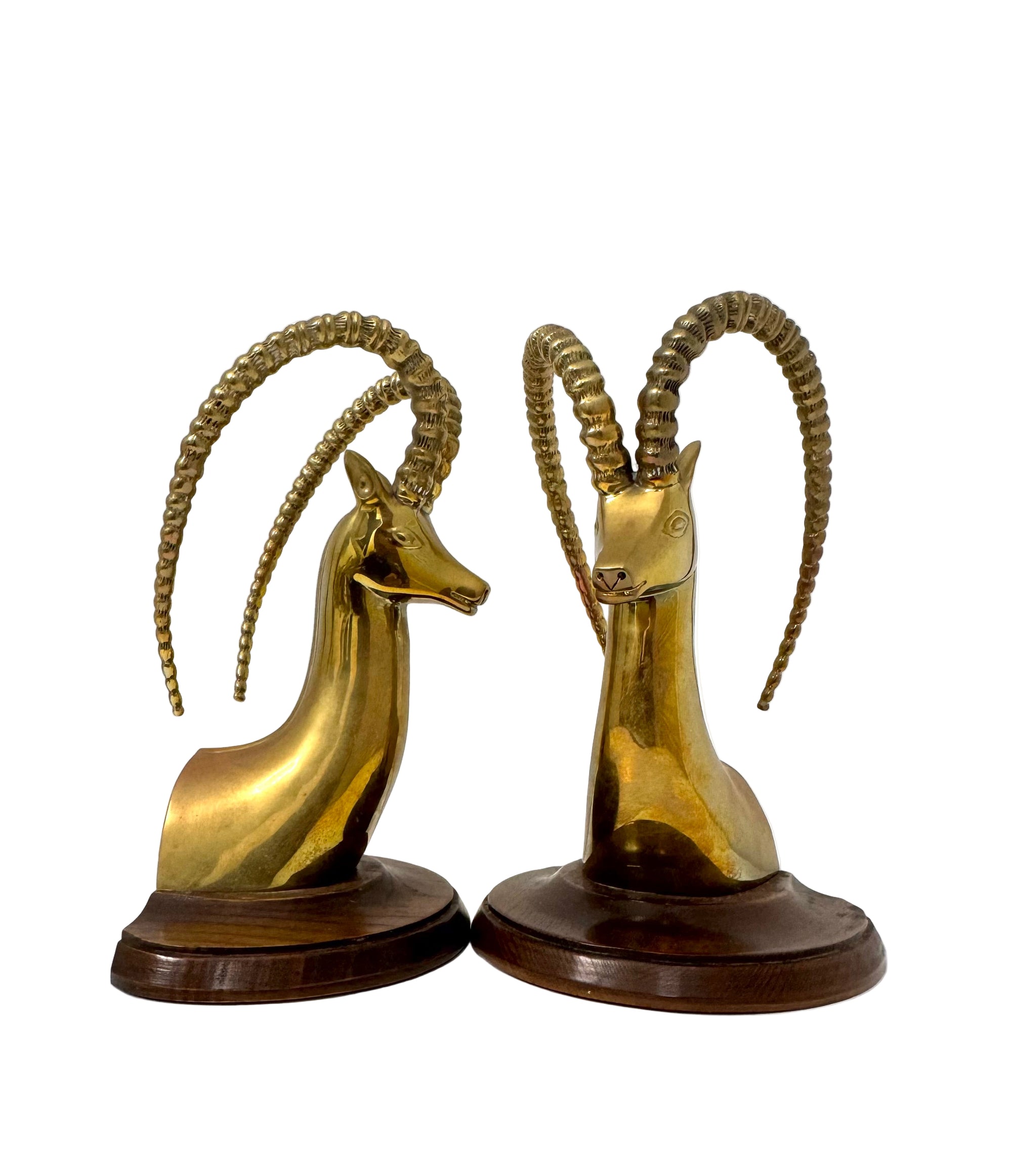 Vintage Mid-Century Brass Antelope Sculptures – Pair