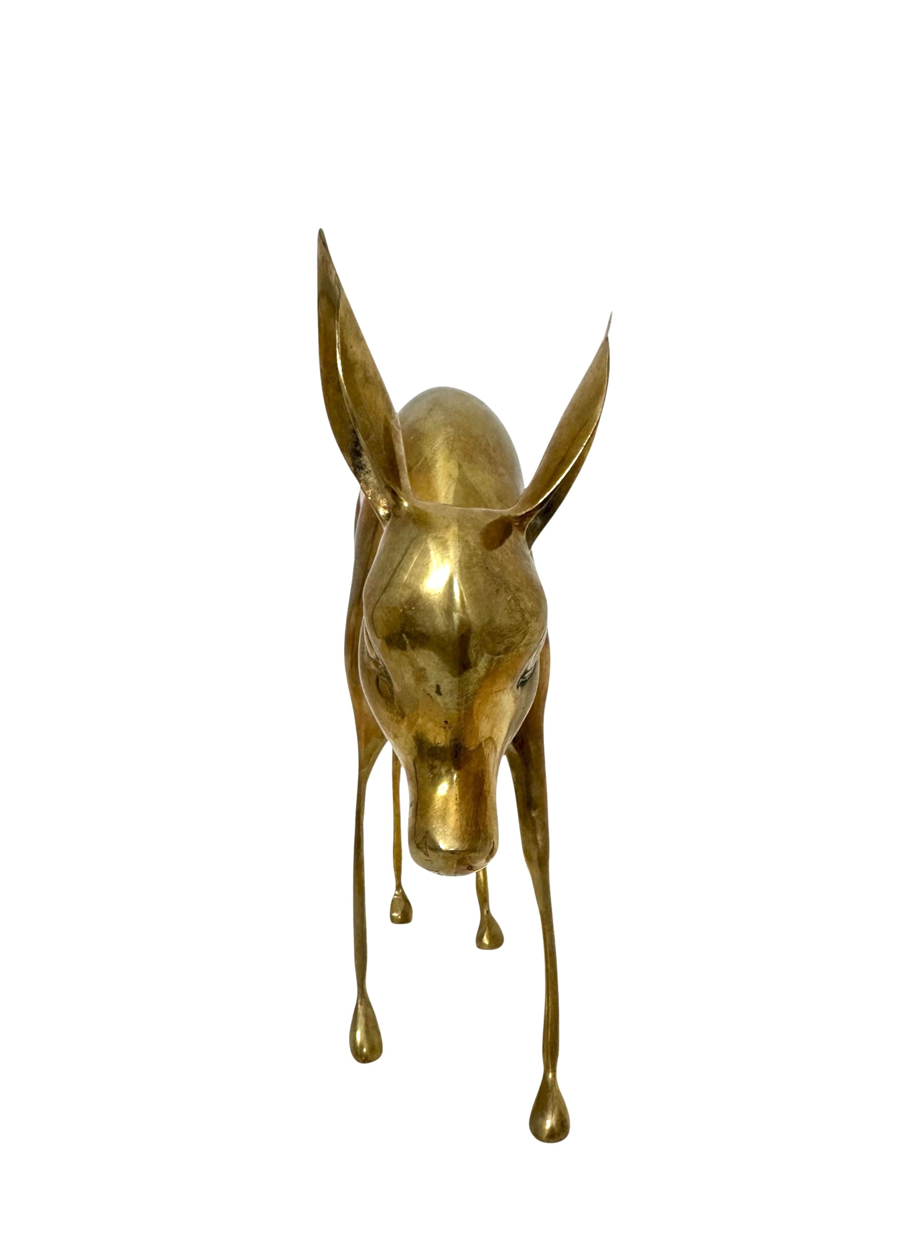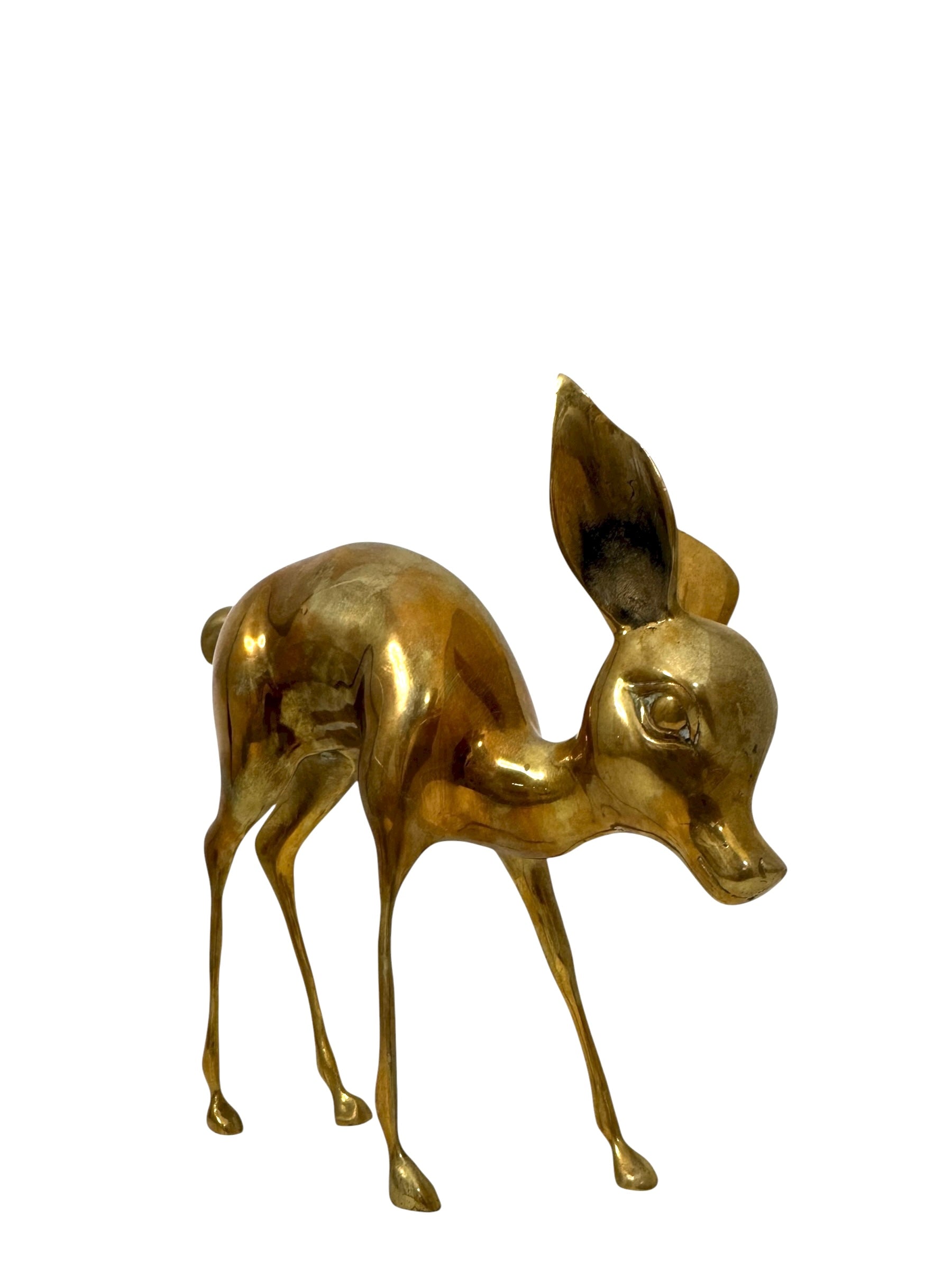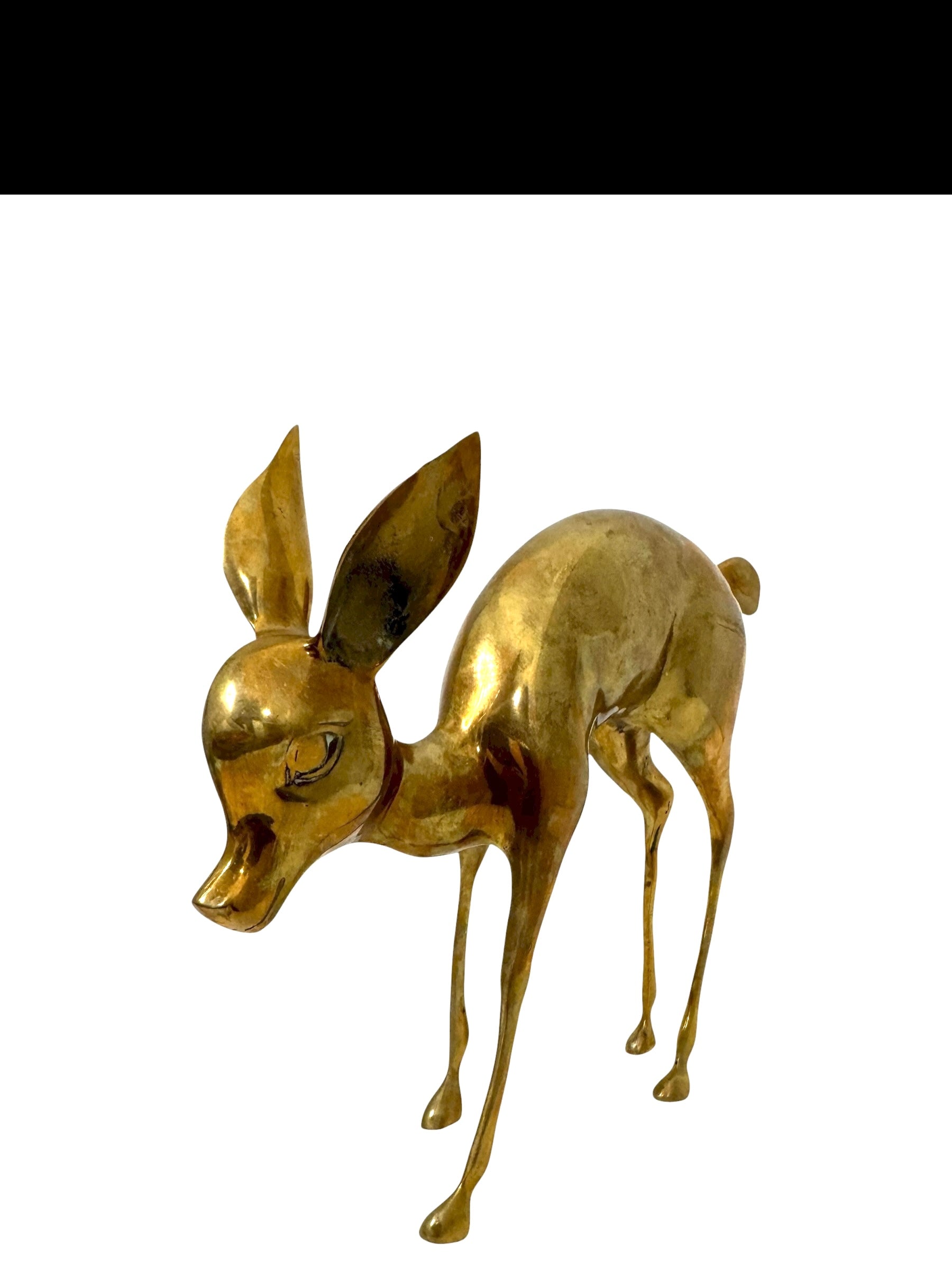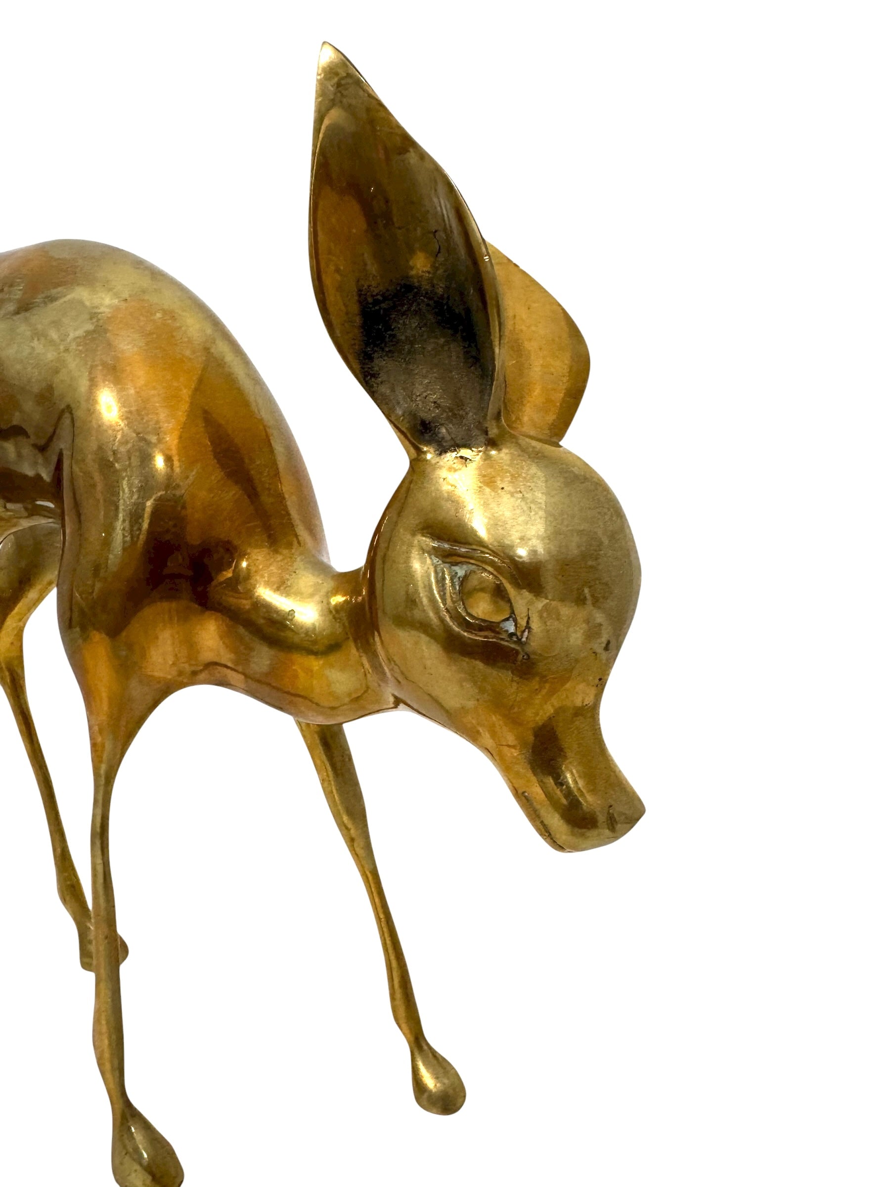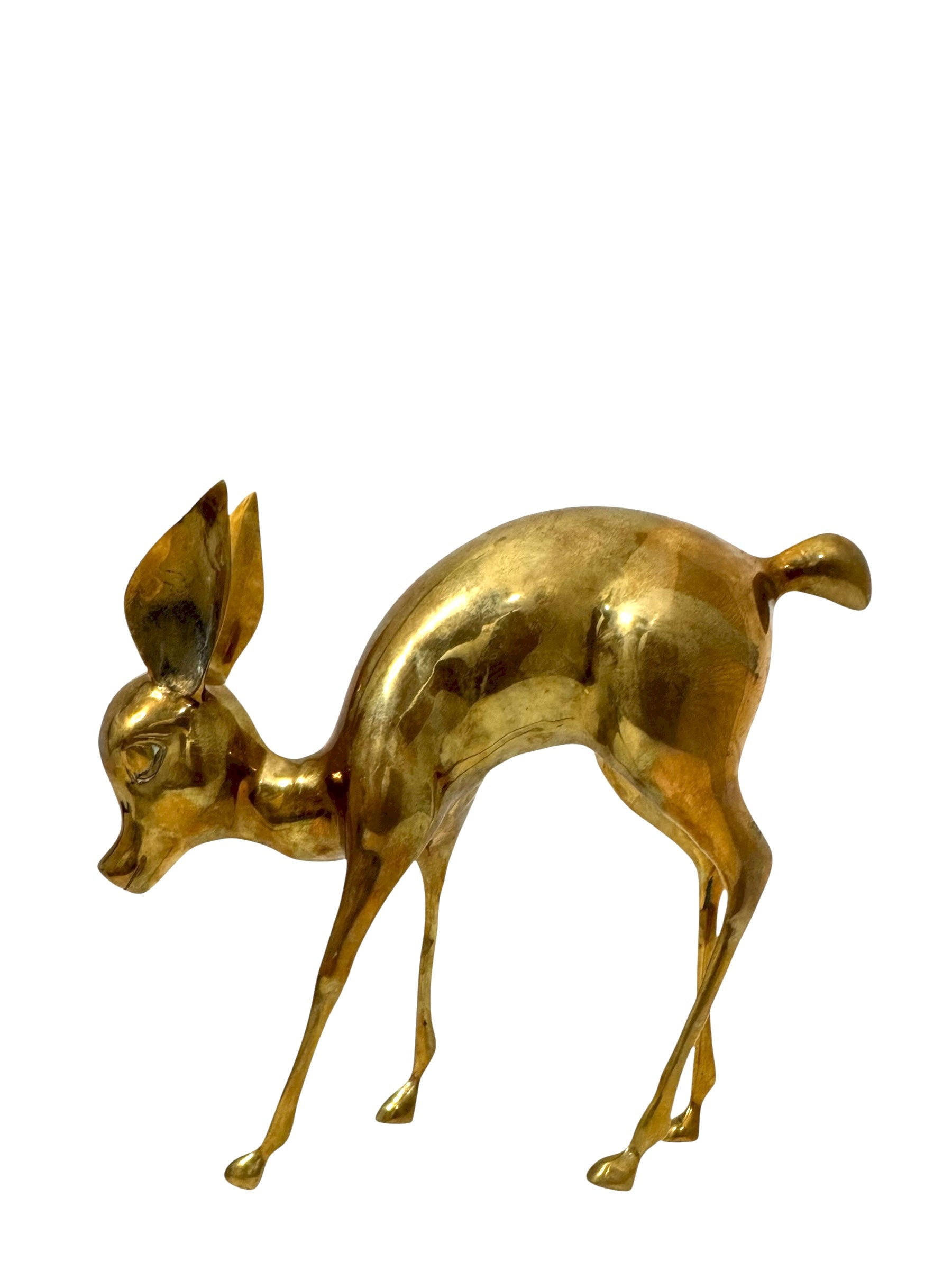 Vintage Mid-Century Modern Brass Fawn Sculpture – Graceful Grazing Deer | Hollywood Regency Animal Figurine |12.75 Inches tall