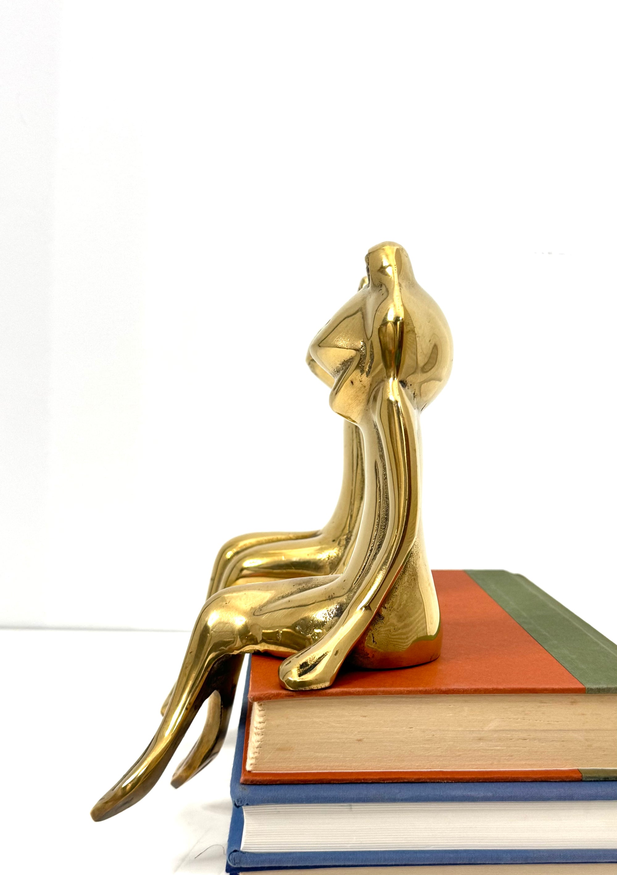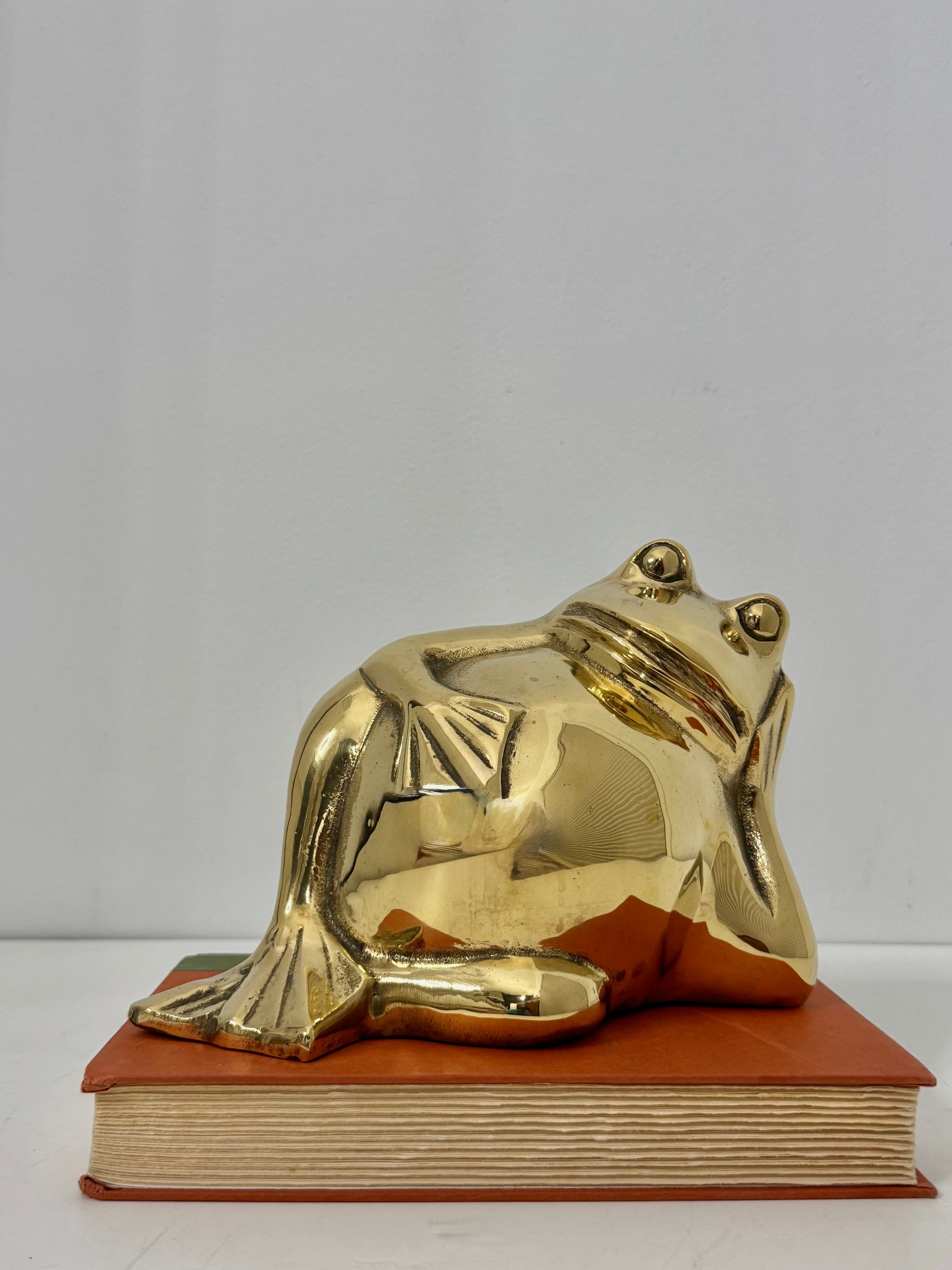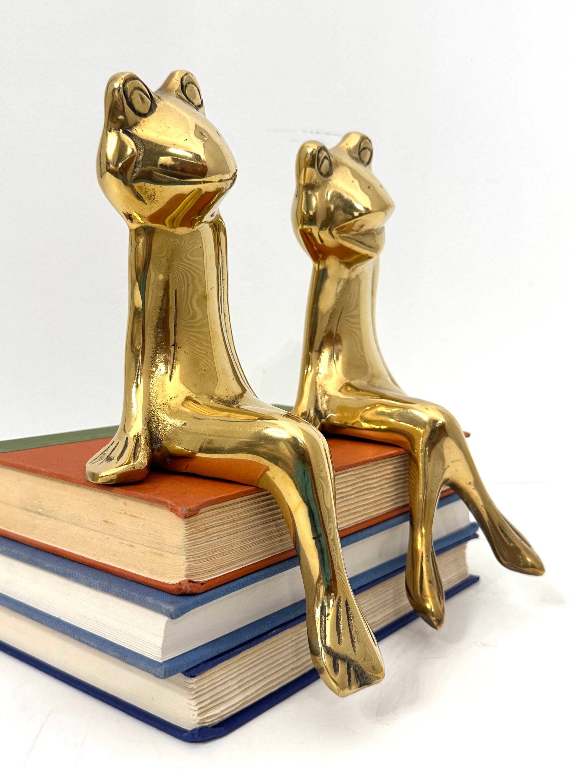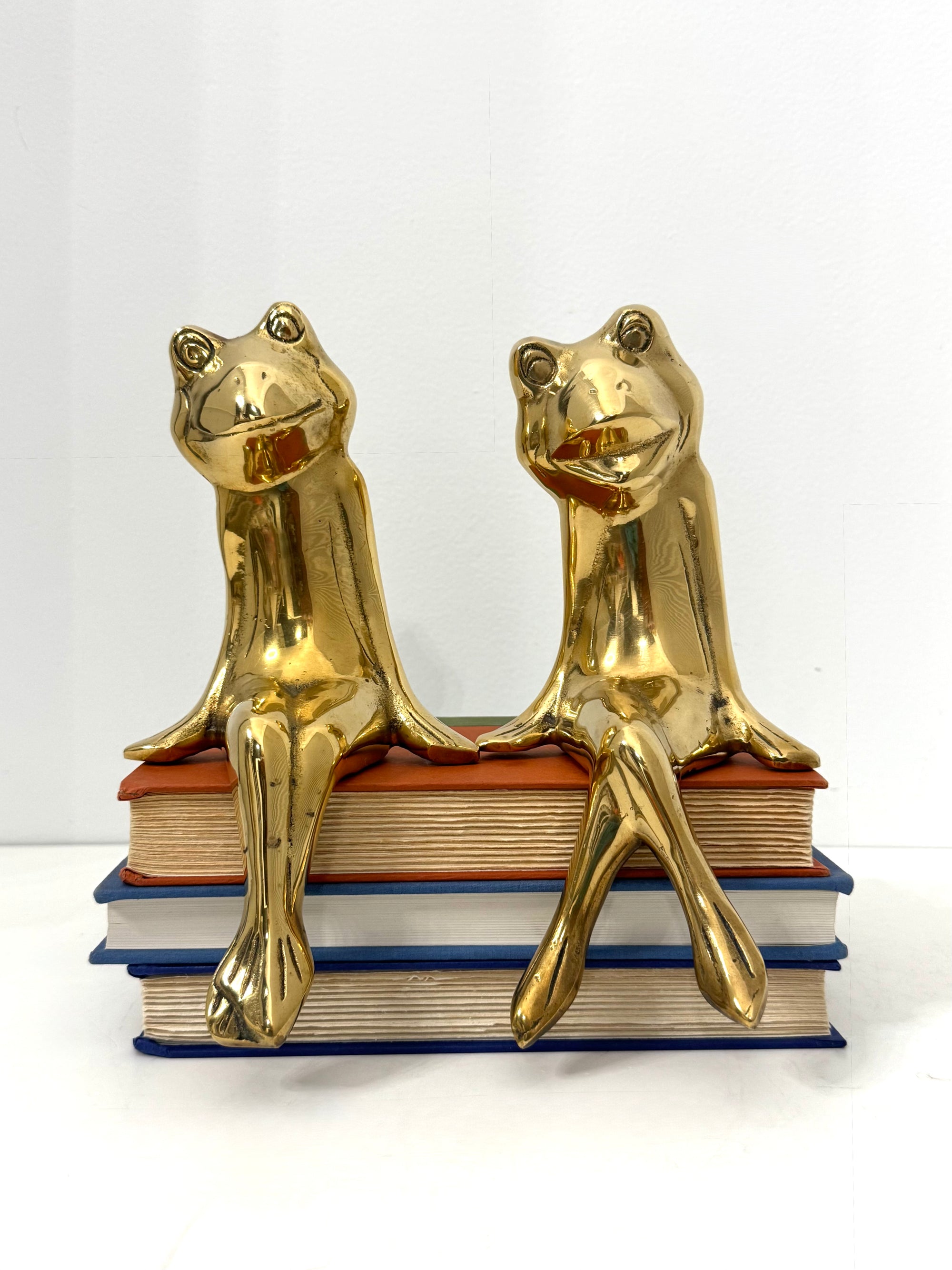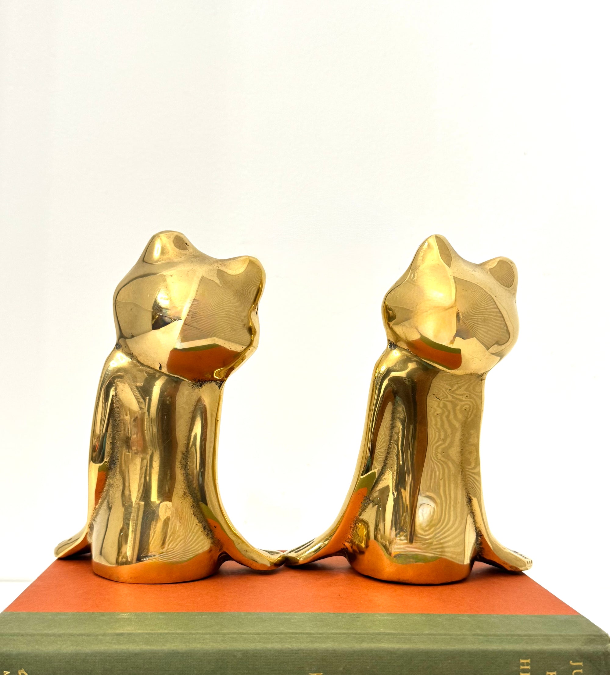 Vintage Polished Brass Frog Couple Bookends — Mid-Century Modern Charm