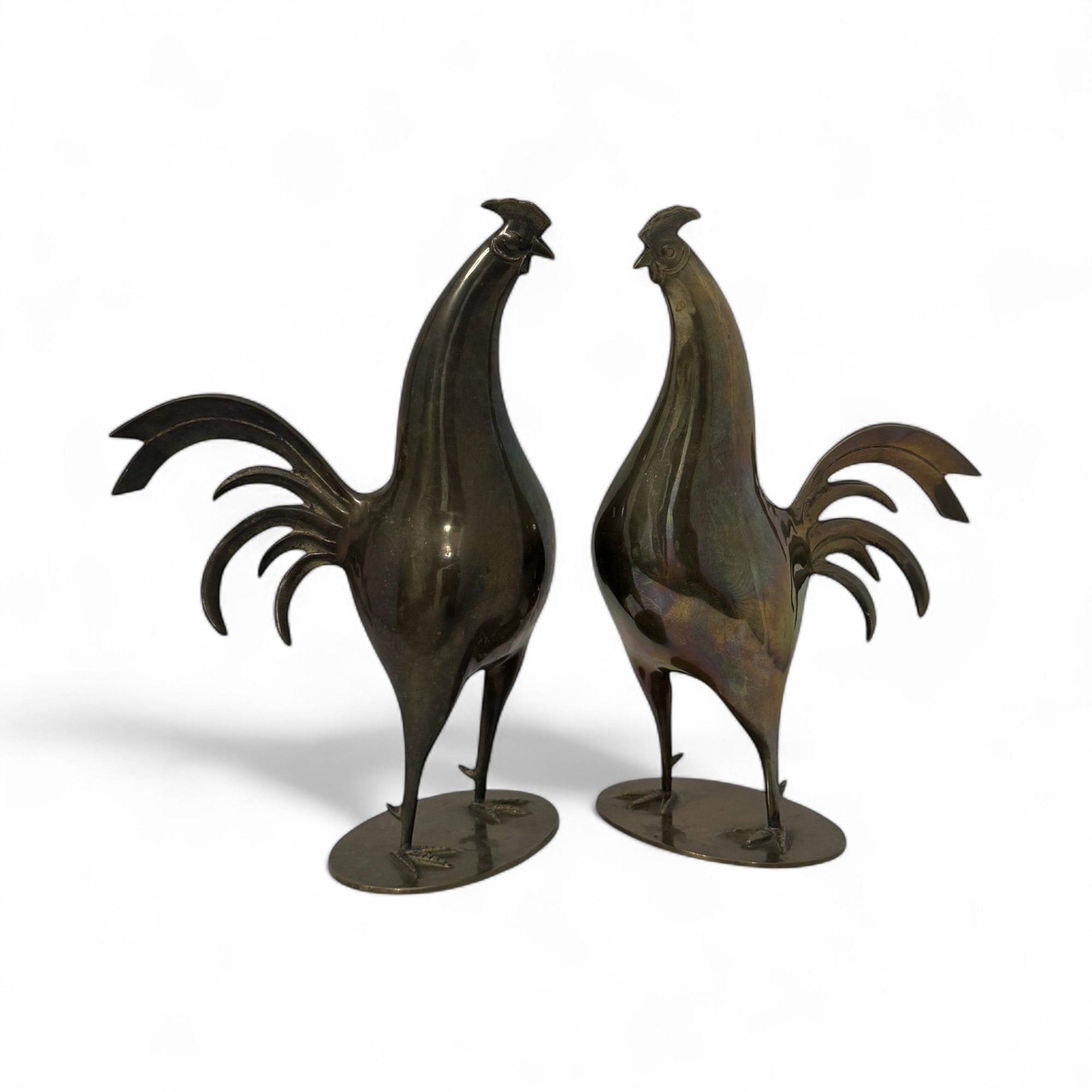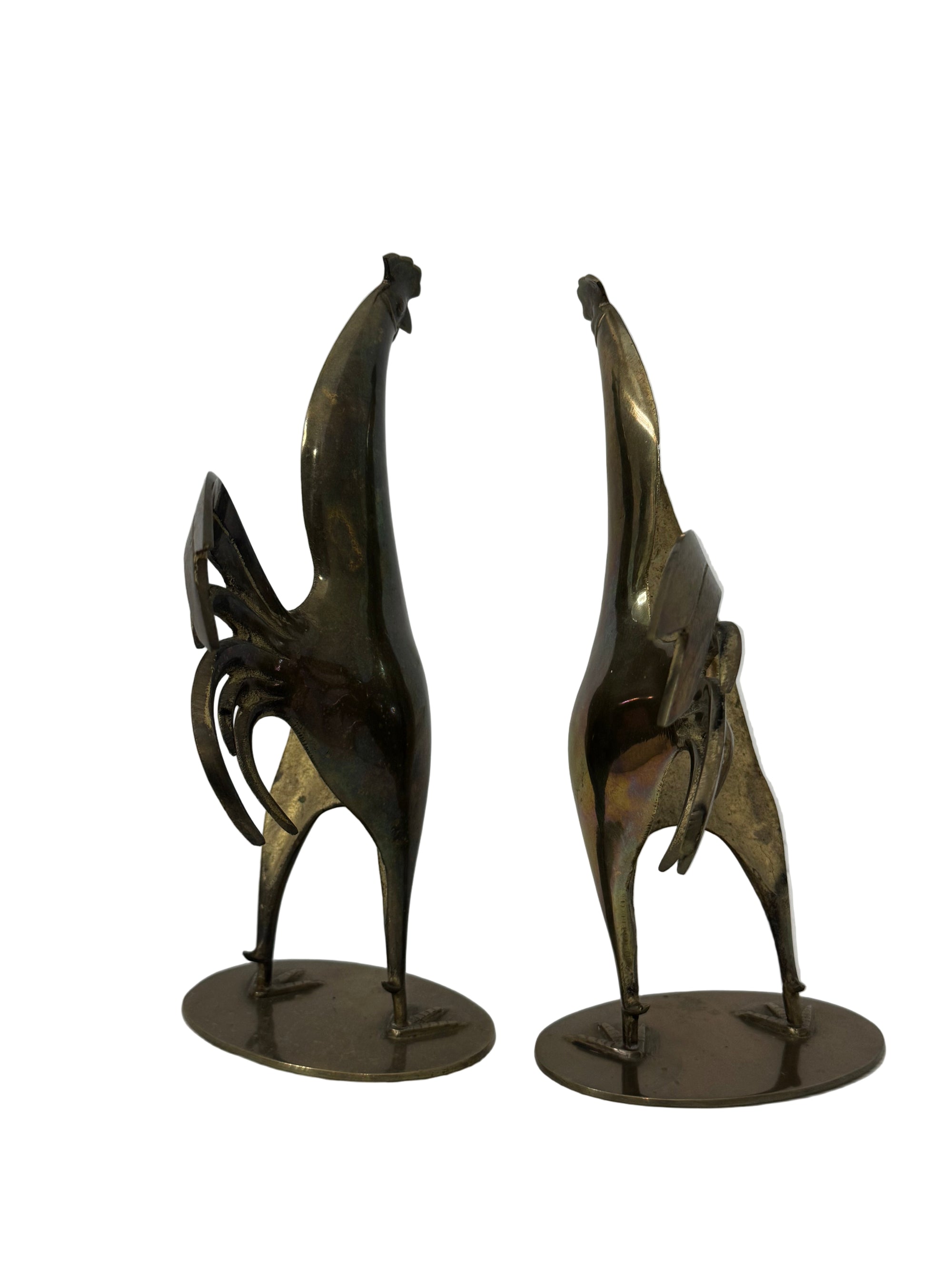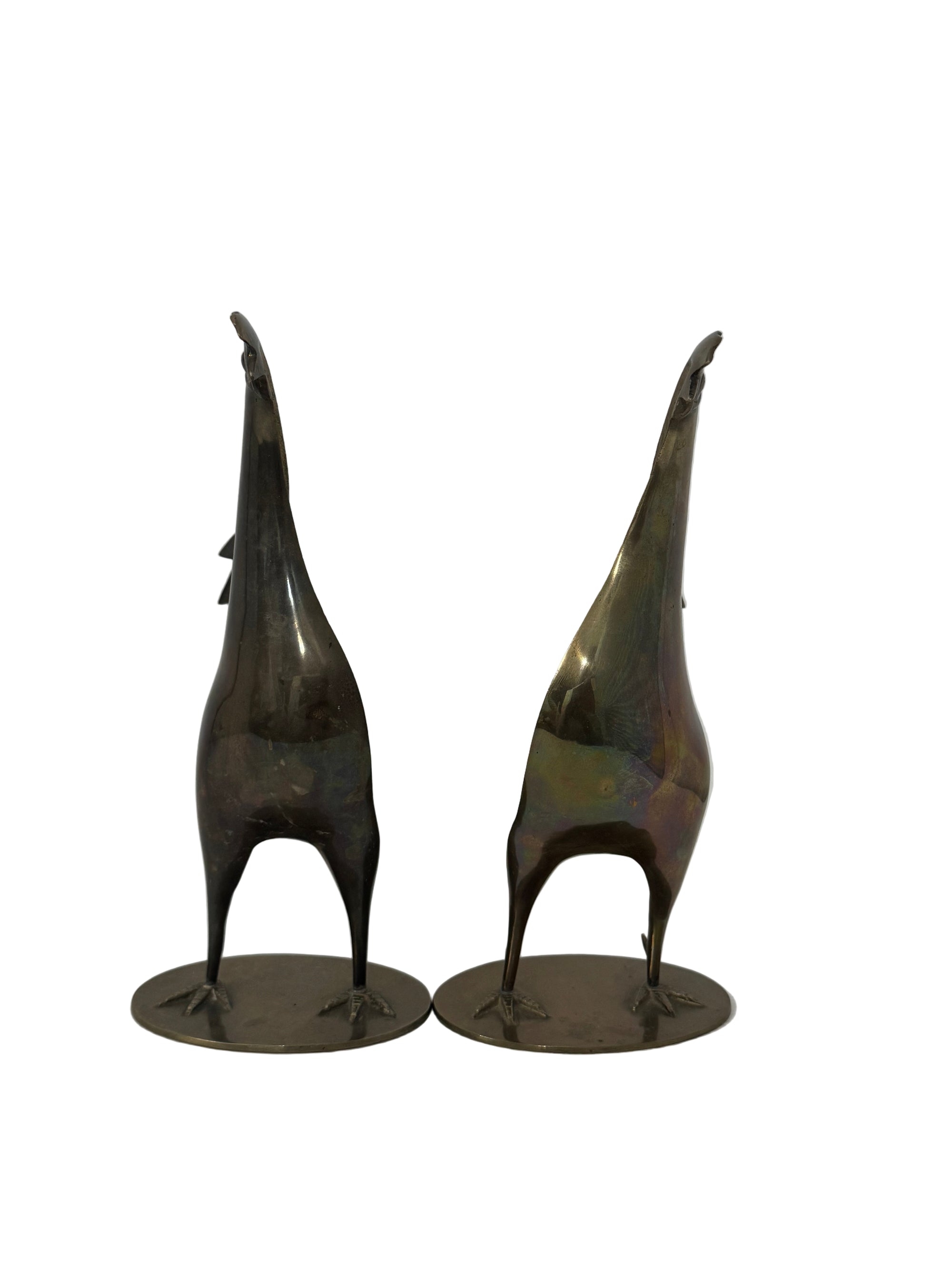 Vintage Mid-Century Modern Brass Rooster Sculptures – Pair, Made in Hong Kong