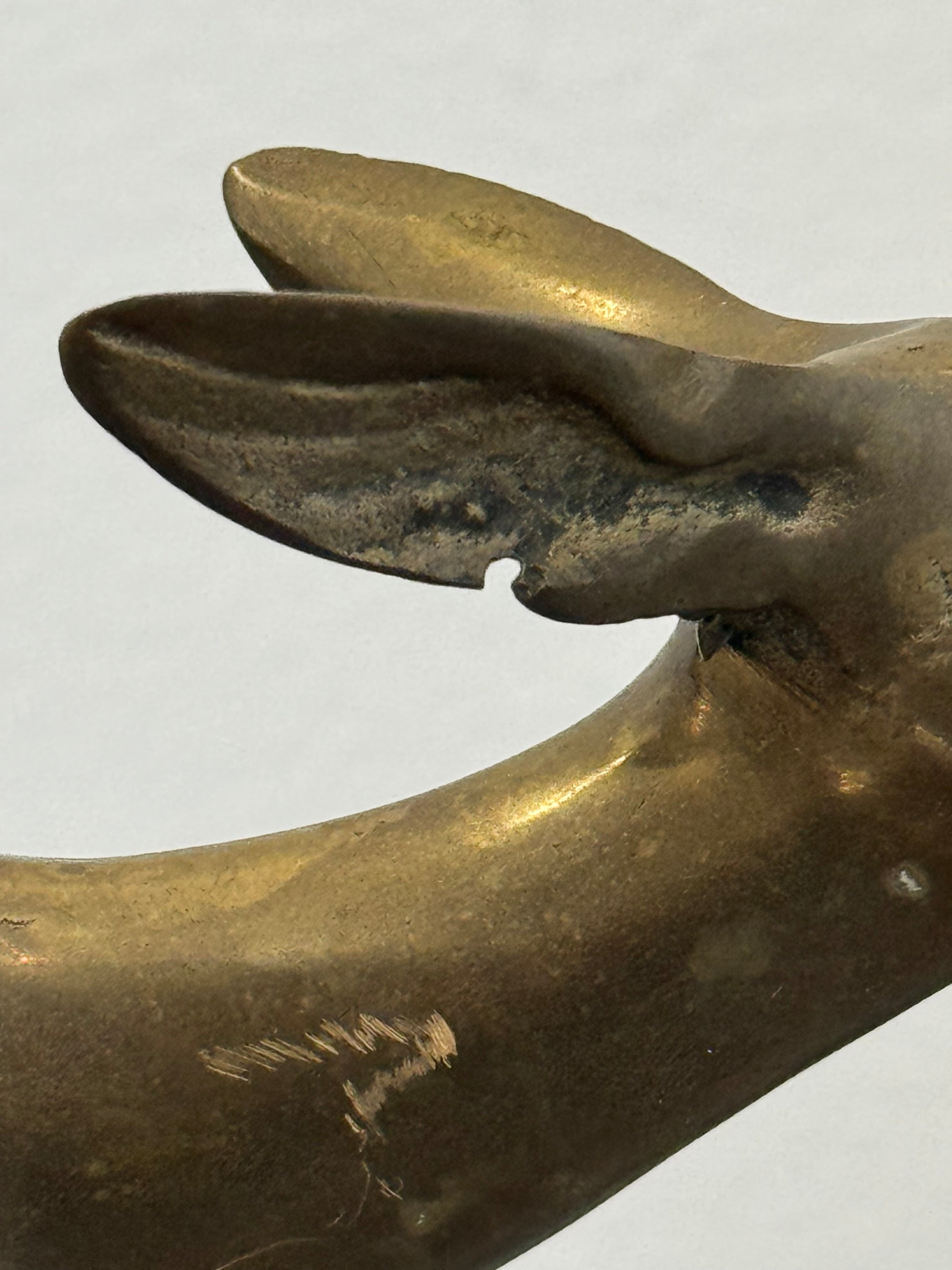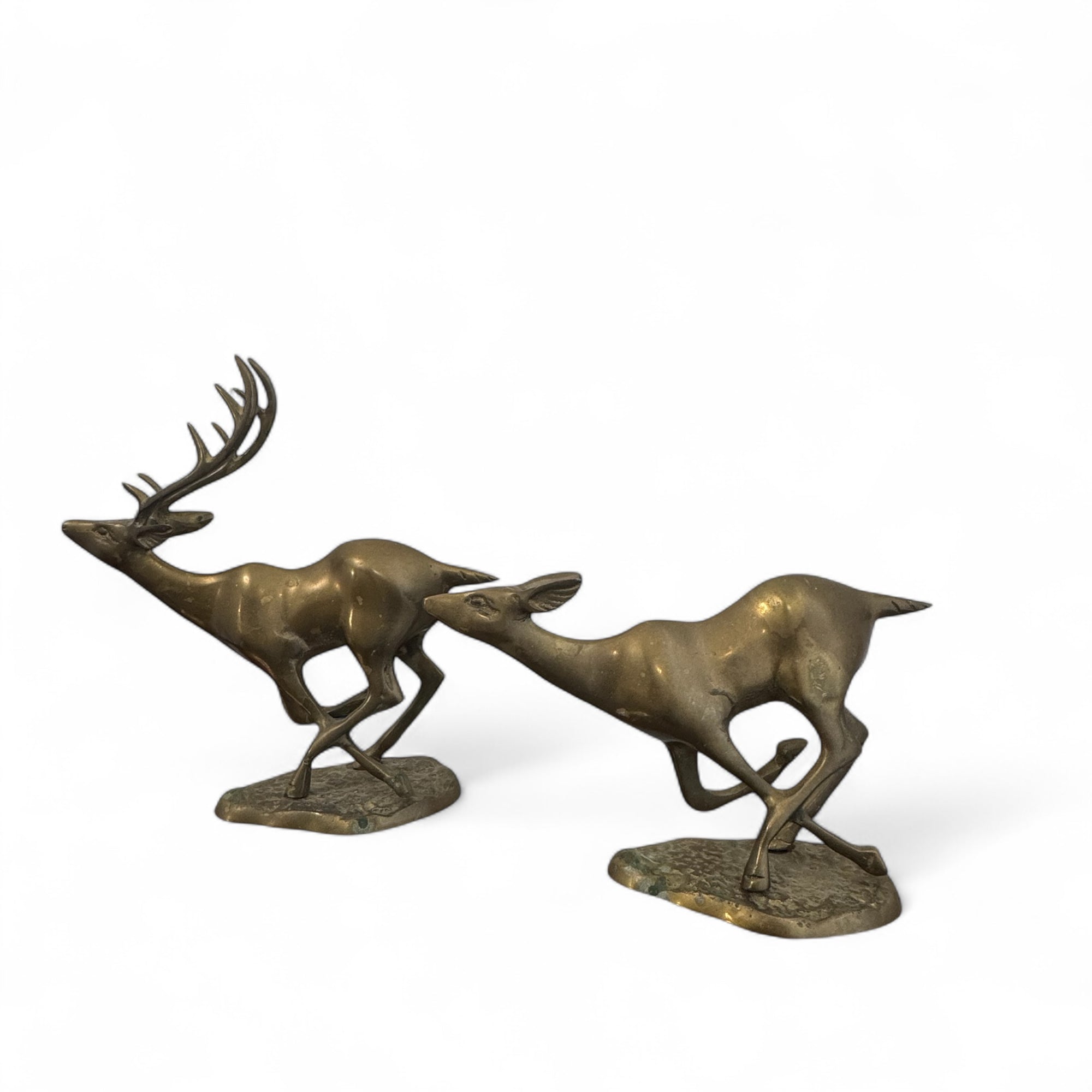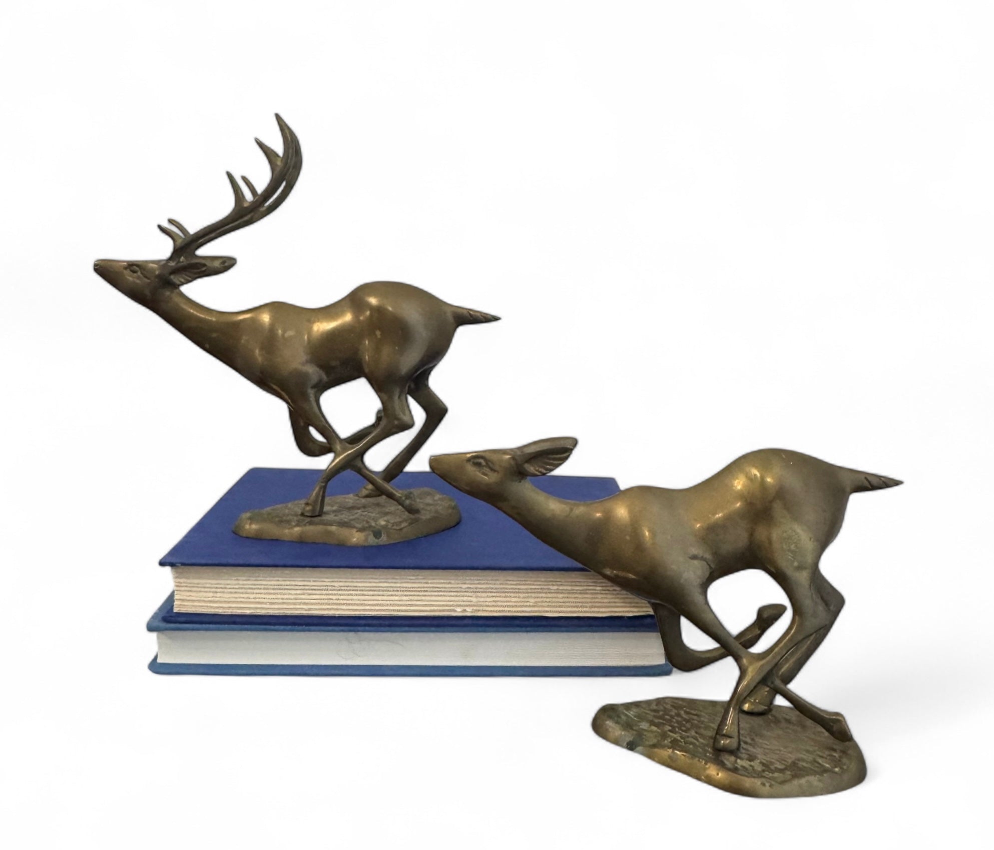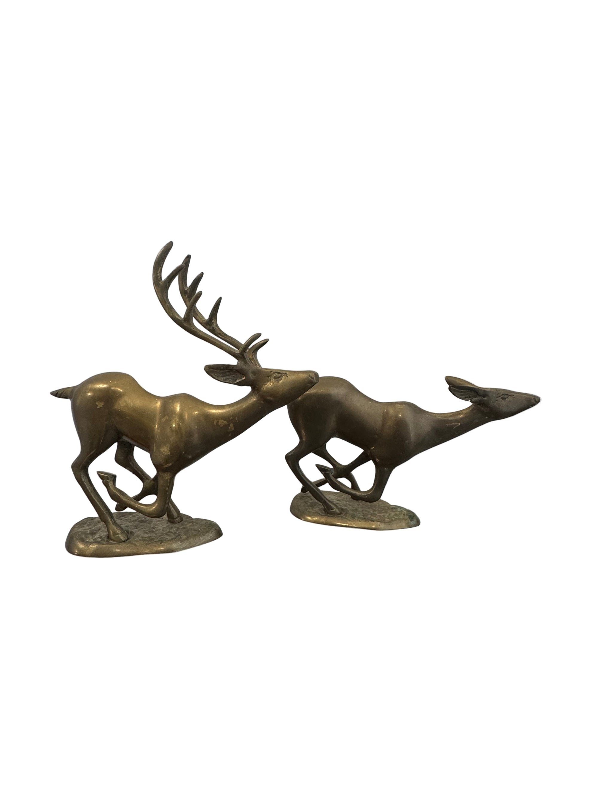 Vintage Mid-Century Brass Running Deer Sculptures – Pair