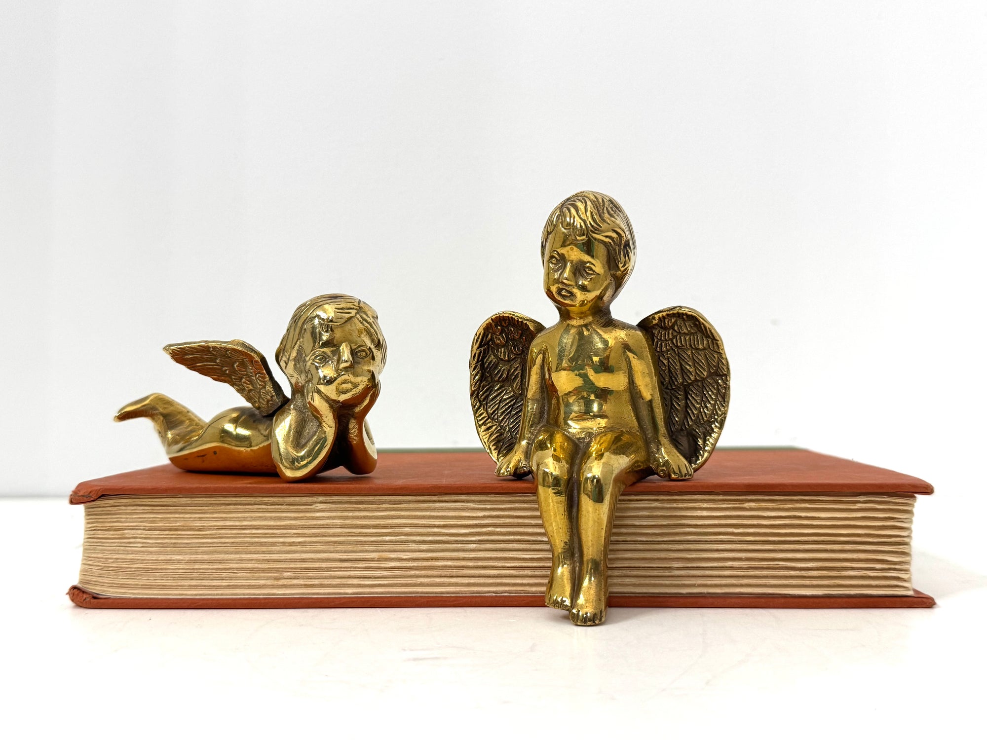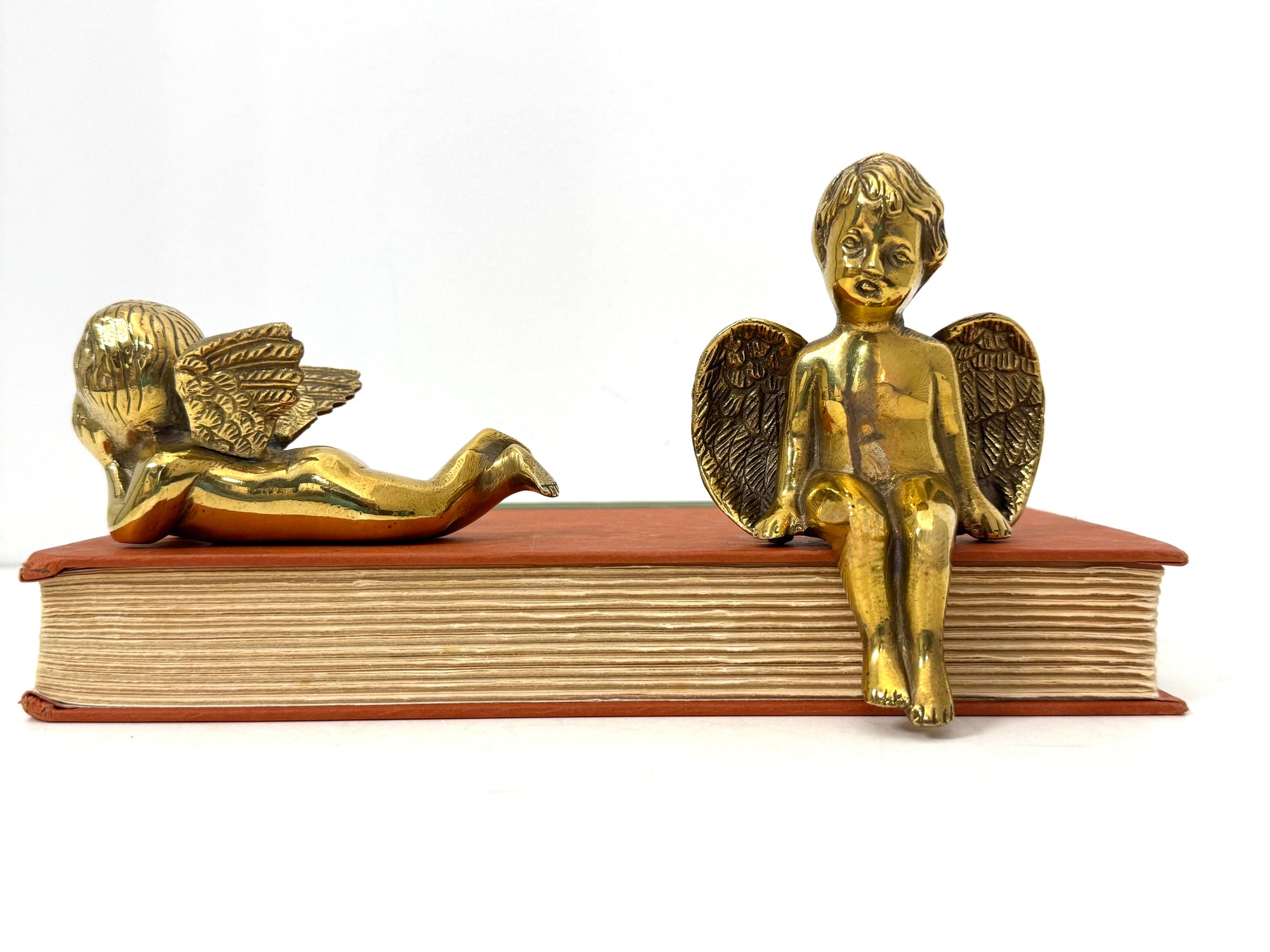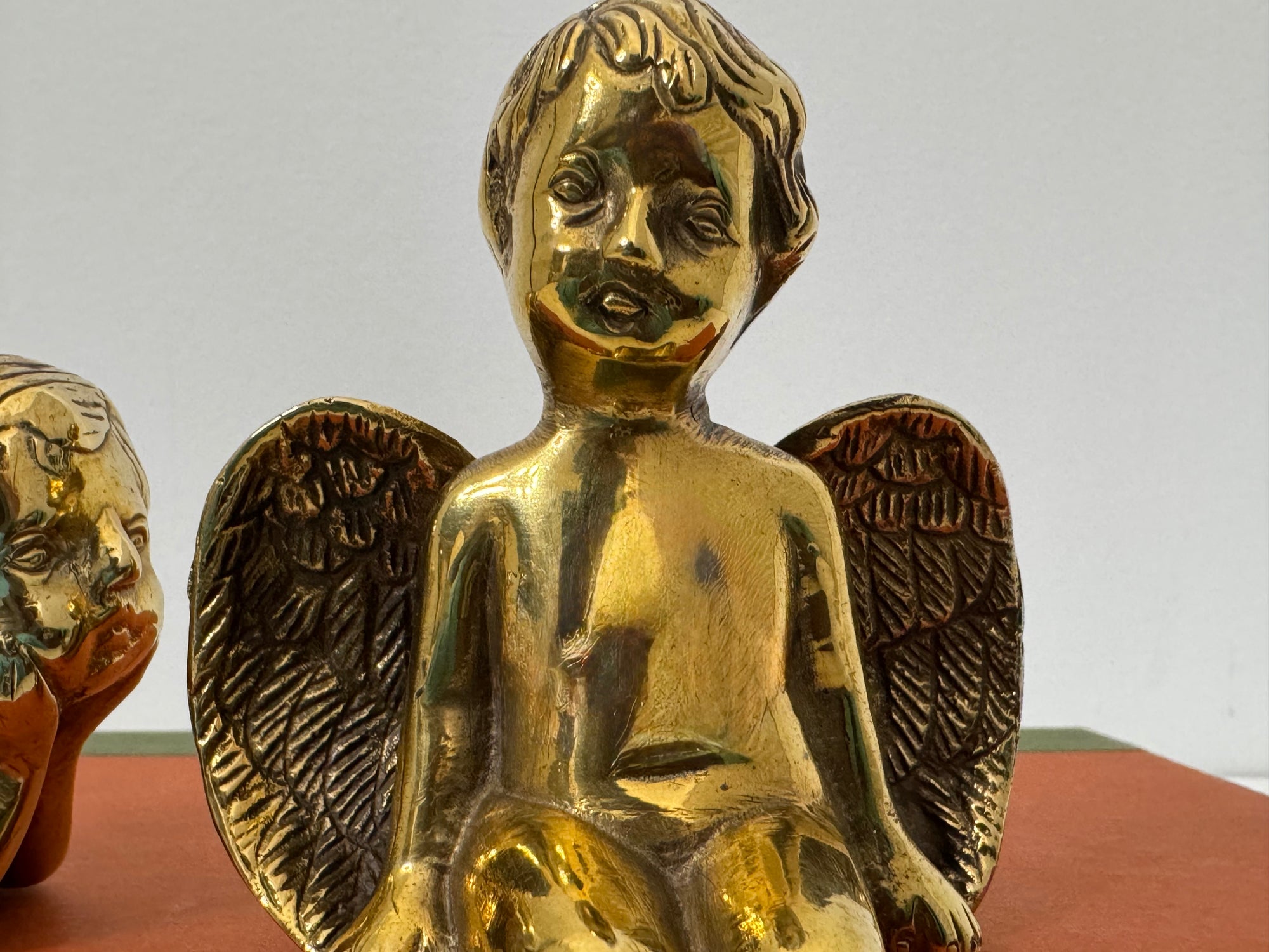 Vintage Polished Brass Cherub Angels — Set of Two Mid-Century Figurines