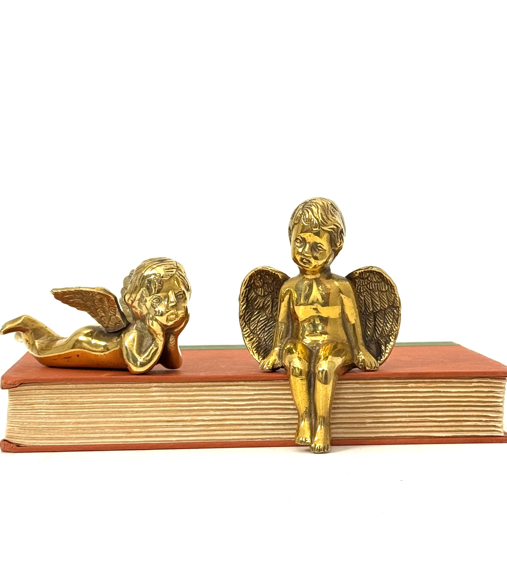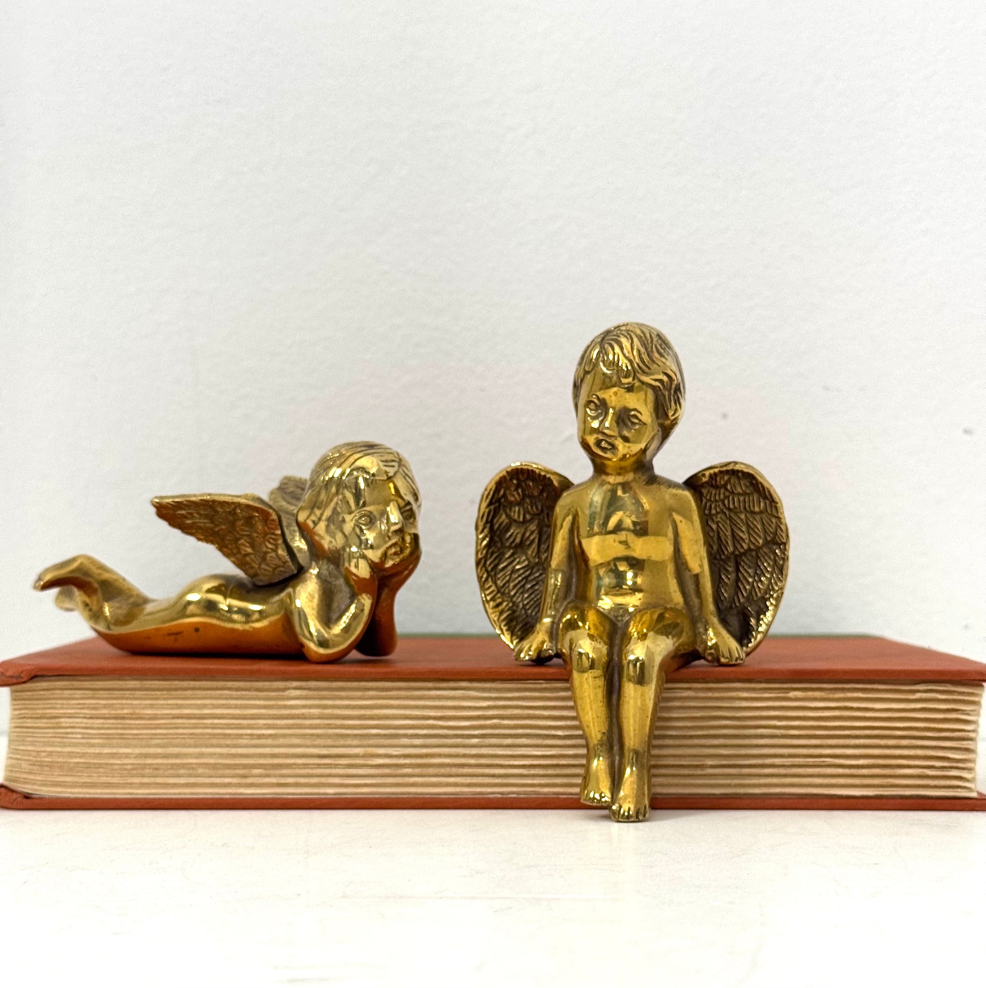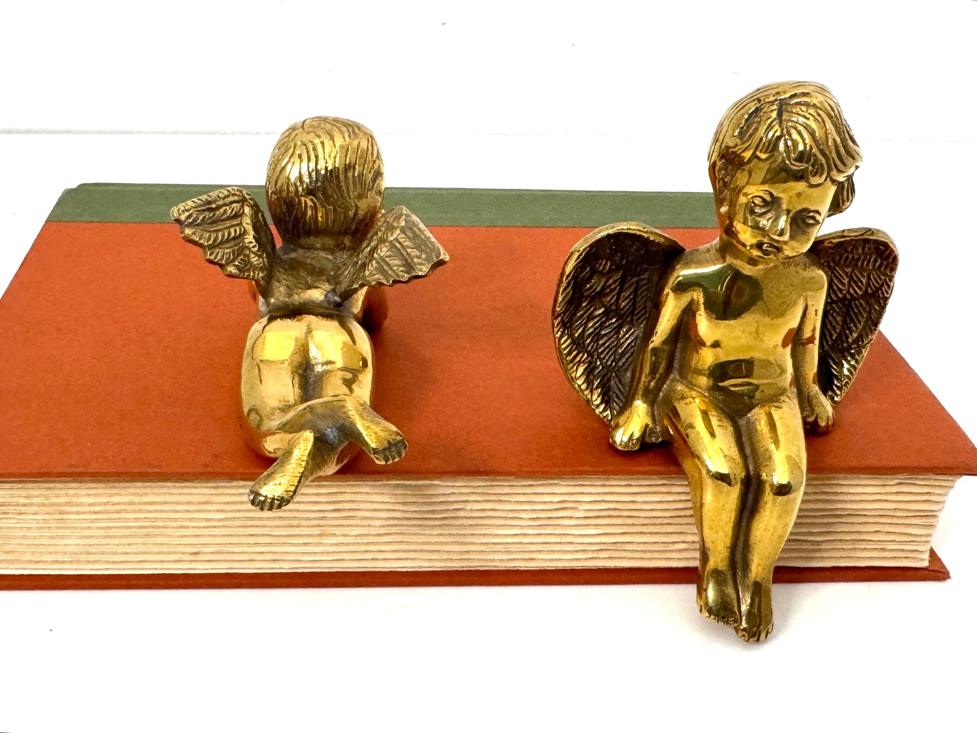 Vintage Polished Brass Cherub Angels — Set of Two Mid-Century Figurines