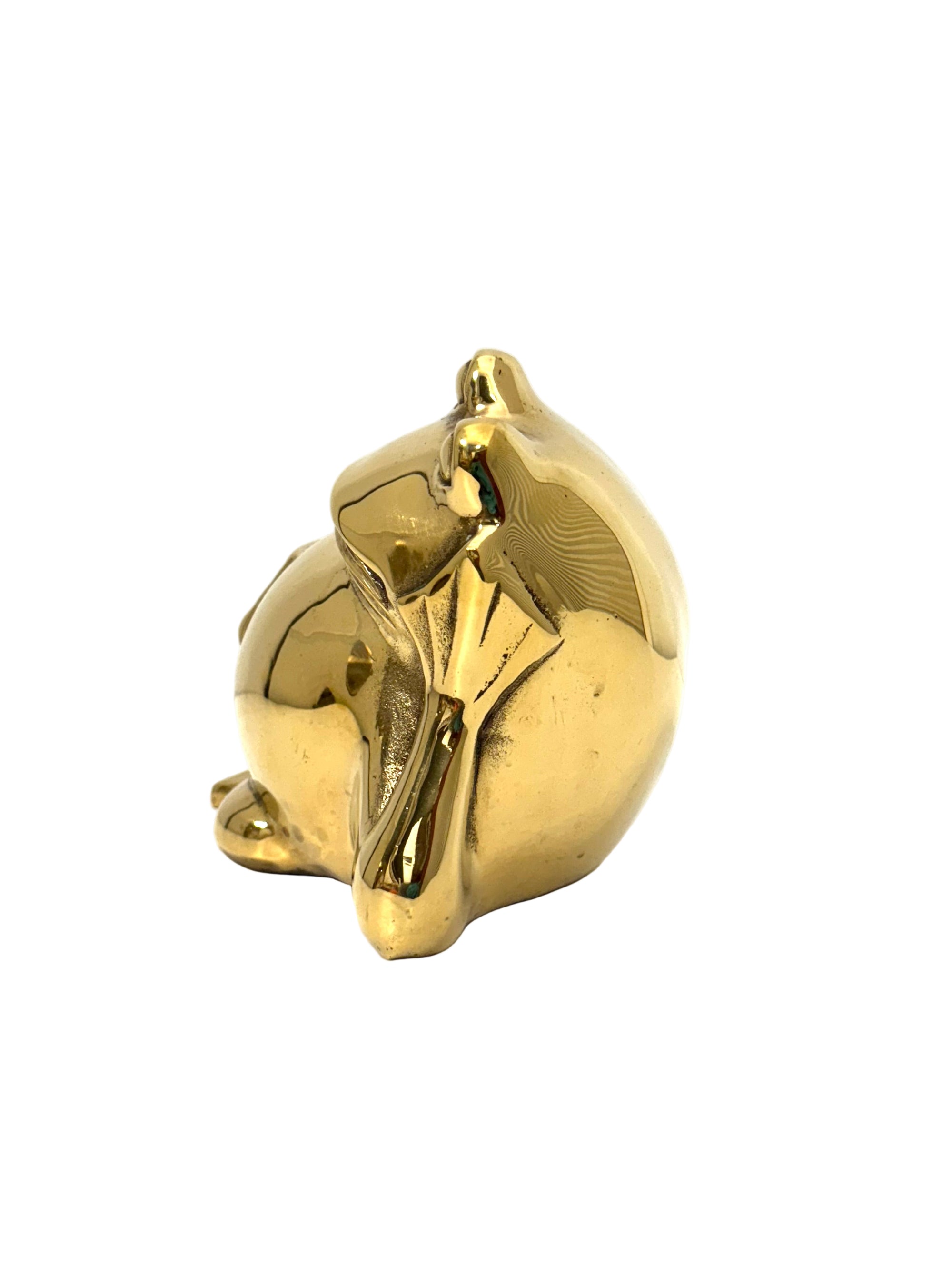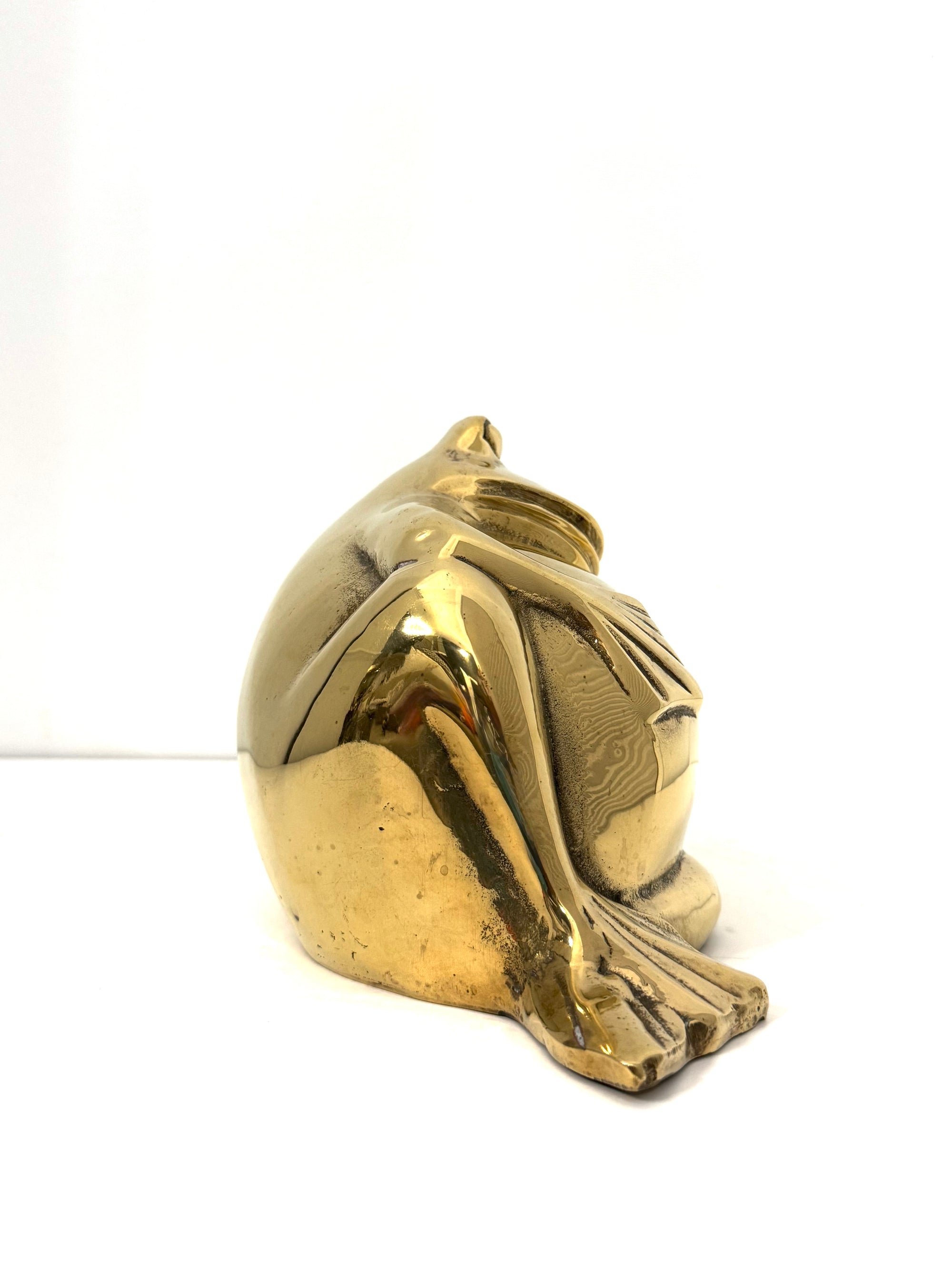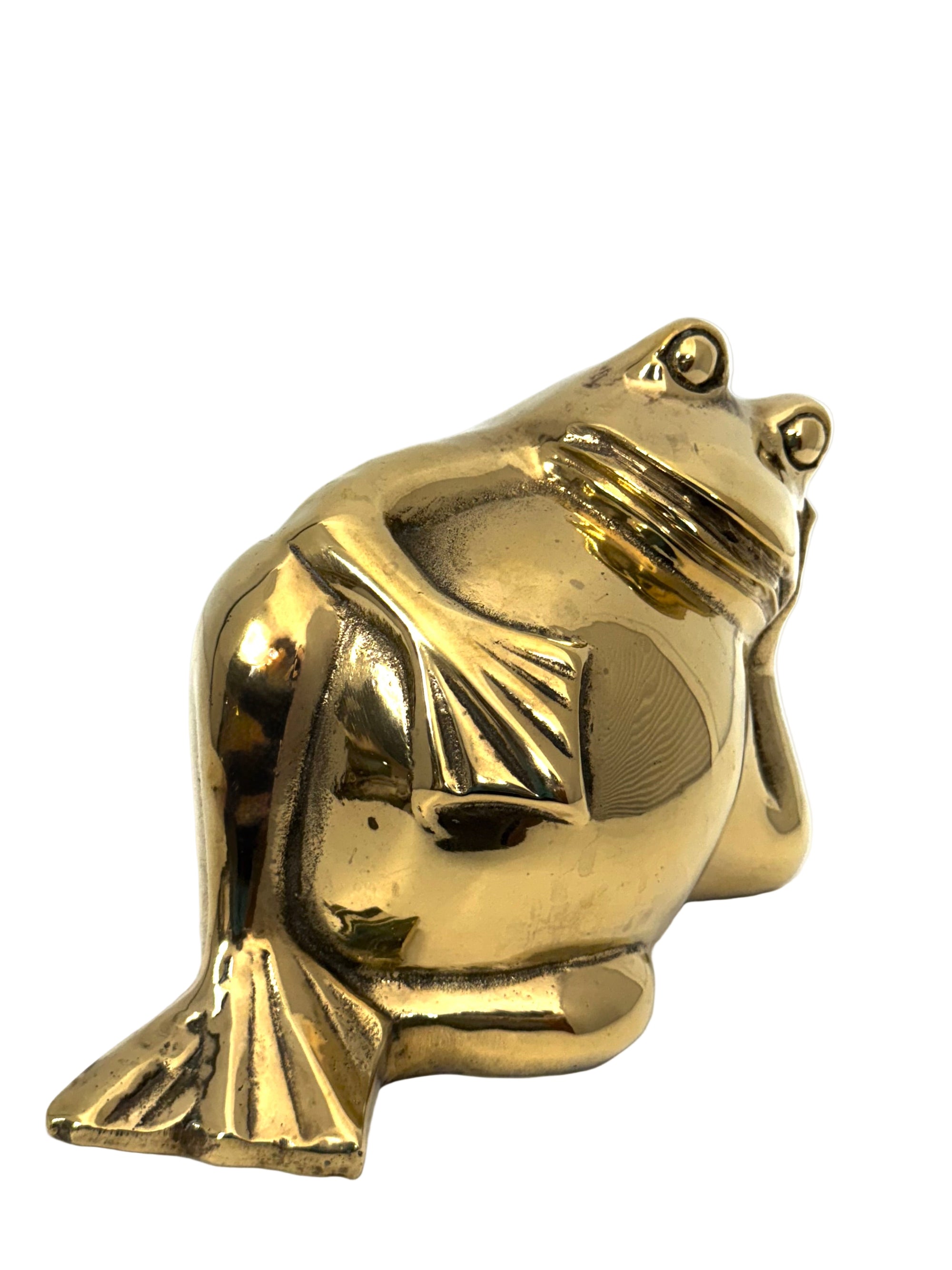 Vintage Polished Unlacquered Brass Relaxed Frog Sculpture Over 3 Pounds- Made in Korea