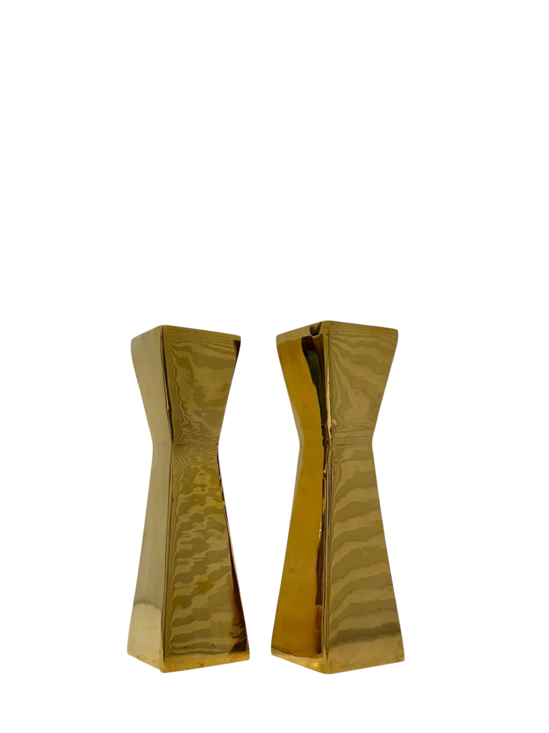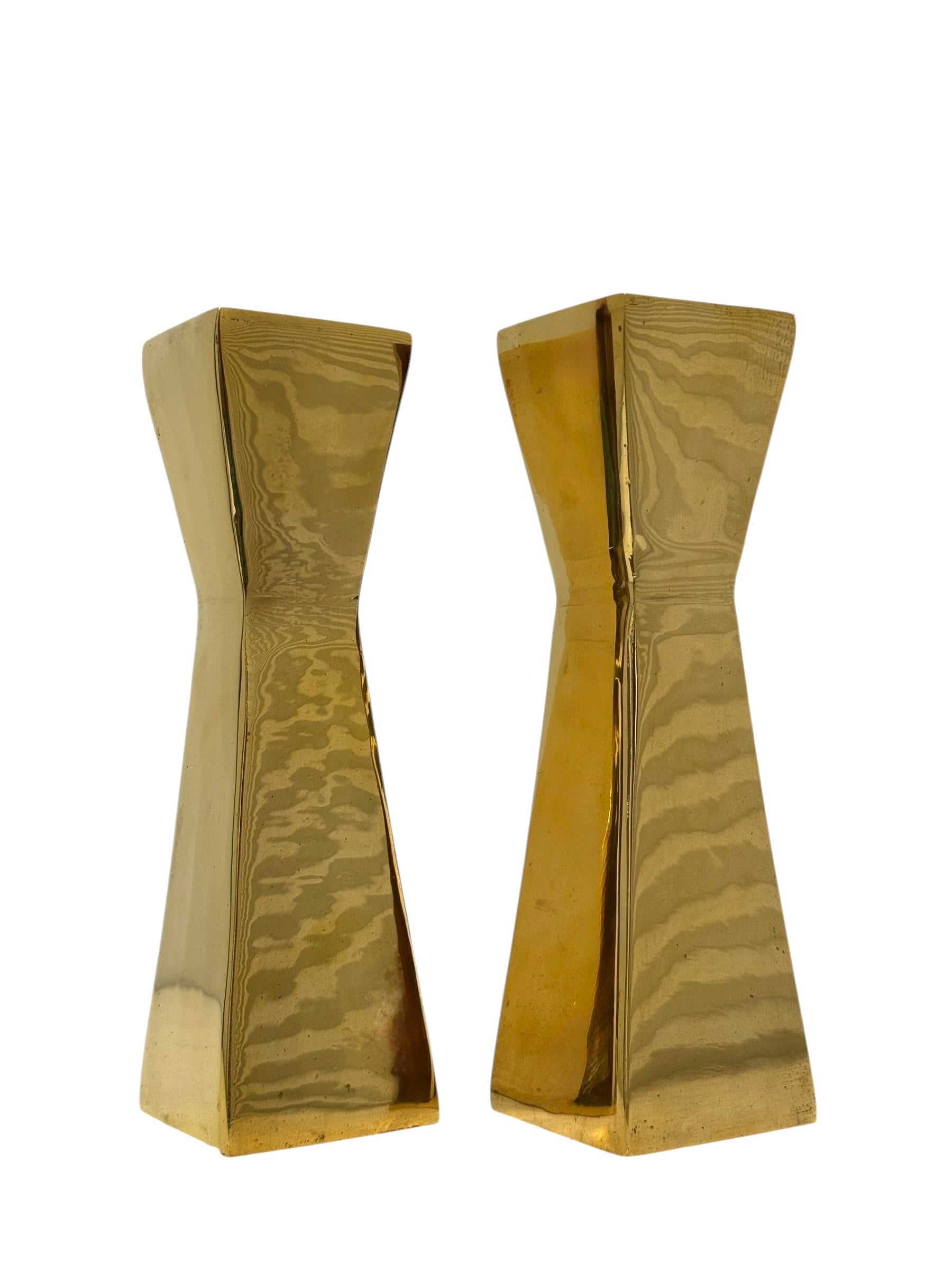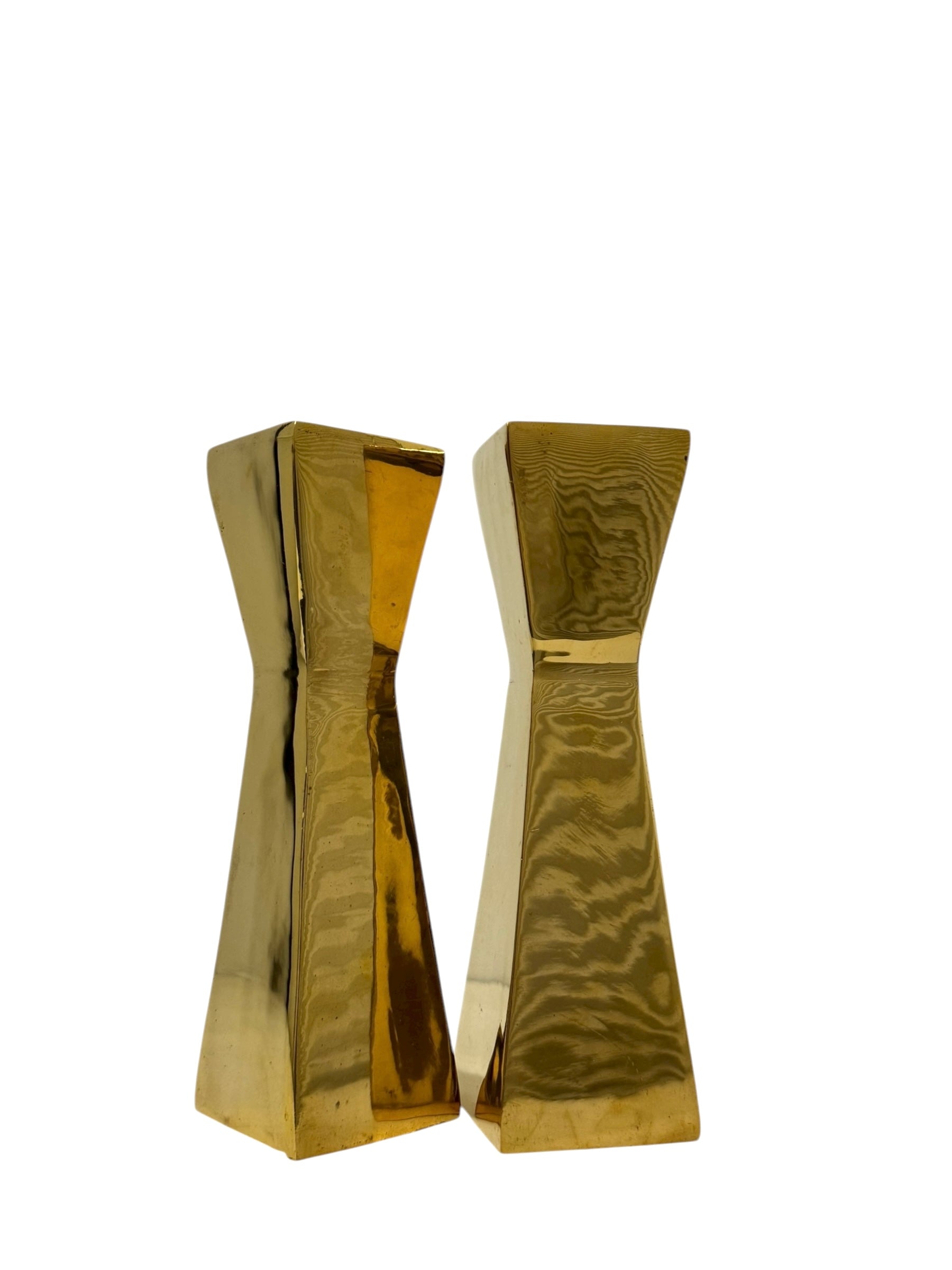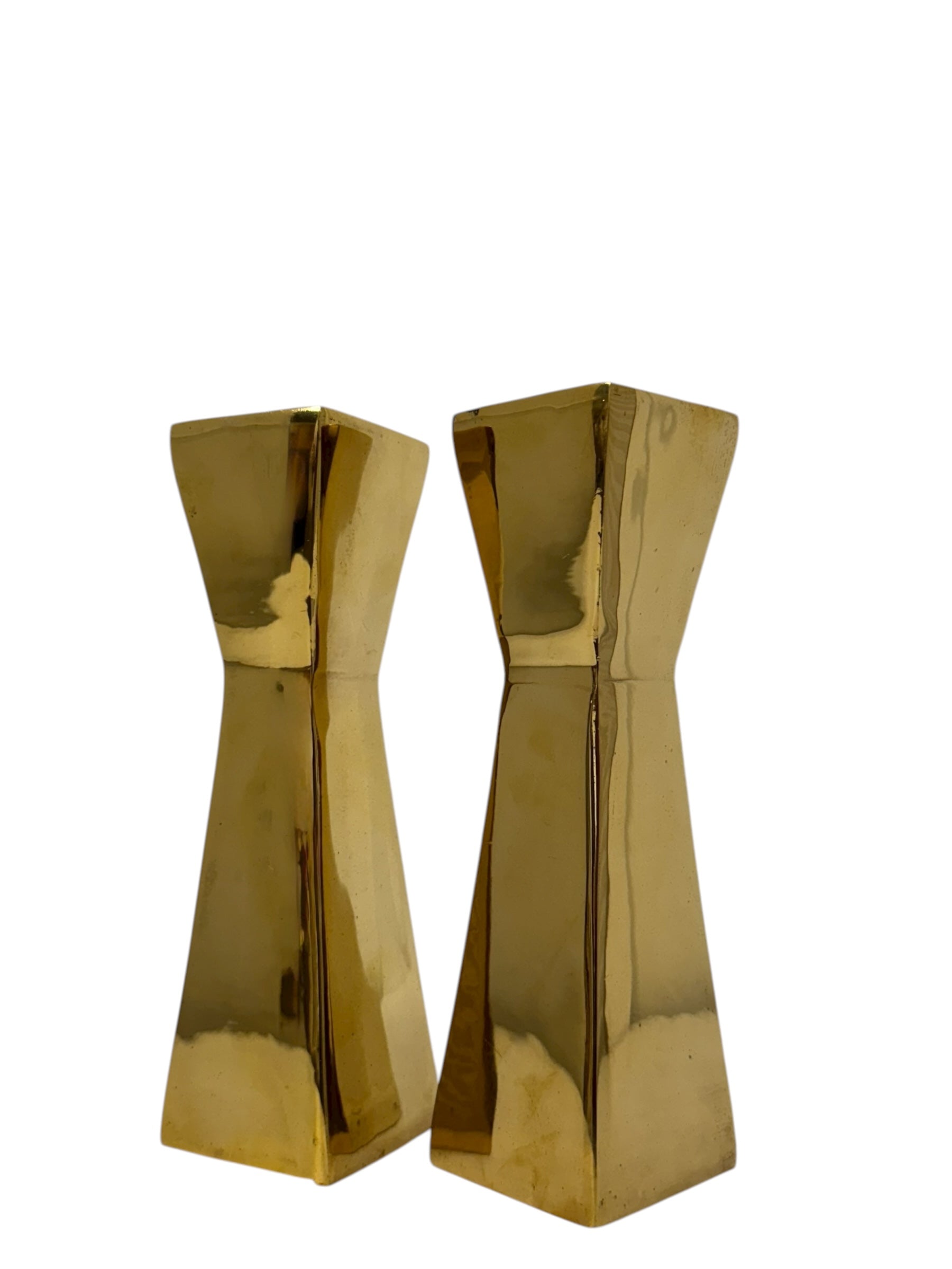 Vintage Polished Brass Geometric Candle Holders | Mid-Century Modern |Art Deco Revival Sculptural Pair
