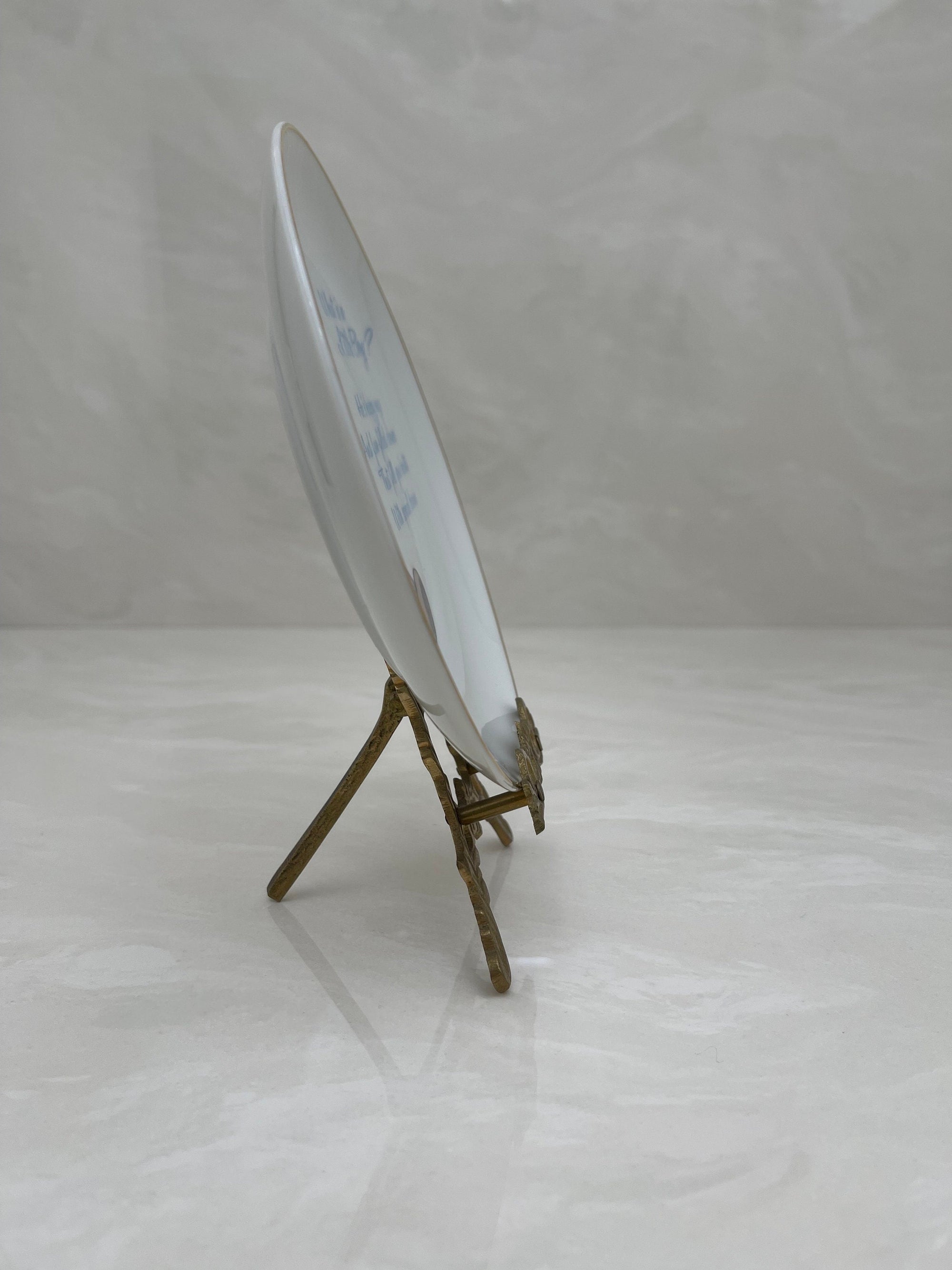 Vintage Cut Crystal Bowl with Ornate Brass Branch & Leaf Stand – Mid-Century Elegance
