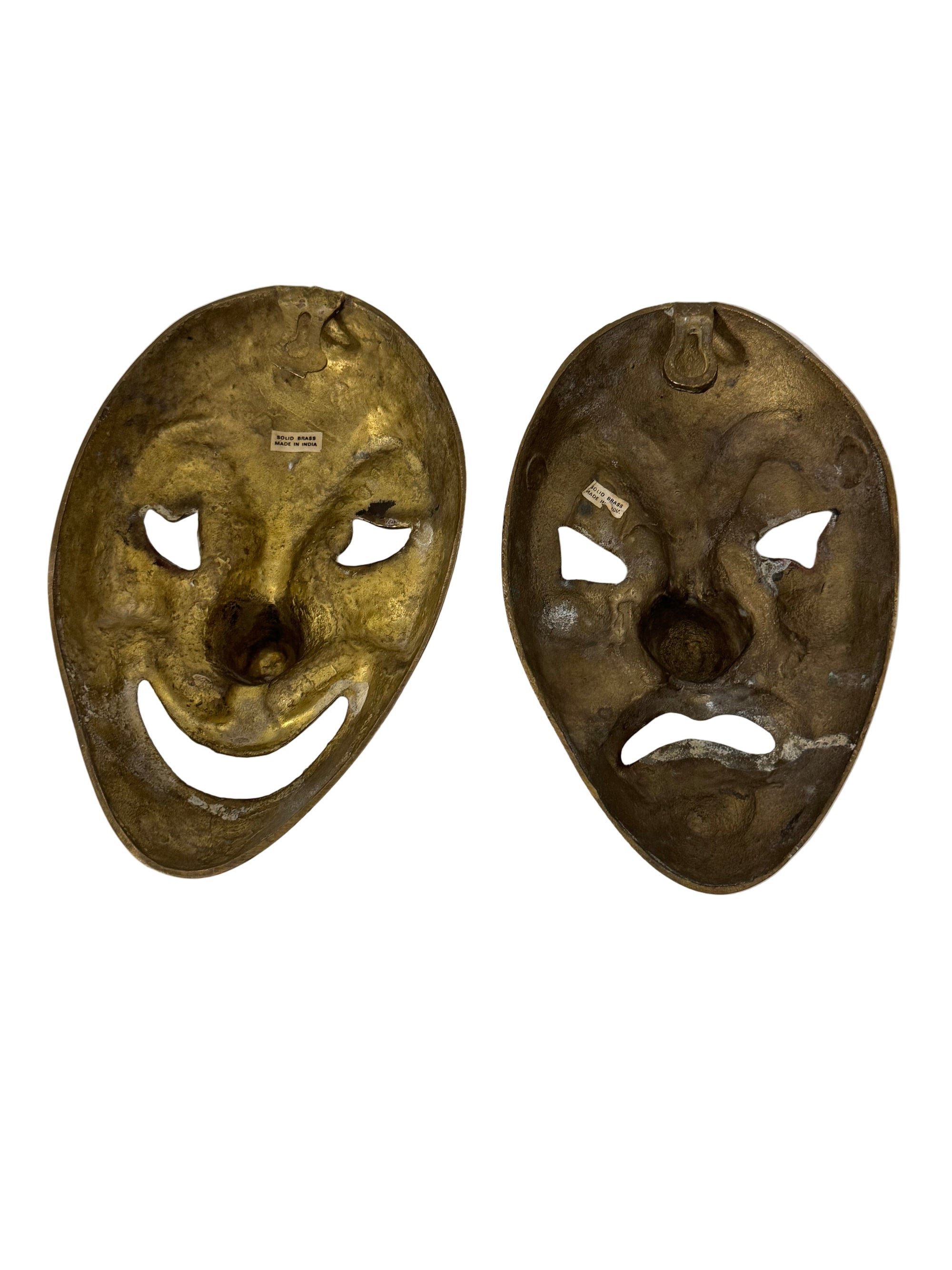 Vintage Brass Comedy & Tragedy Masks – Theater Wall Art, Made in India