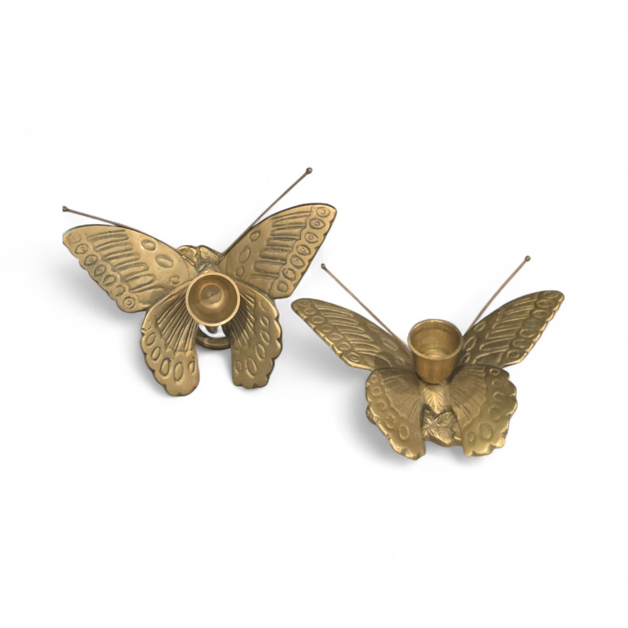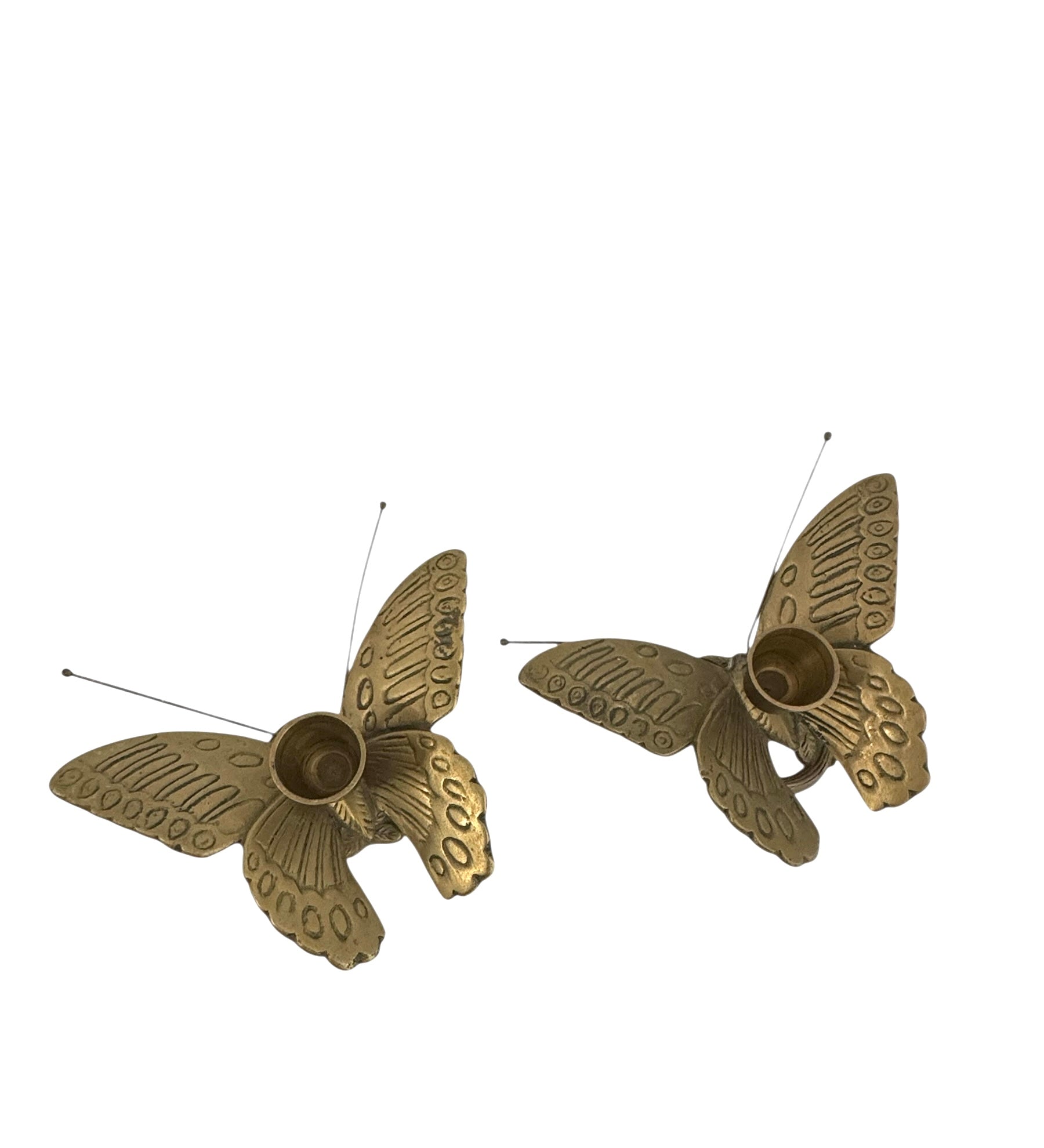 Vintage Brass Butterfly Candleholders - A Pair