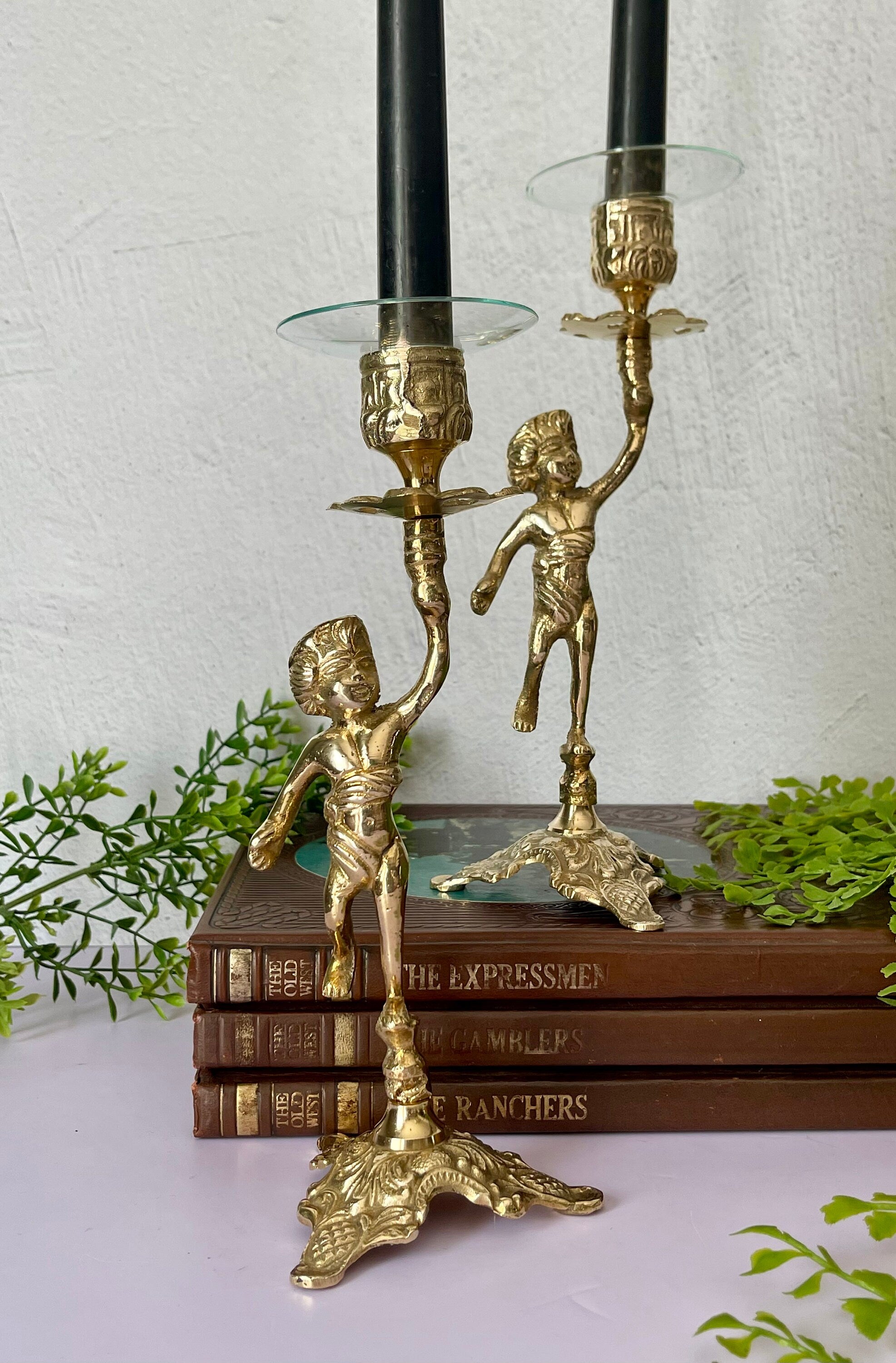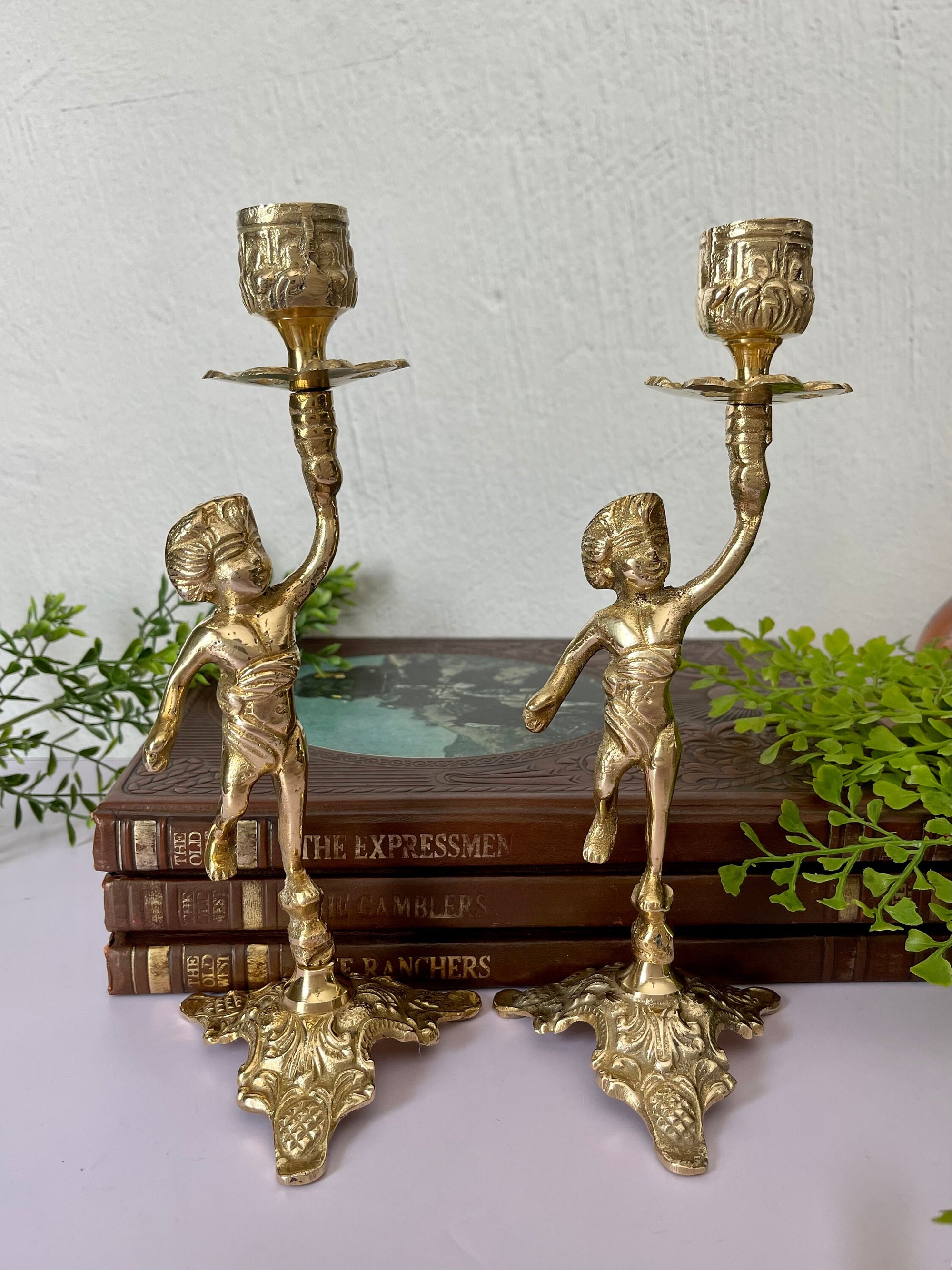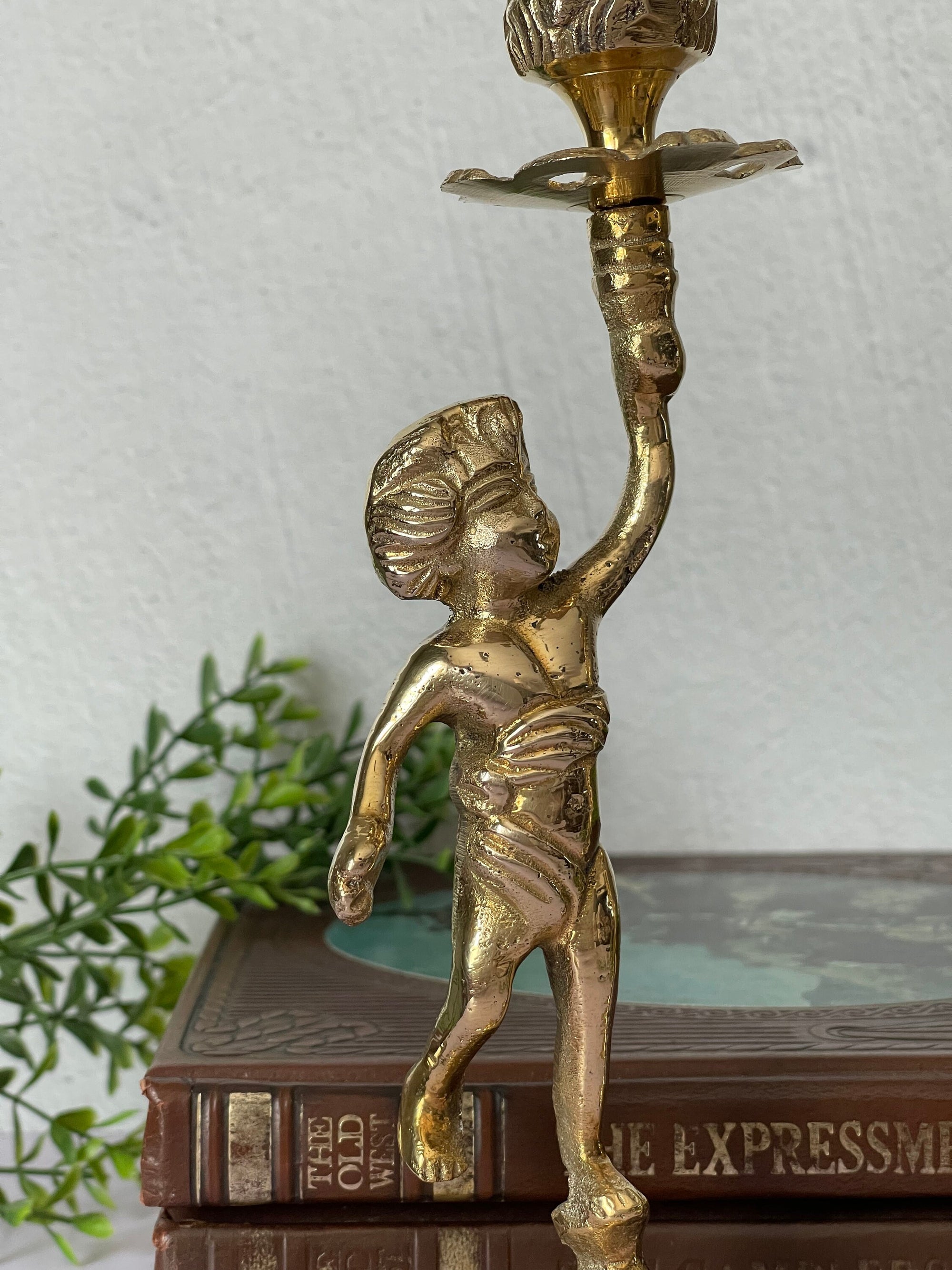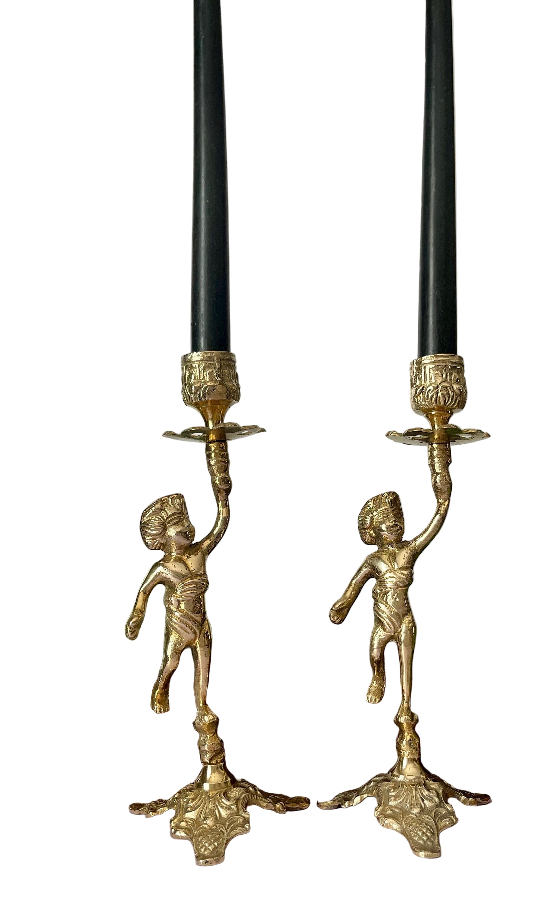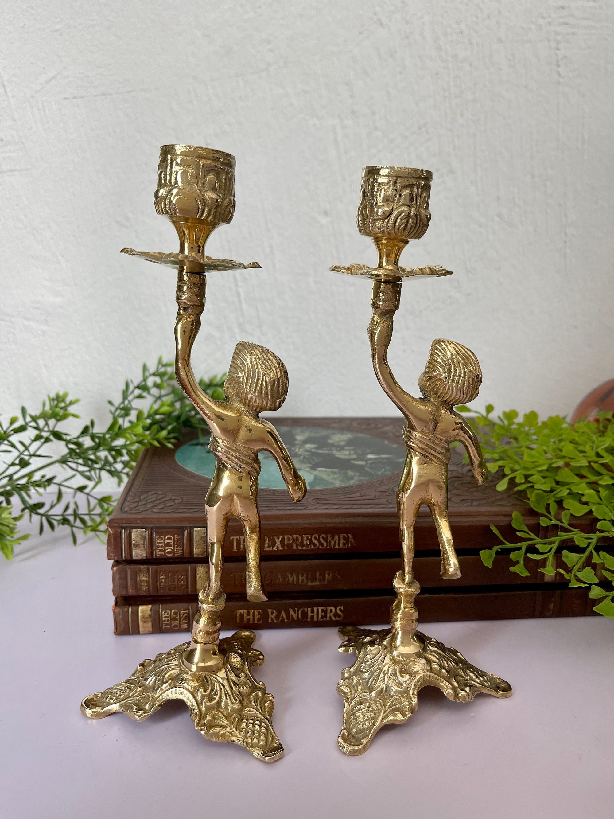 Vintage Brass Cherub Candlestick Holders