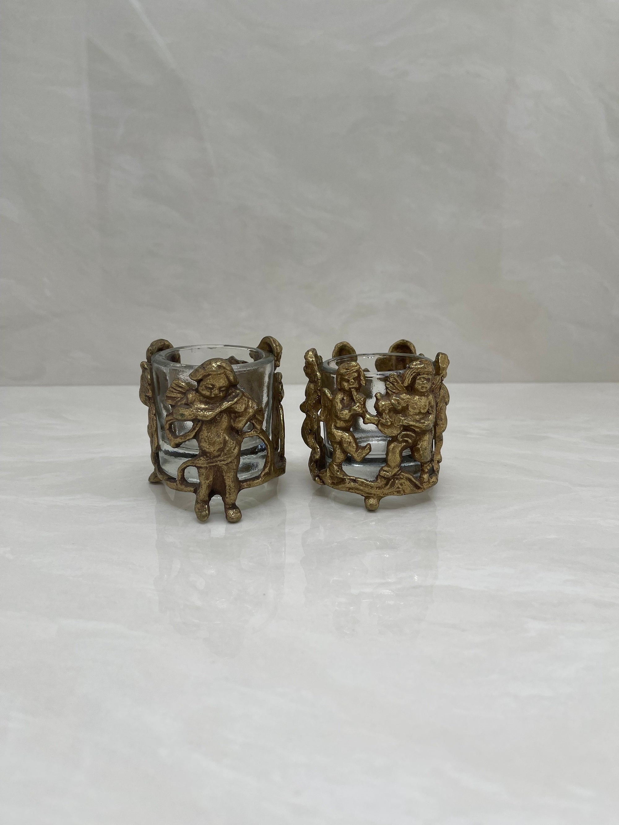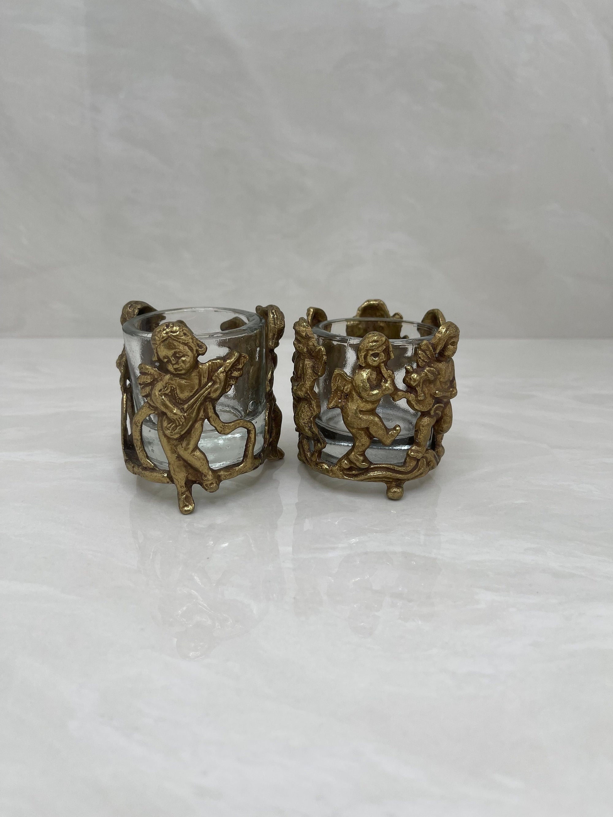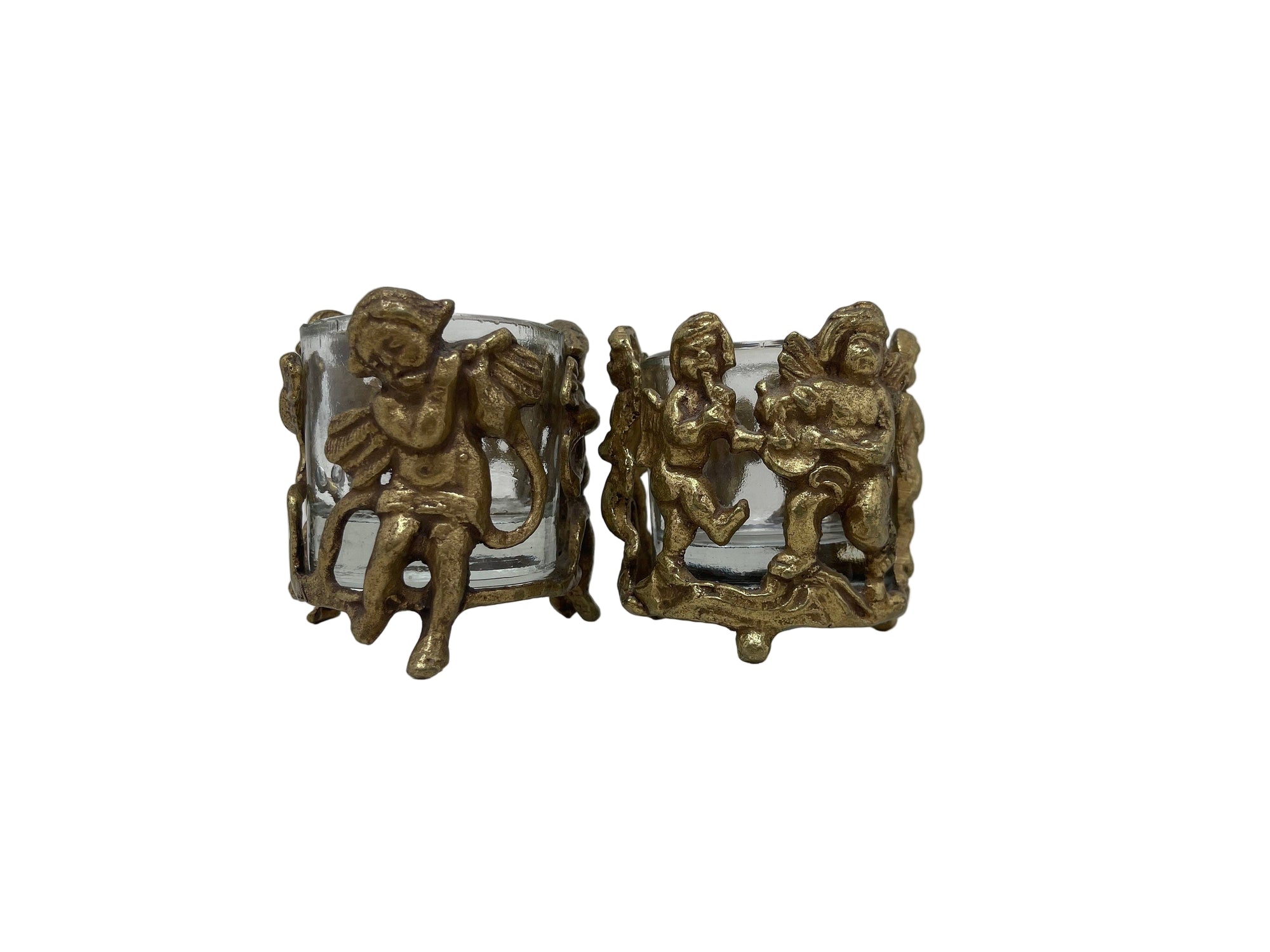 Vintage Brass Cherub Votive Candle Holders