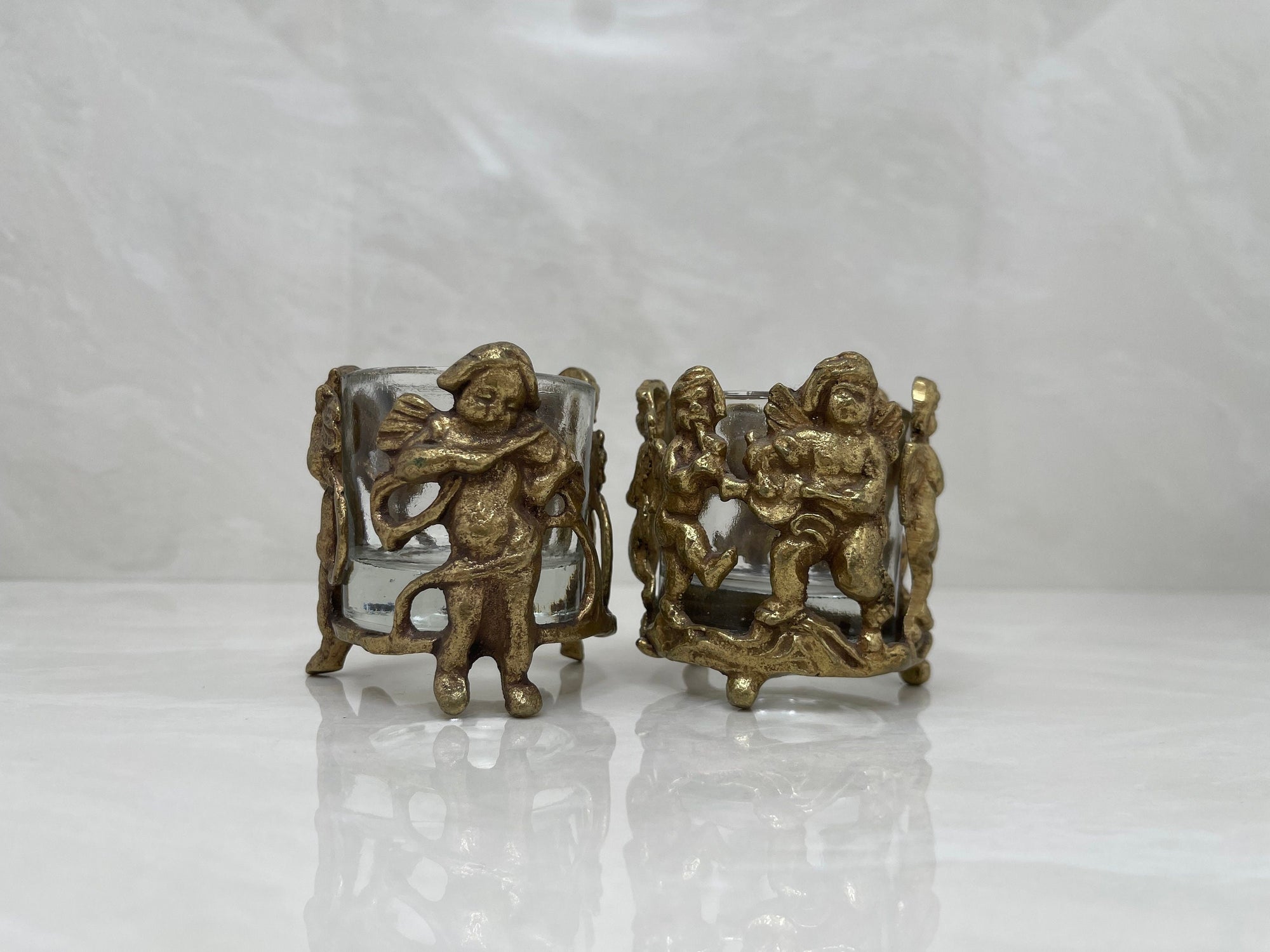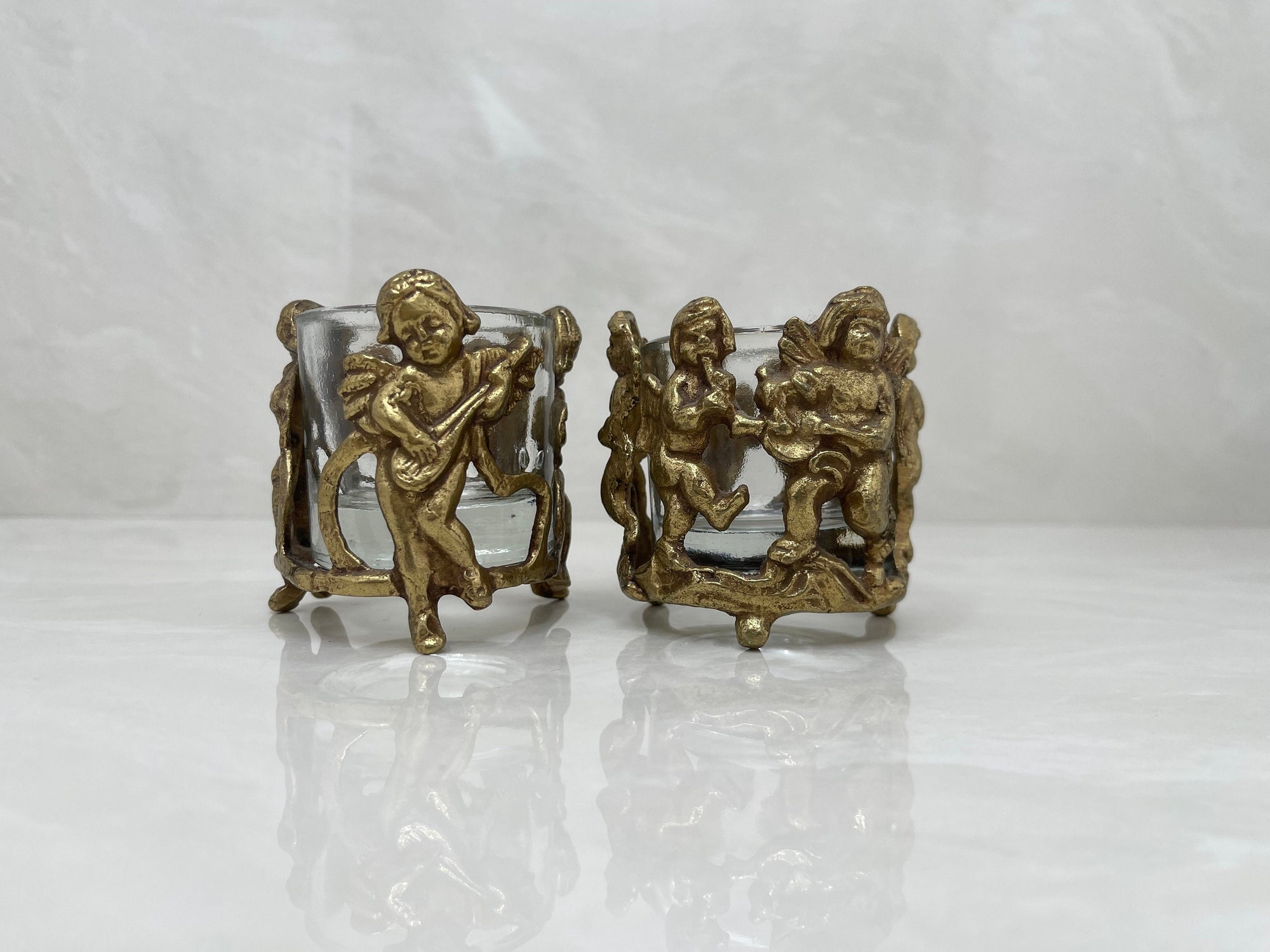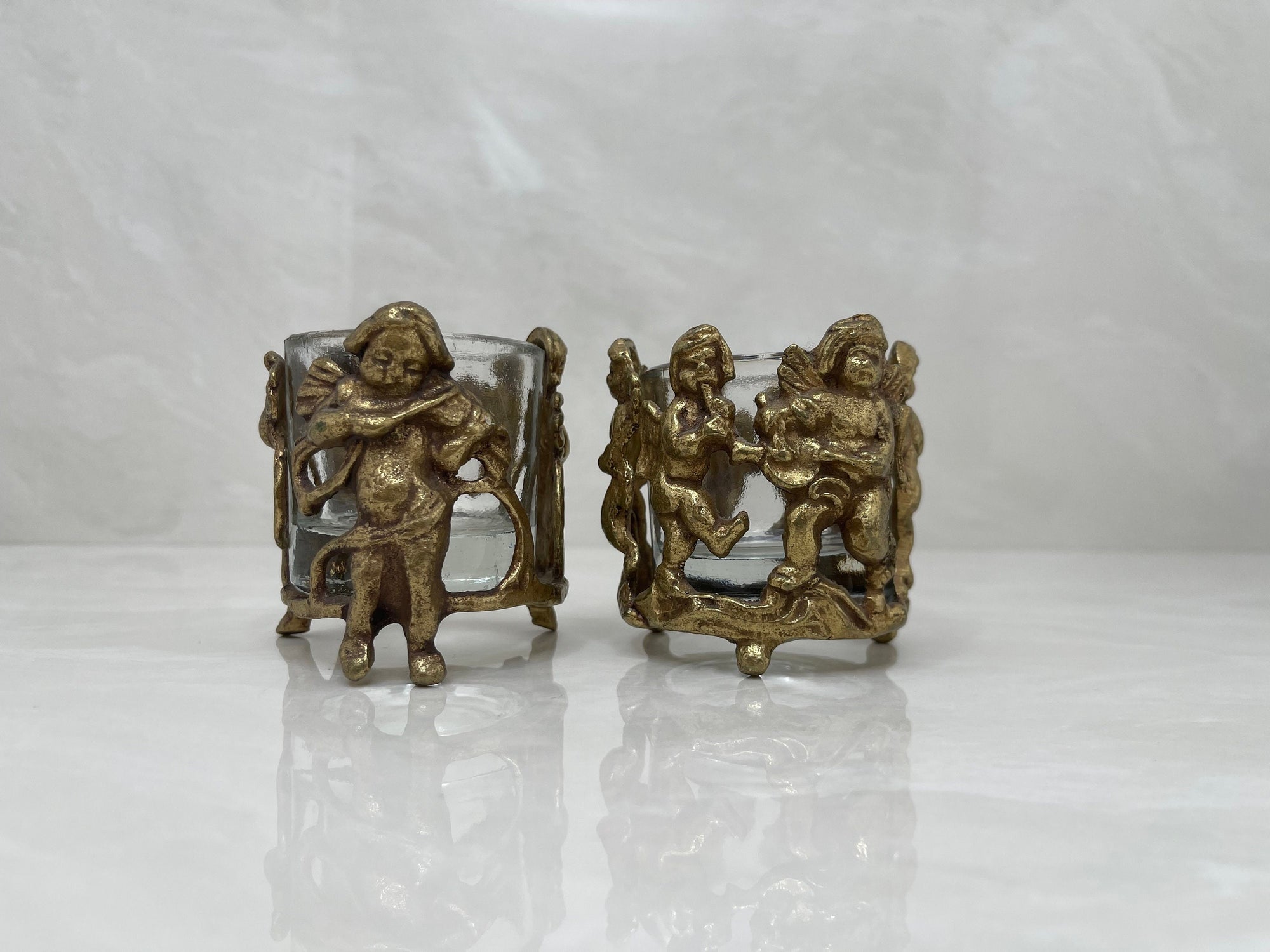 Vintage Brass Cherub Votive Candle Holders