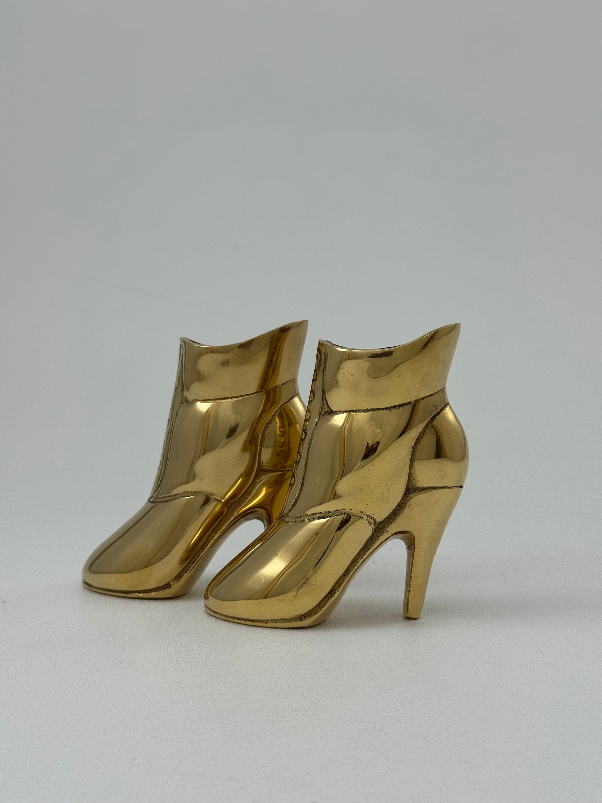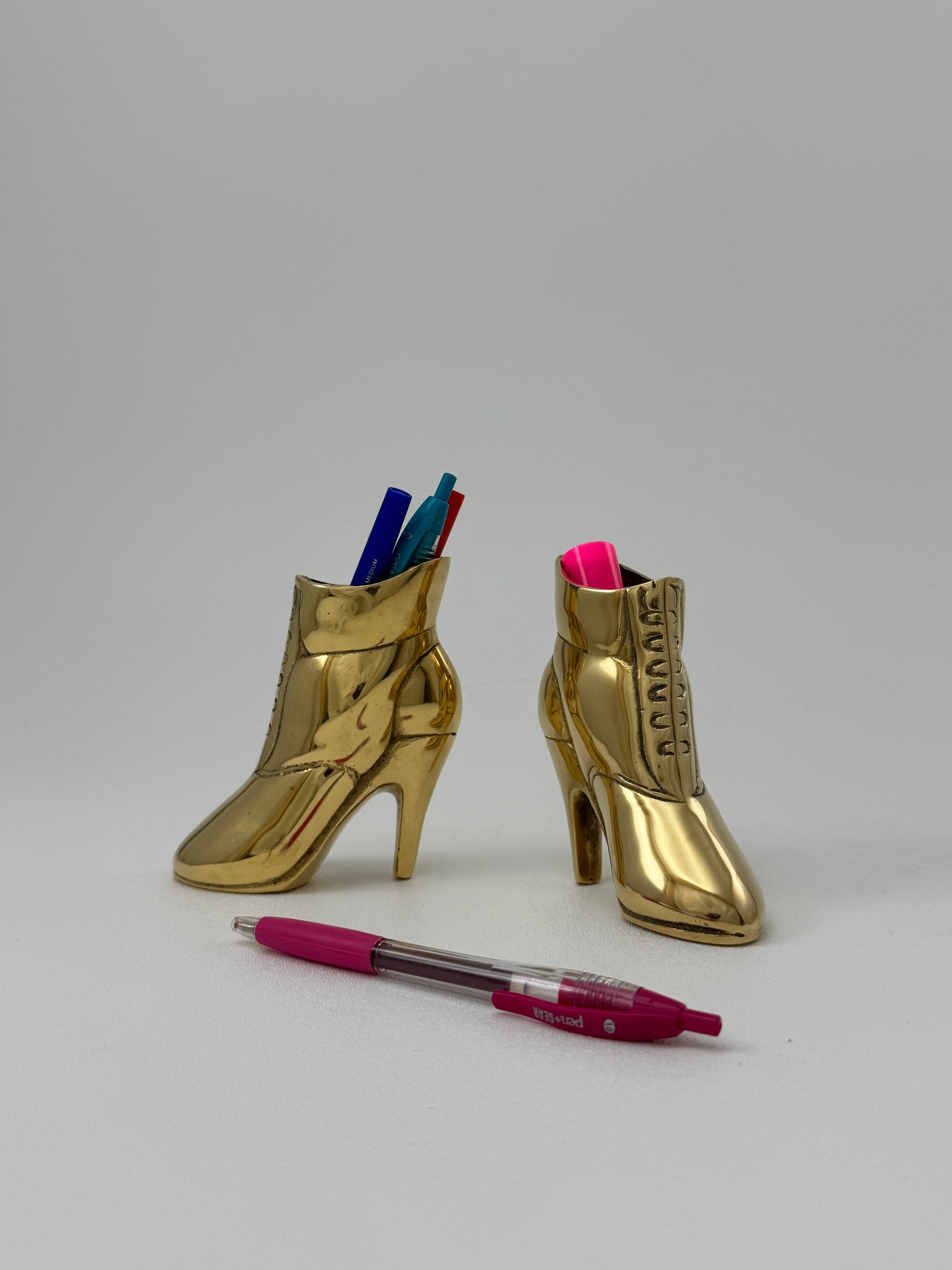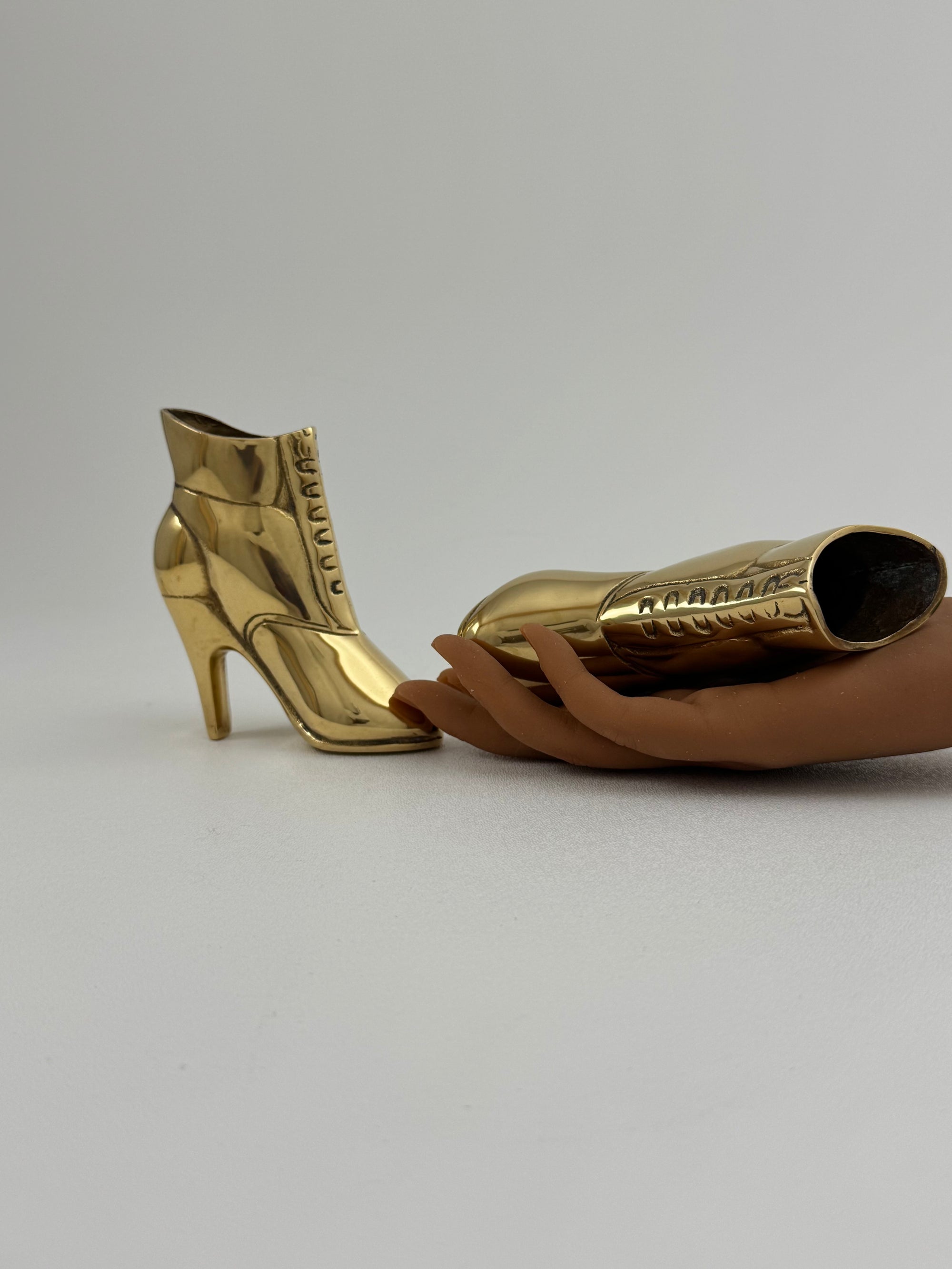 Vintage Mini Brass High-Heel Button Boots — Pair | 4.25” Vanity & Desk Decor, Pen Holders, Feminine Glam, Hollywood Regency