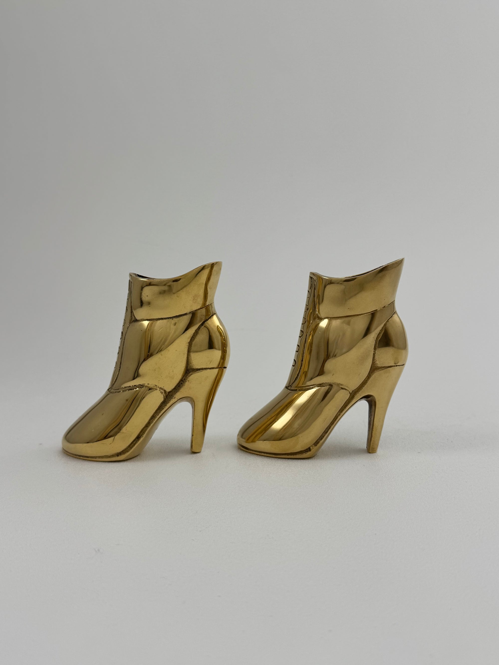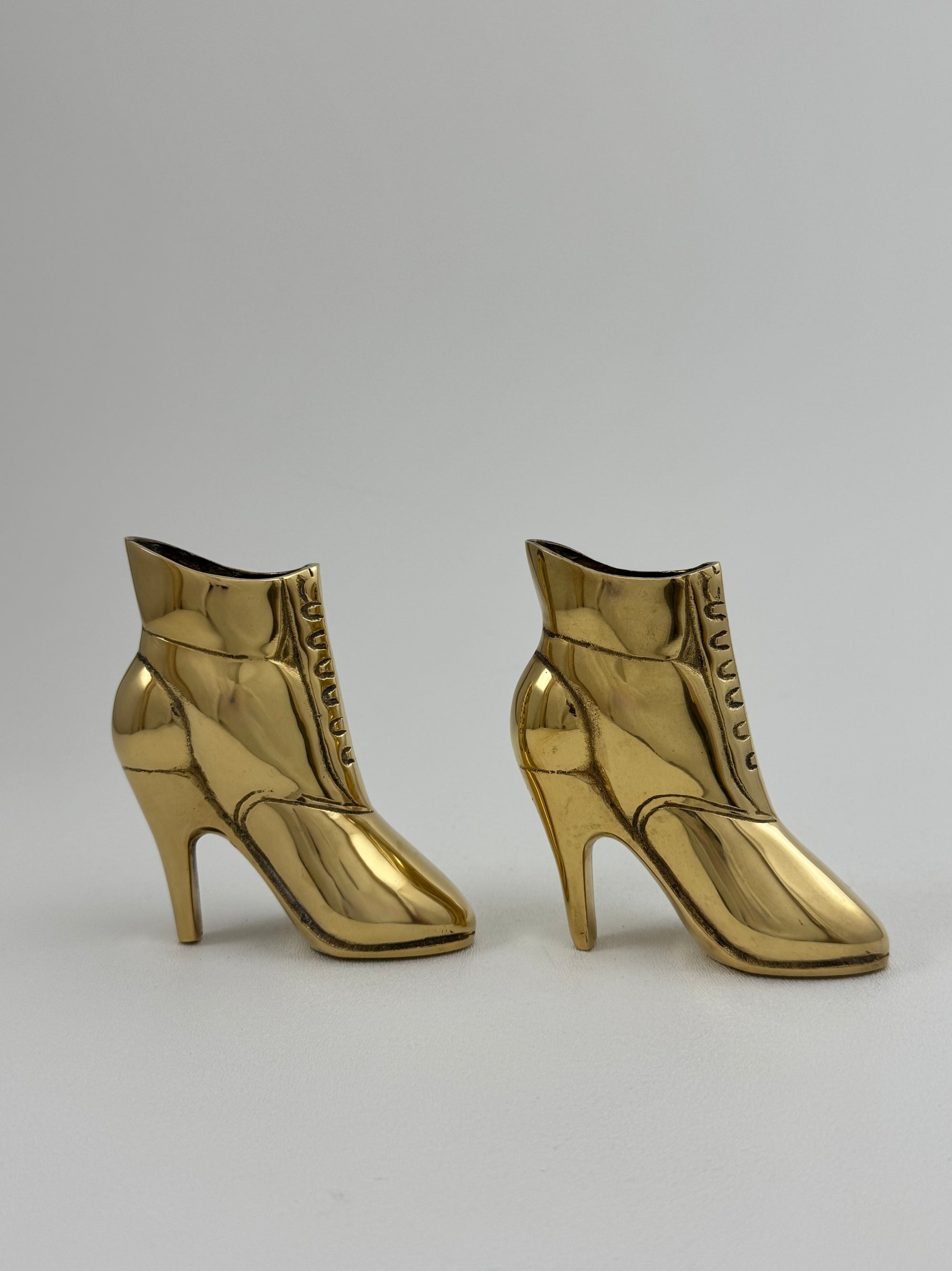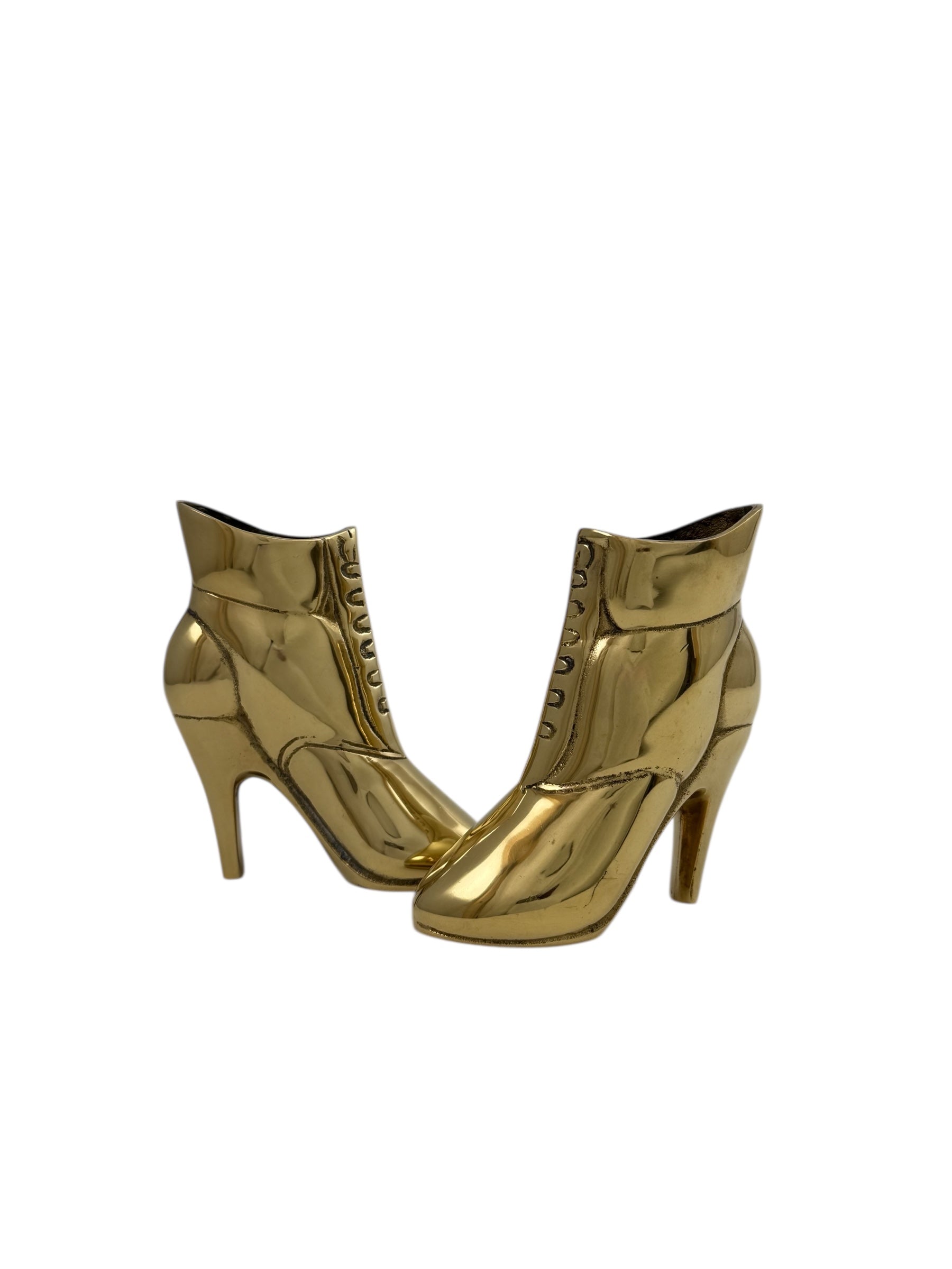 Vintage Mini Brass High-Heel Button Boots — Pair | 4.25” Vanity & Desk Decor, Pen Holders, Feminine Glam, Hollywood Regency