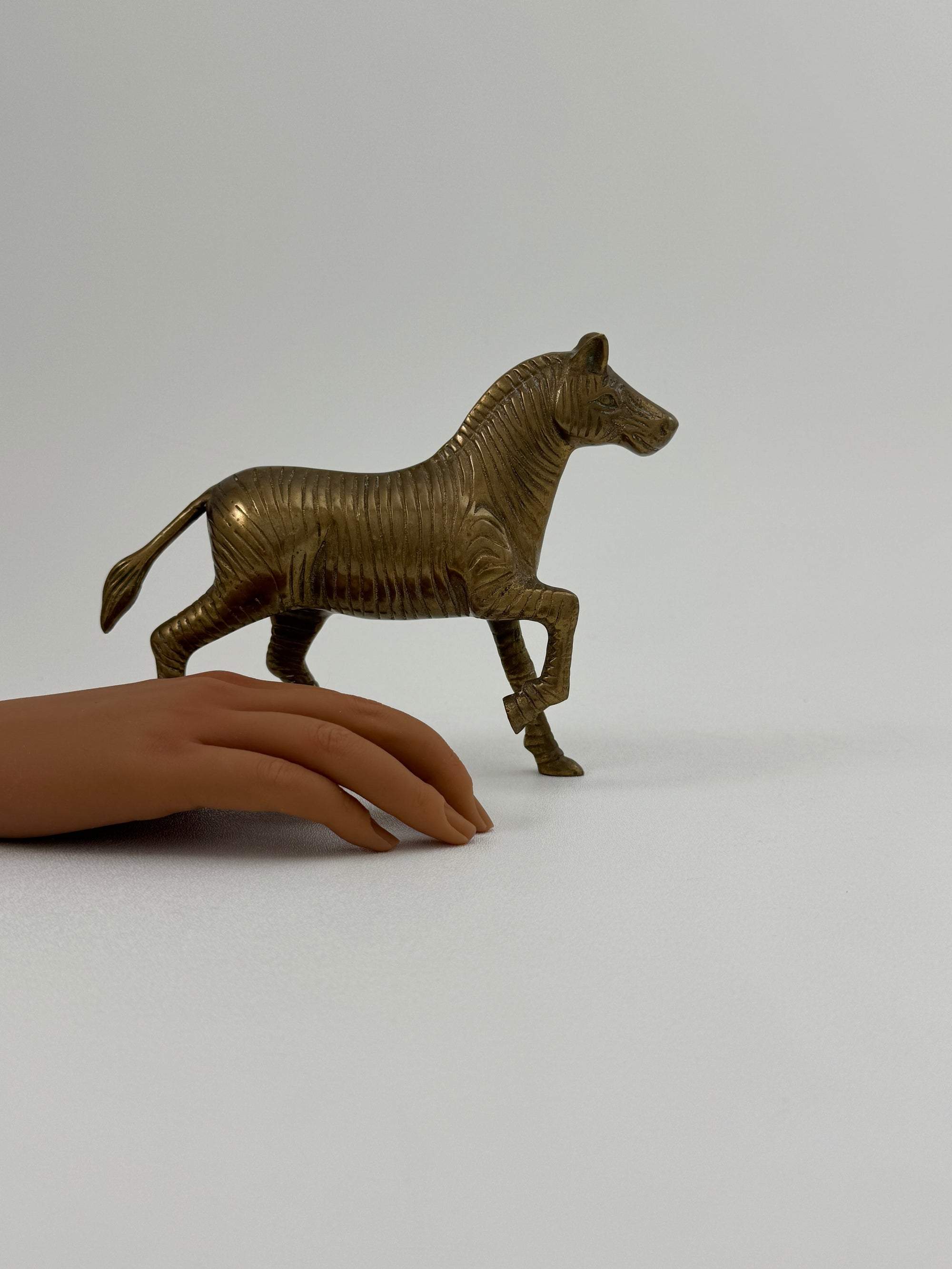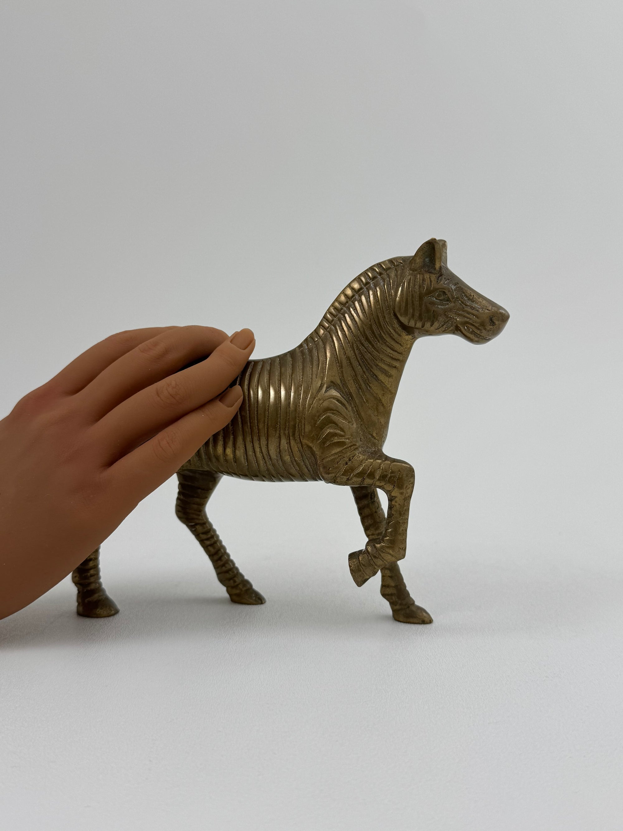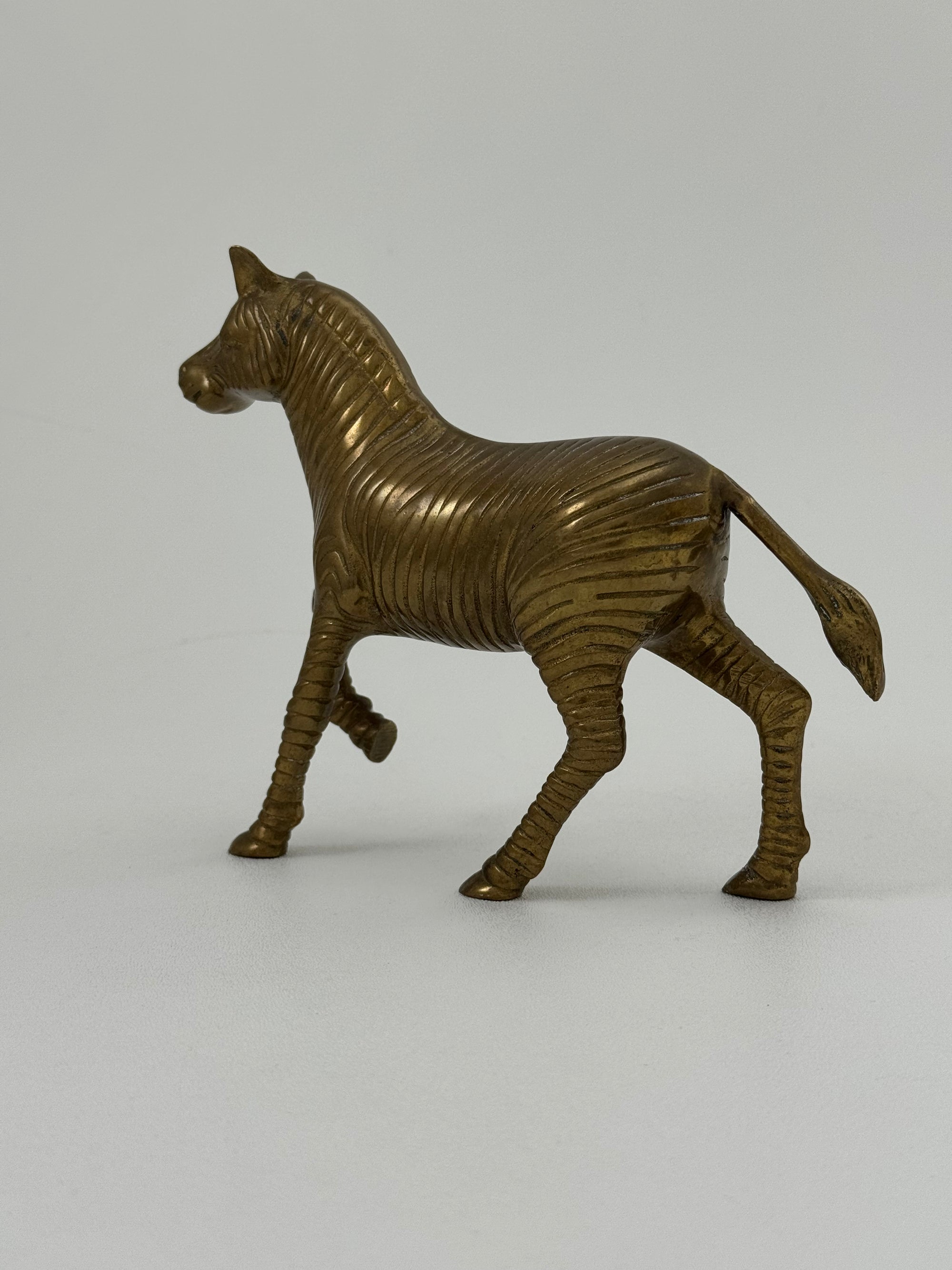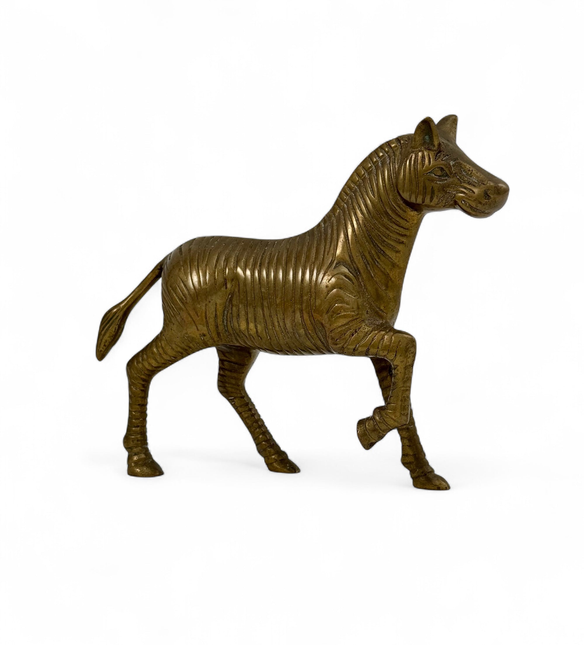 Vintage Brass Zebra Figurine – Safari Animal Sculpture | Hollywood Regency & Mid-Century Modern Decor