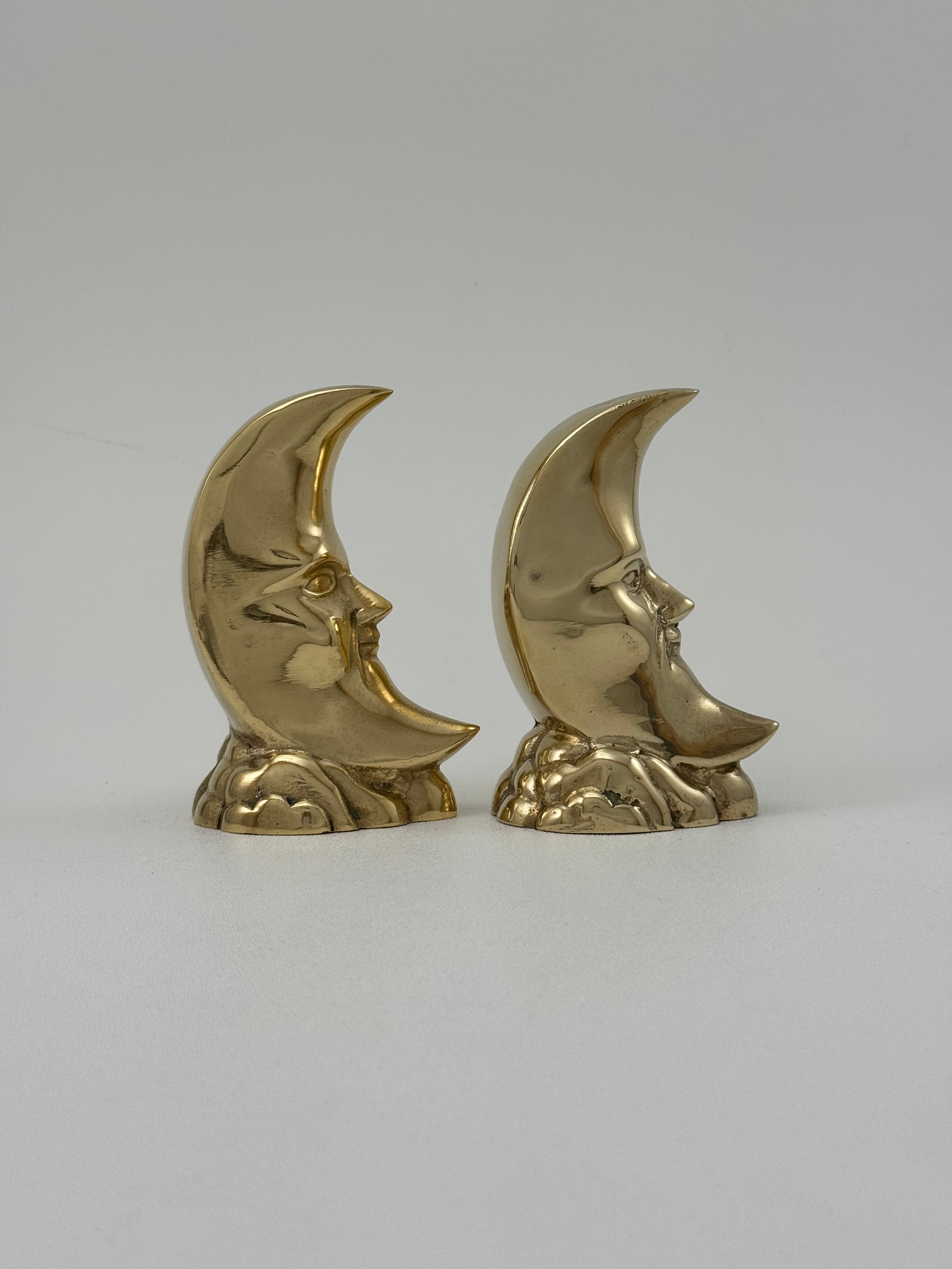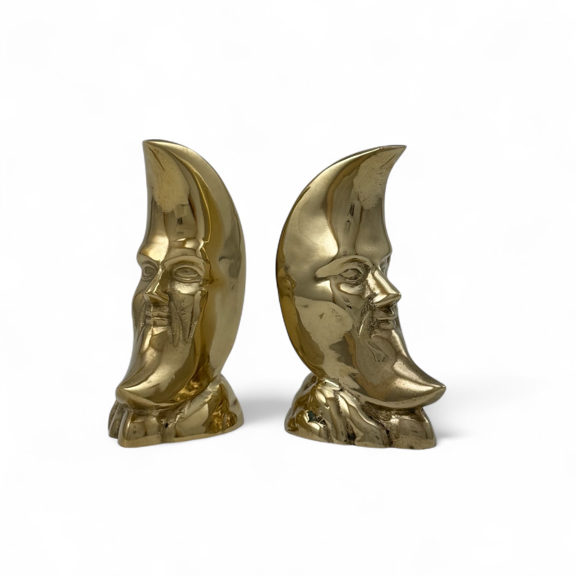 Vintage Brass “Man in the Moon” Figurines – Set of 2