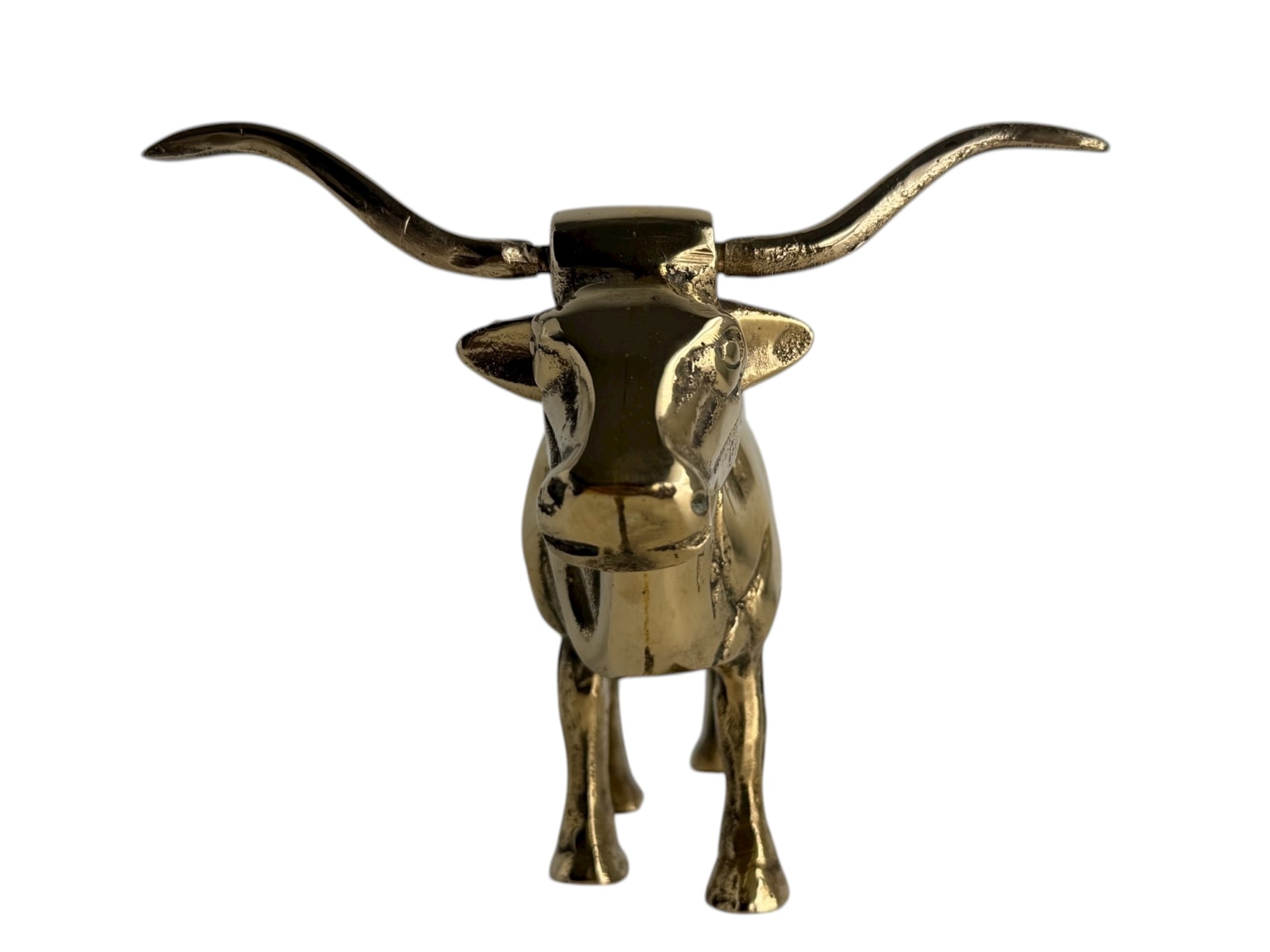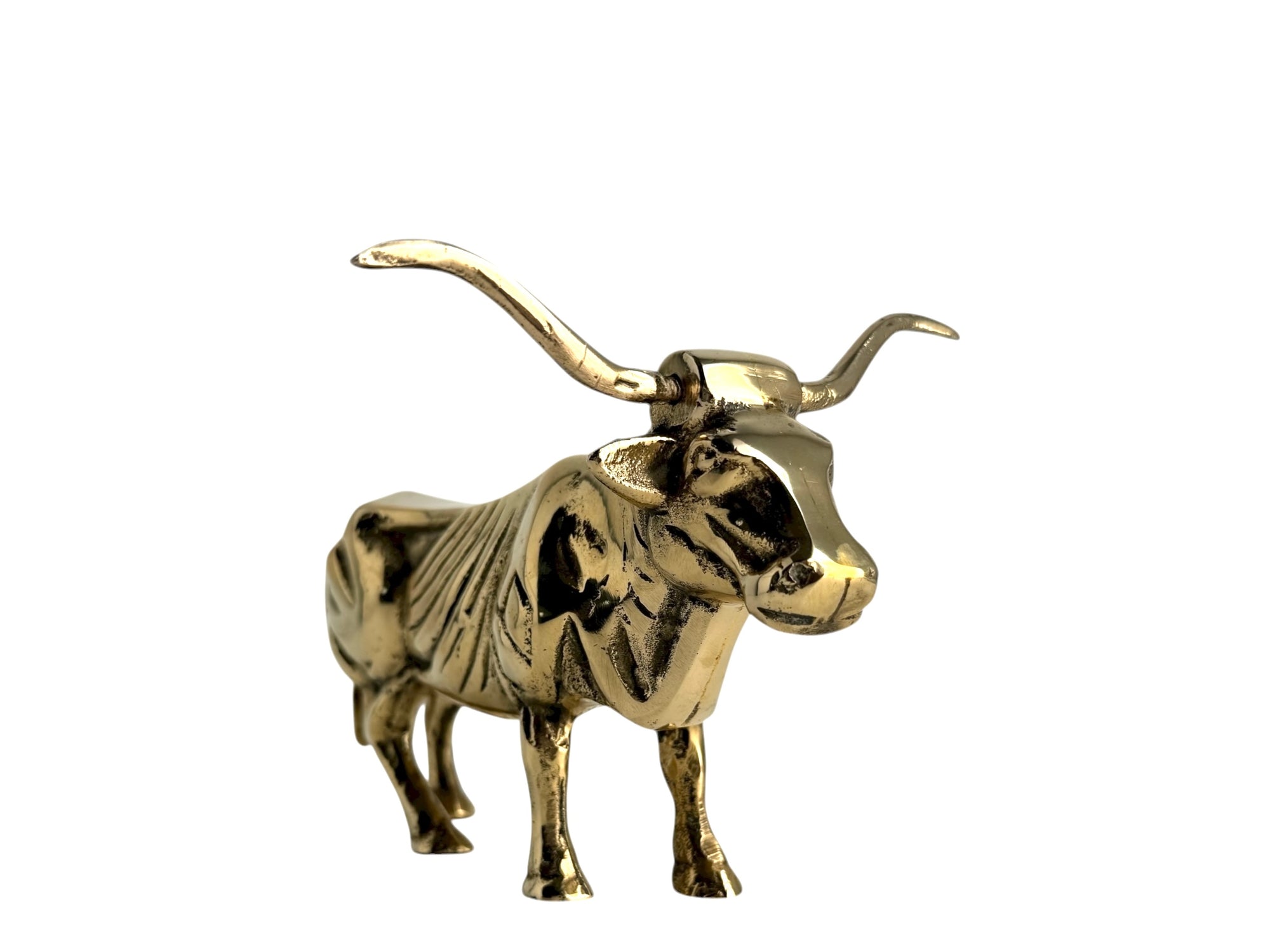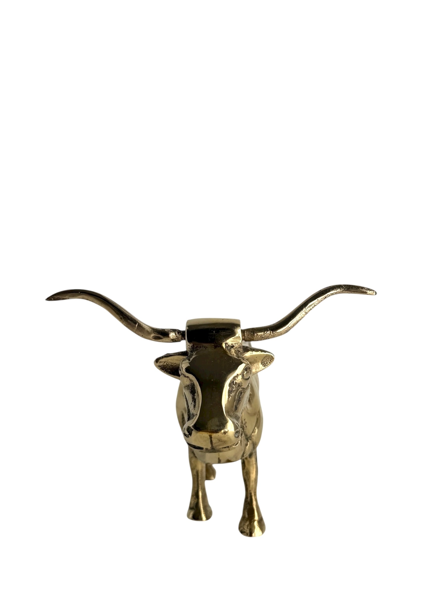 Vintage Brass Longhorn Bull Sculpture – 7.5” Long, 5.75” Horn Span, 4.75” Tall – Western-Southwestern-Texas Ranch Décor