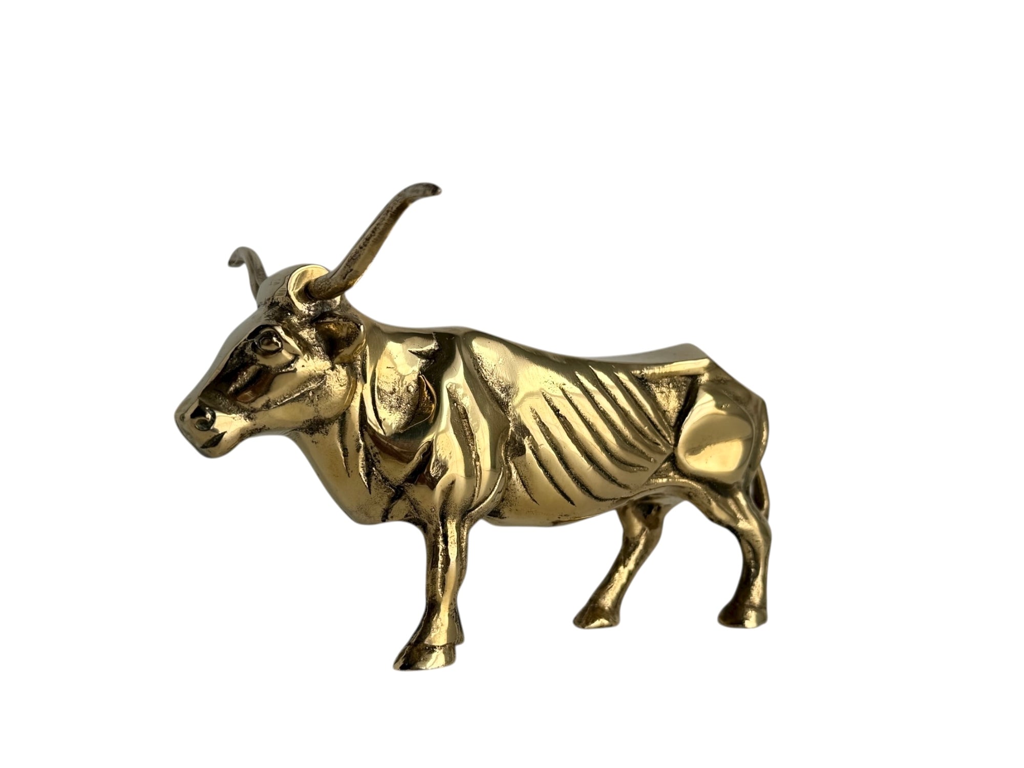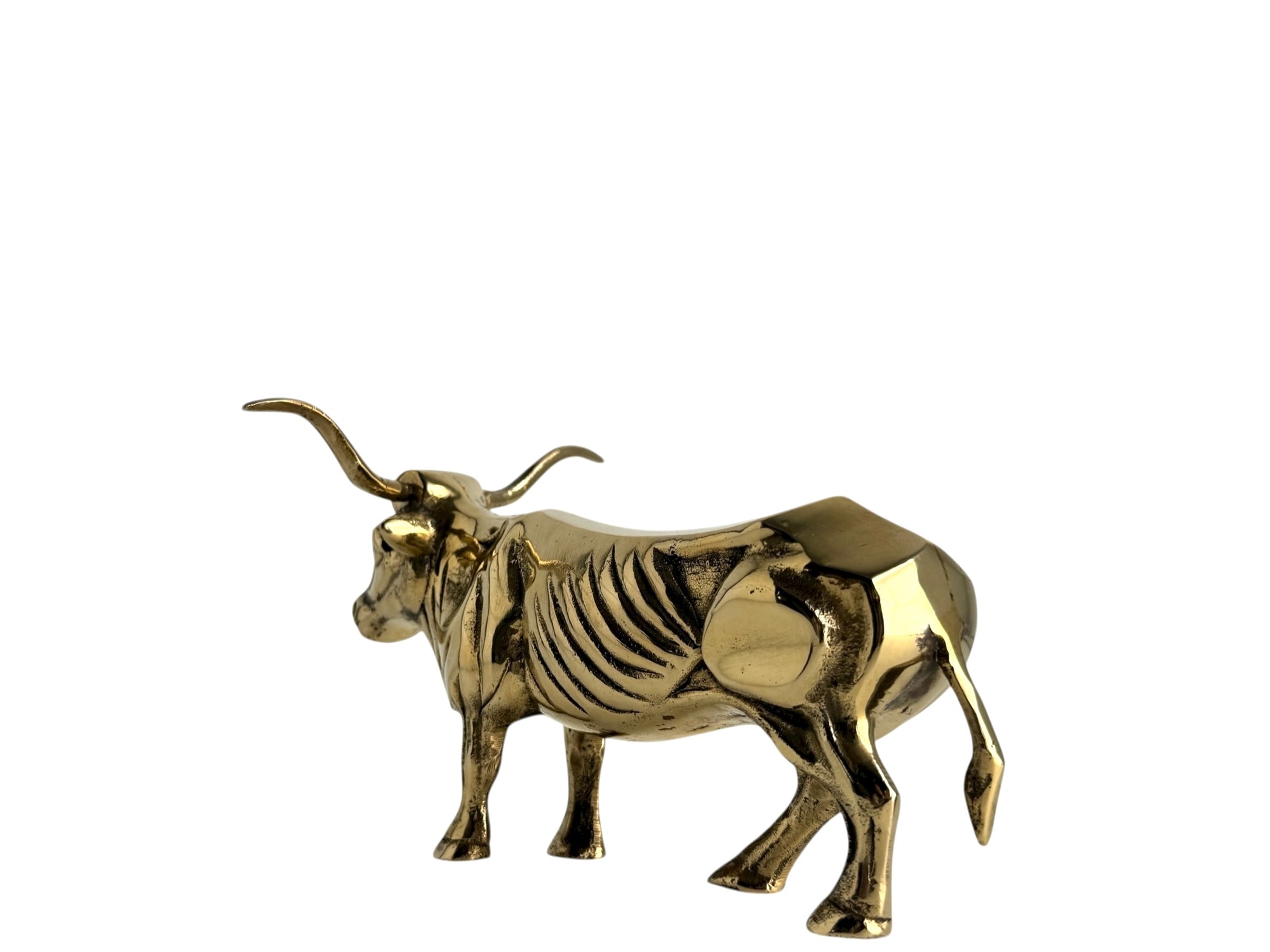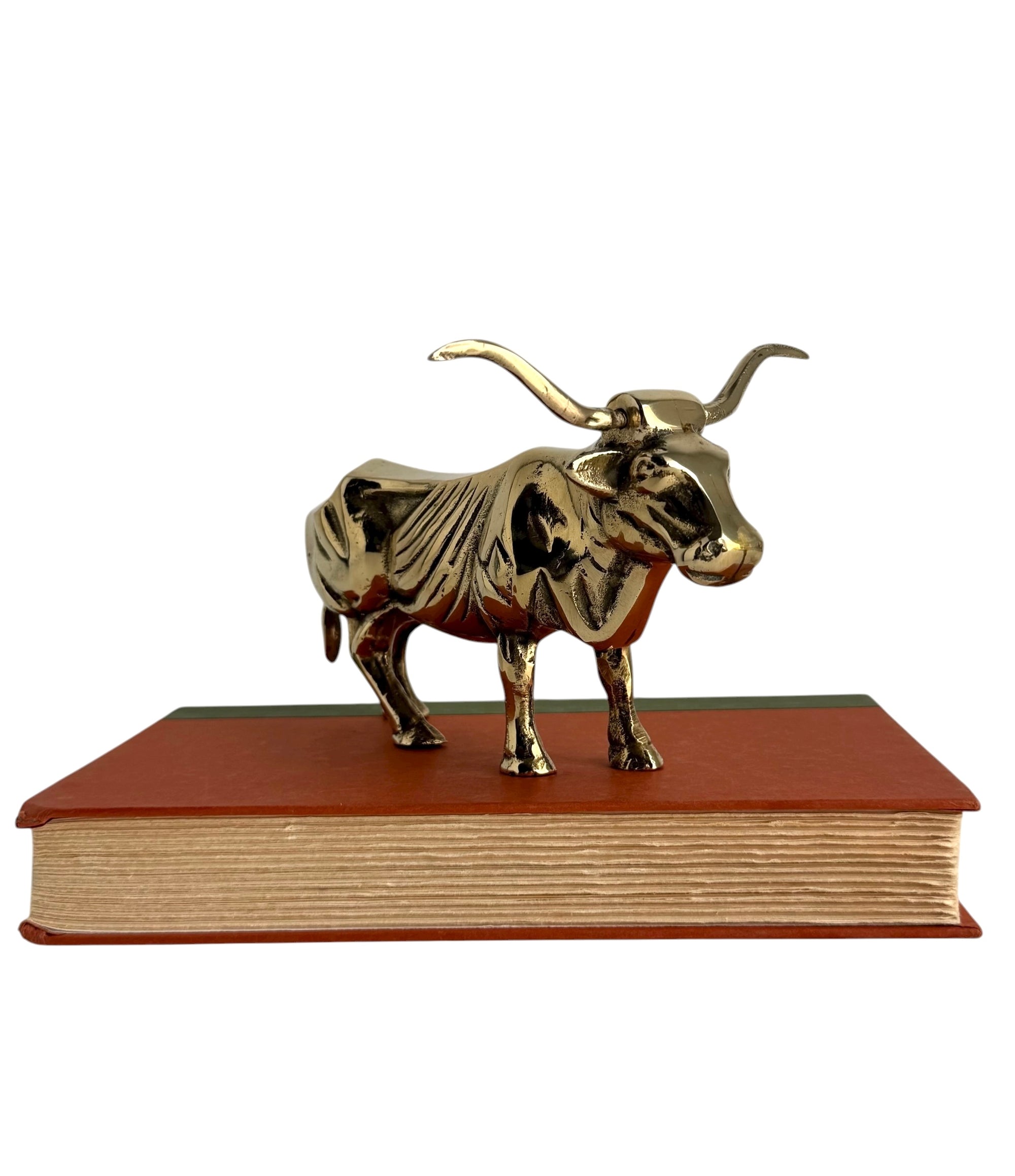 Vintage Brass Longhorn Bull Sculpture – 7.5” Long, 5.75” Horn Span, 4.75” Tall – Western-Southwestern-Texas Ranch Décor