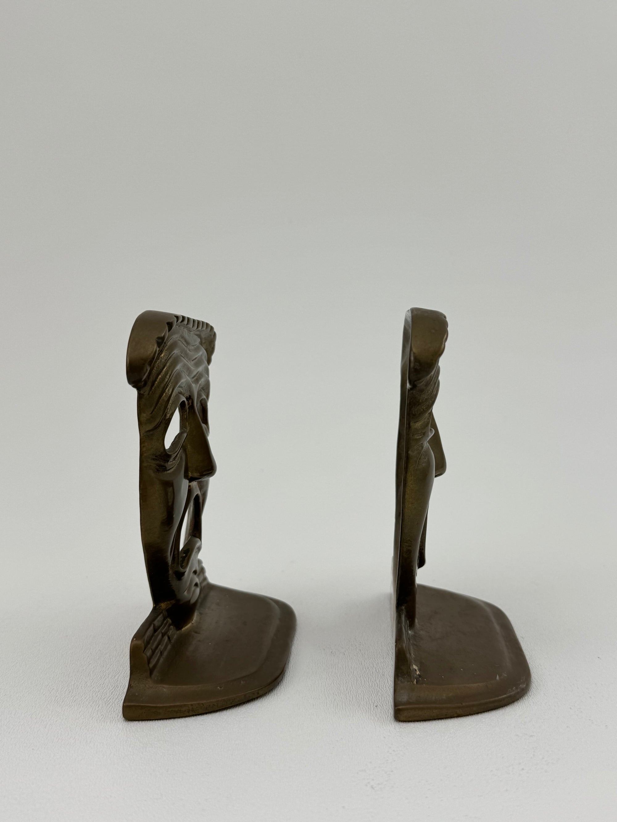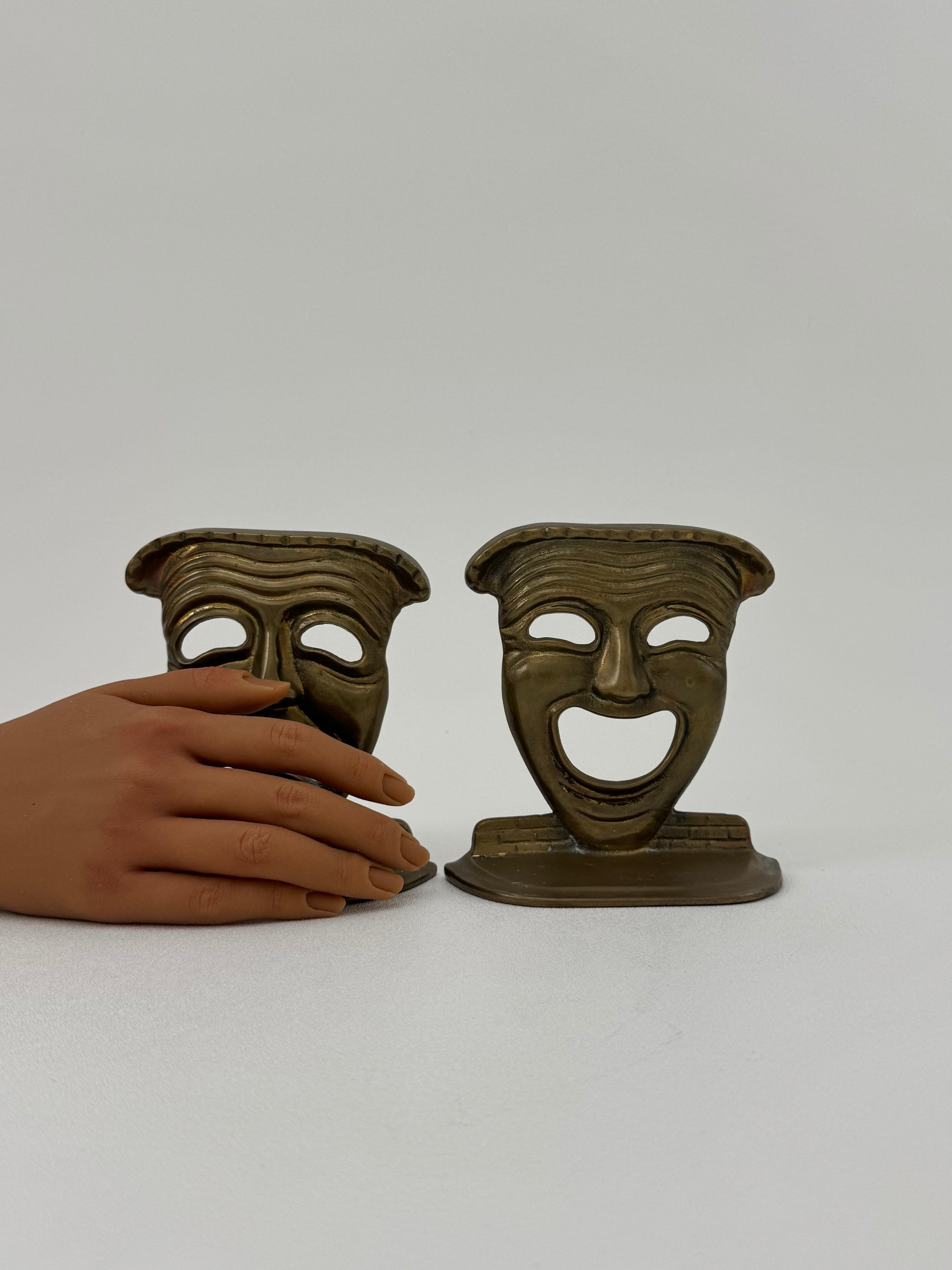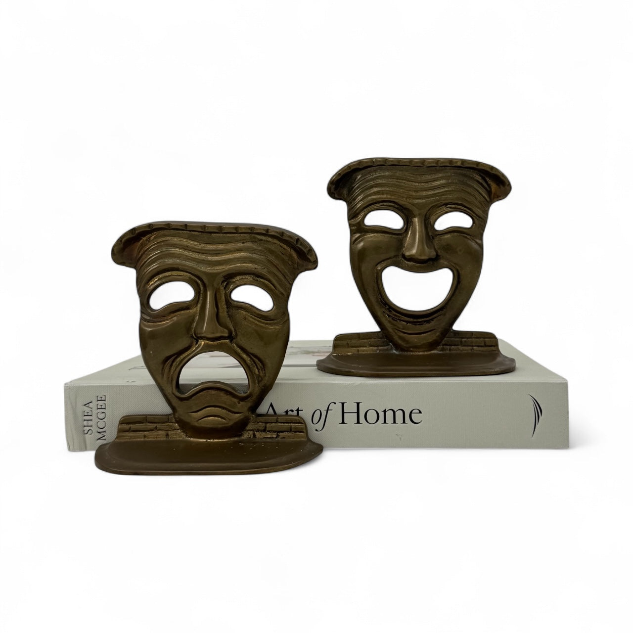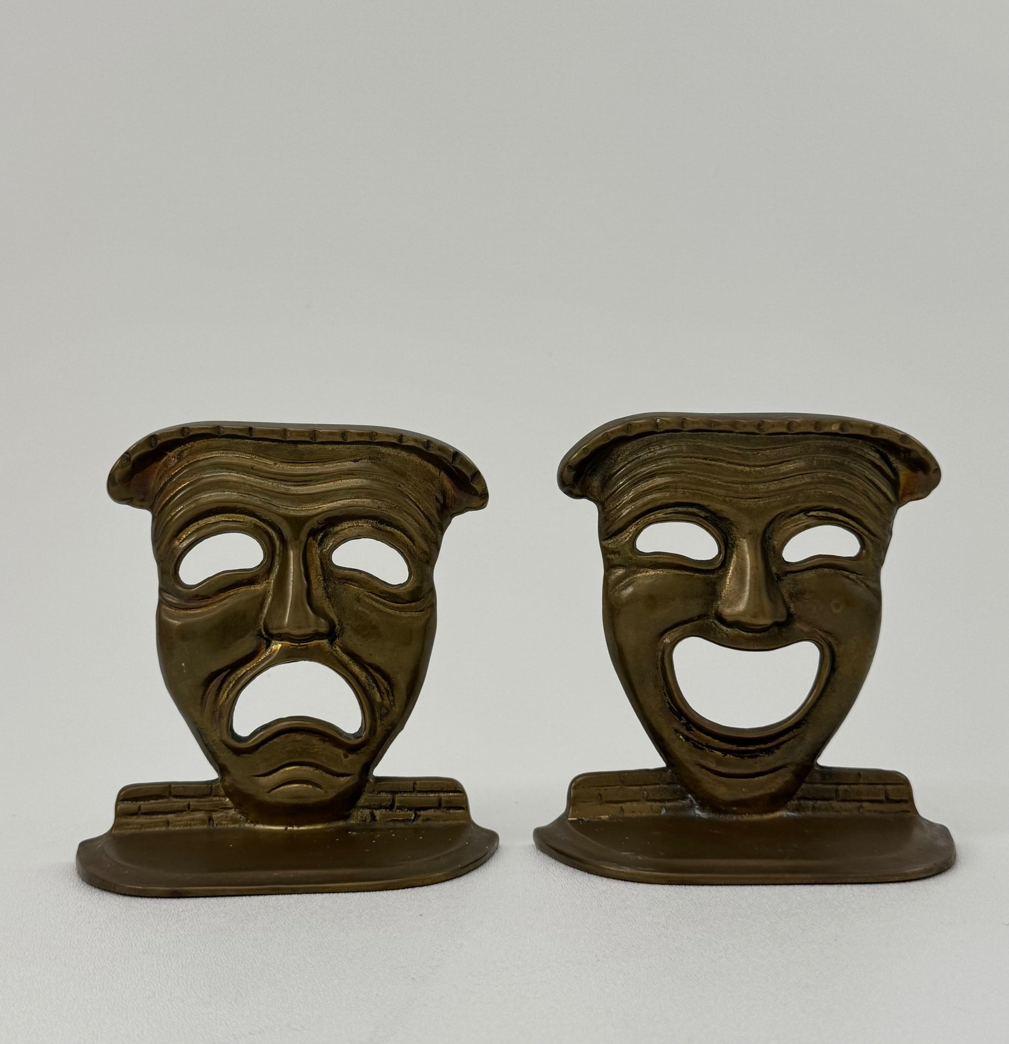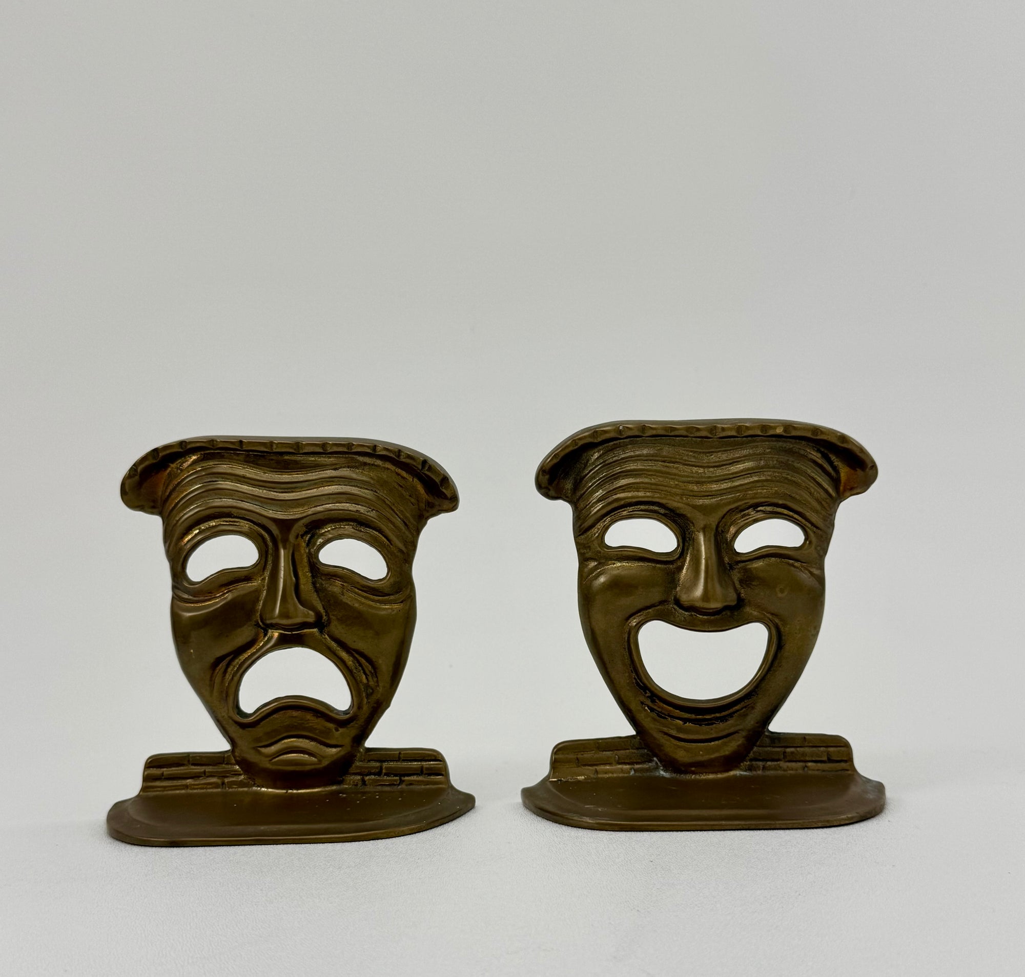 Vintage Brass Comedy & Tragedy Masks Decorative Bookends