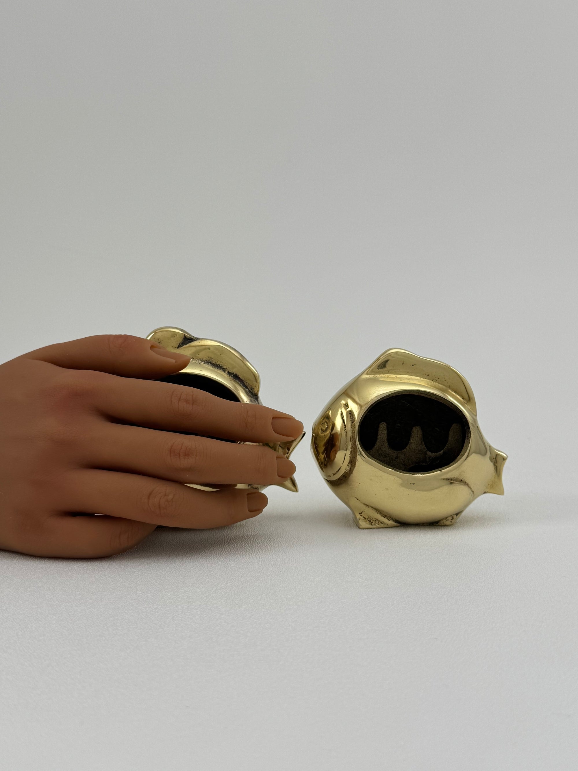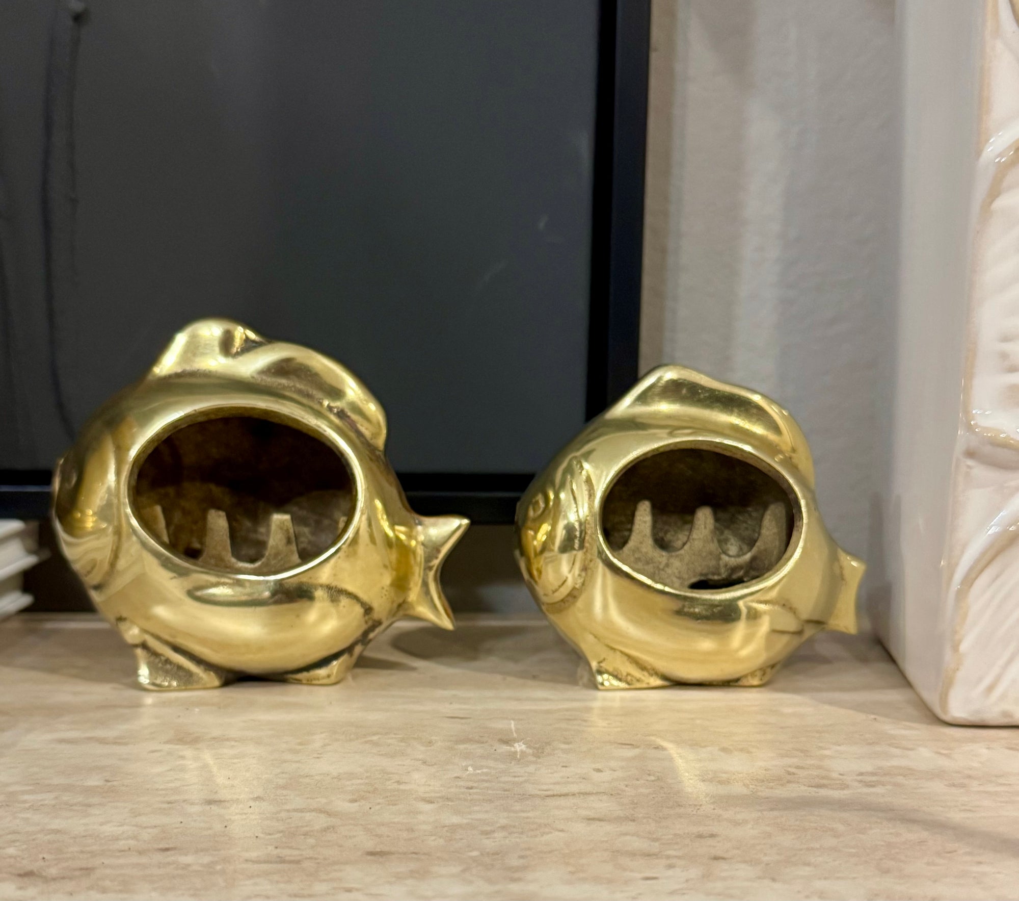 Pair of Vintage Brass Fish Ashtrays – His & Hers– Mid Century Modern Hollywood Regency Coastal Decor