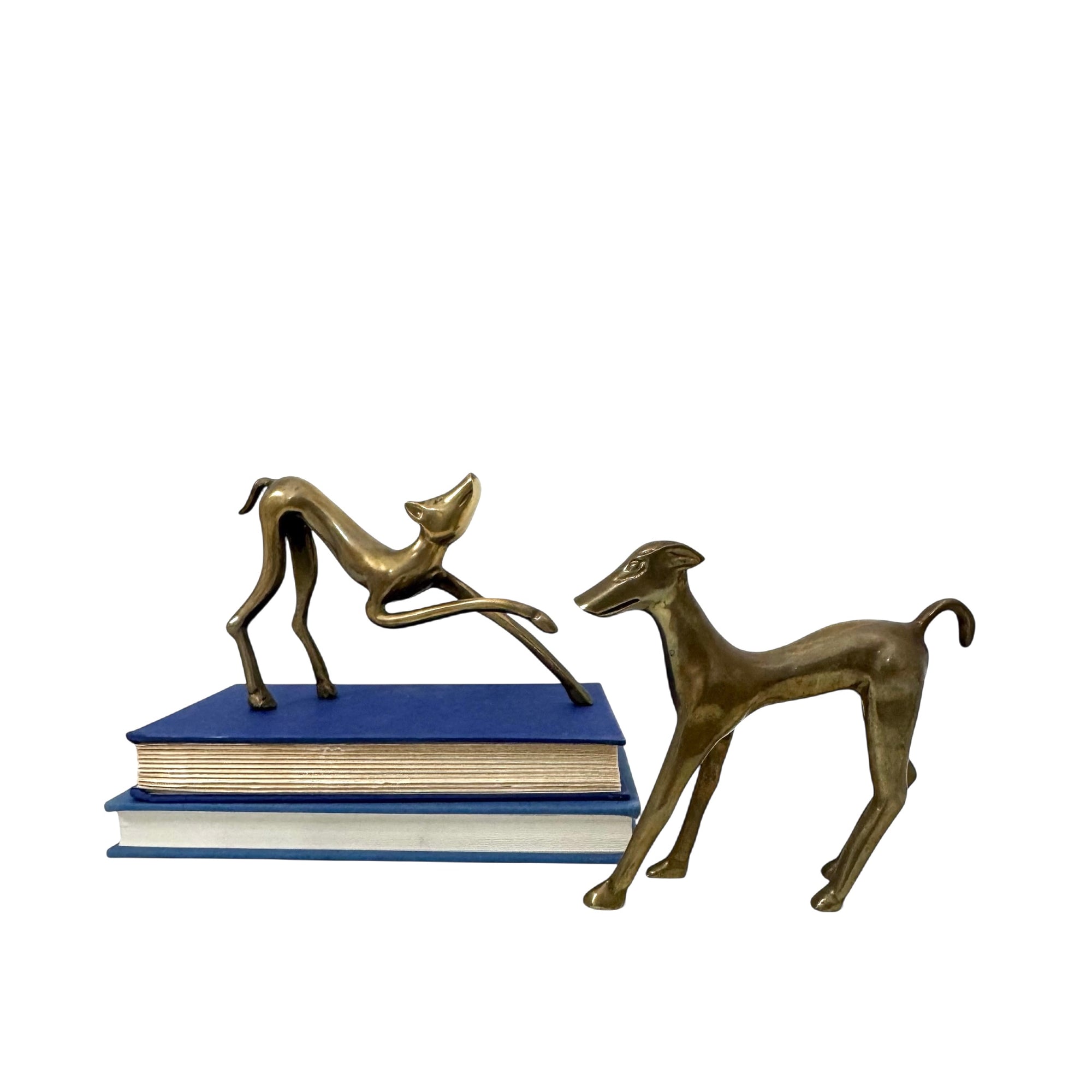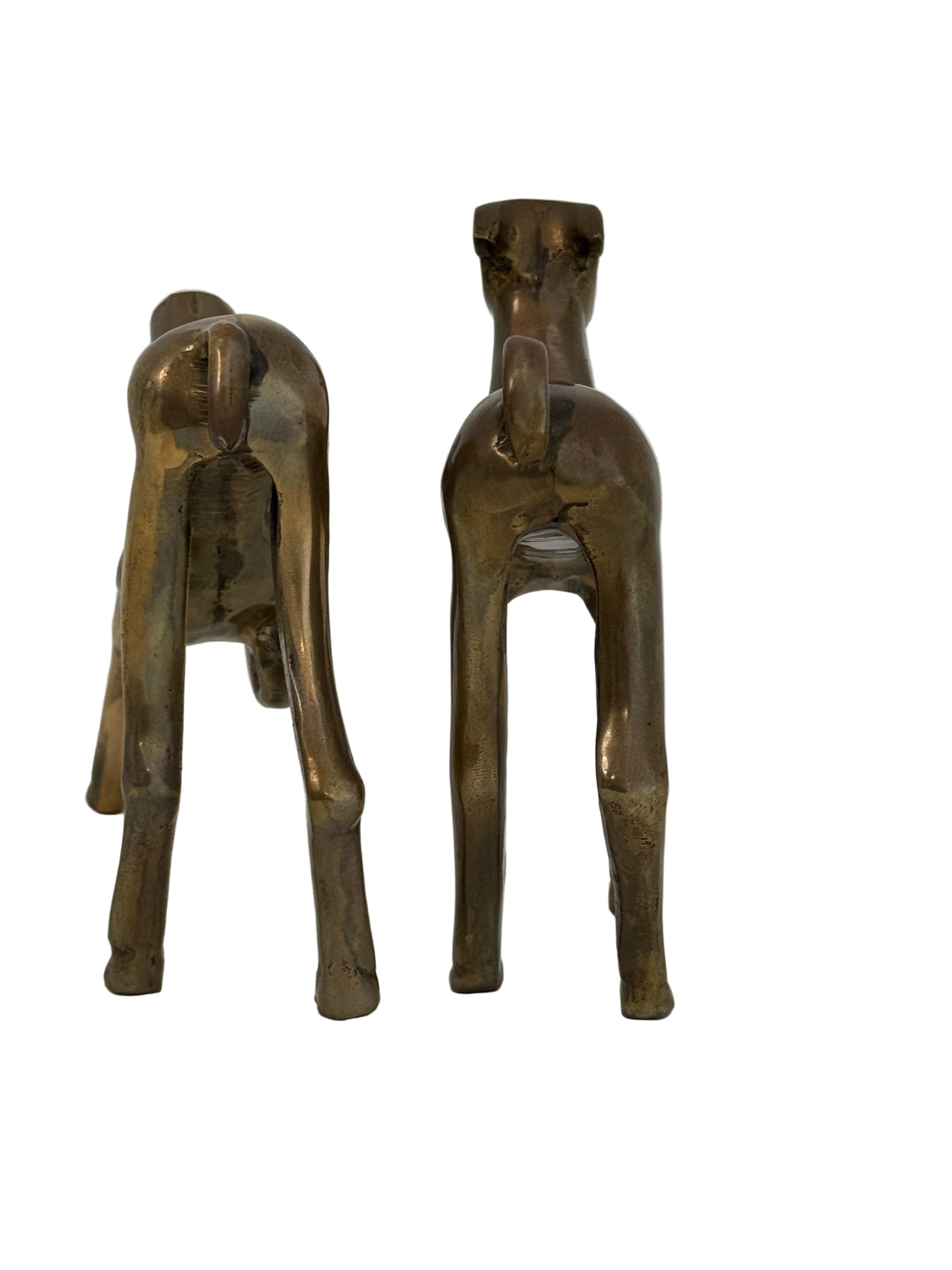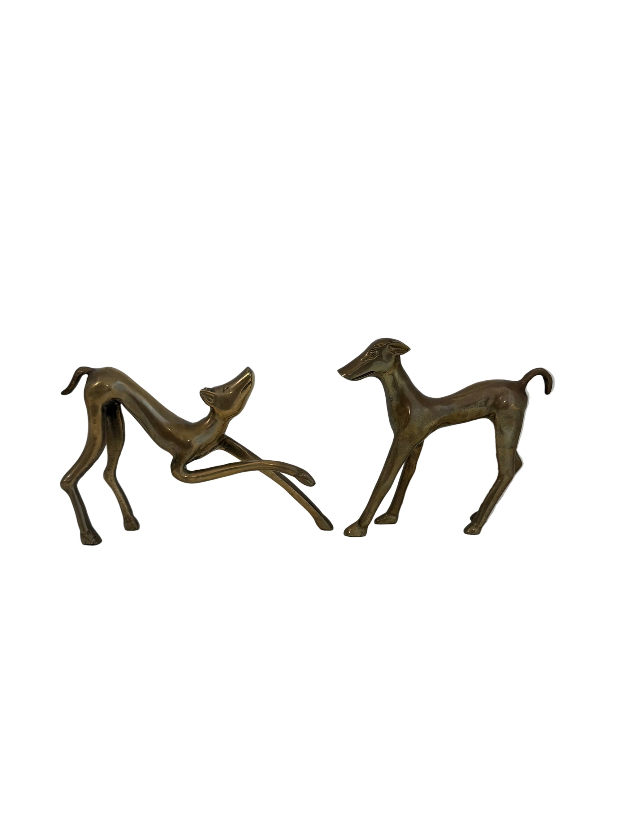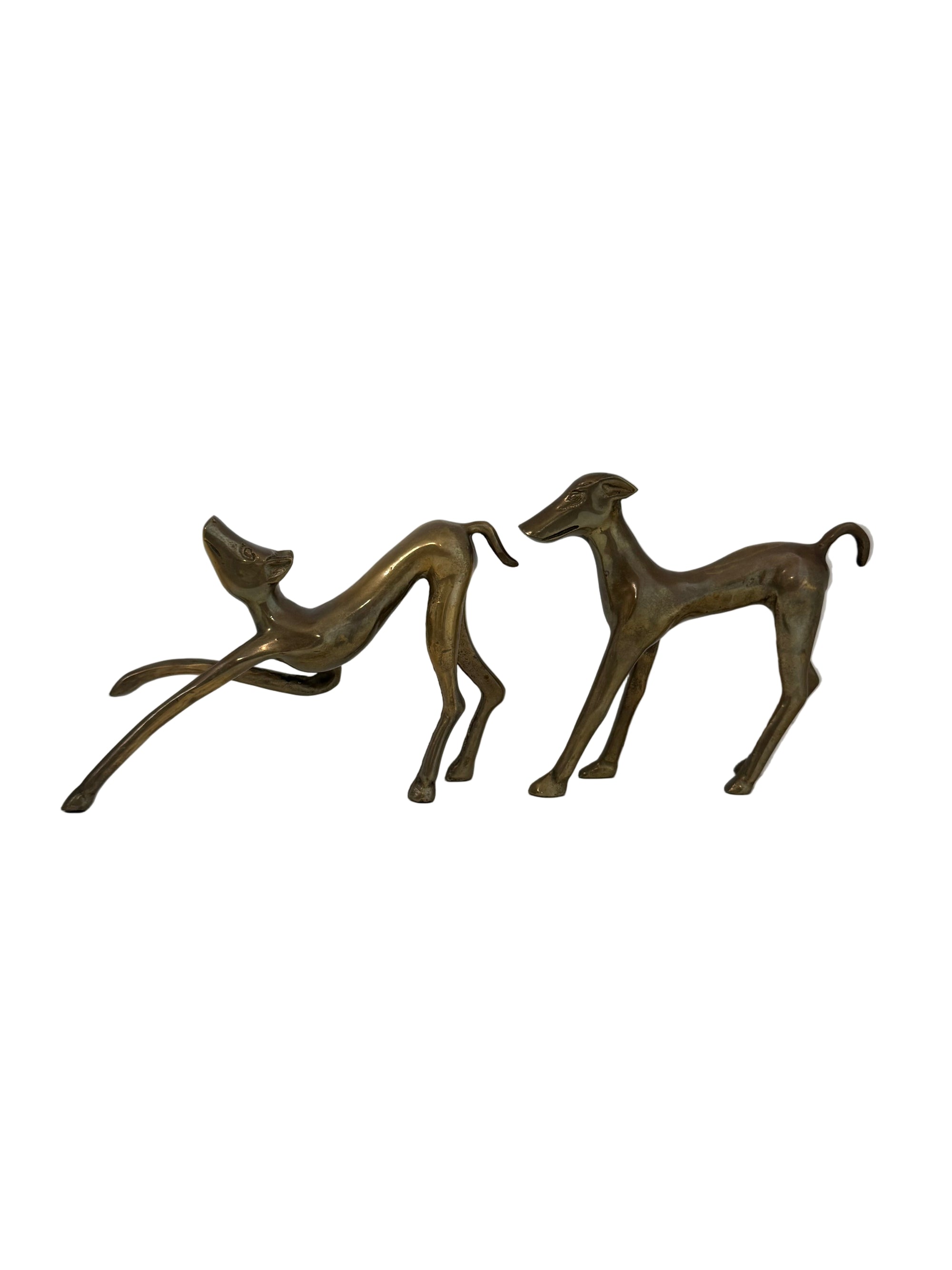 Vintage Mid-Century Brass Greyhound Dogs – Playful Pair of Sculptures