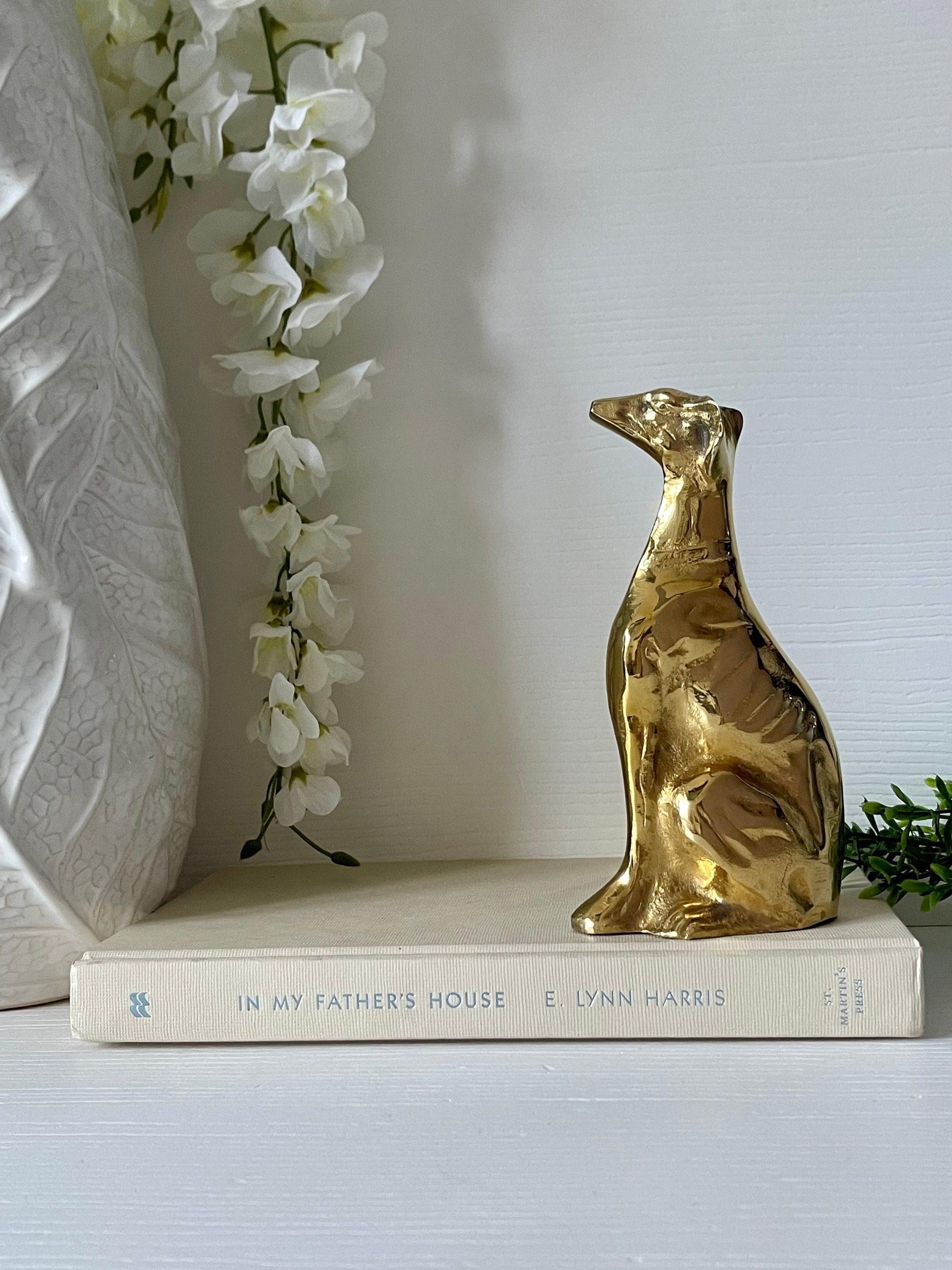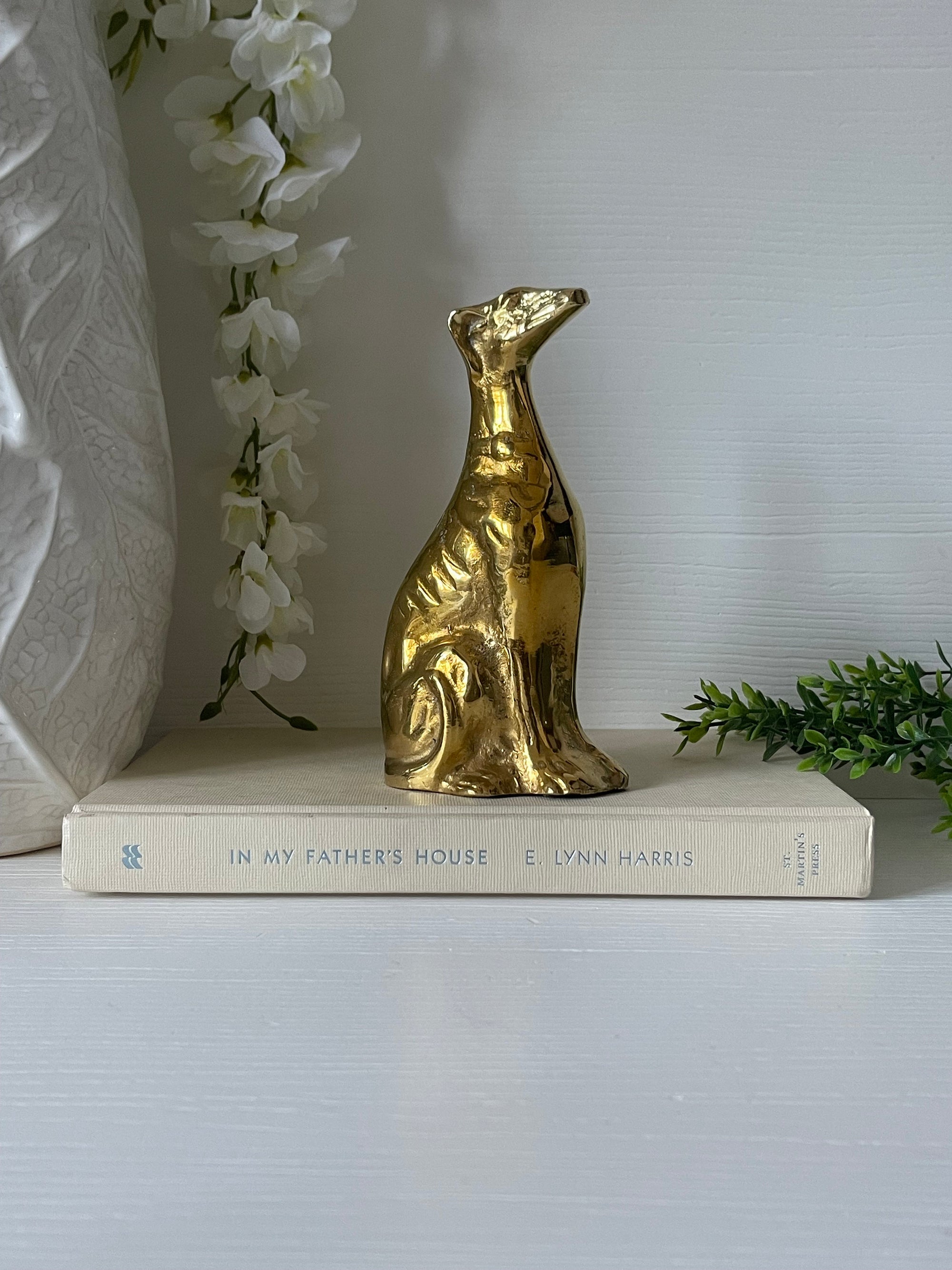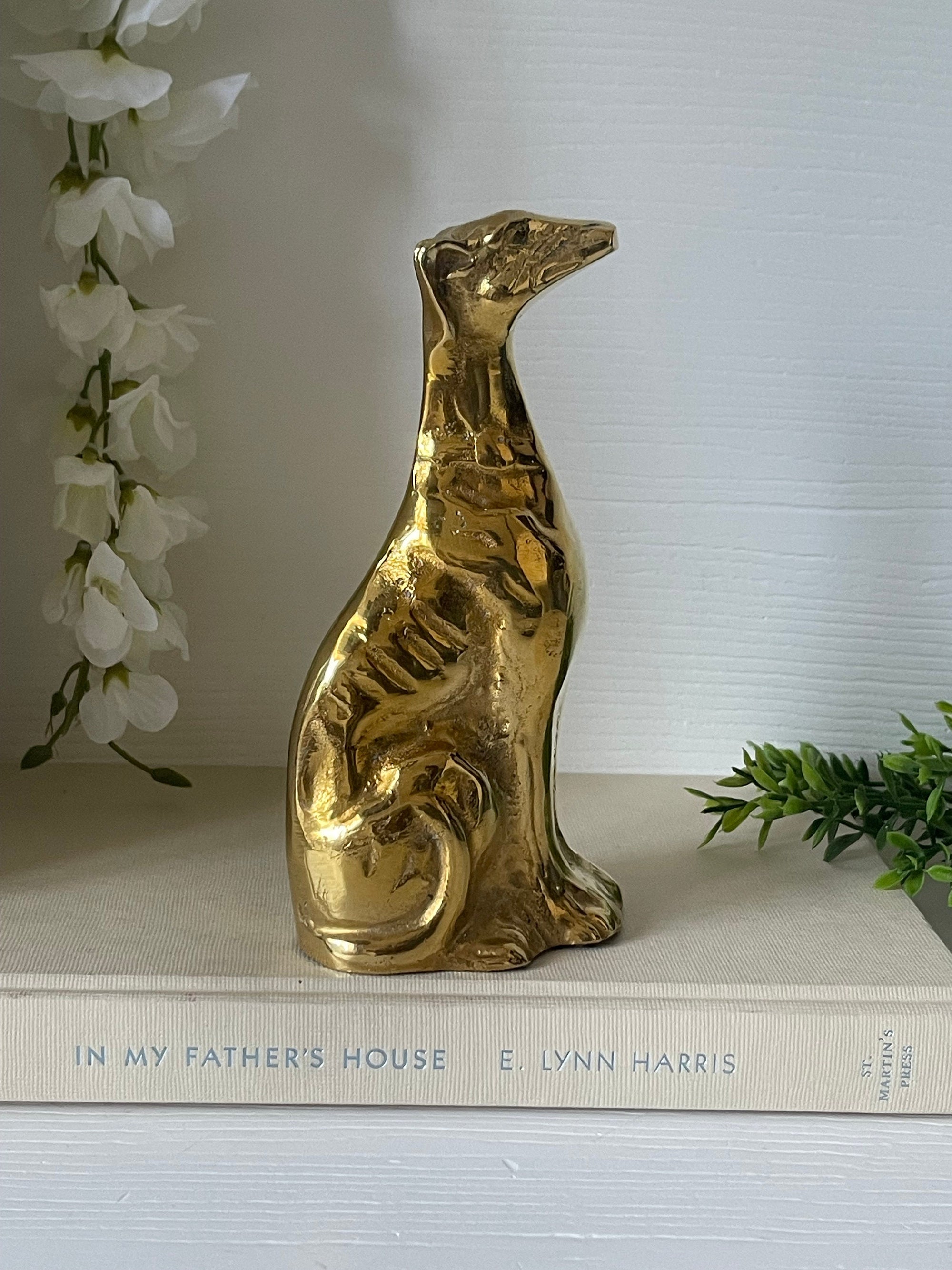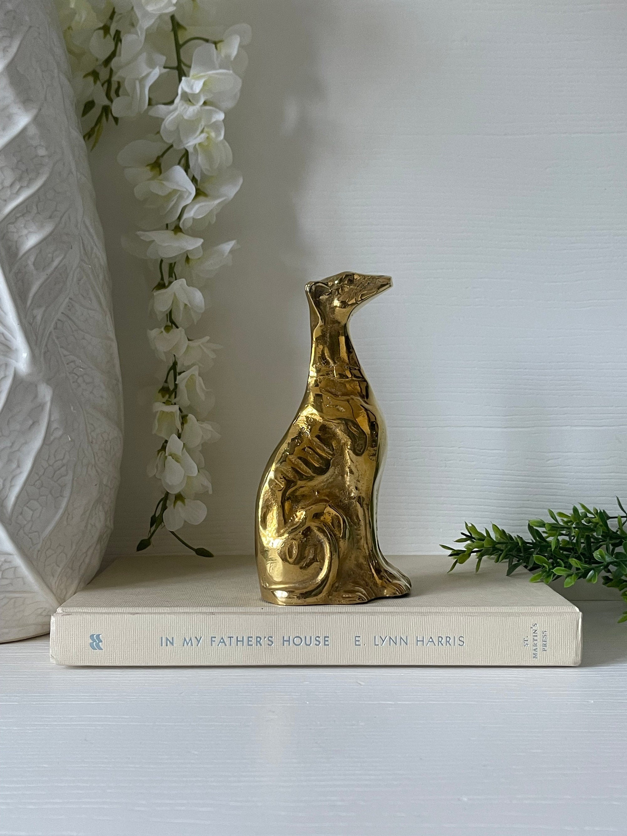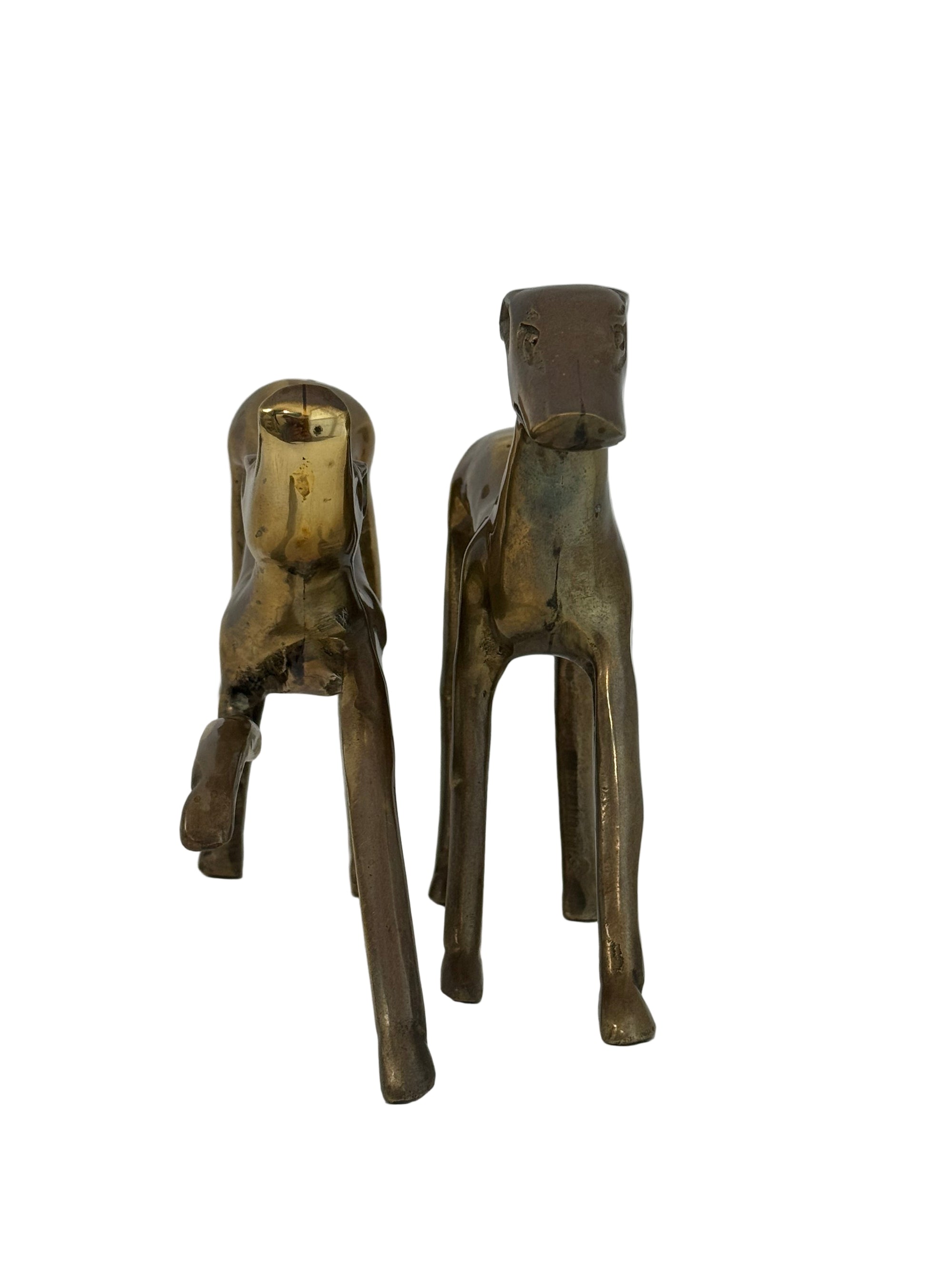 Vintage Mid-Century Brass Greyhound Dogs – Playful Pair of Sculptures