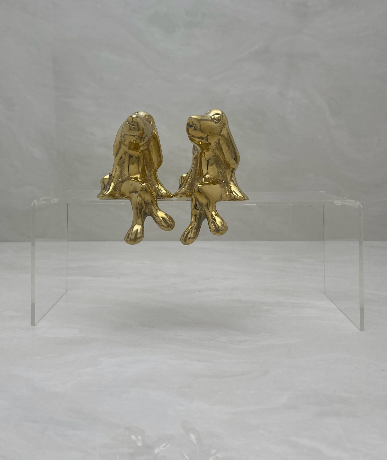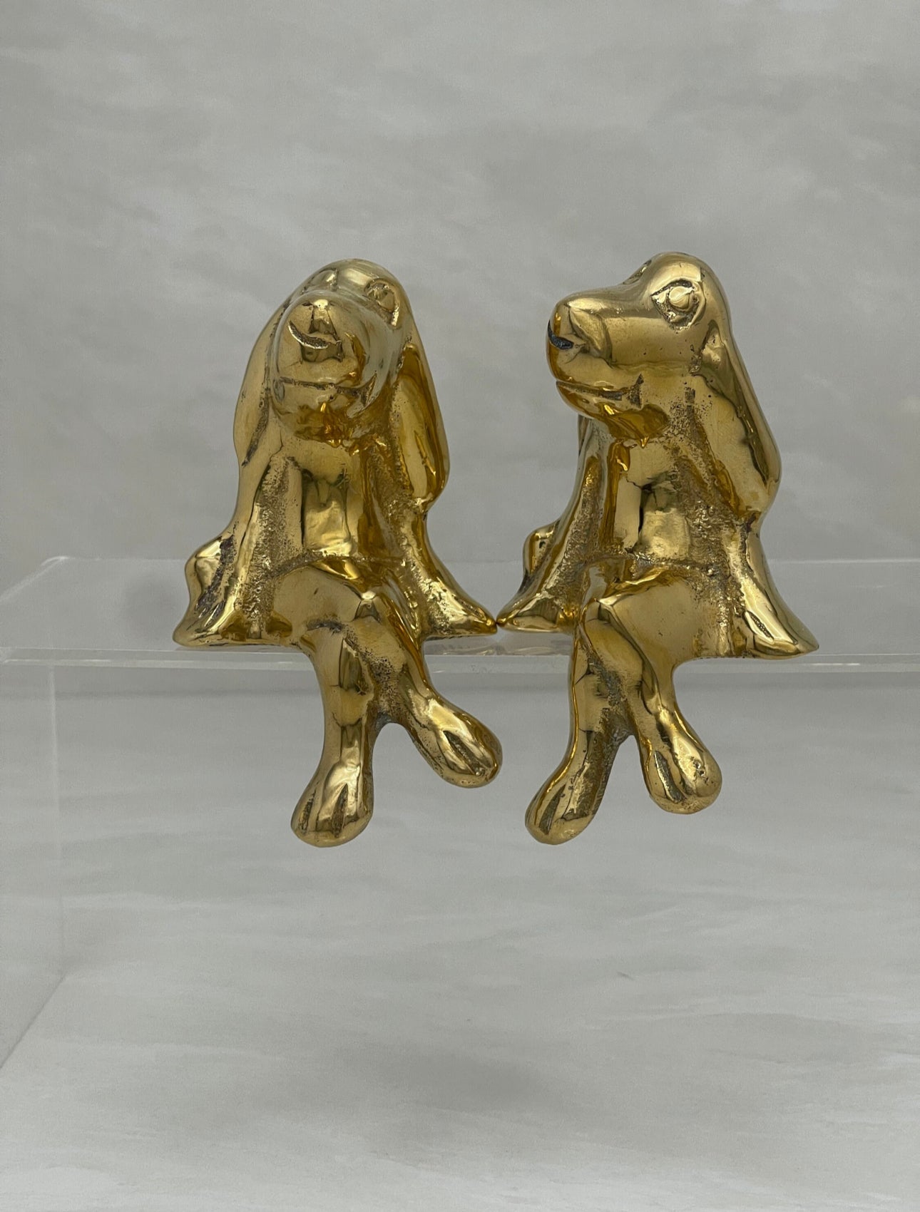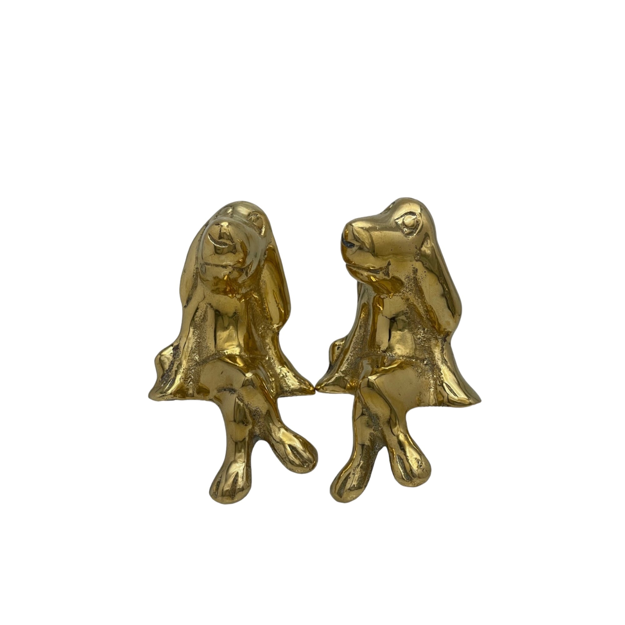 Rare Small Vintage Brass Shelf Sitting Dogs-A Pair