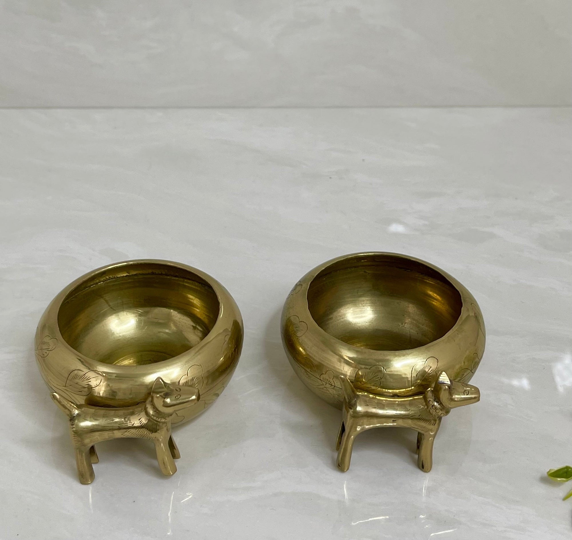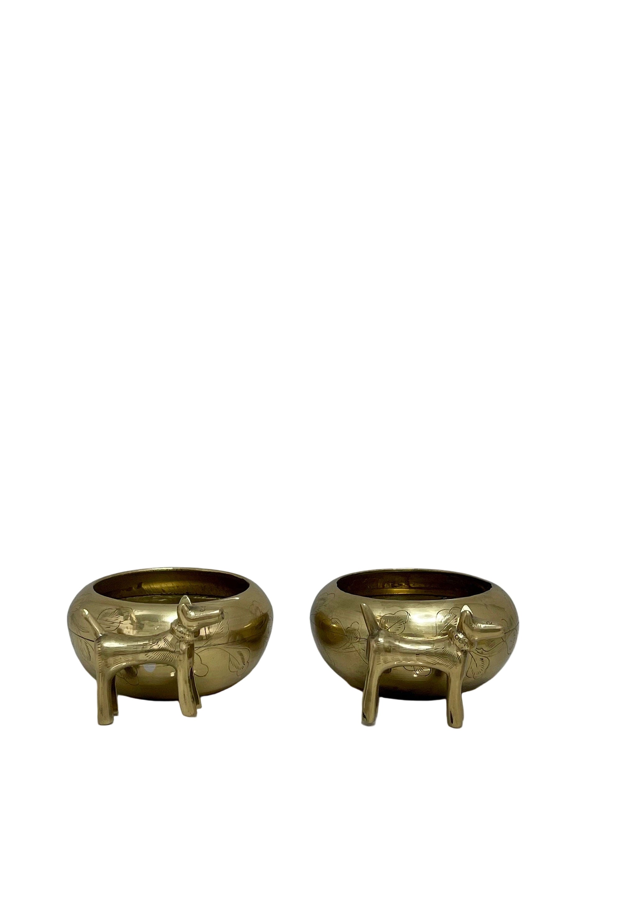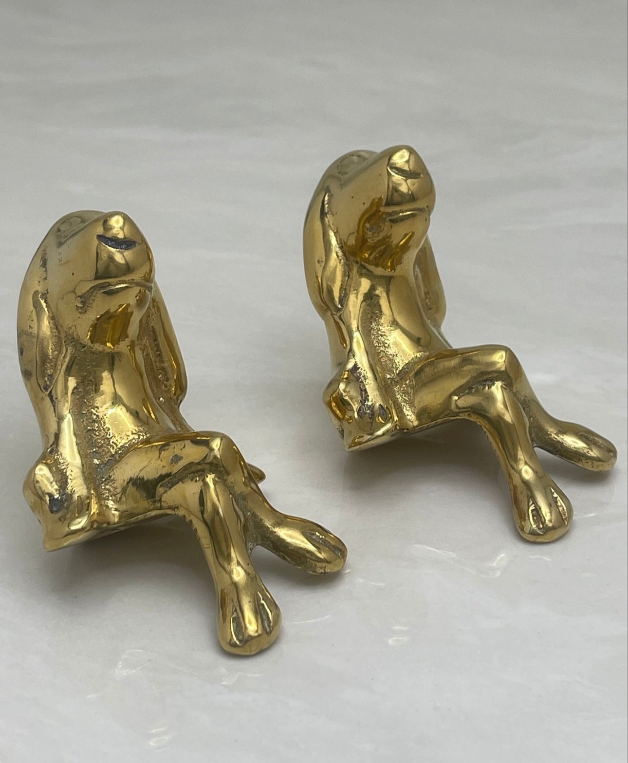Rare Small Vintage Brass Shelf Sitting Dogs-A Pair