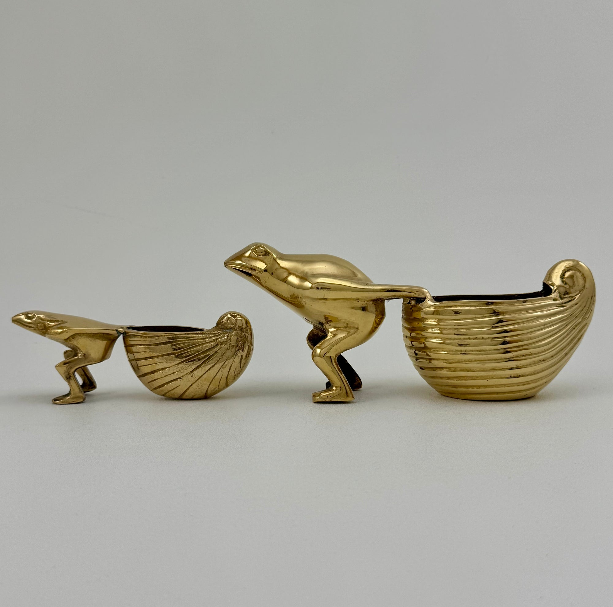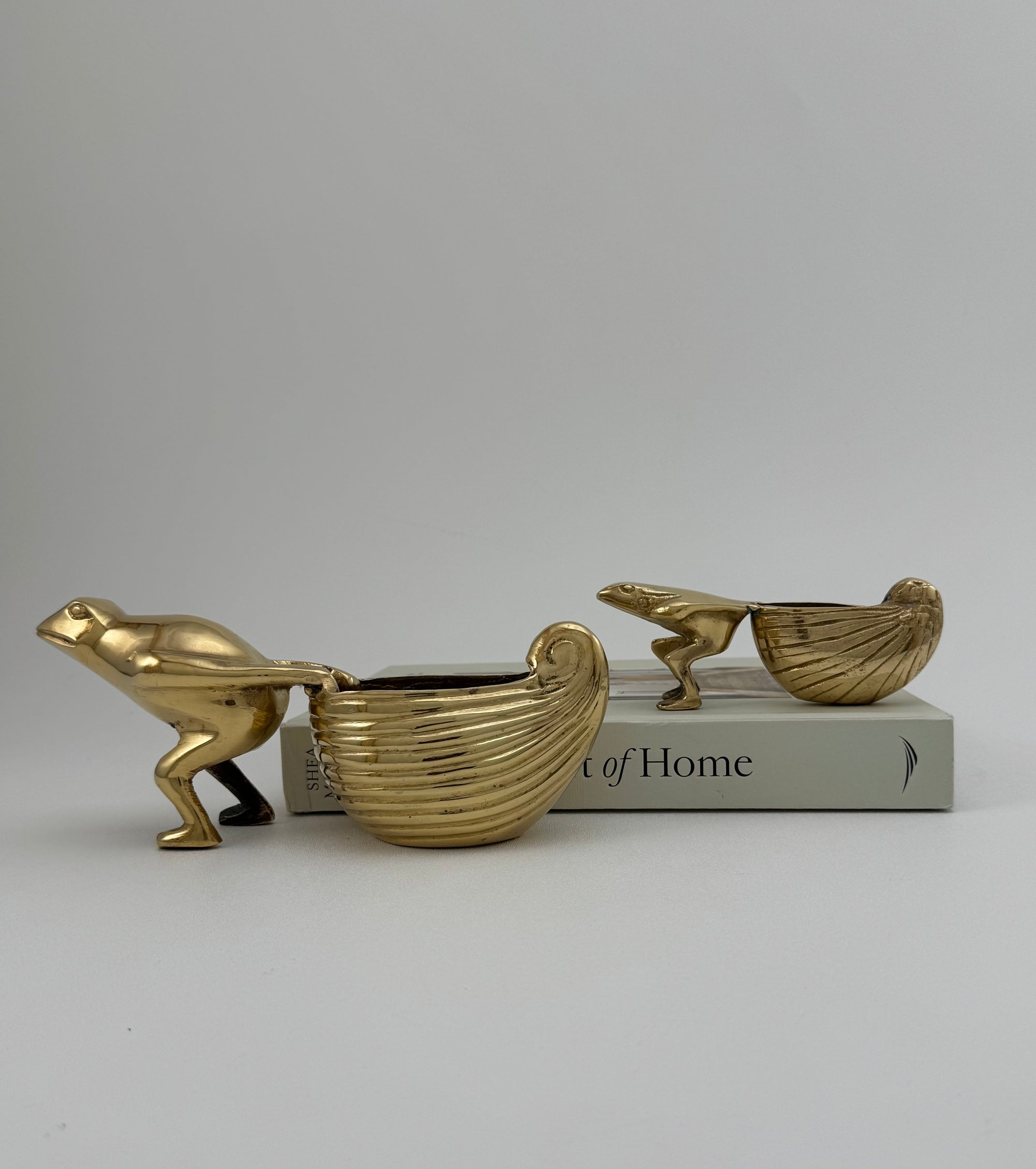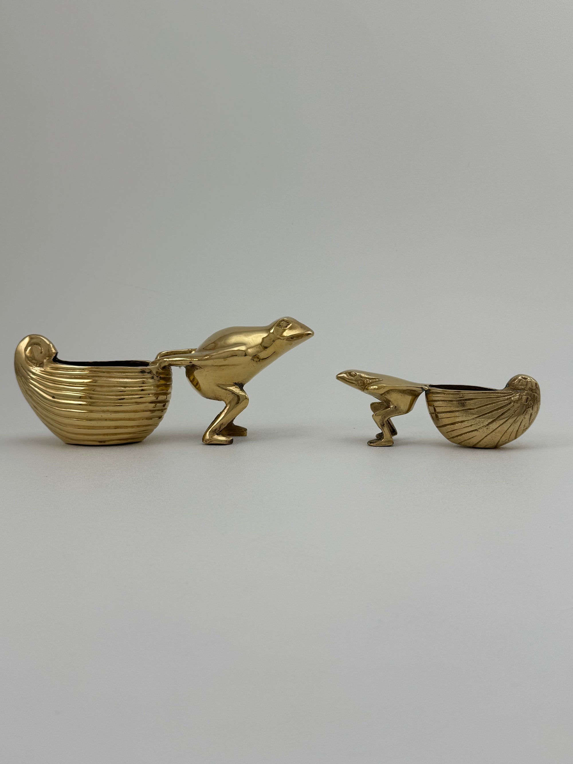 Charming Vintage Brass Frog & Snail Planters – Whimsical Duo