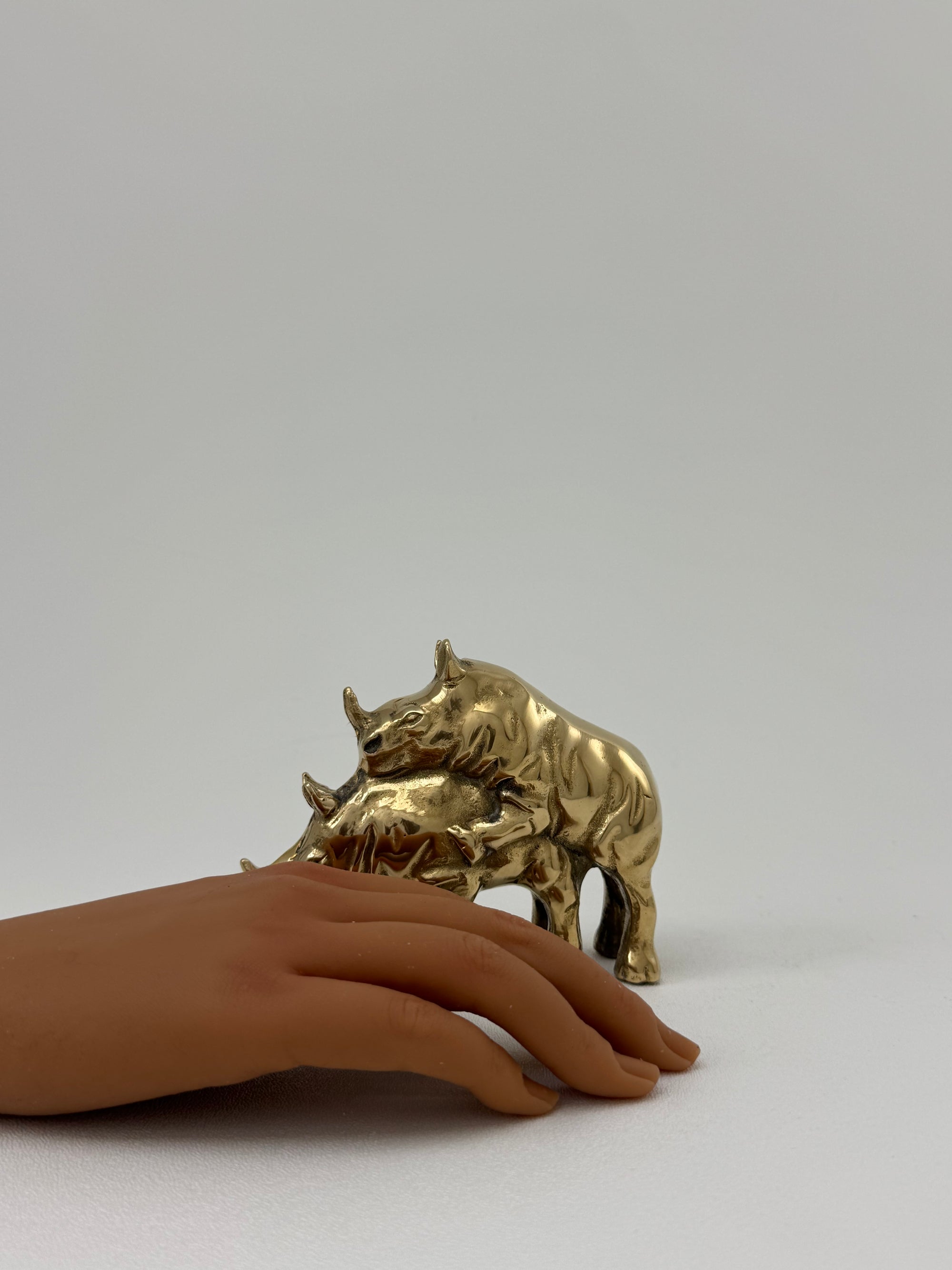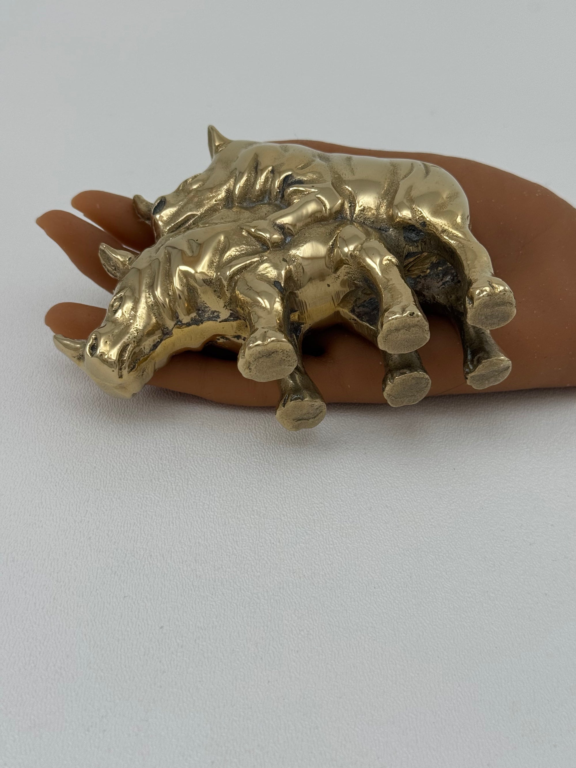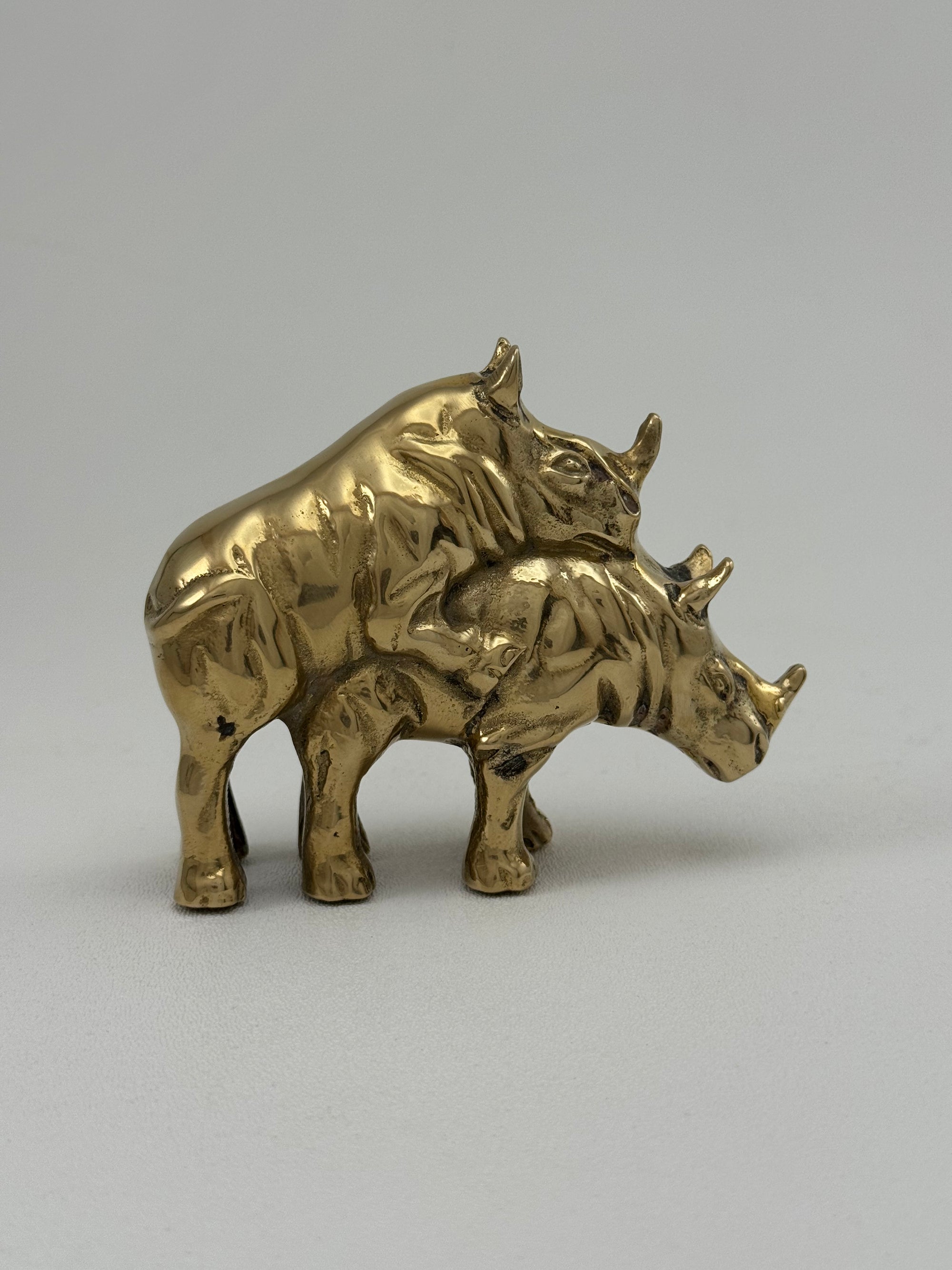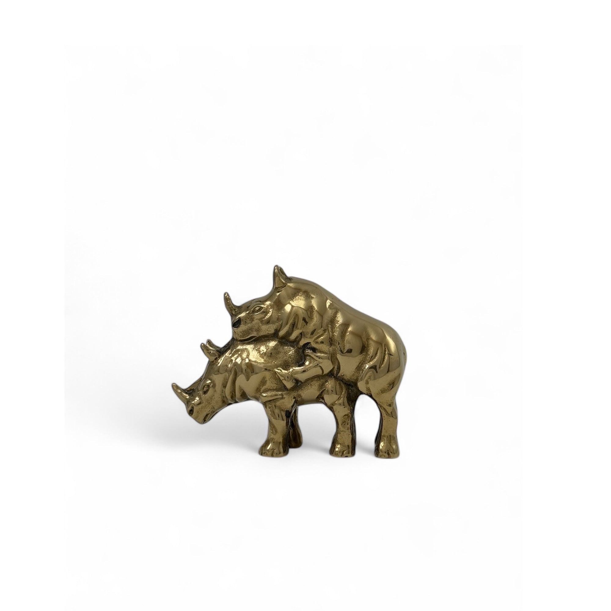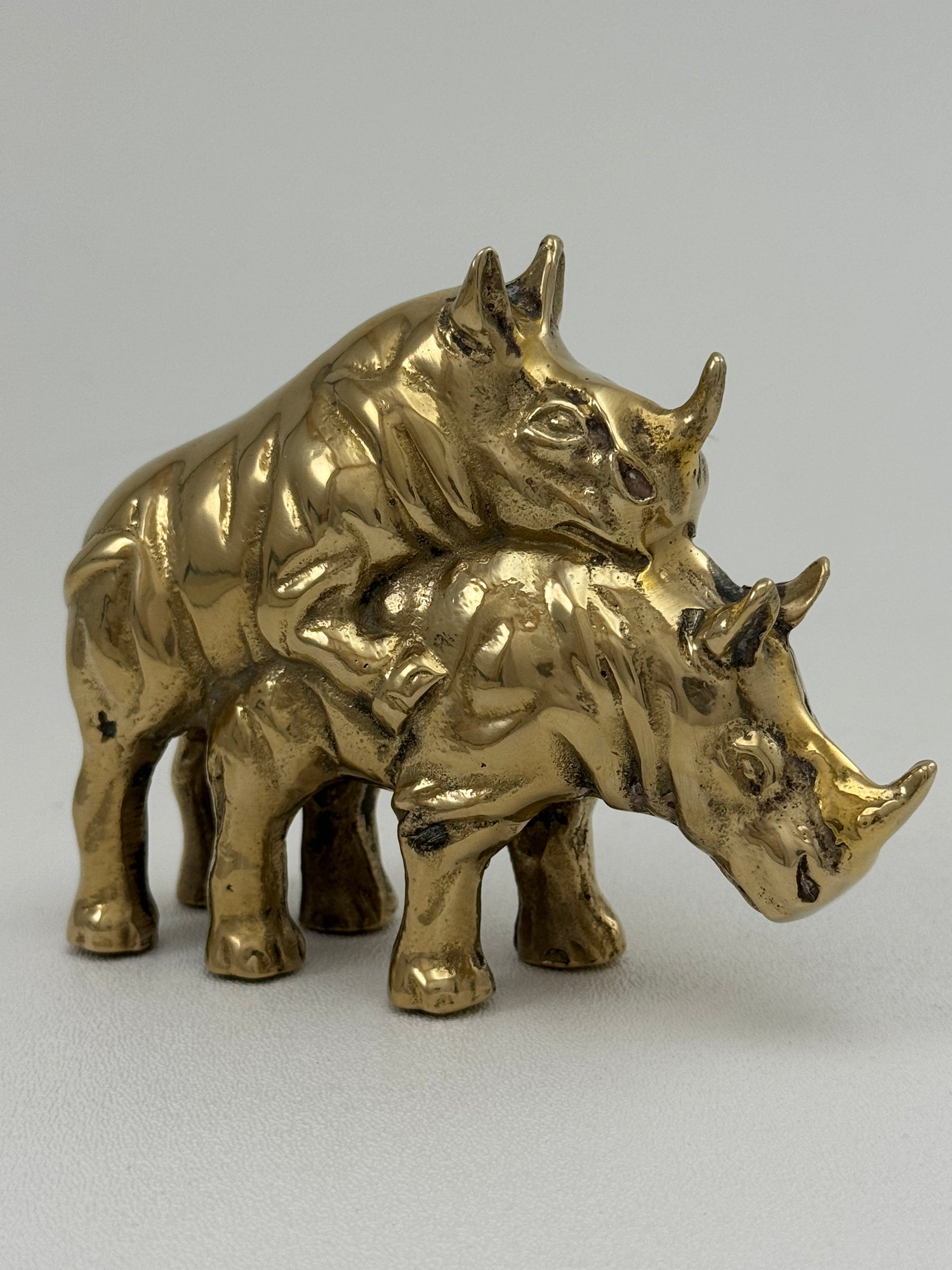 Rare Vintage Brass Mating Rhino Figurine – Small 4” Rhinos- Nature Sculpture, Safari Animal Decor, Quirky Brass Collectible