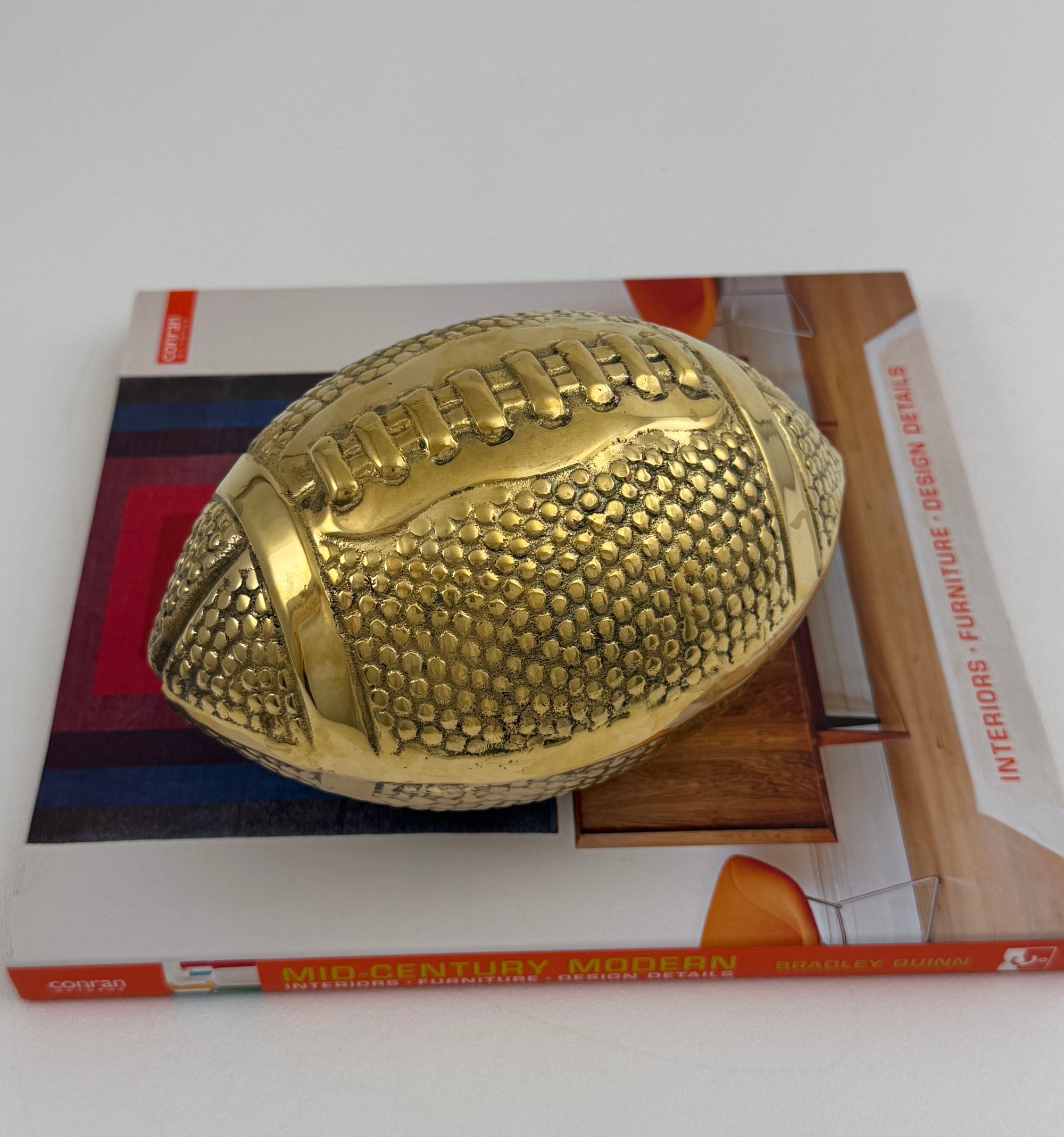 Rare Vintage Brass Football Sculpture – 7” Long, 2.12 lbs – Textured Detail, Mid-Century Sports Decor