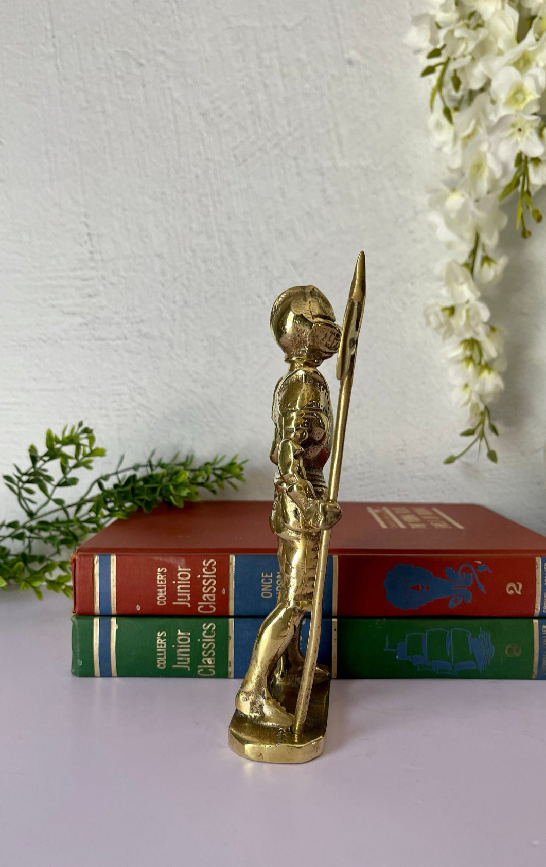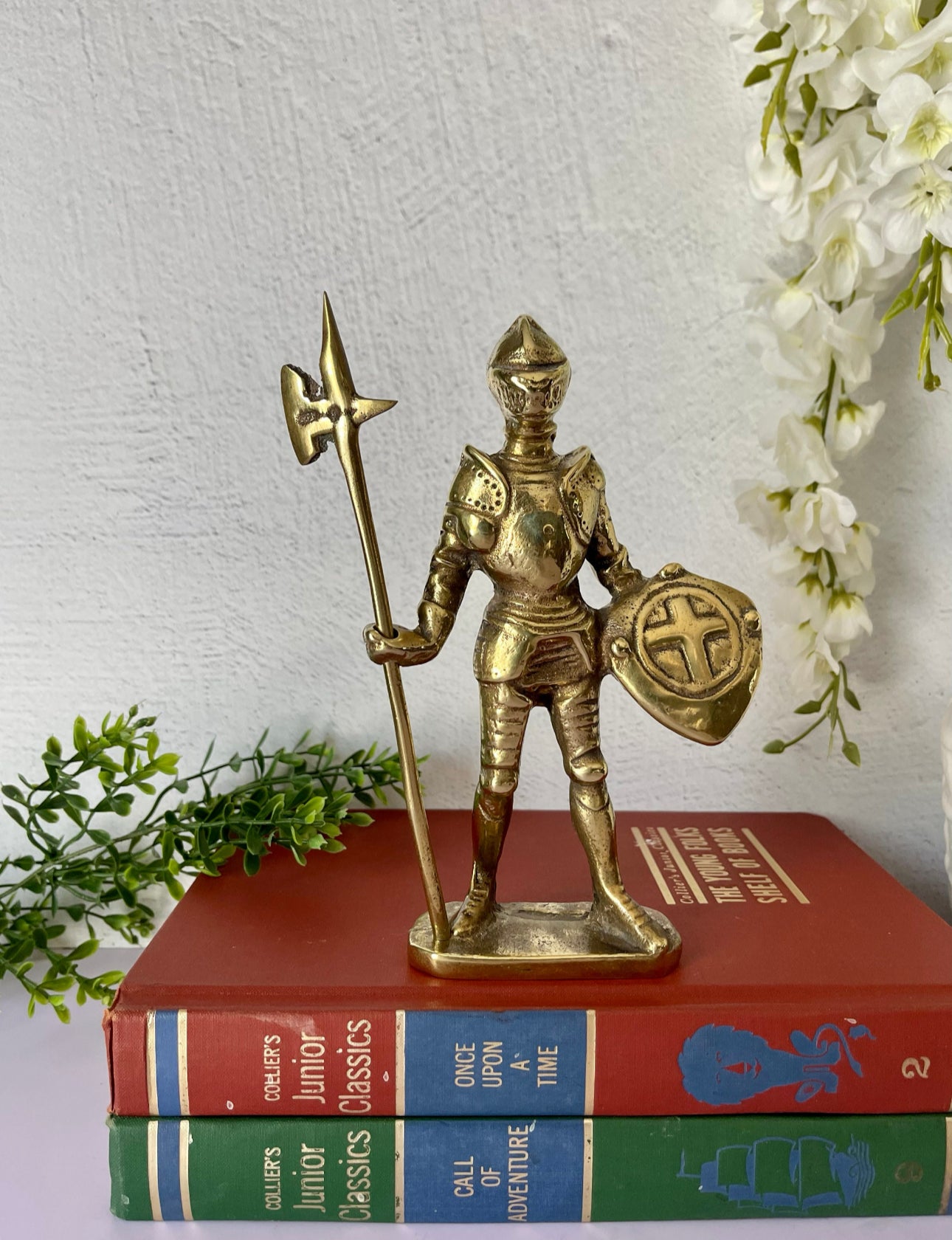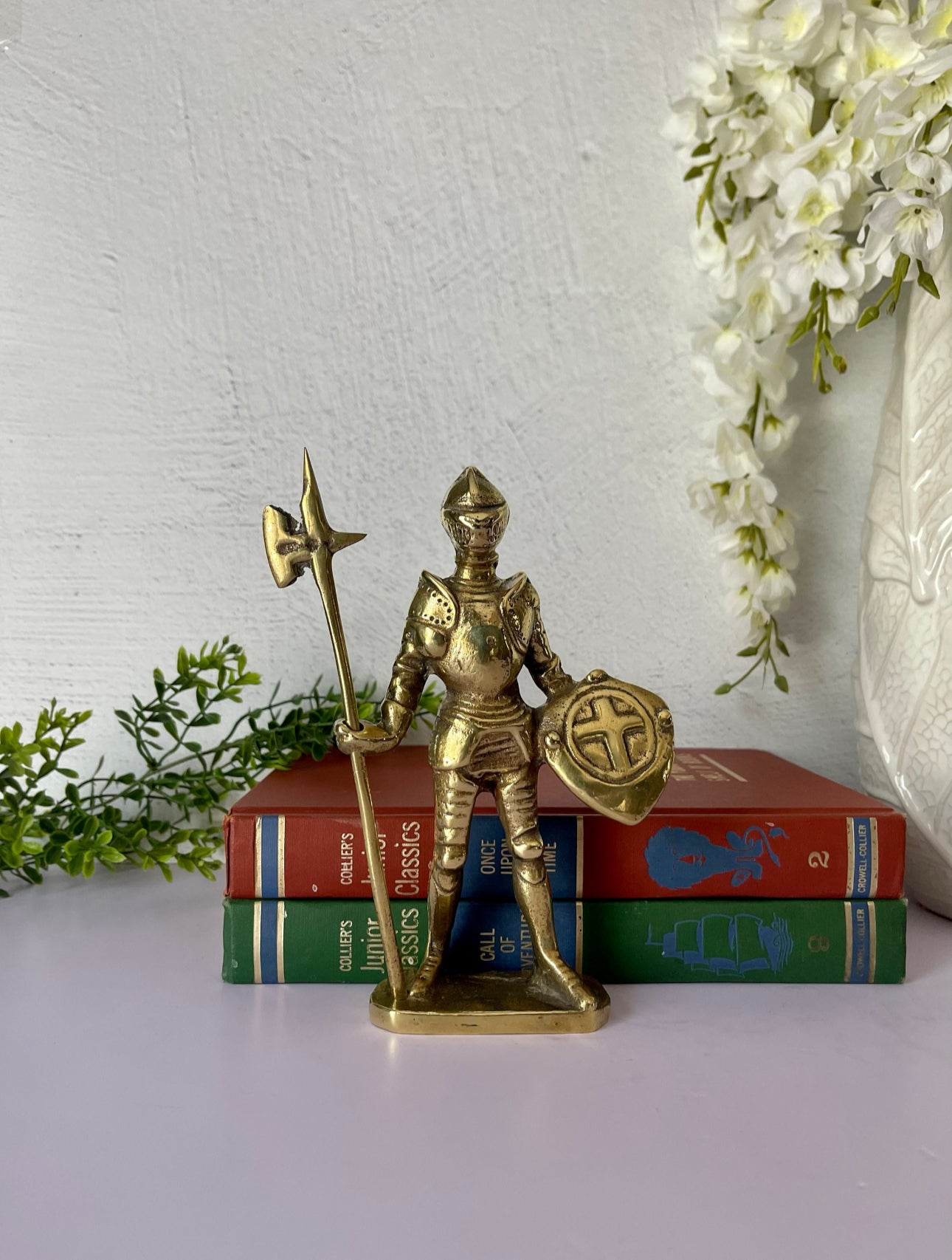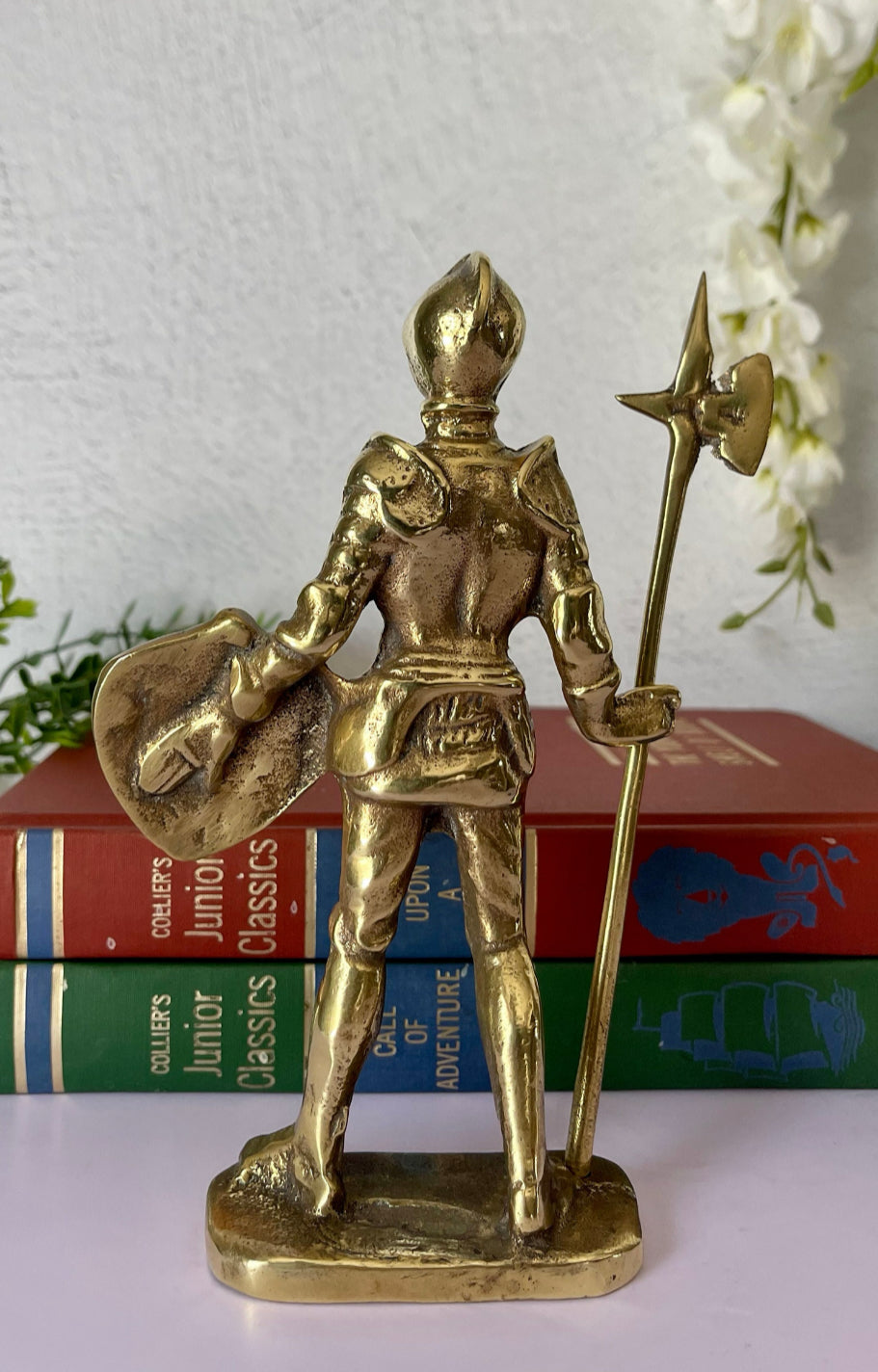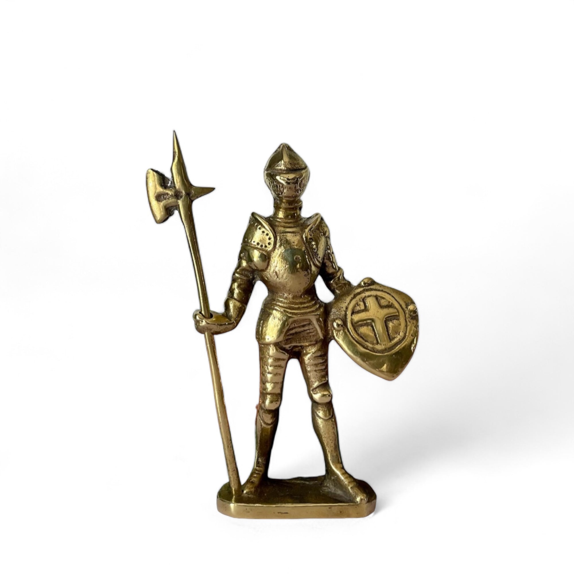 Vintage Brass Knight in Armor with Shield and Halberd Figurine