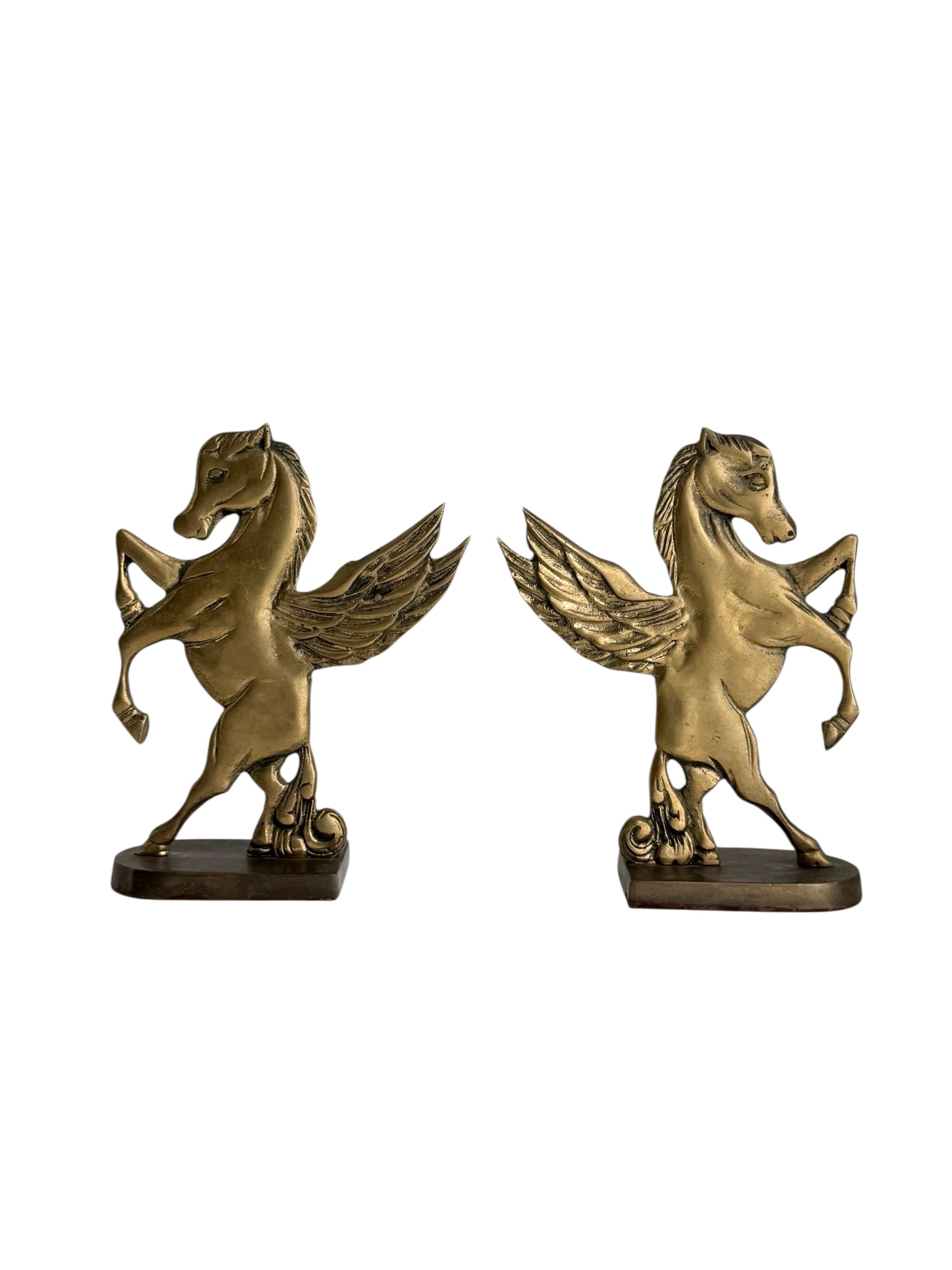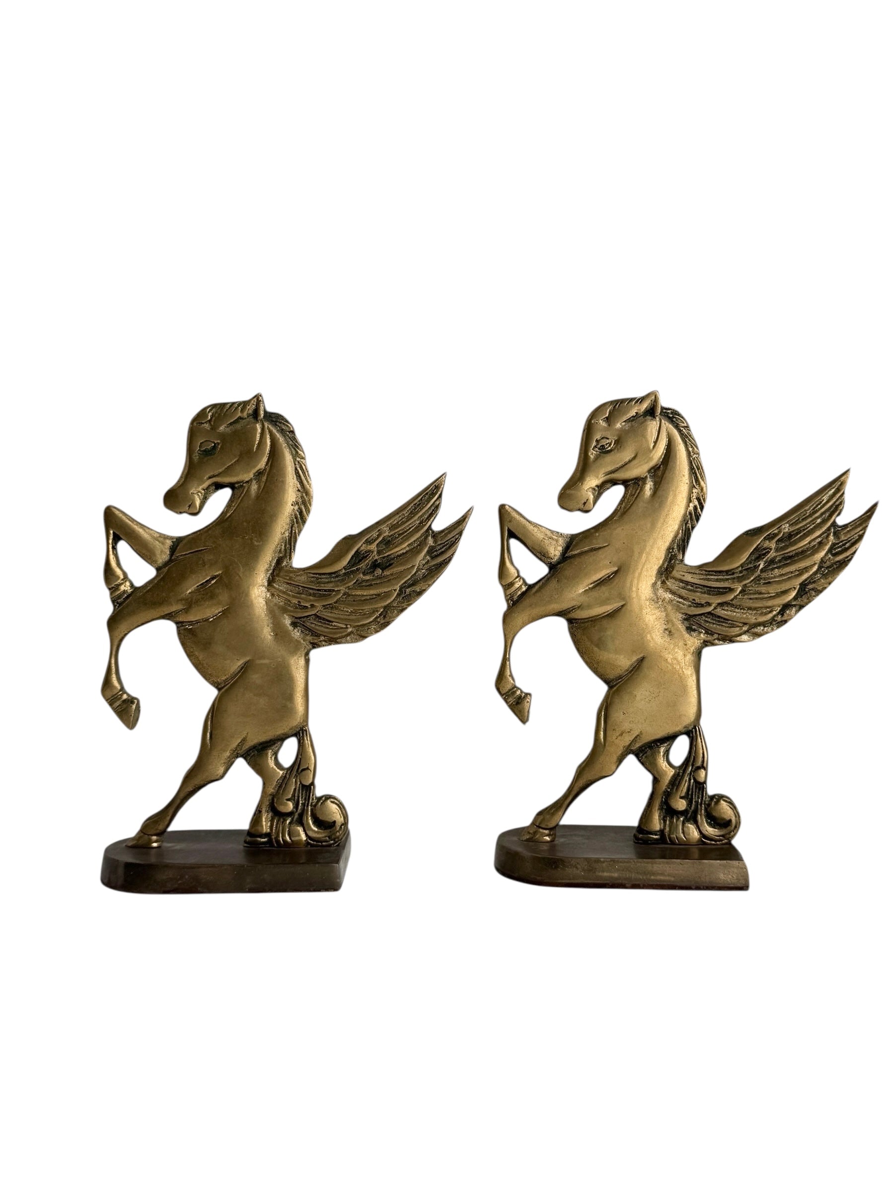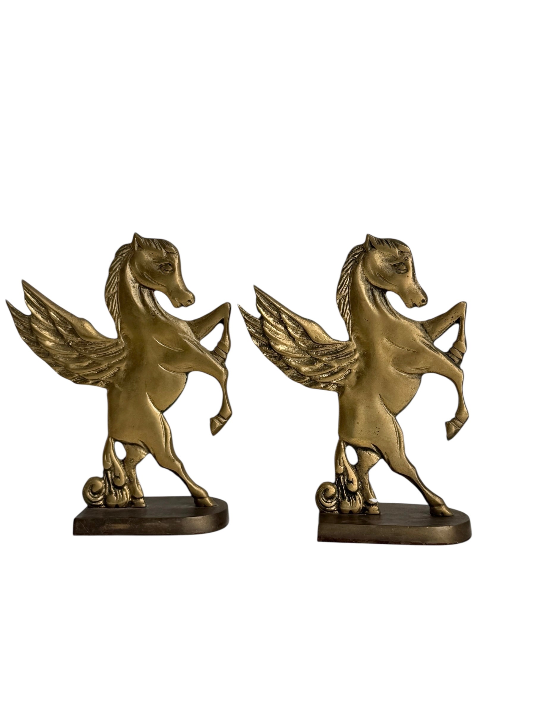 Vintage Brass Pegasus Horse Bookends (Set of Two)
