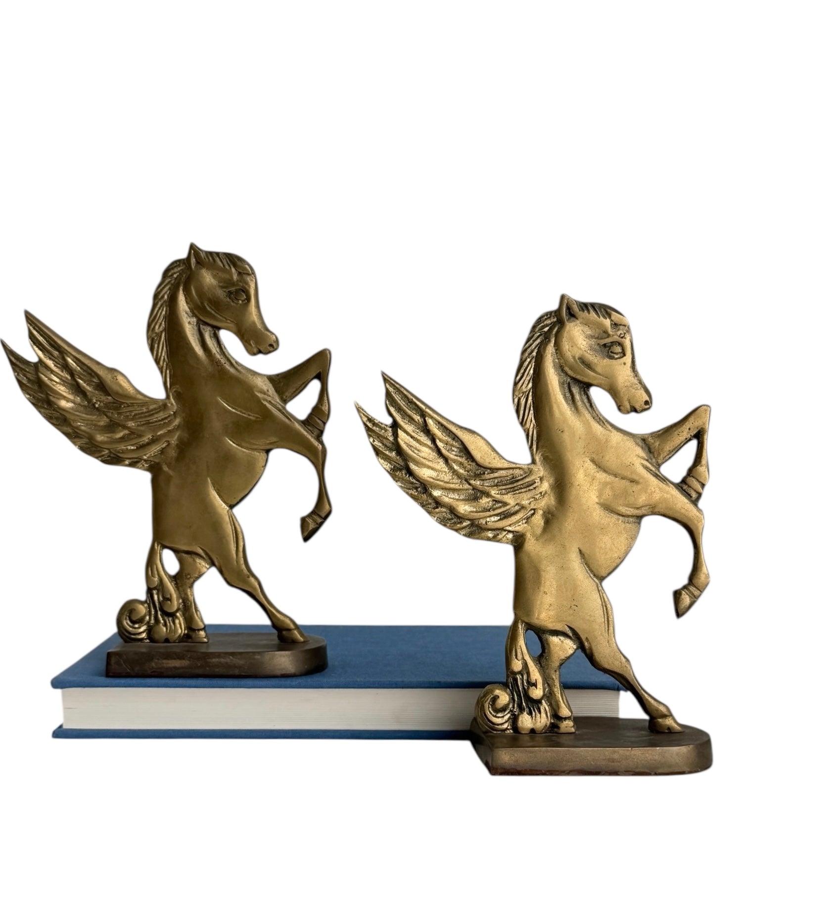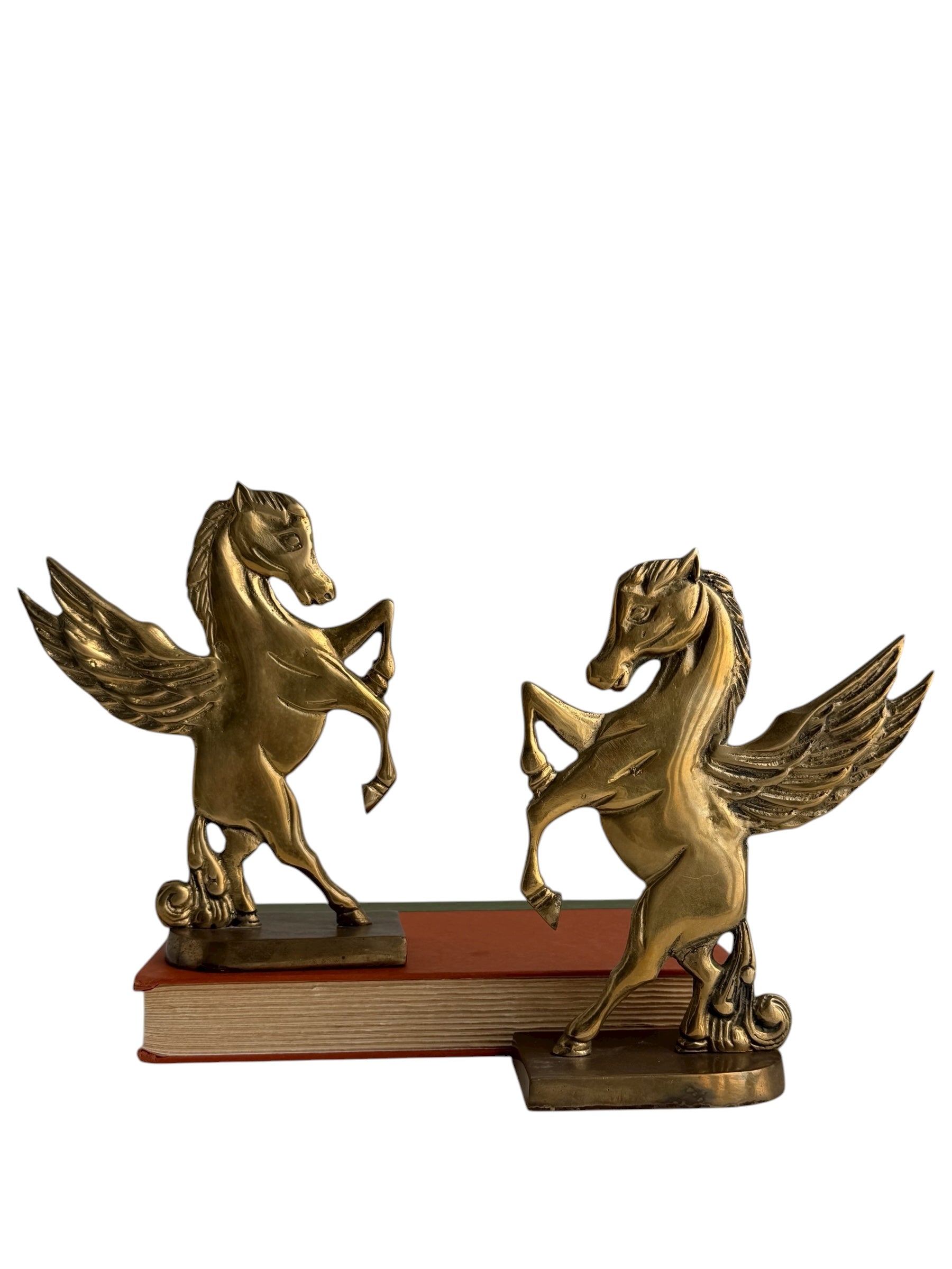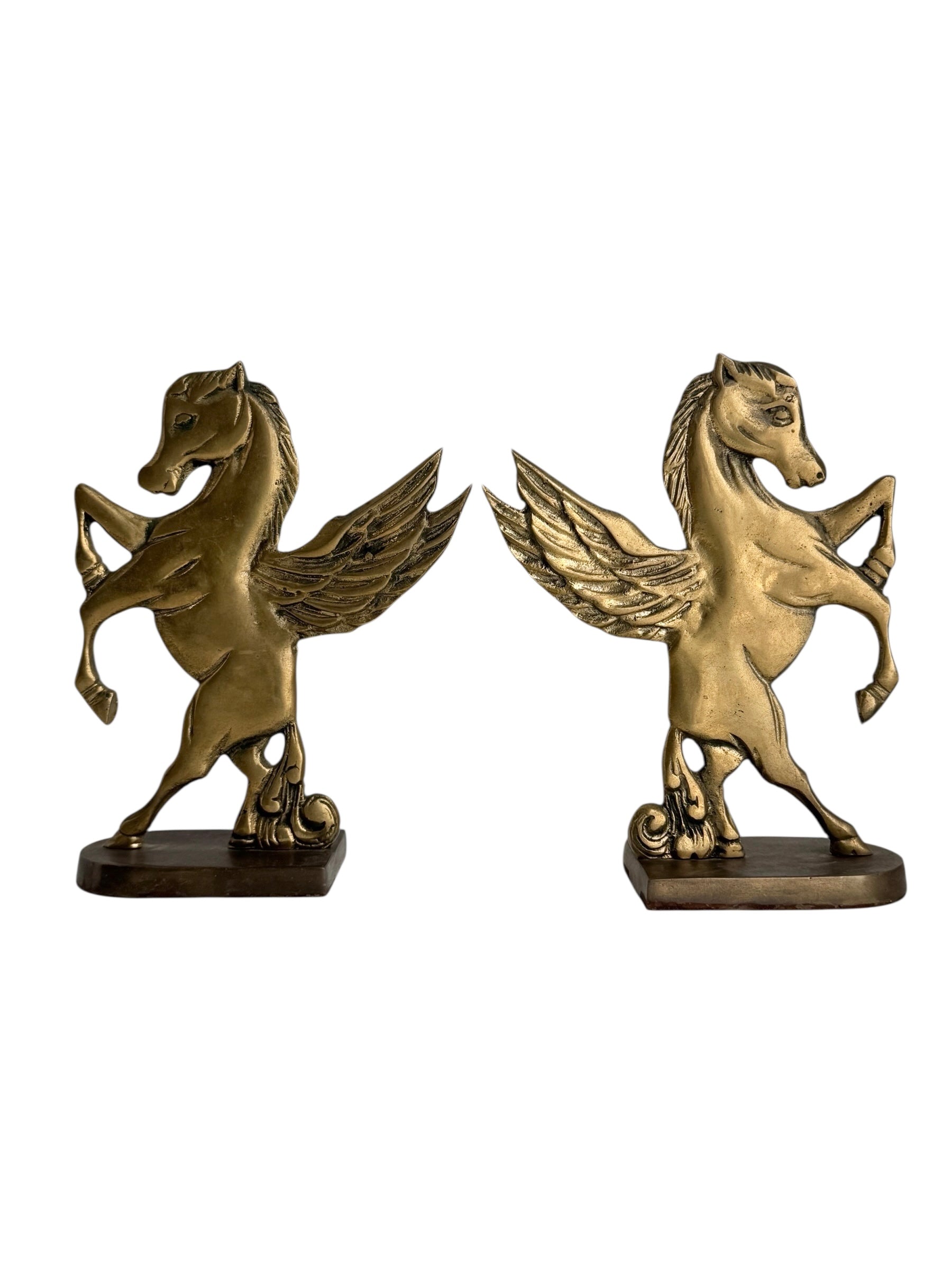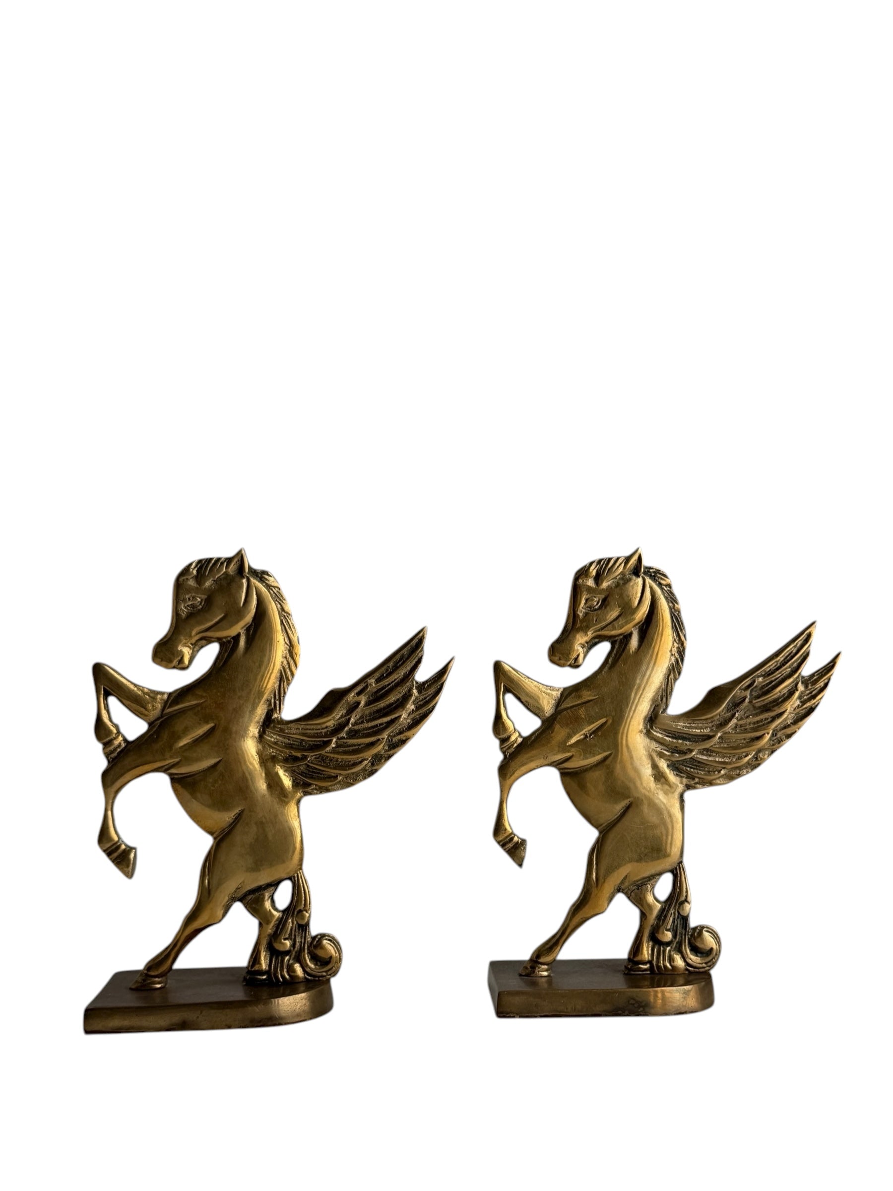 Vintage Brass Pegasus Horse Bookends (Set of Two)