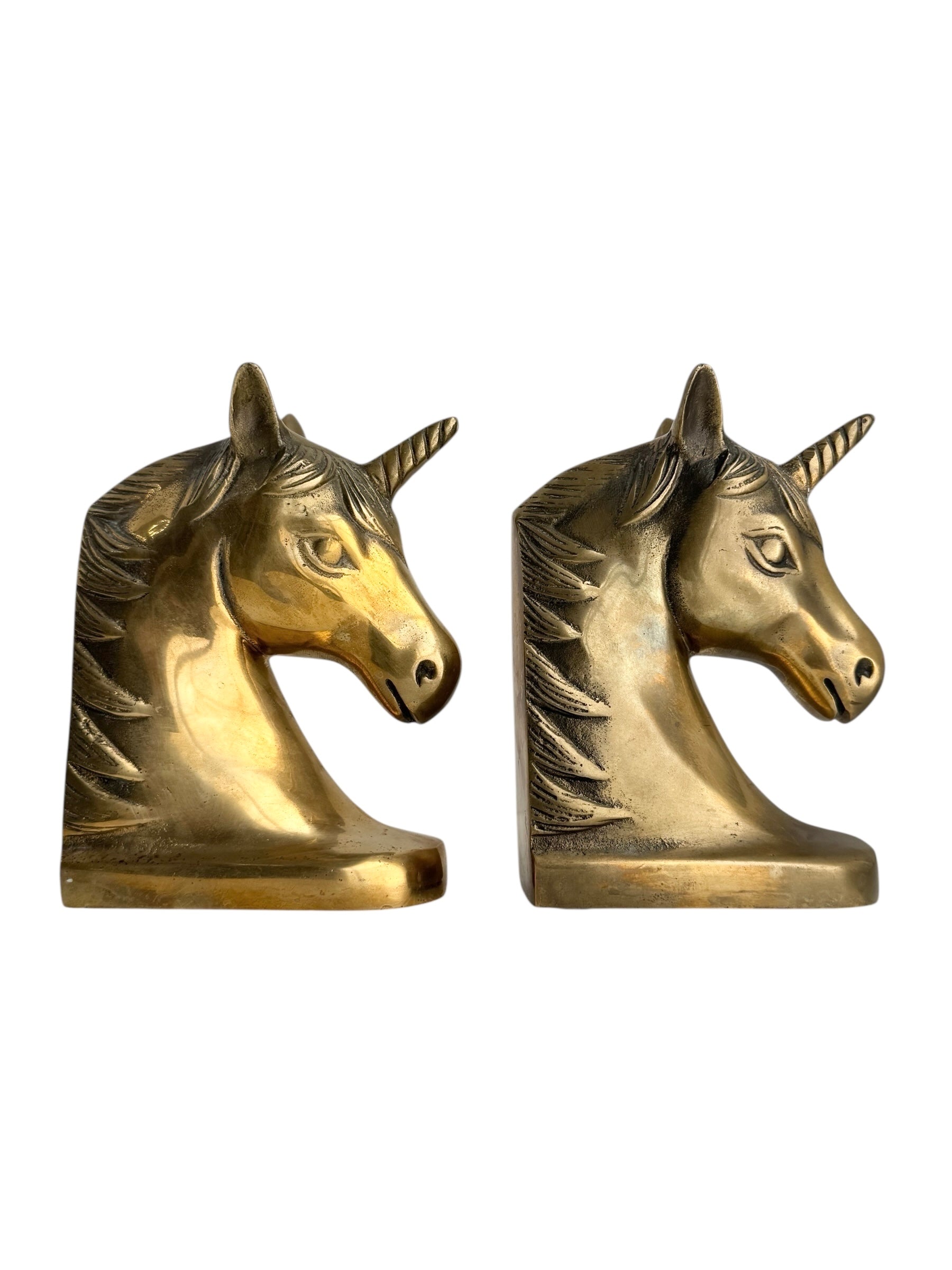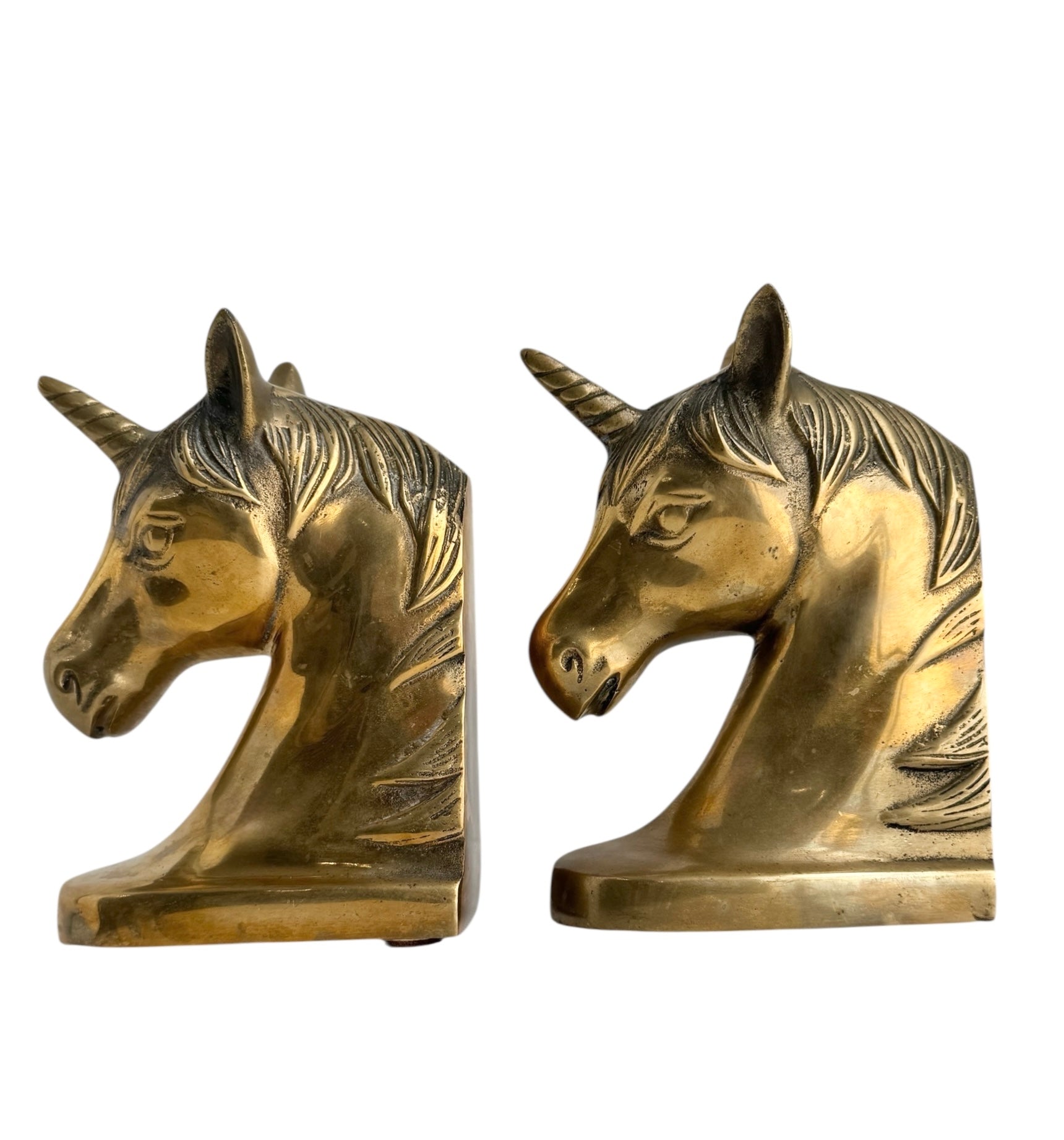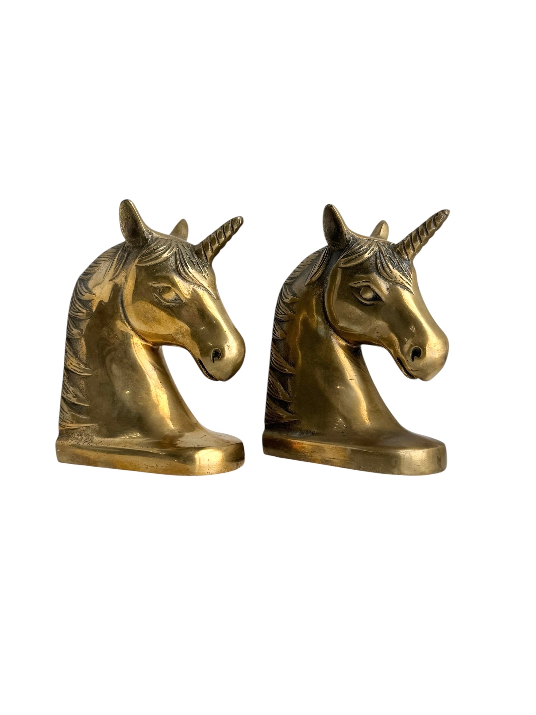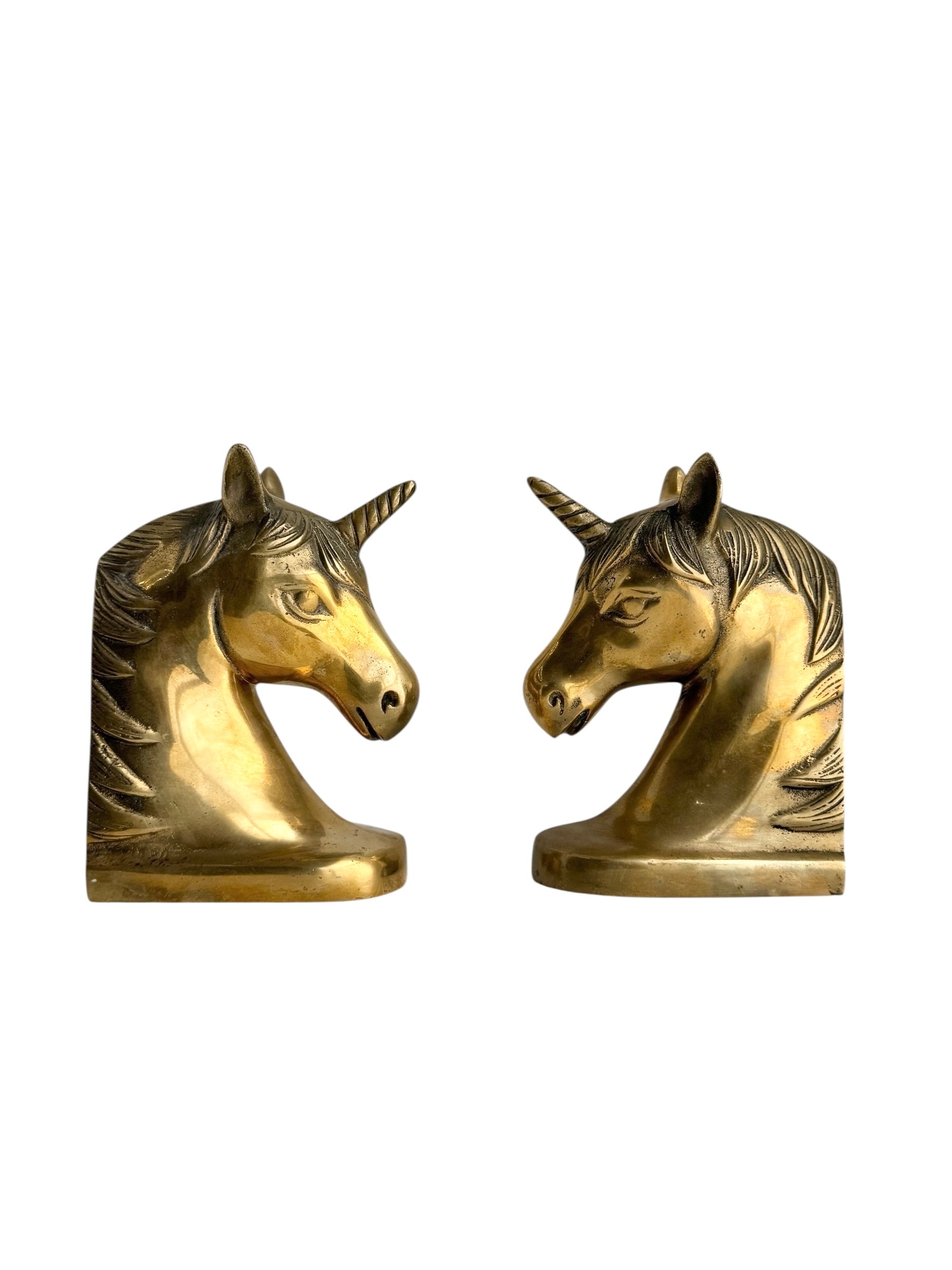 Vintage Brass Unicorn Bookends — Pair