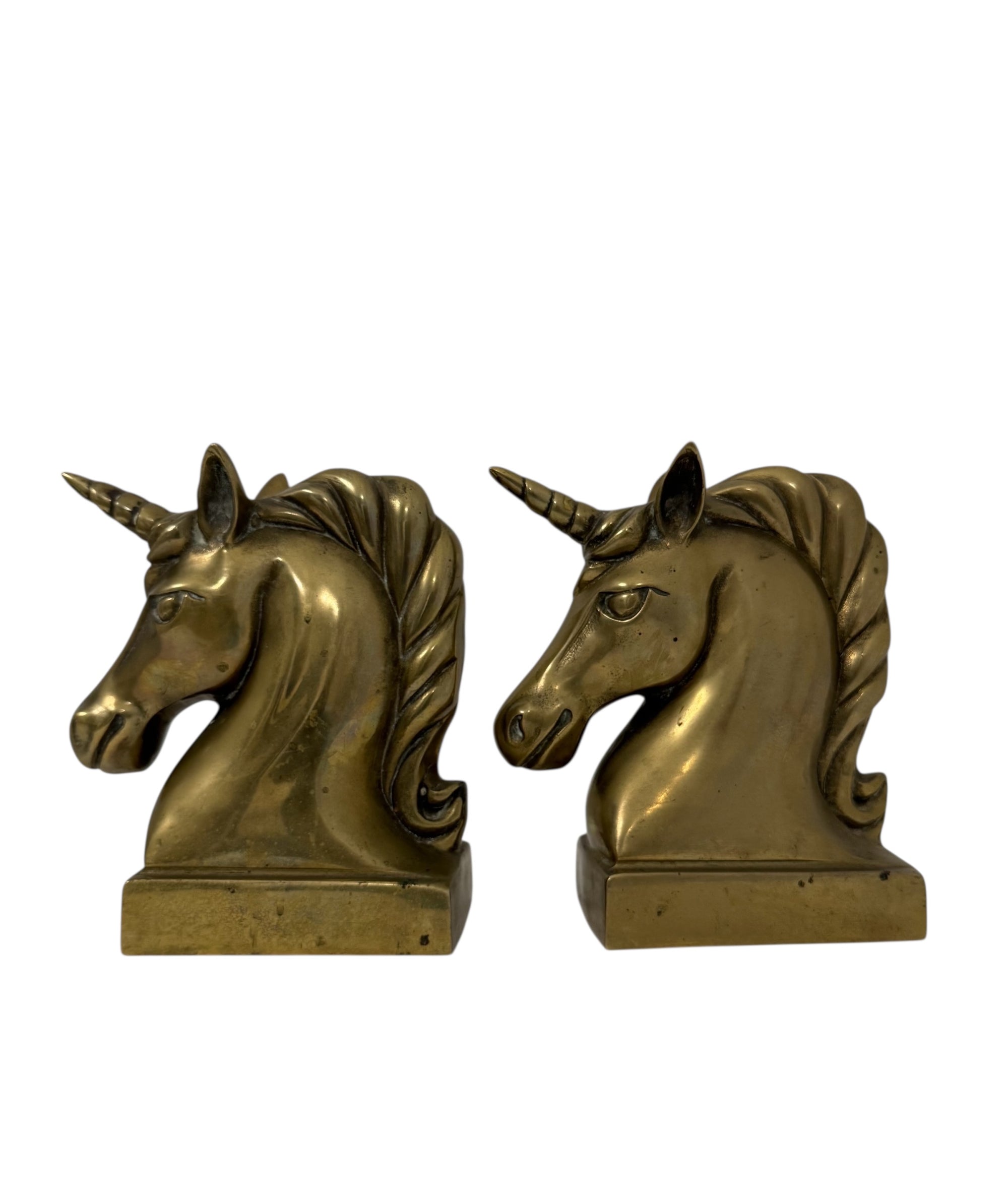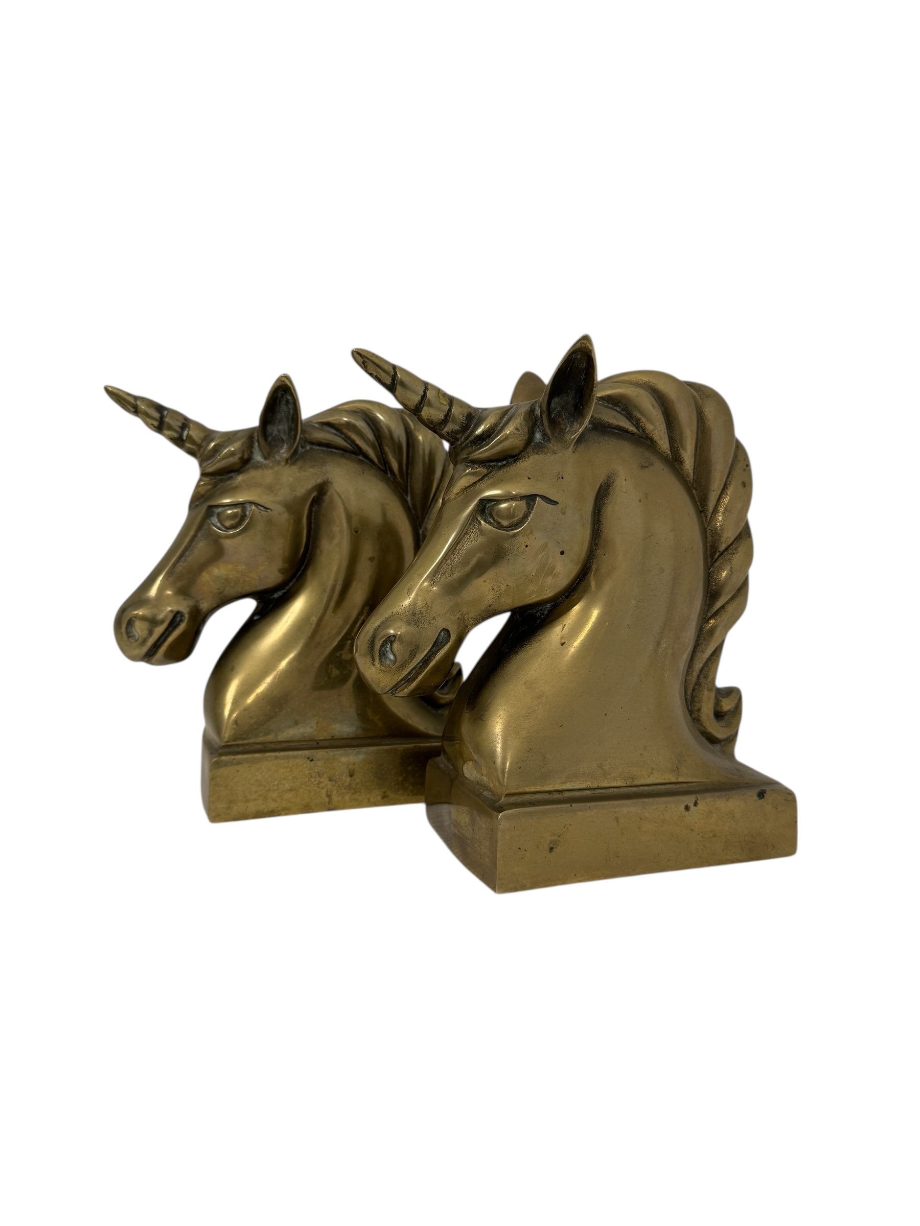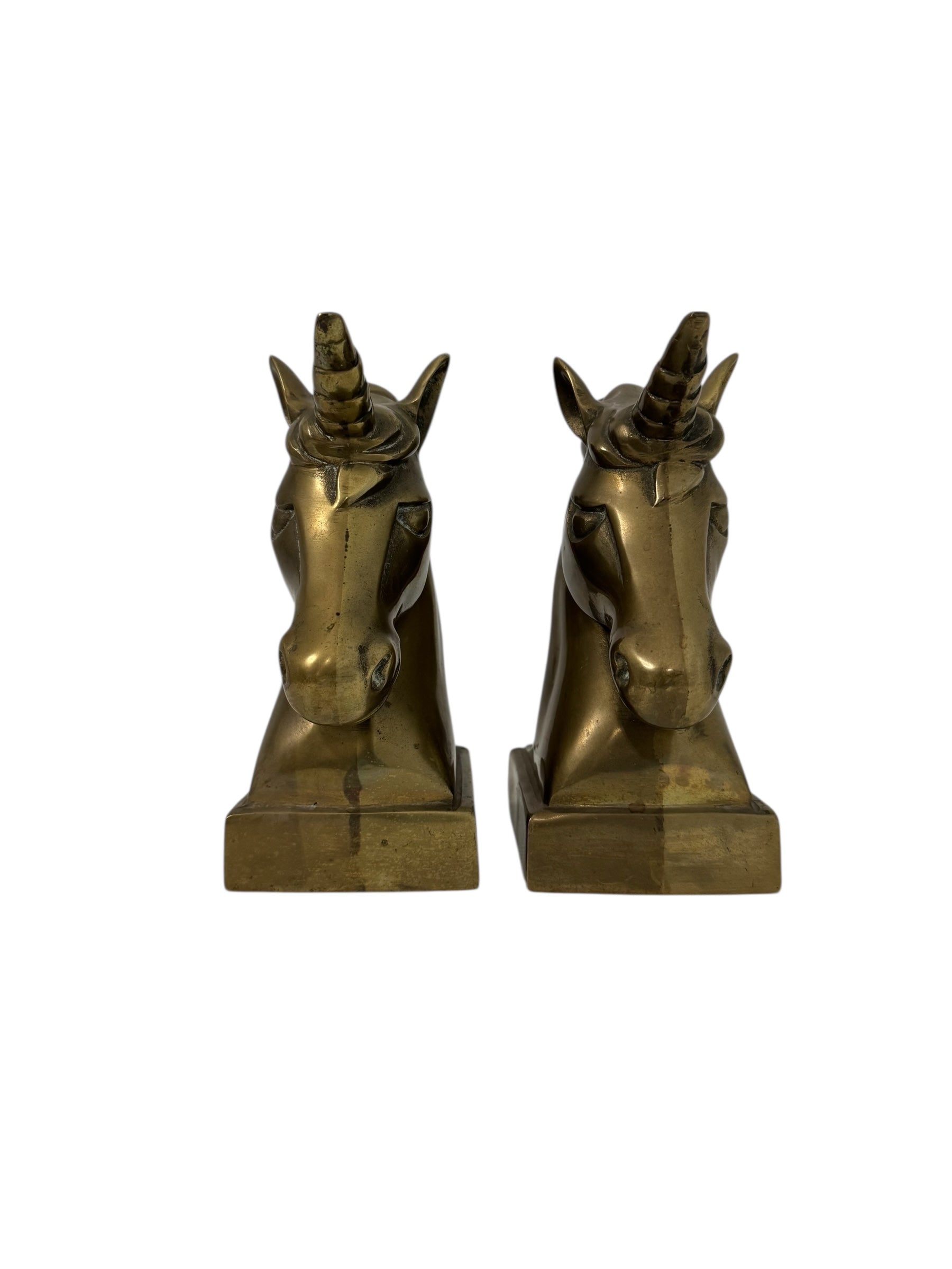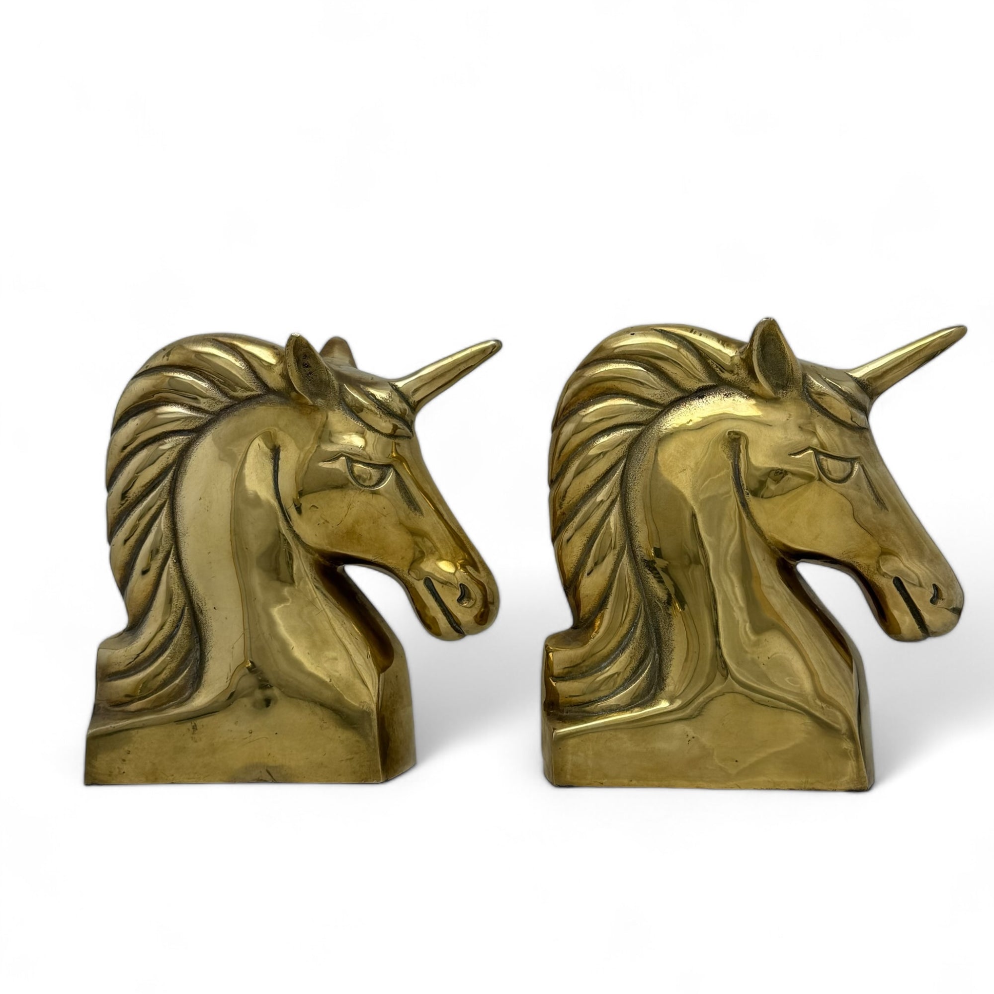 Vintage Brass Unicorn Bookends — Pair