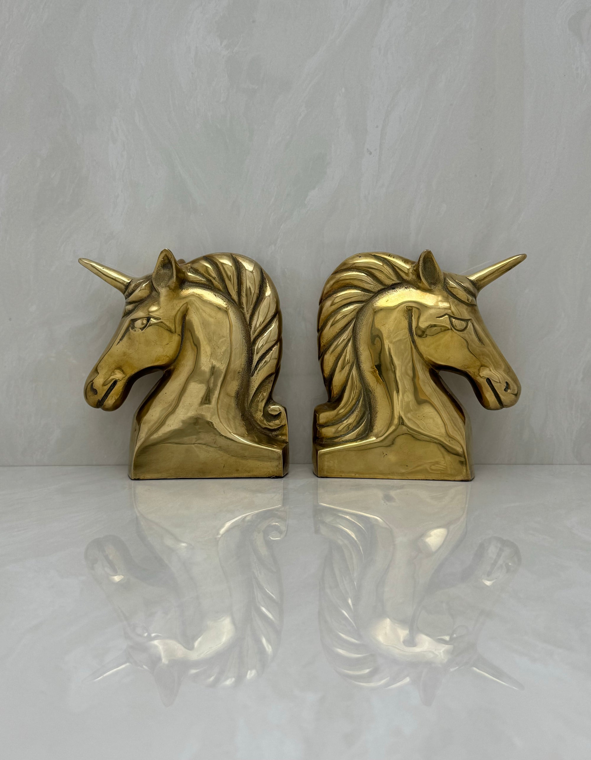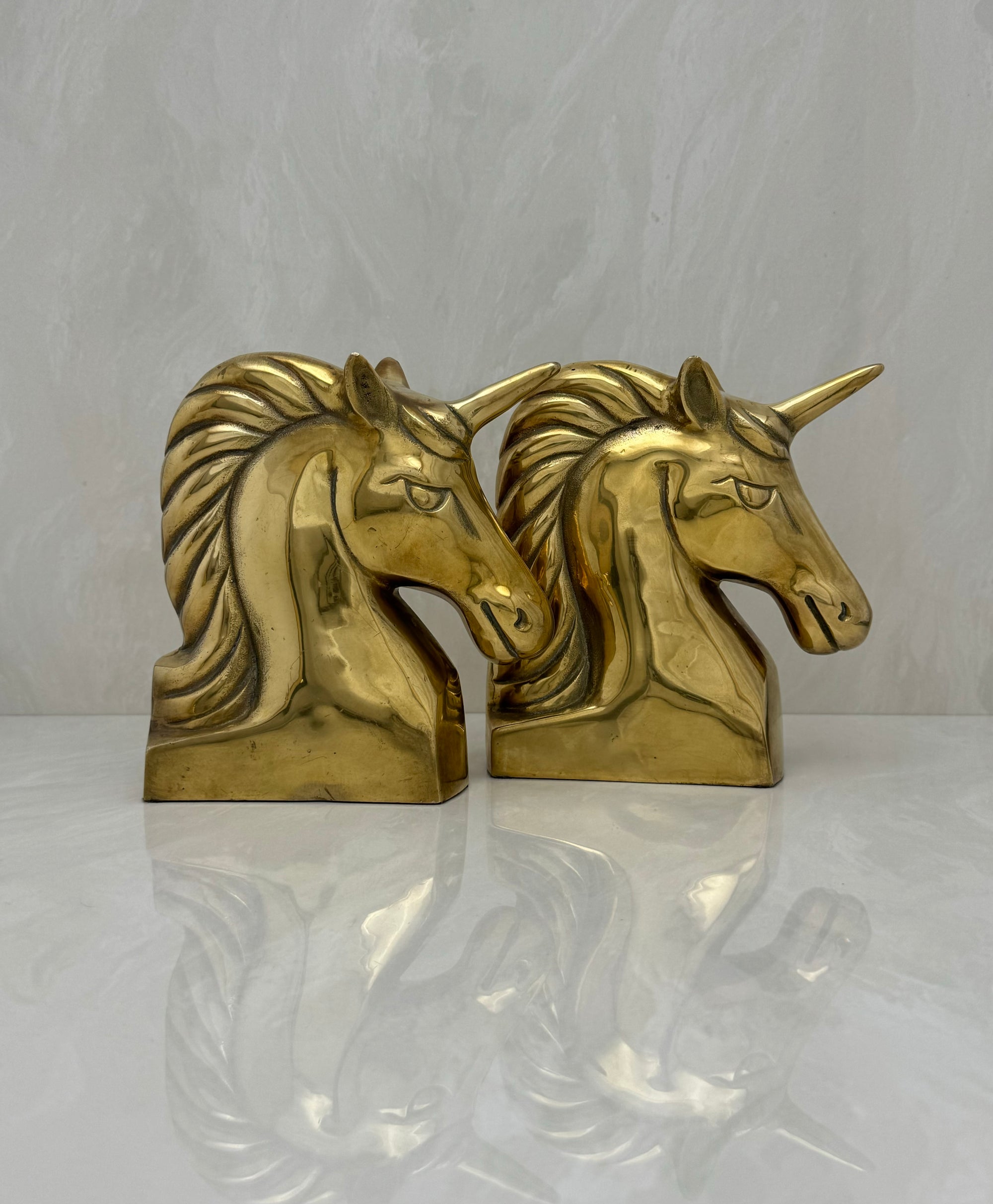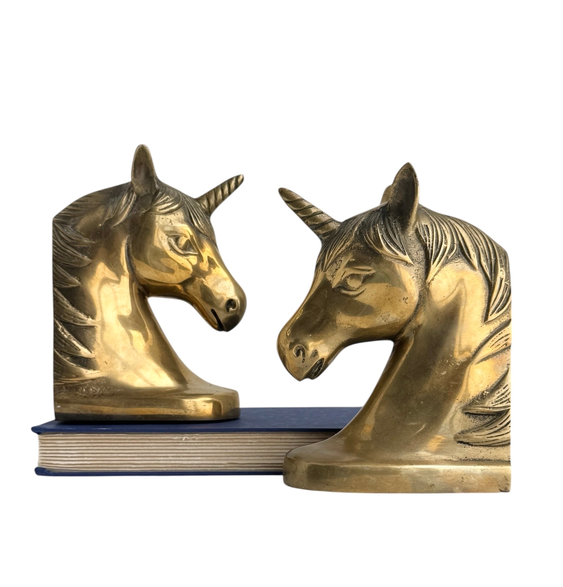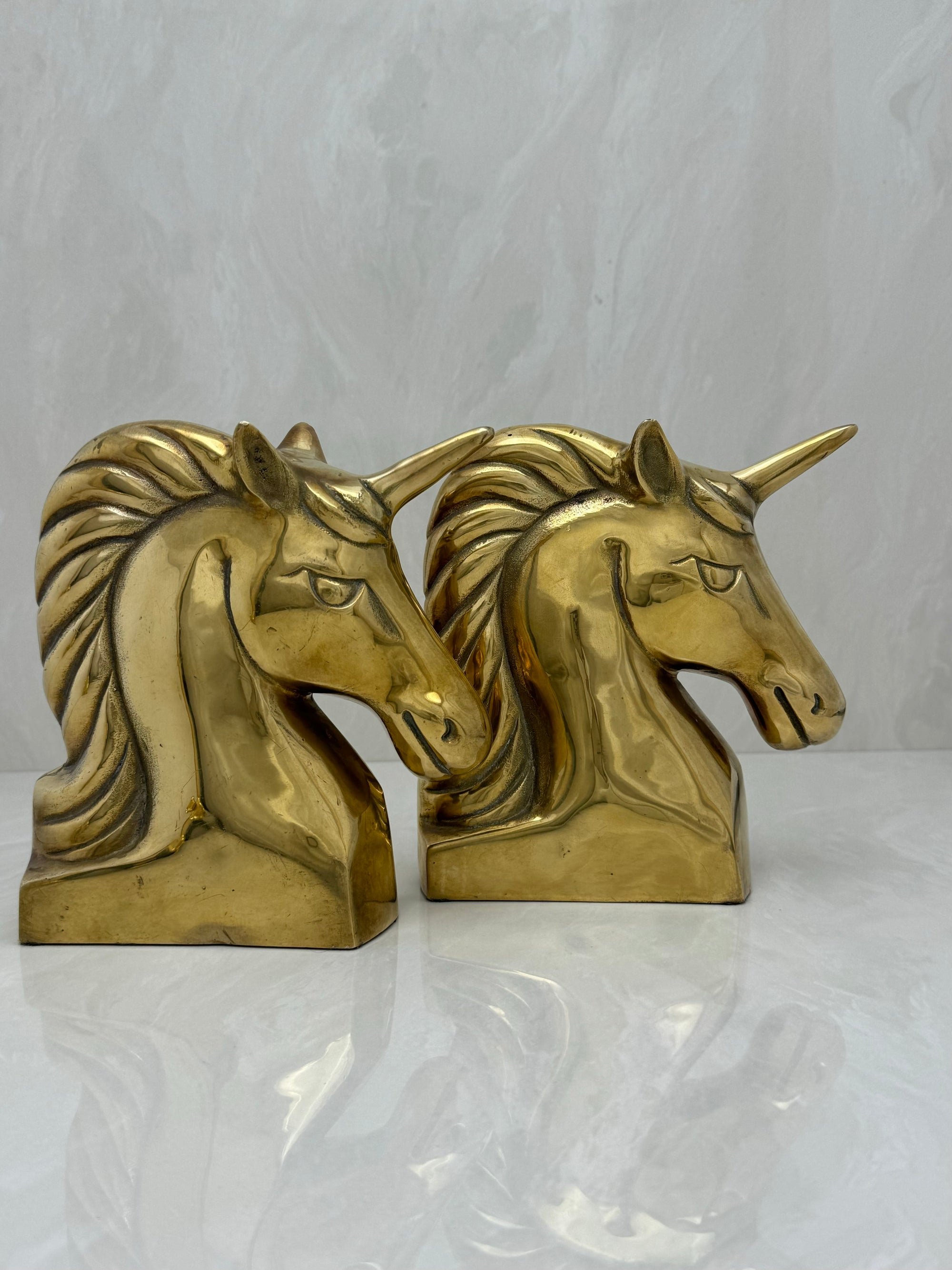 Vintage Brass Unicorn Bookends — Pair